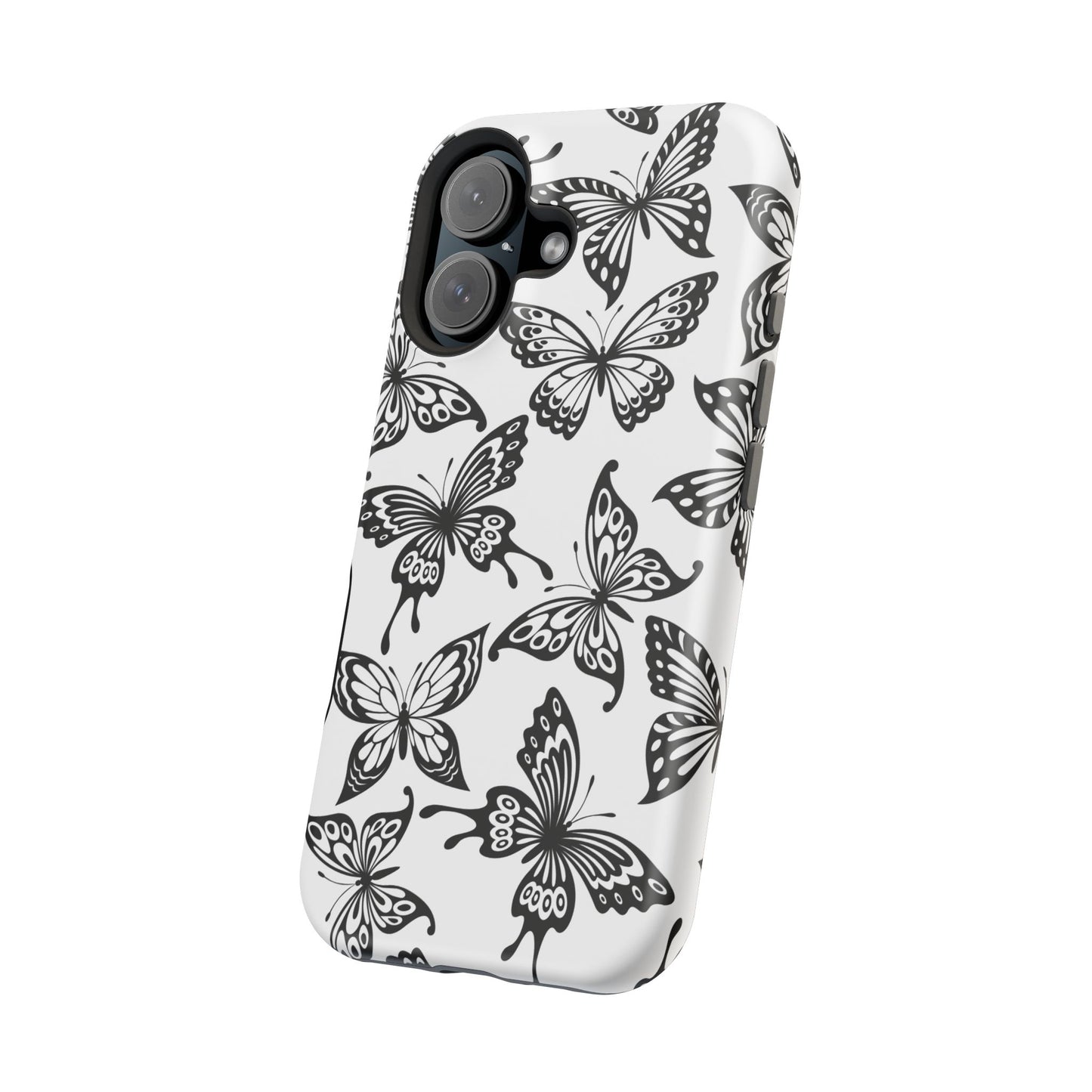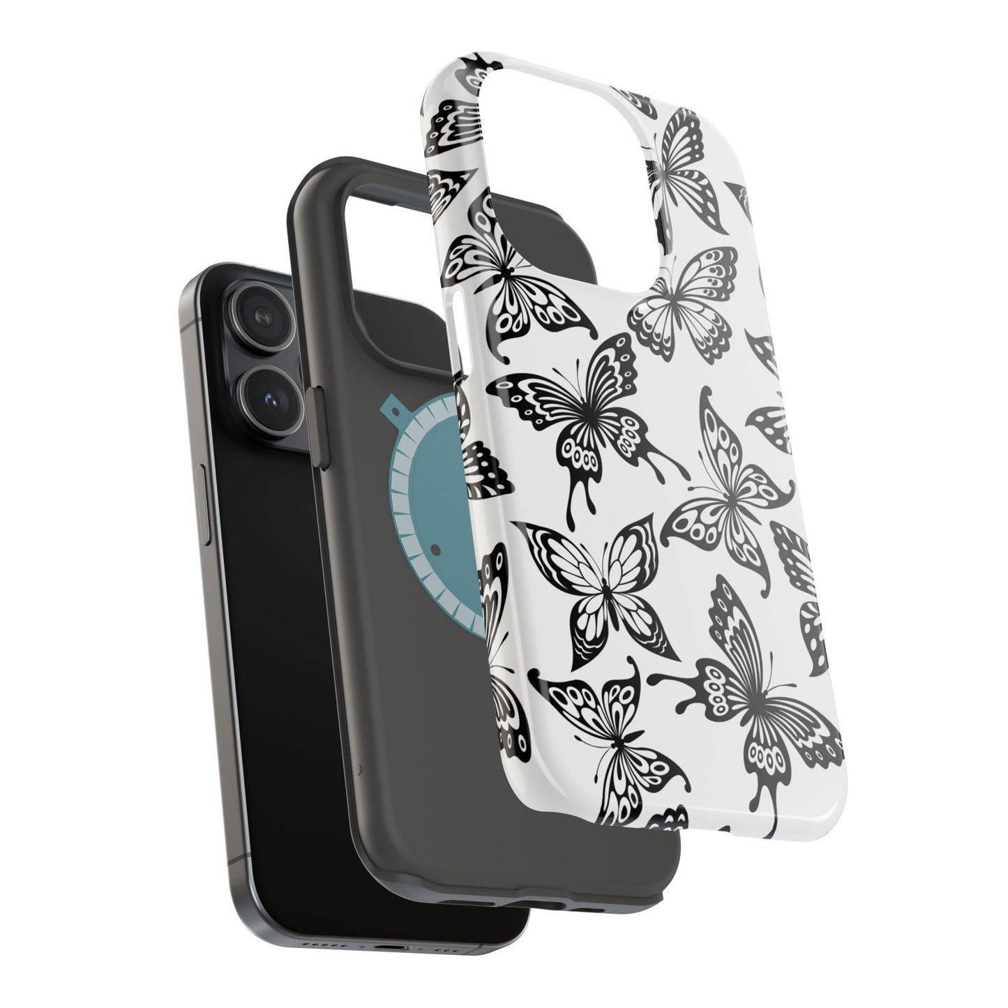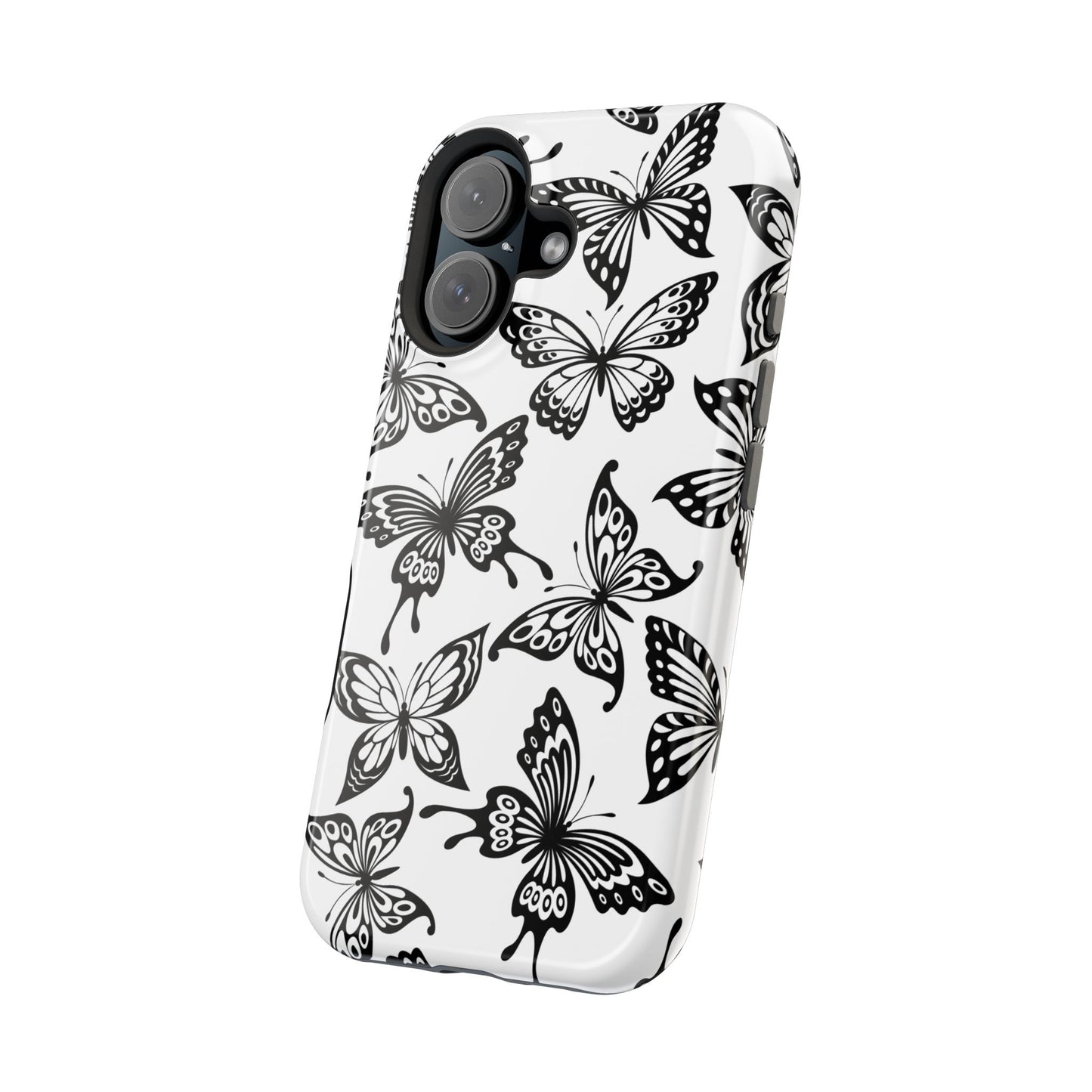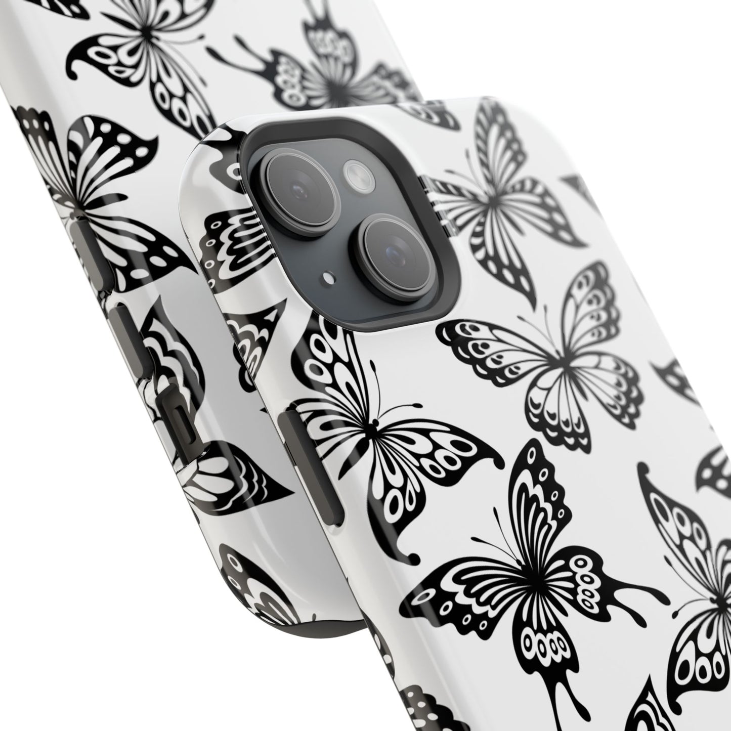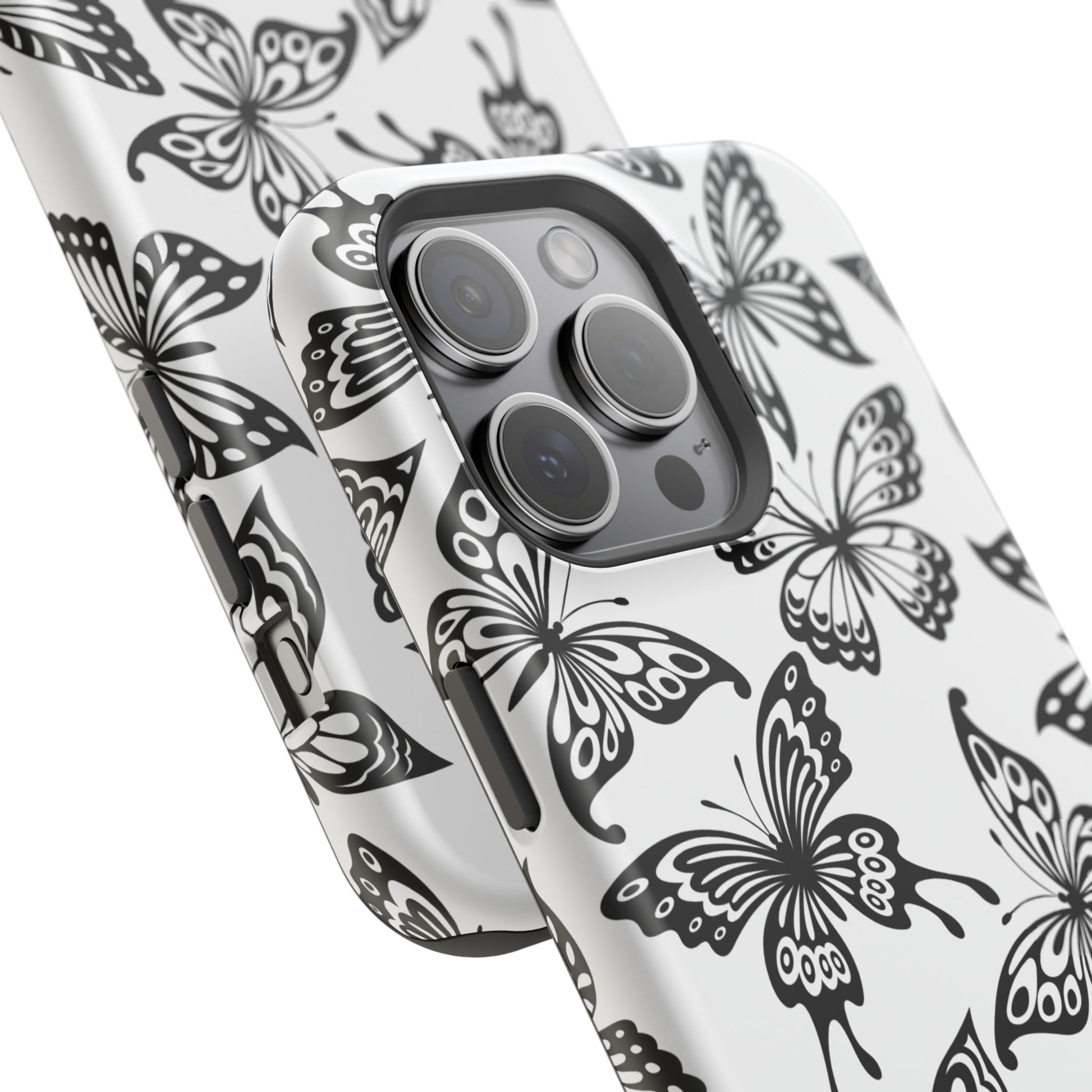 Monochrome Butterfly Pattern Tough MagSafe Case – Dual-Layer Protection with Matte Finish