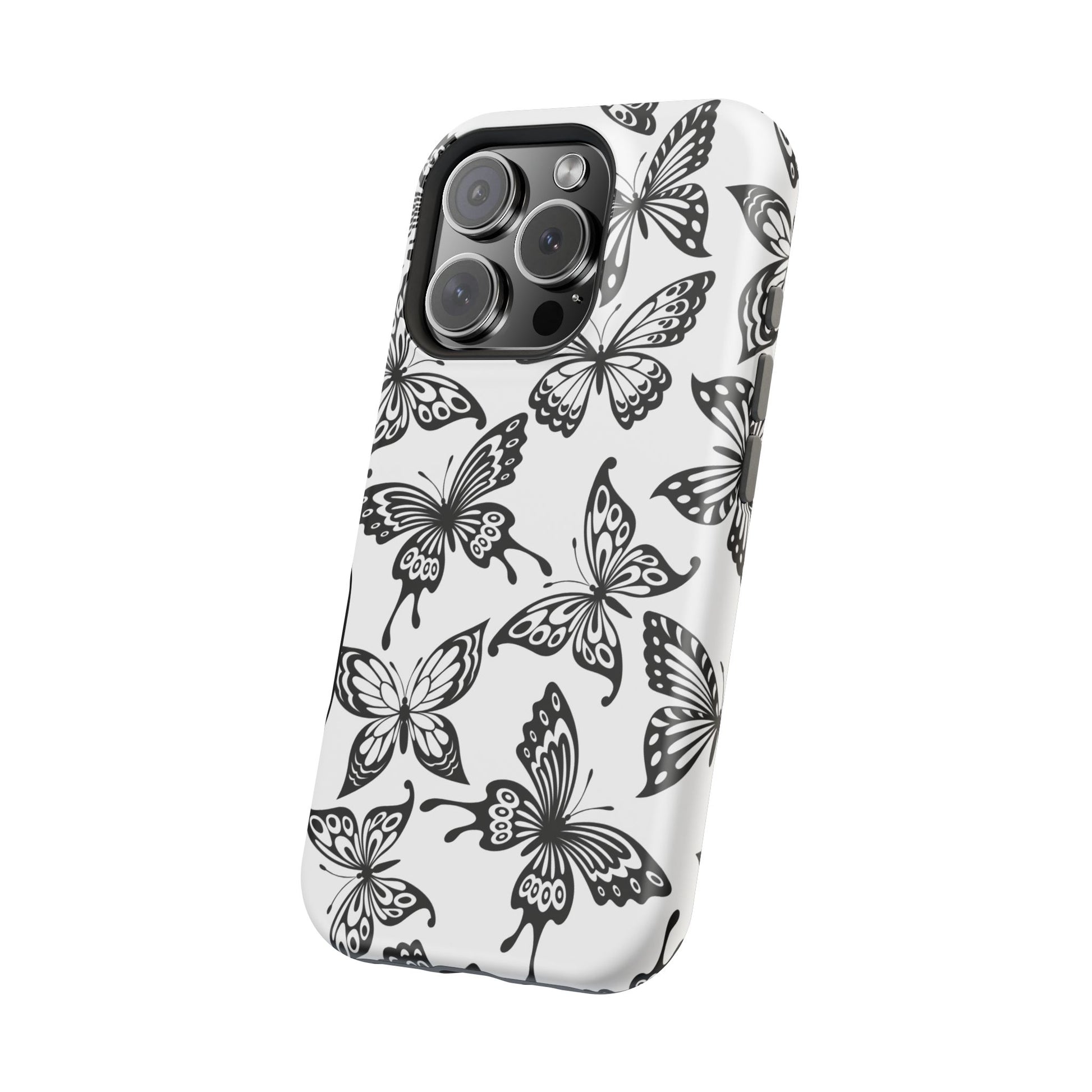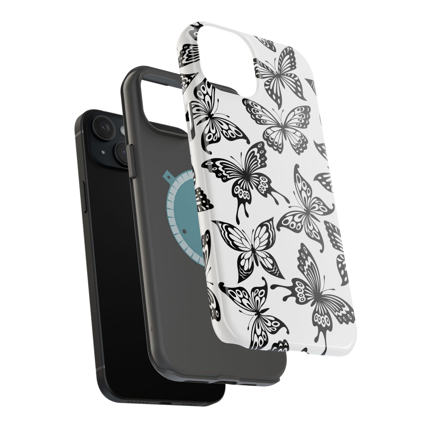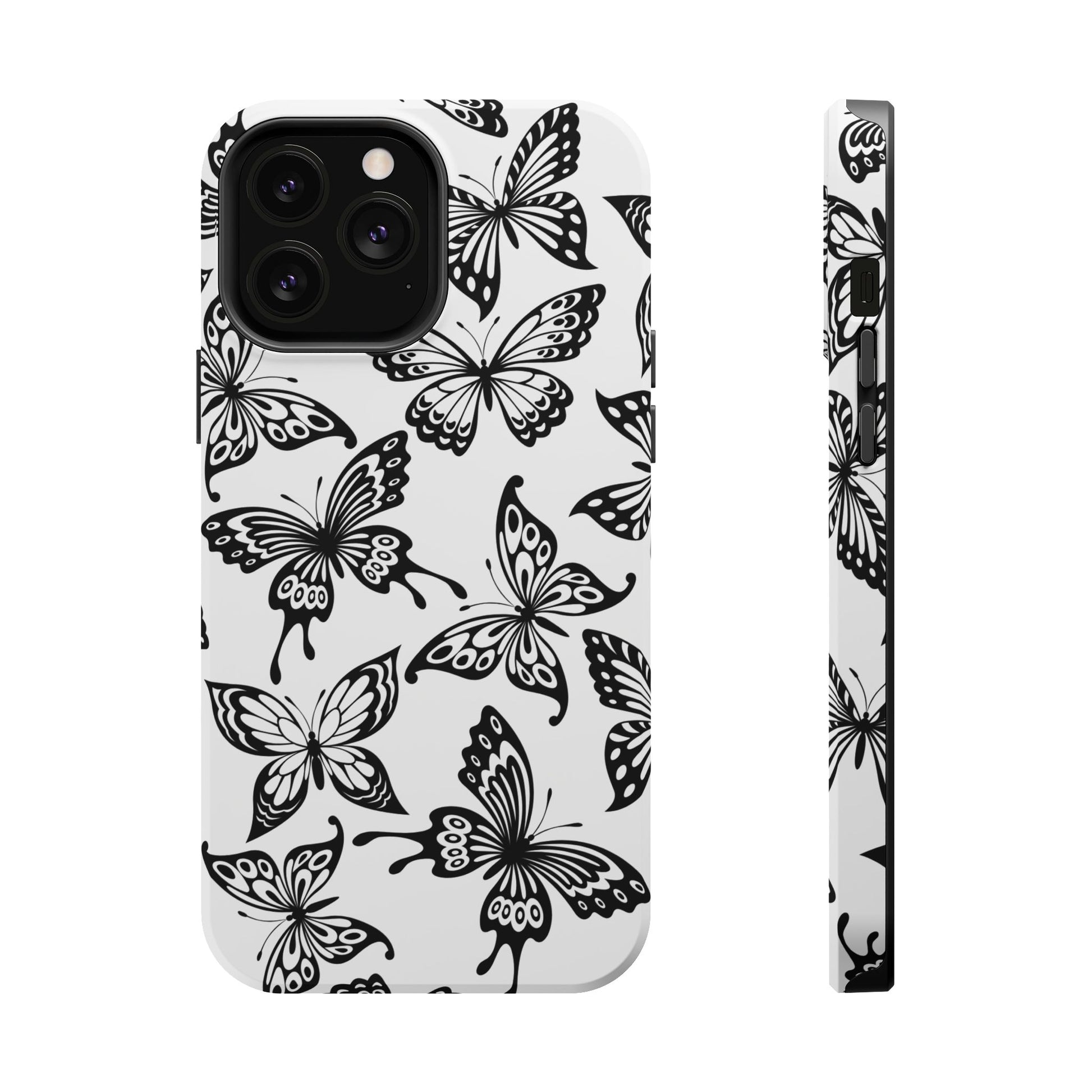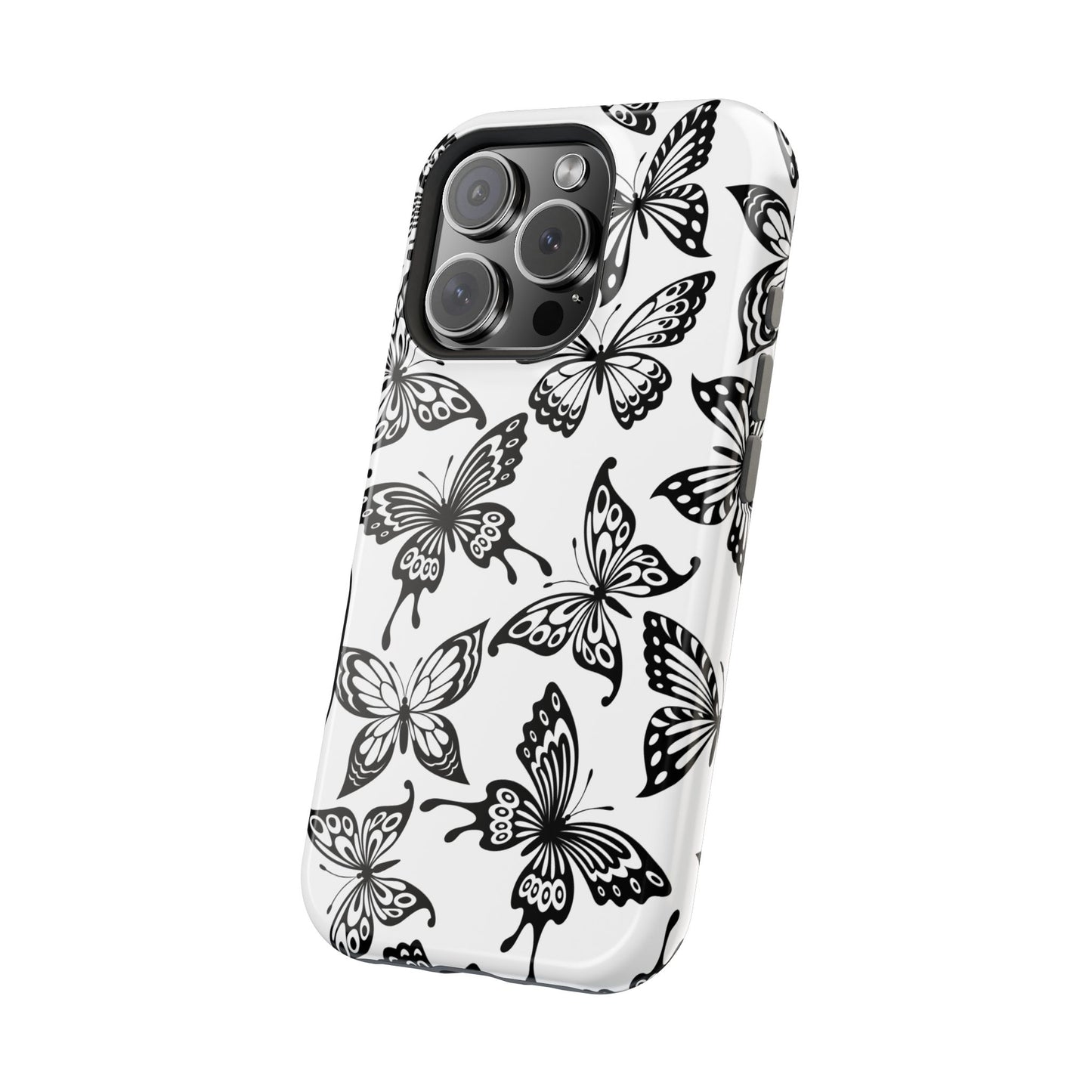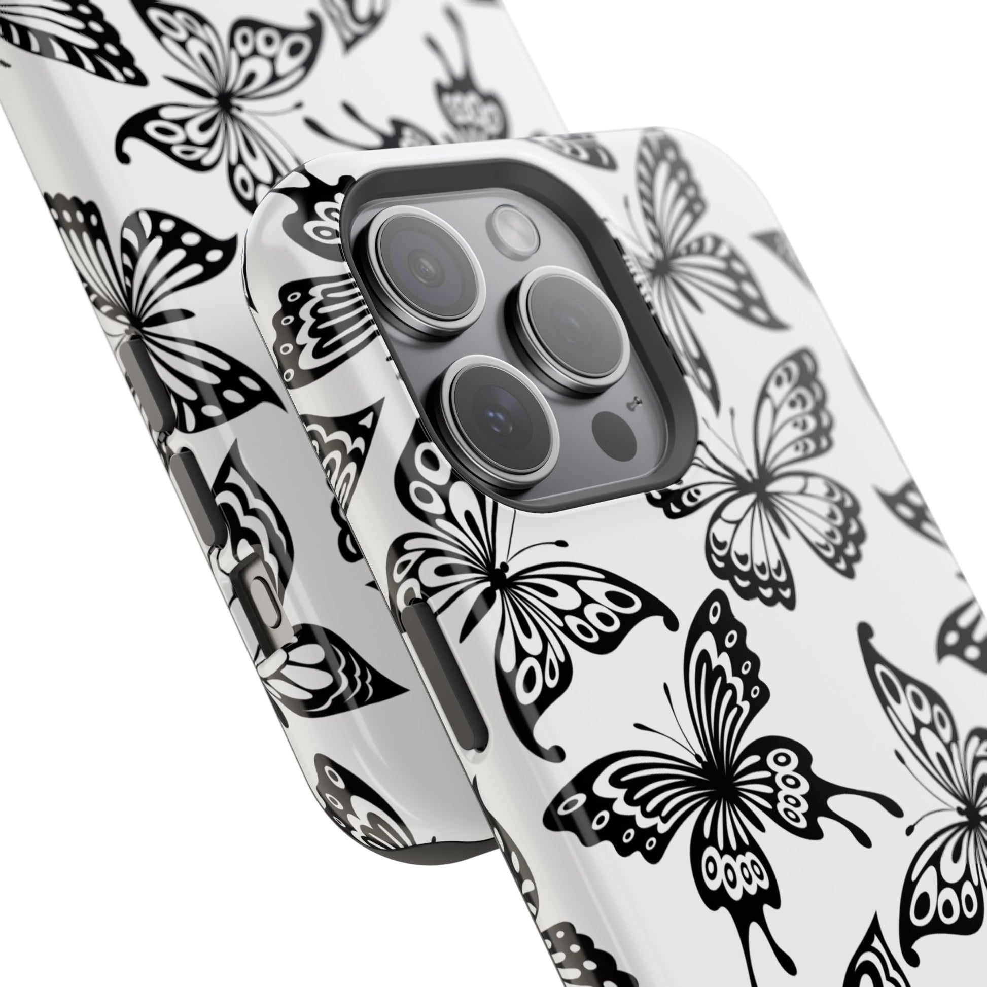Monochrome Butterfly Pattern Tough MagSafe Case – Dual-Layer Protection with Matte Finish