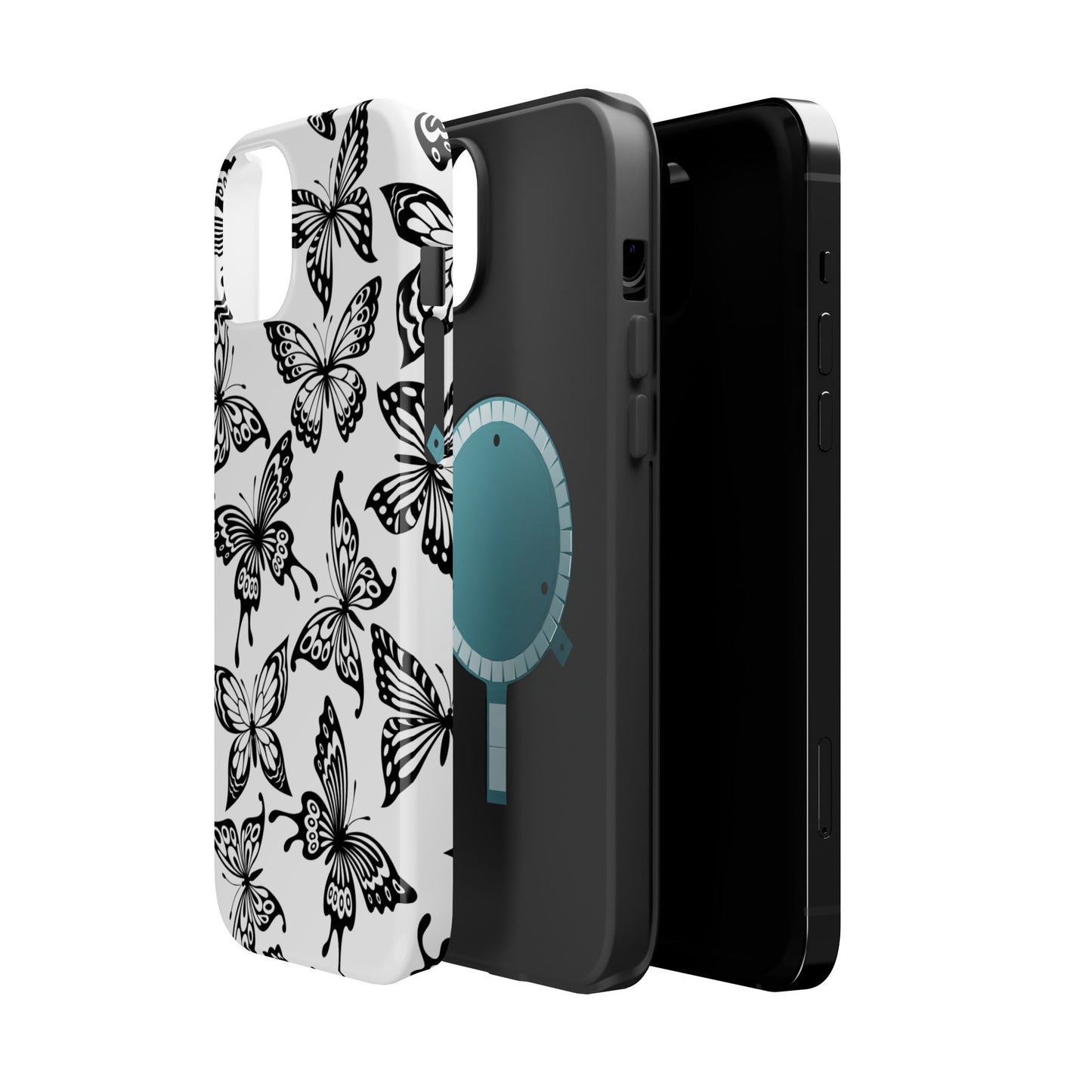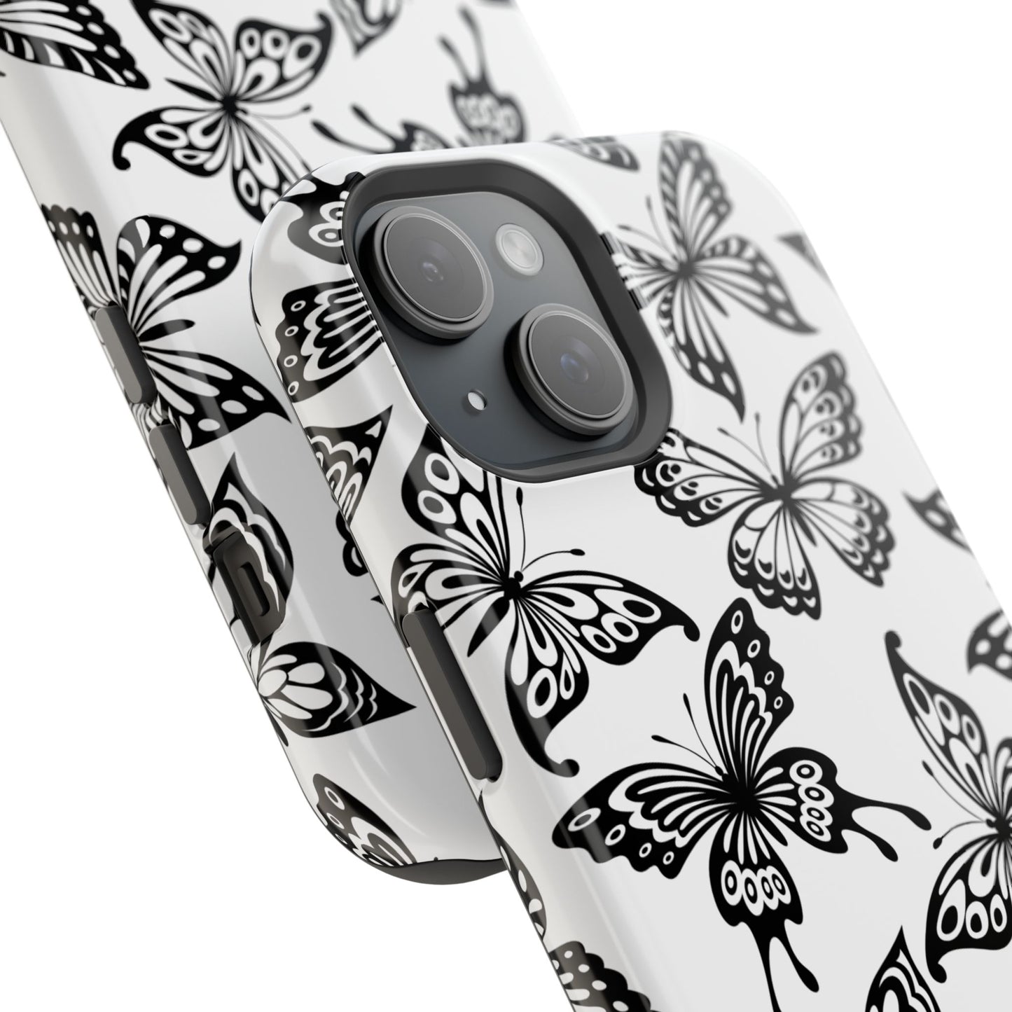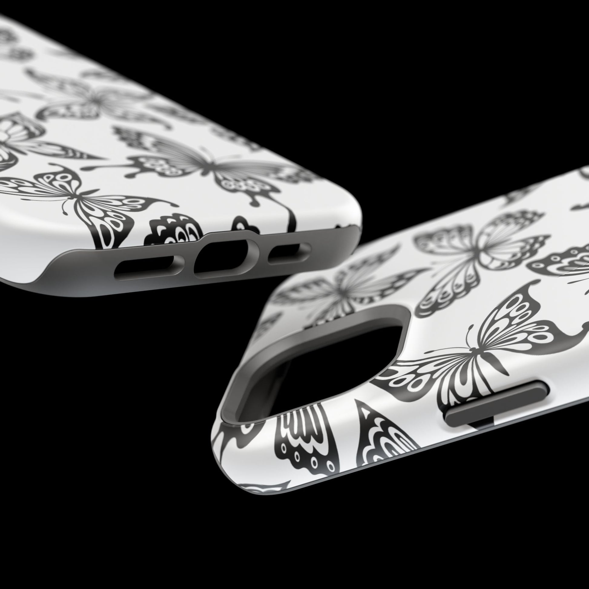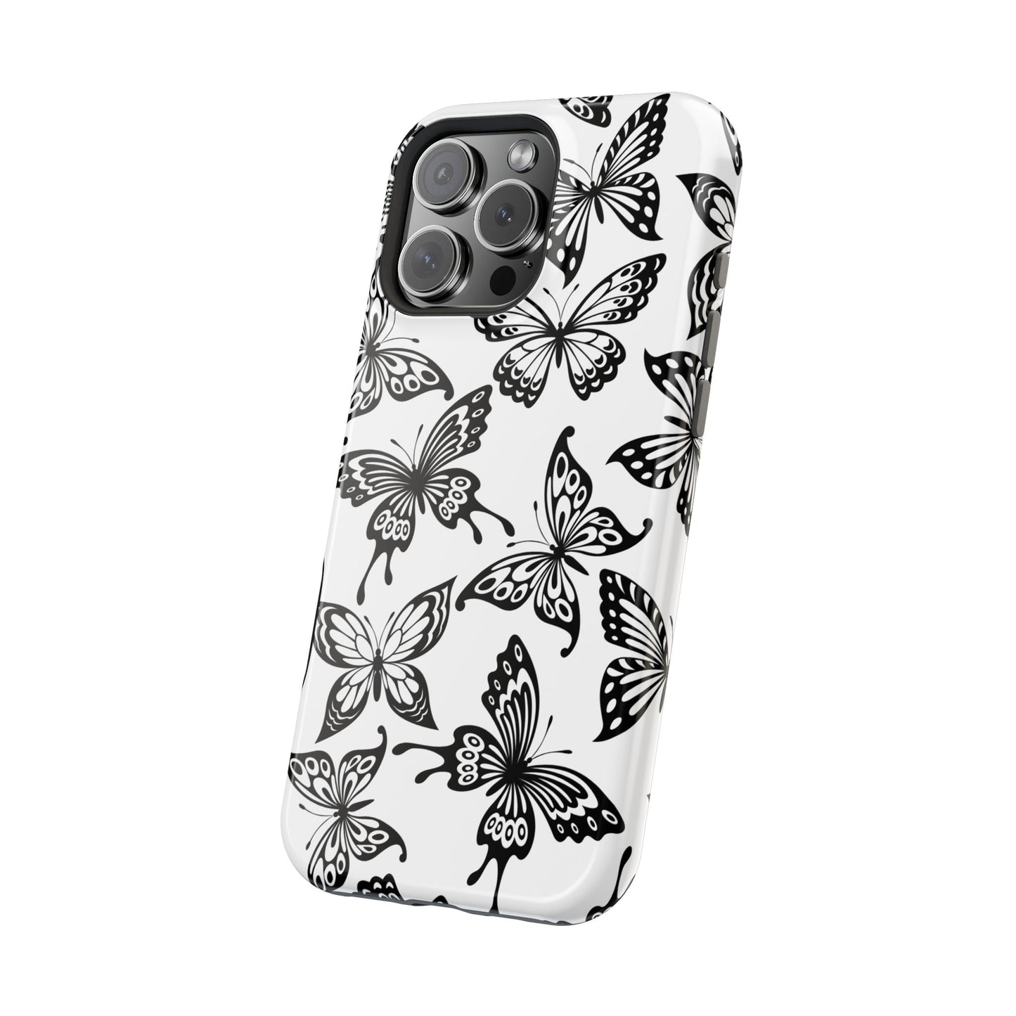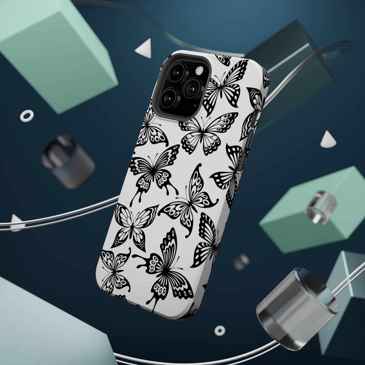 Monochrome Butterfly Pattern Tough MagSafe Case – Dual-Layer Protection with Matte Finish