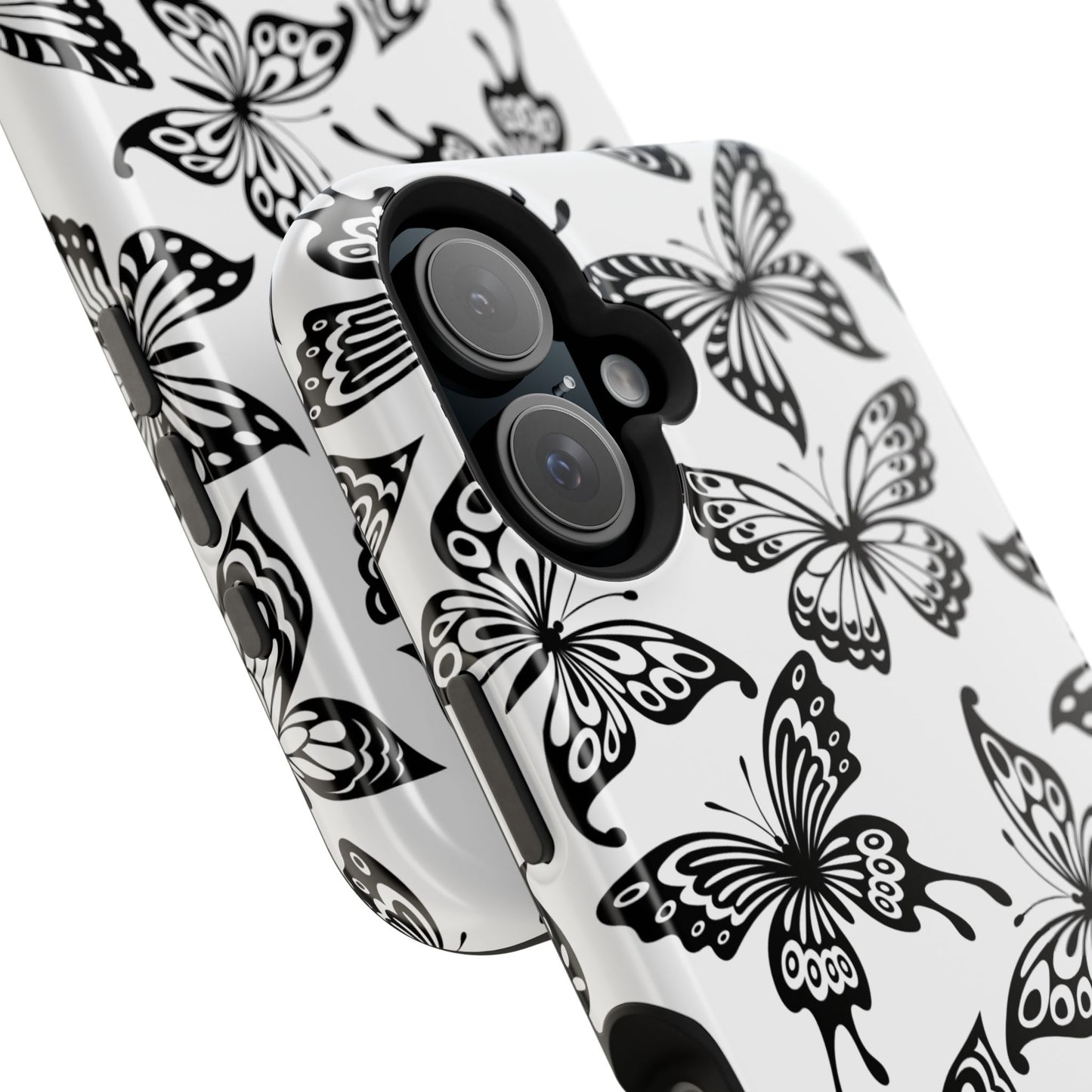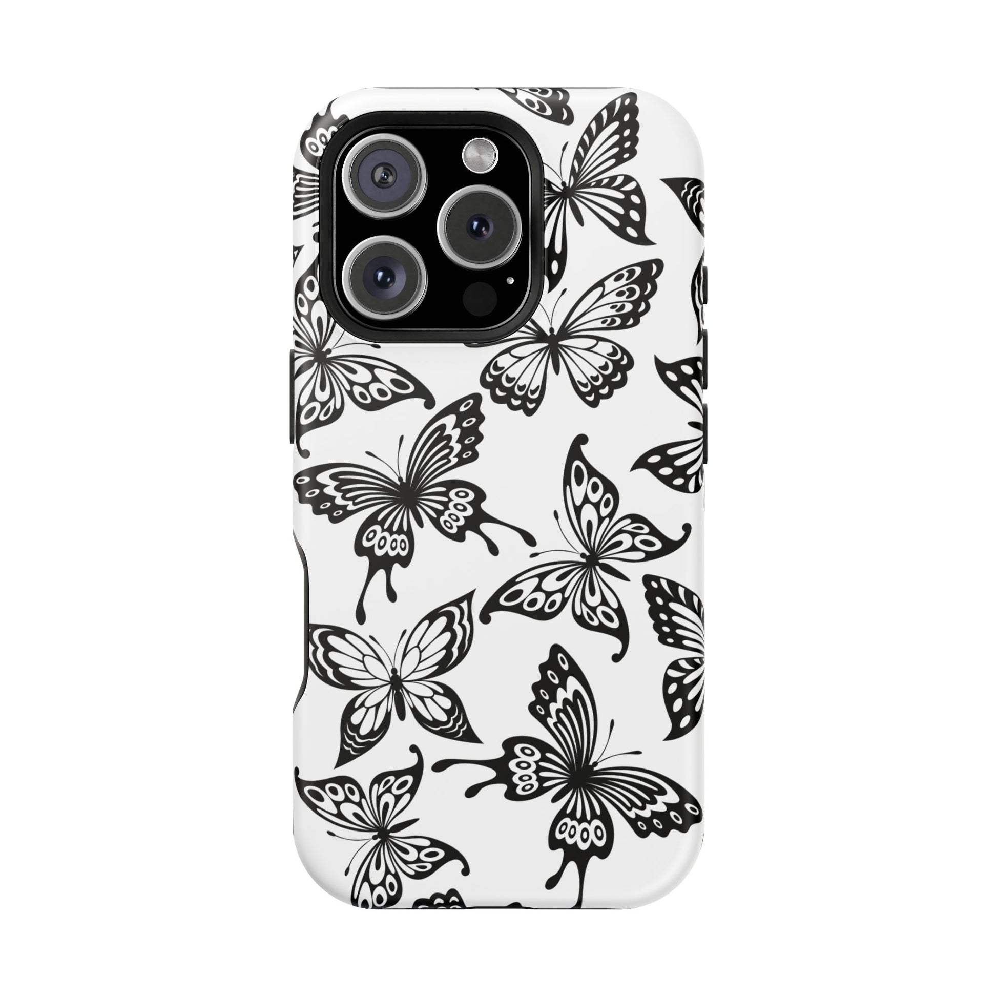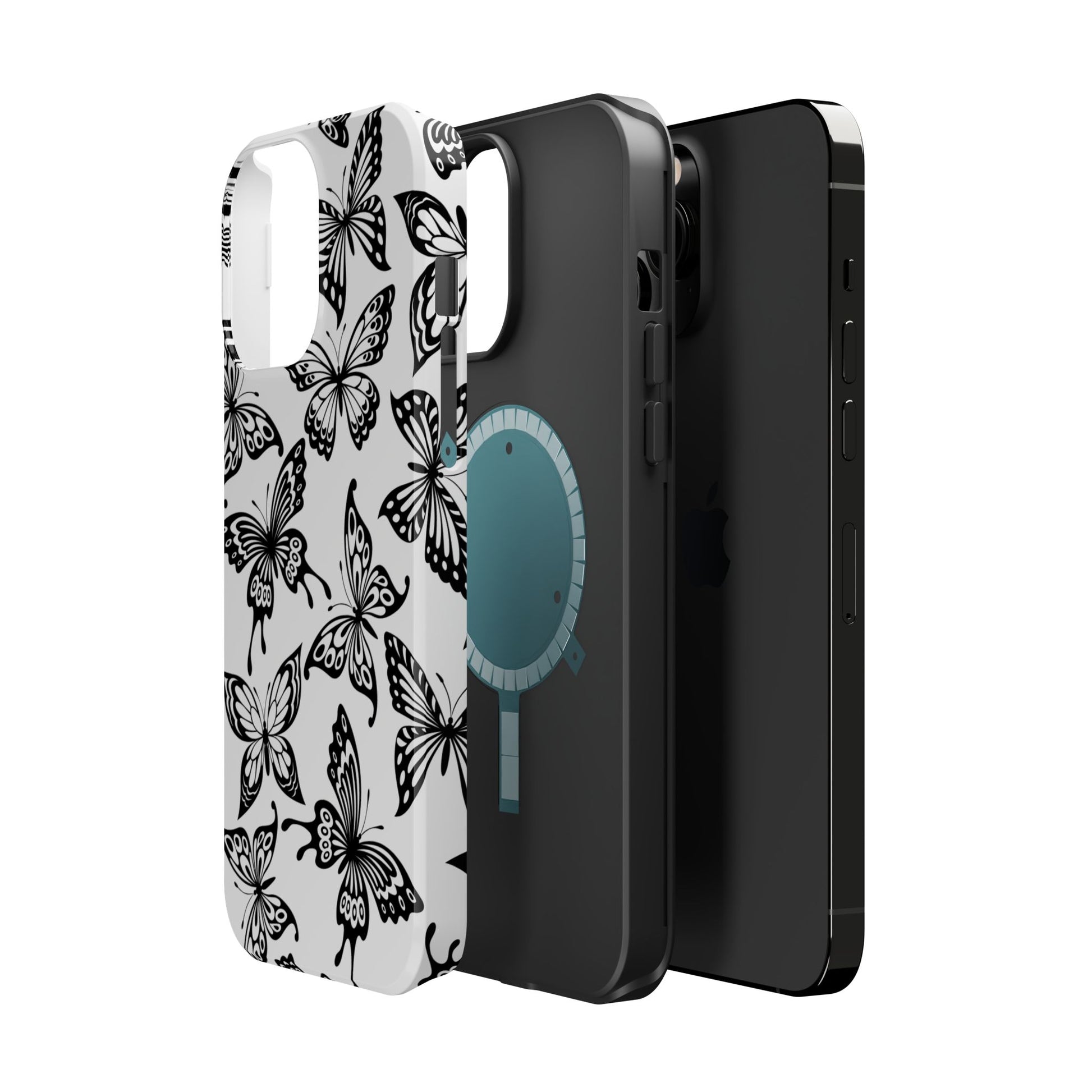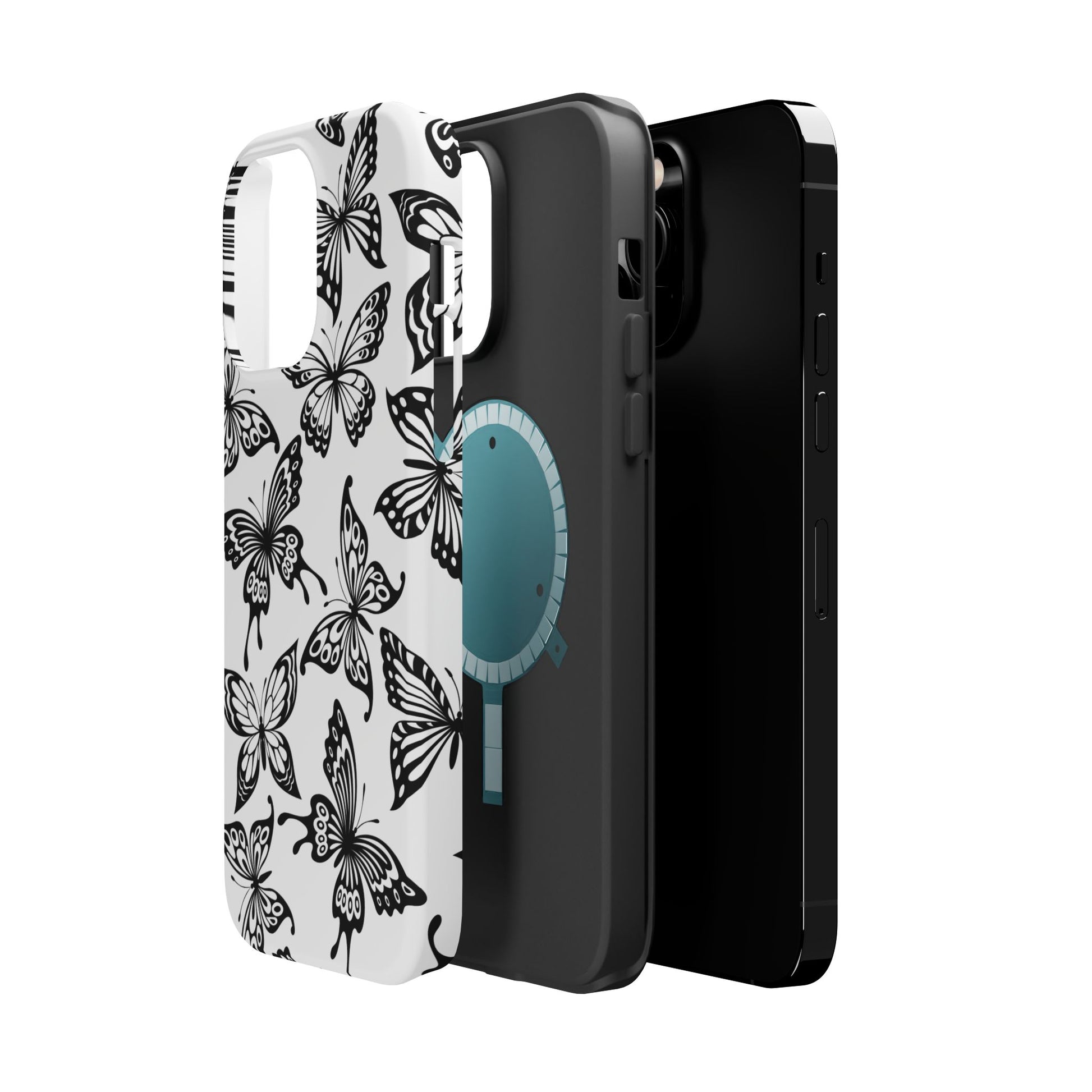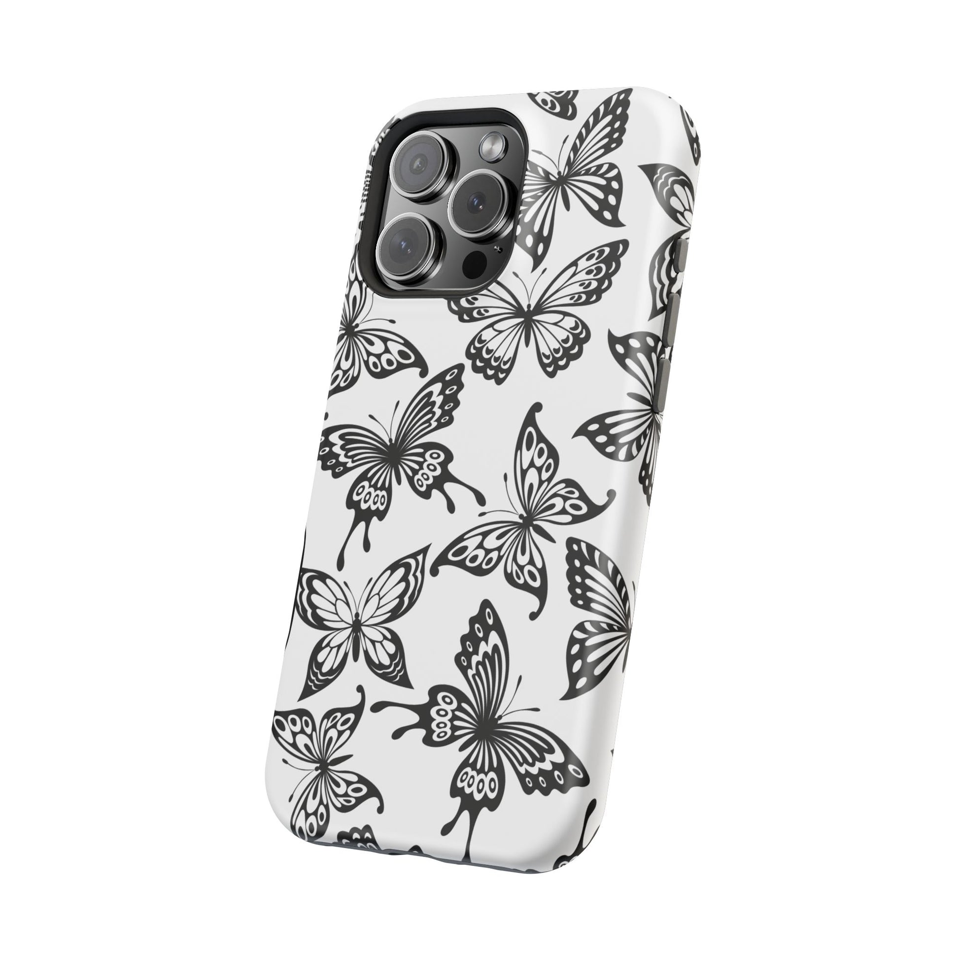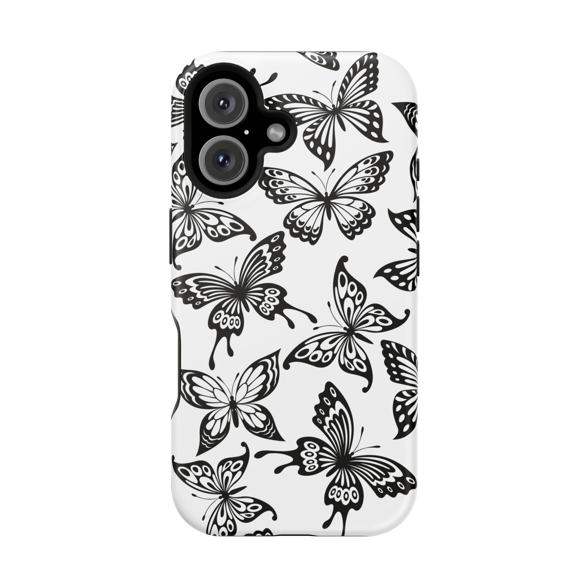 Monochrome Butterfly Pattern Tough MagSafe Case – Dual-Layer Protection with Matte Finish