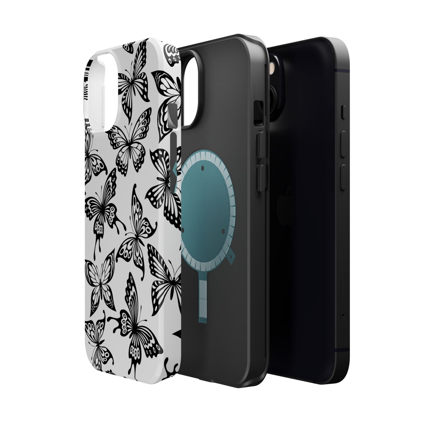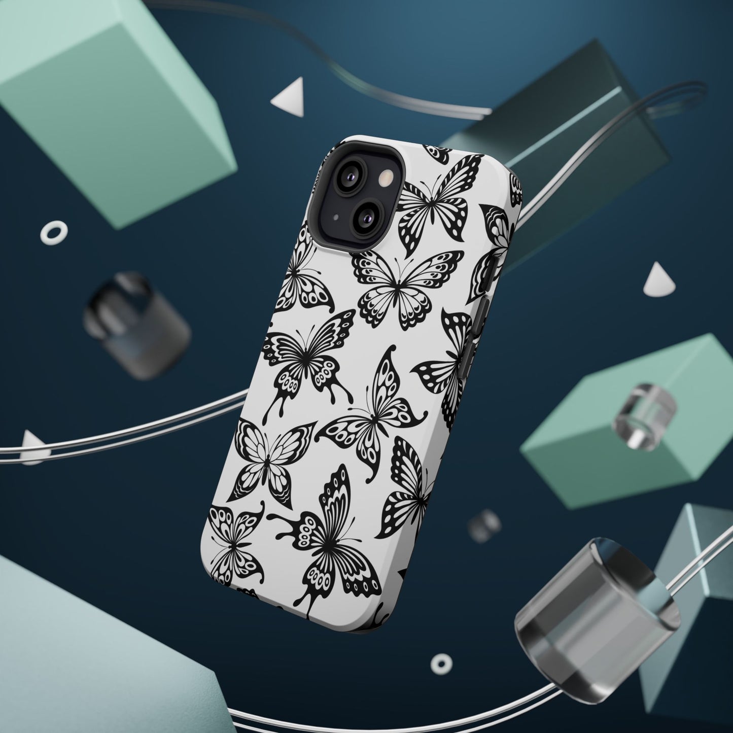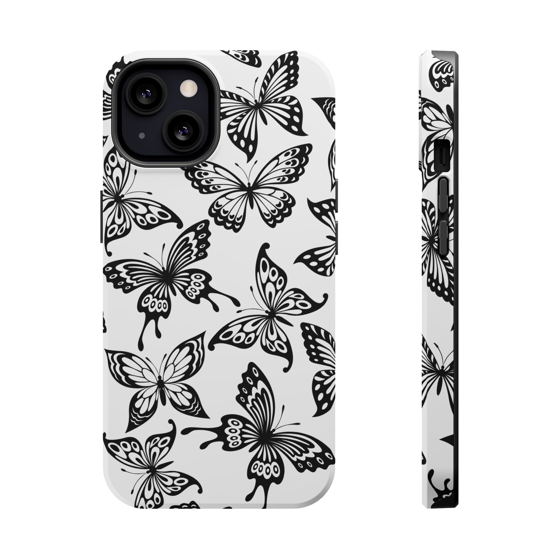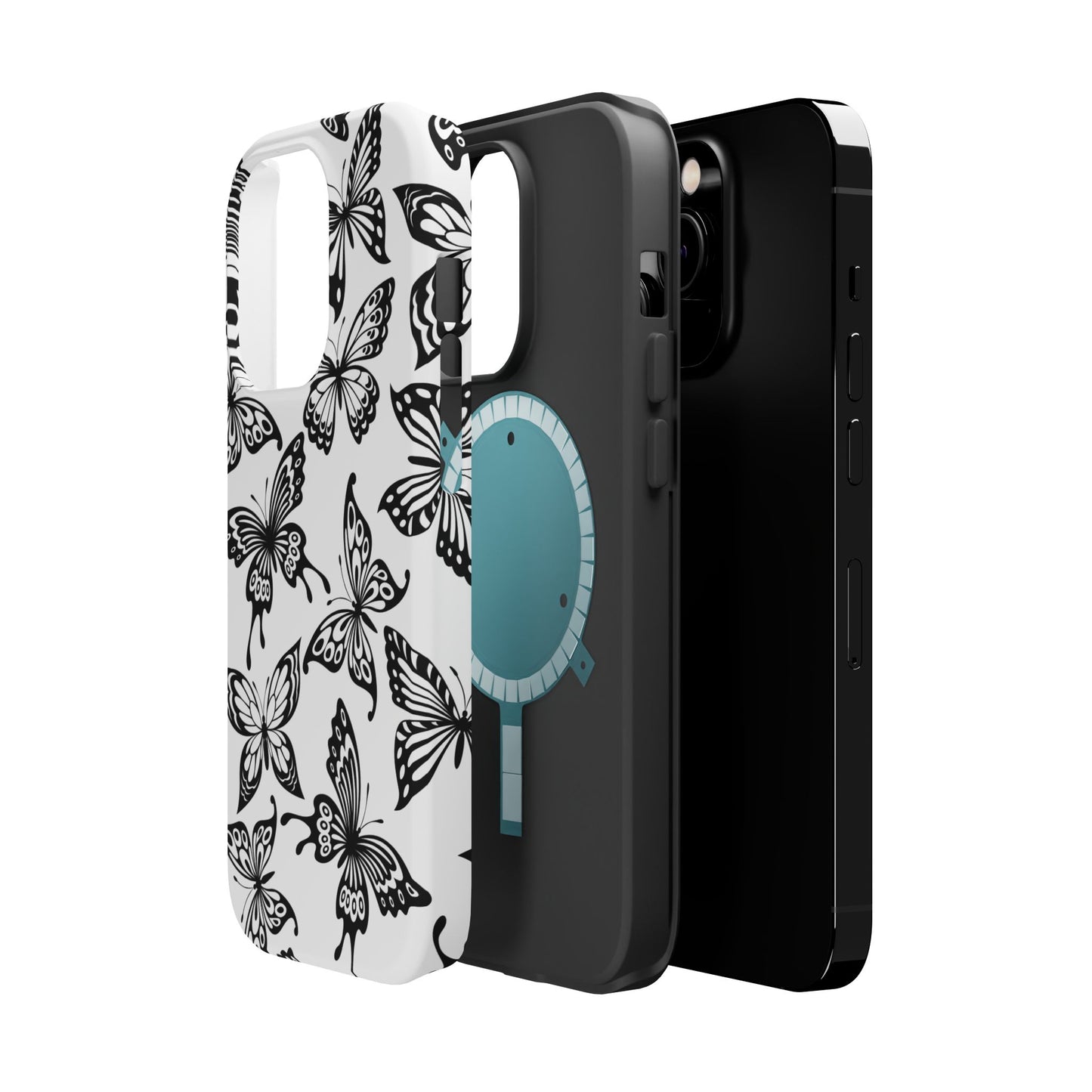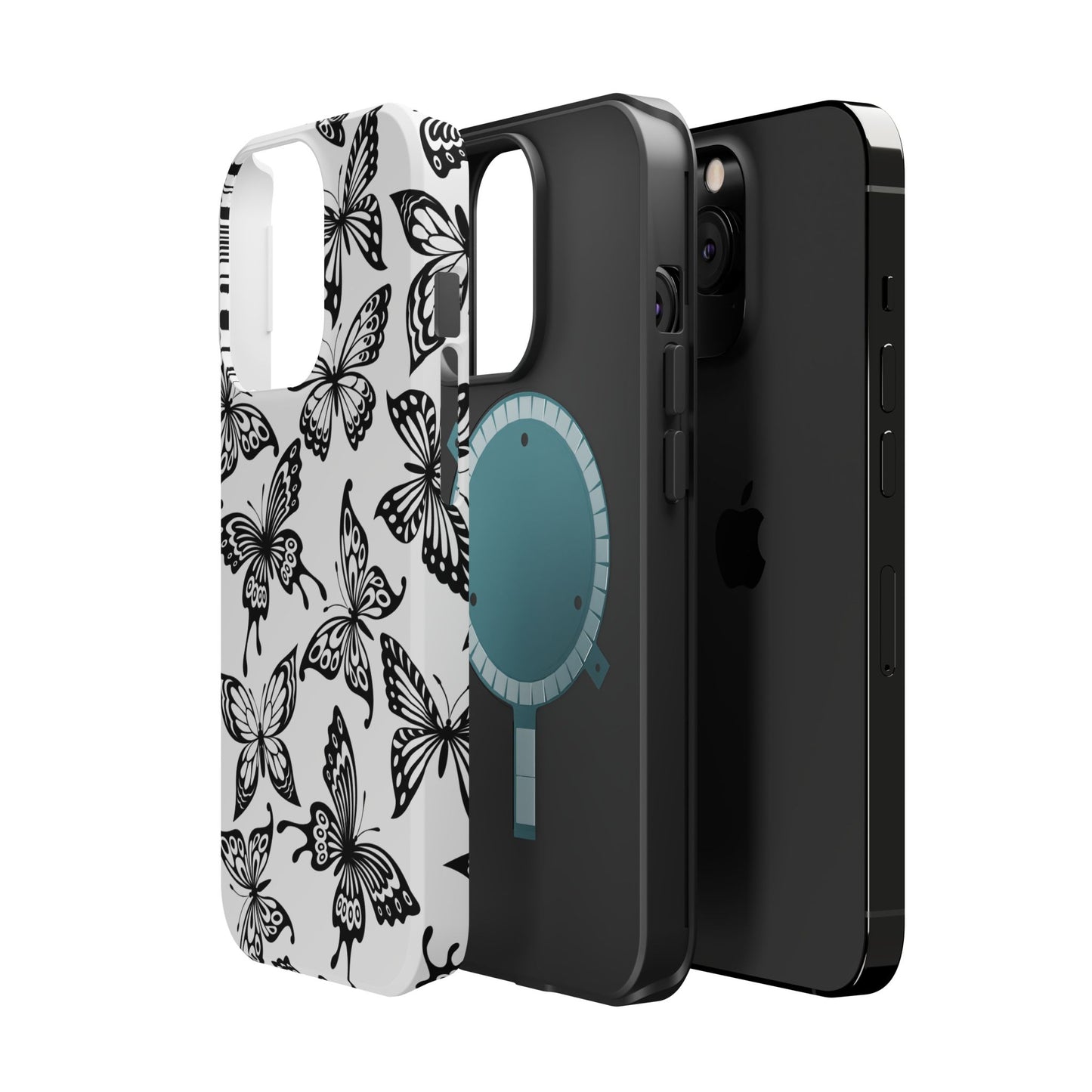 Monochrome Butterfly Pattern Tough MagSafe Case – Dual-Layer Protection with Matte Finish