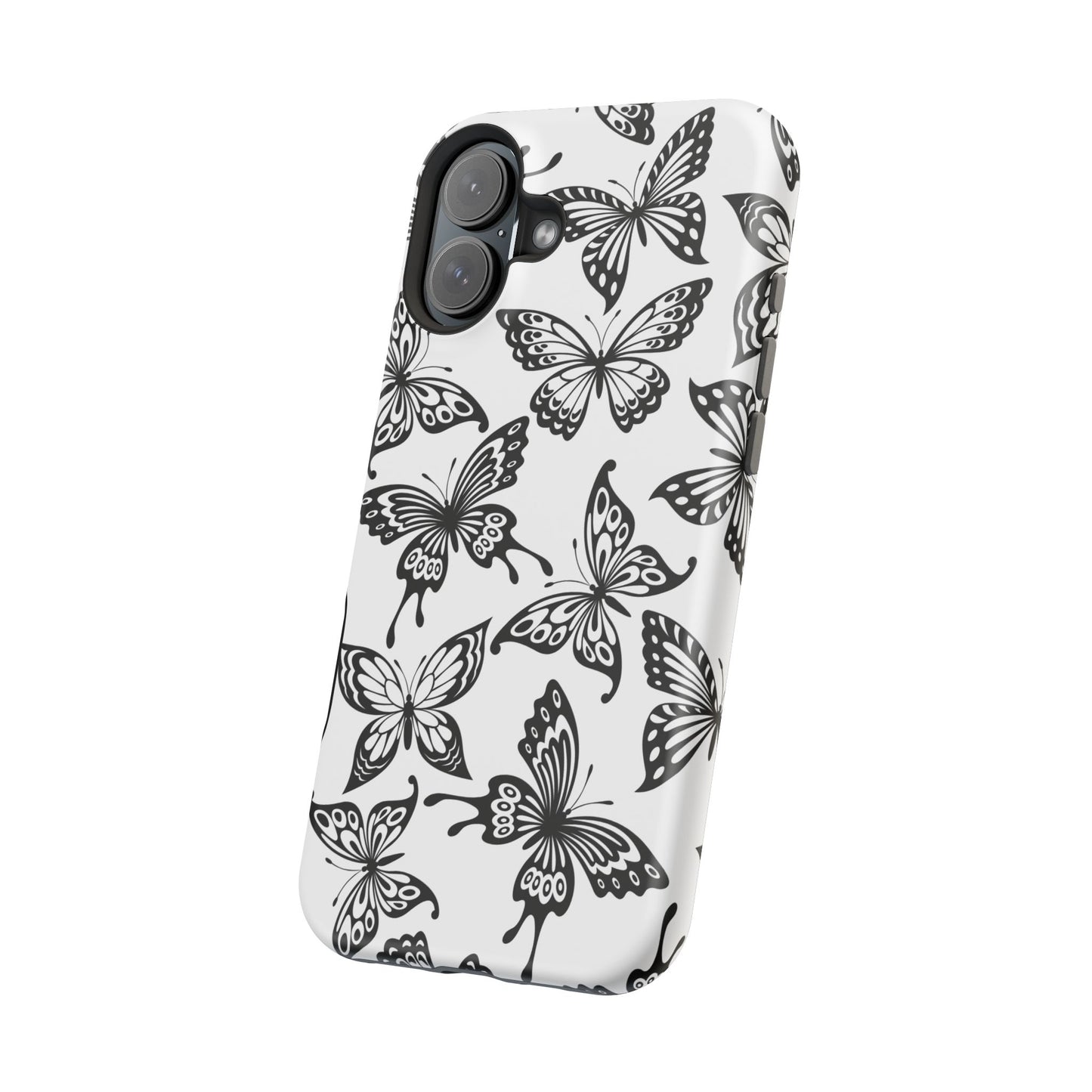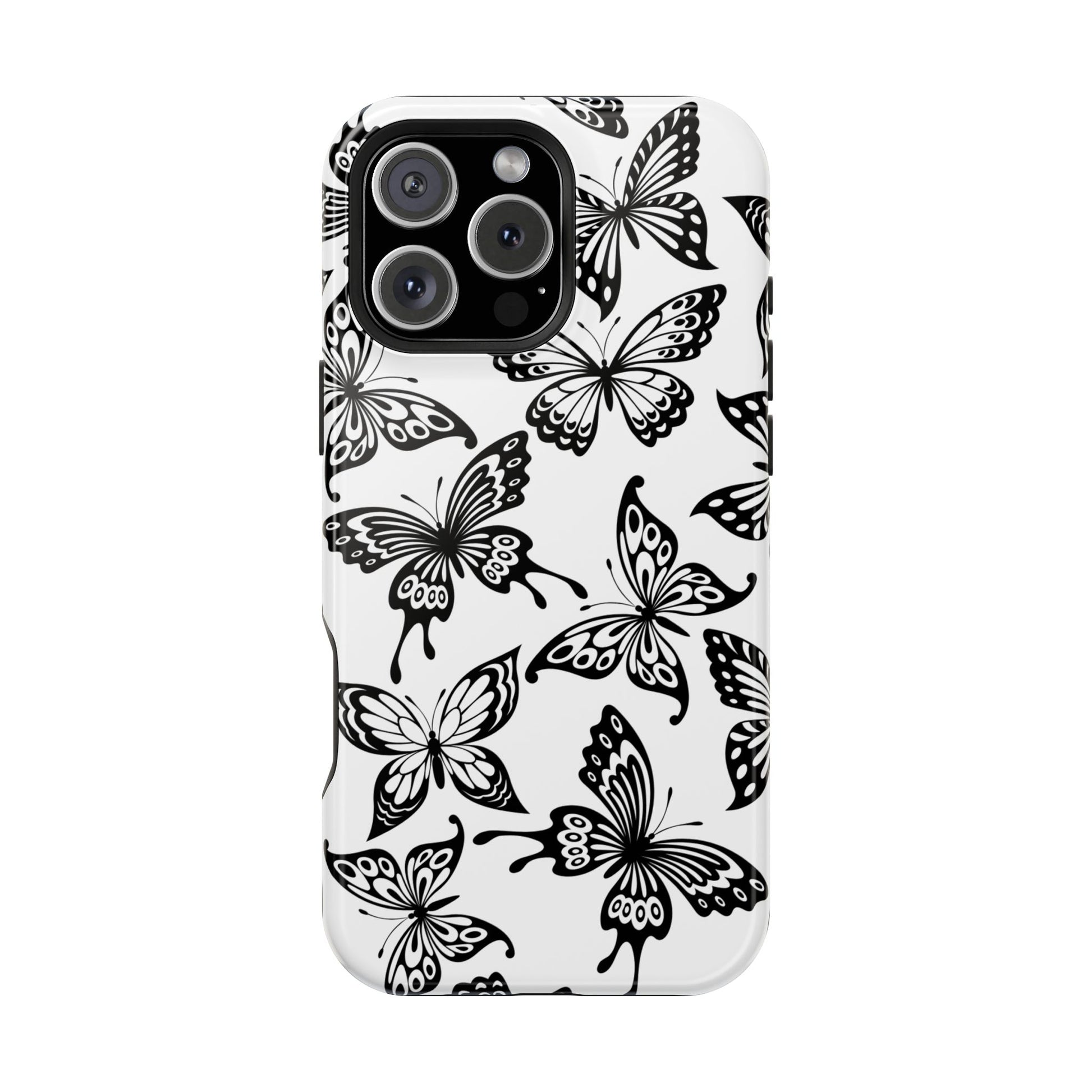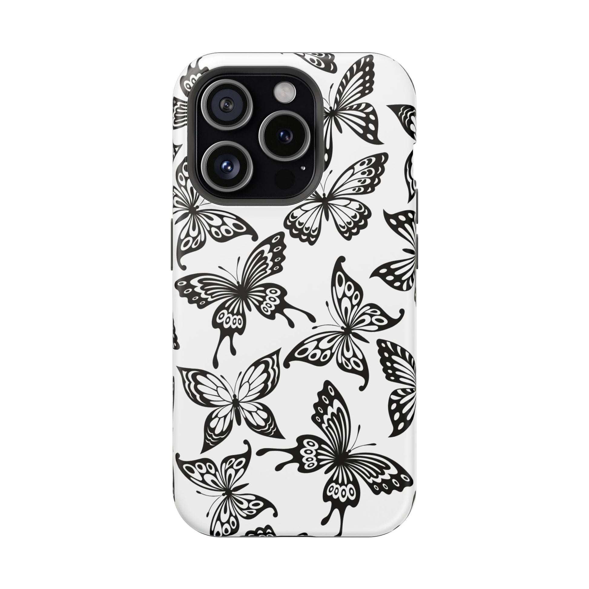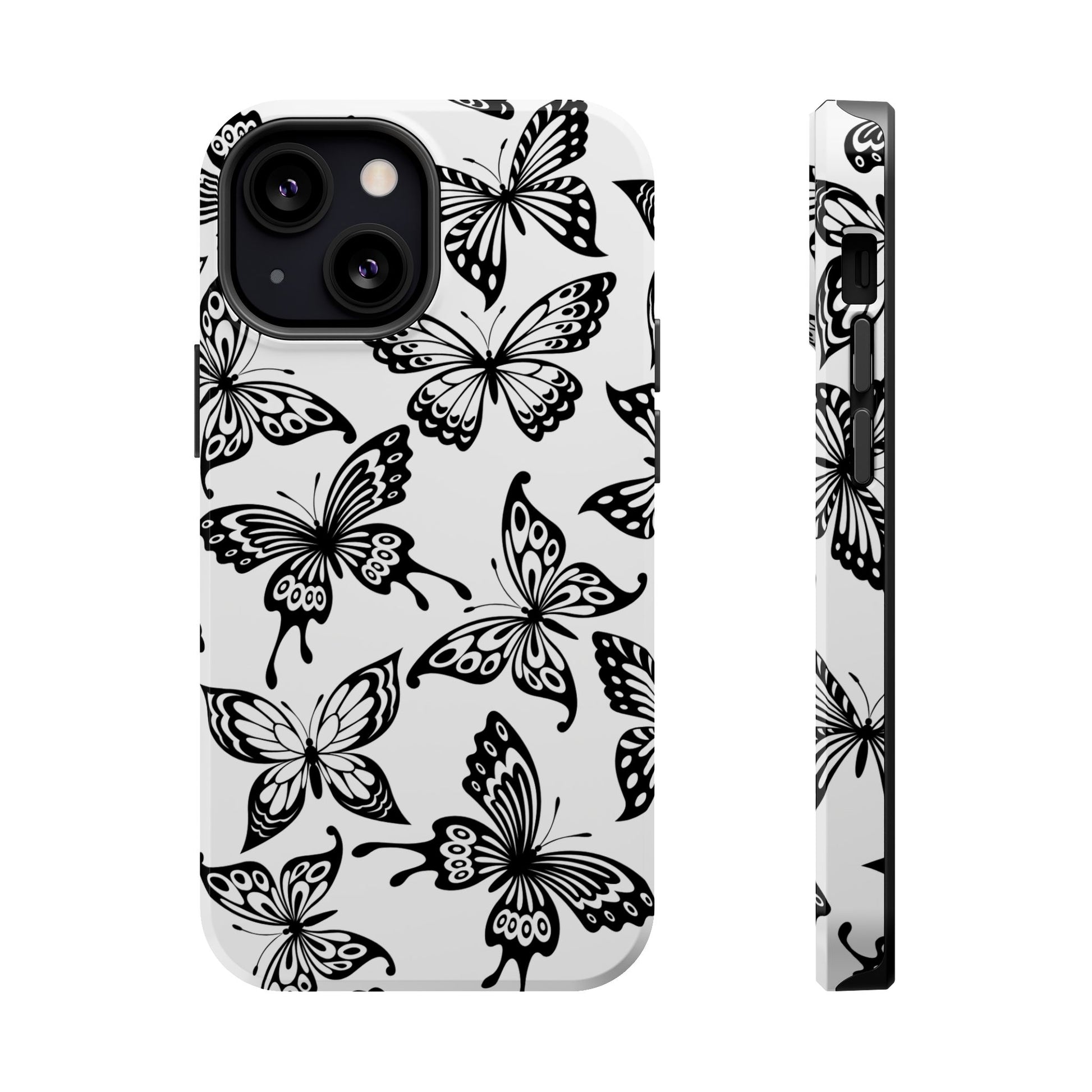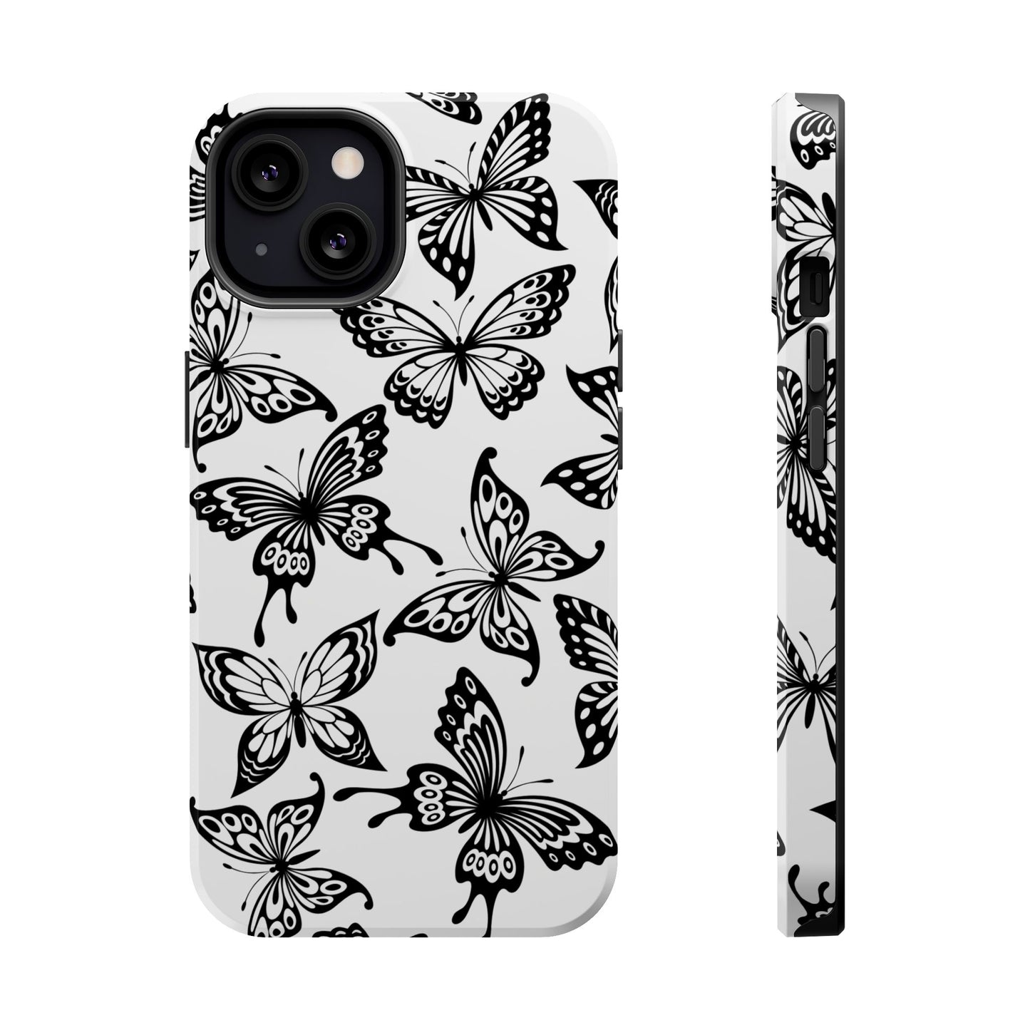 Monochrome Butterfly Pattern Tough MagSafe Case – Dual-Layer Protection with Matte Finish