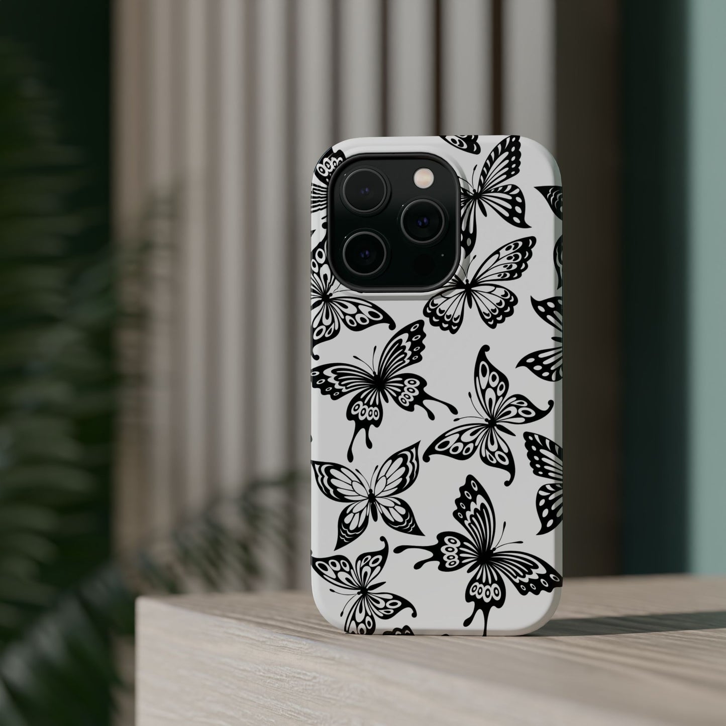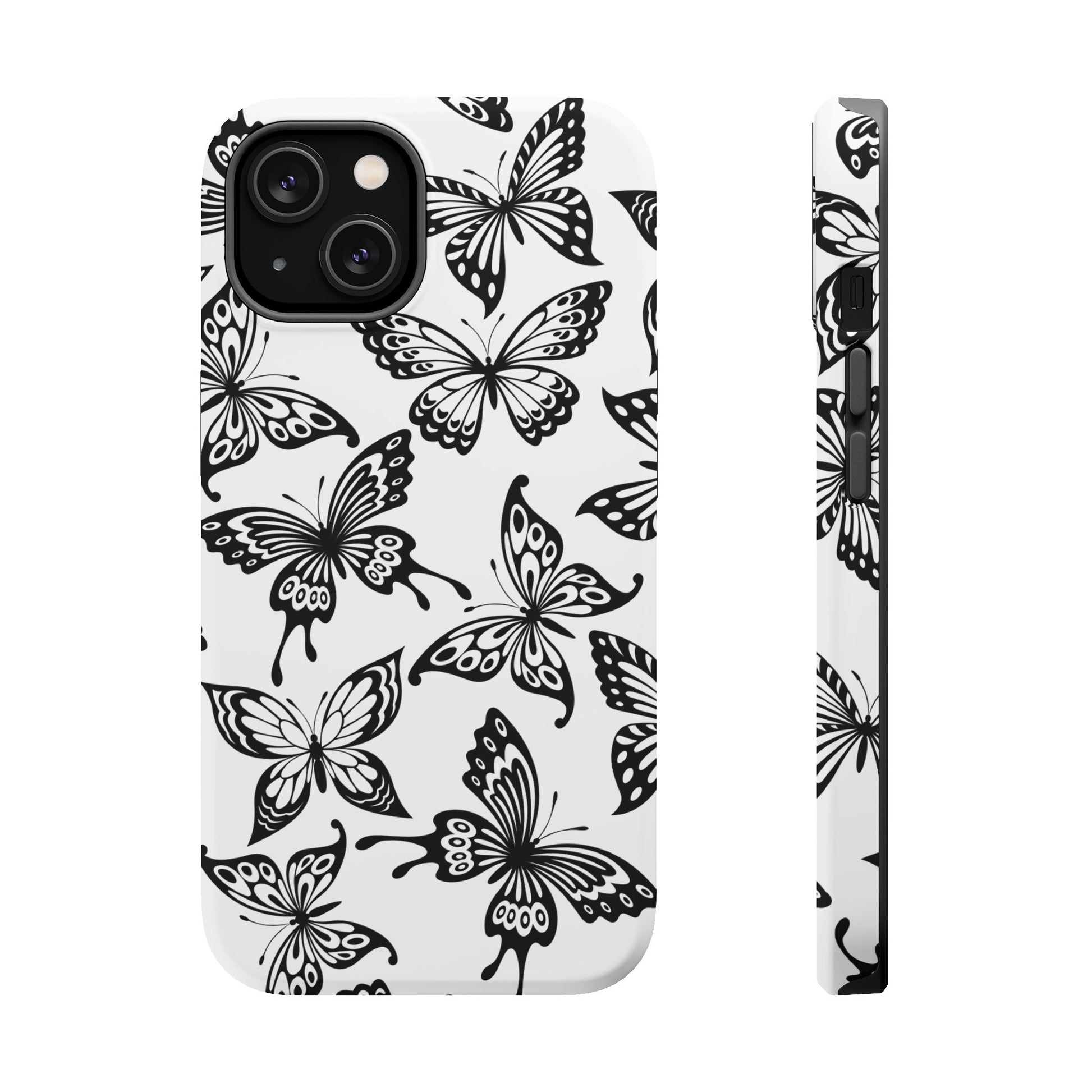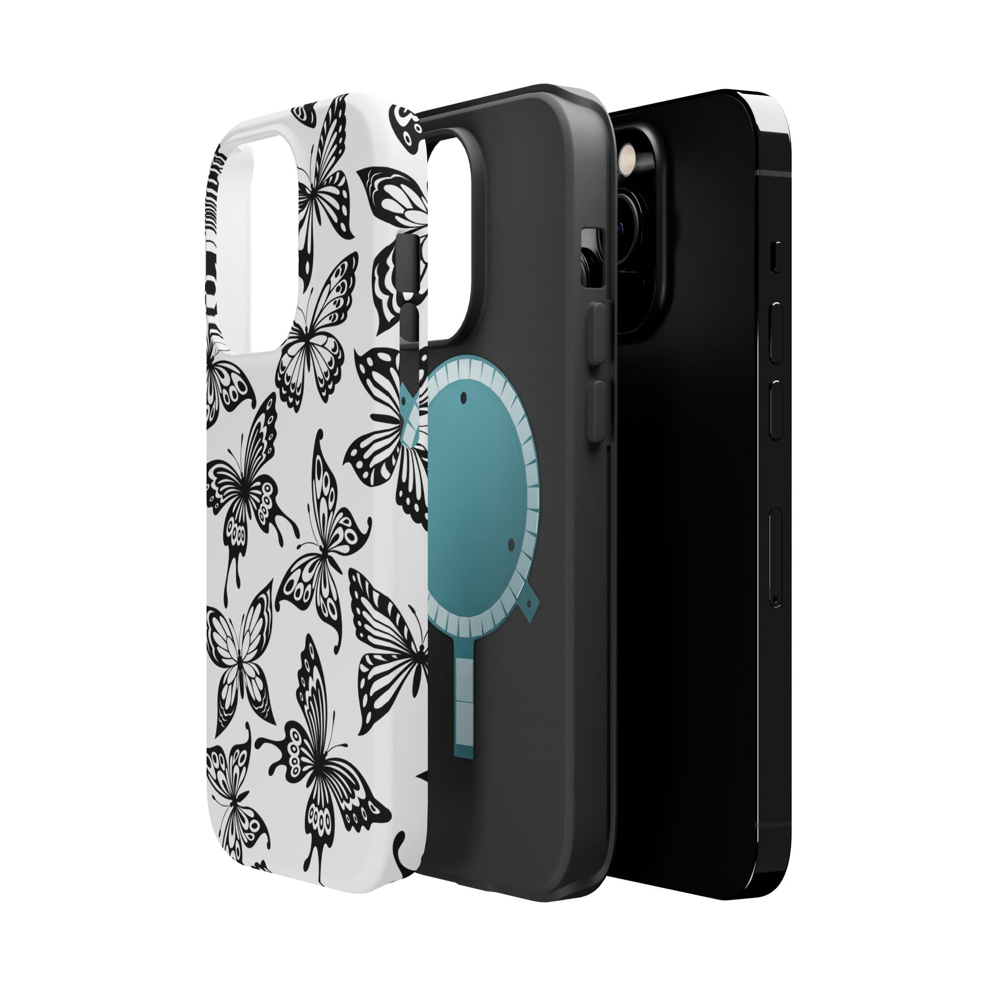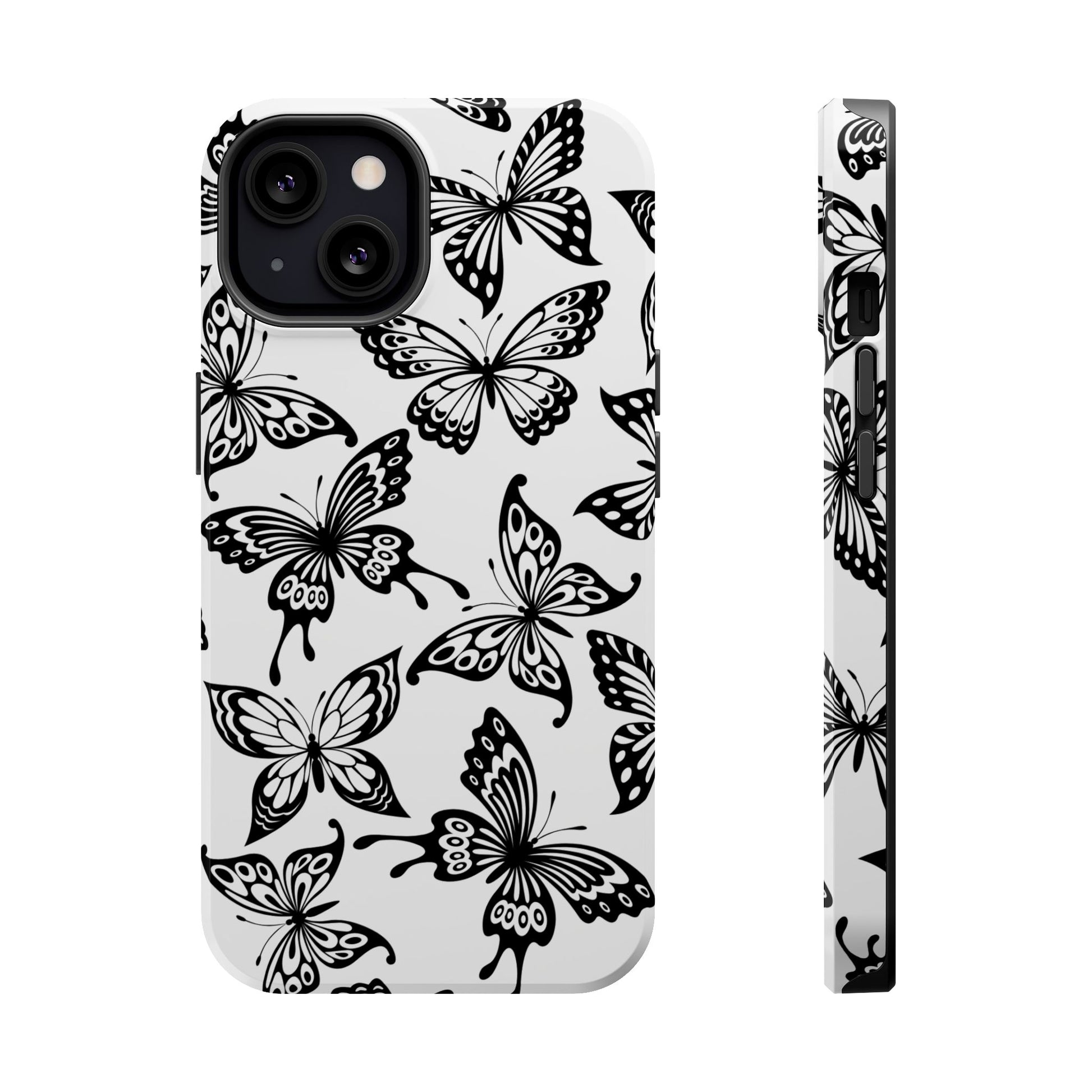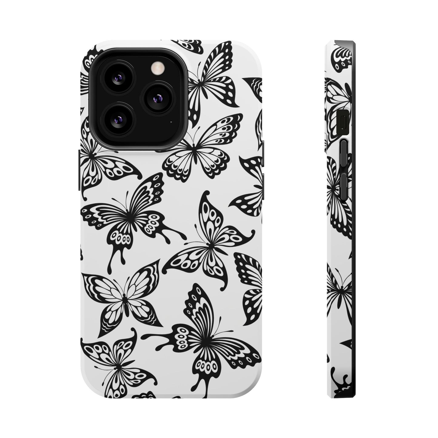 Monochrome Butterfly Pattern Tough MagSafe Case – Dual-Layer Protection with Matte Finish