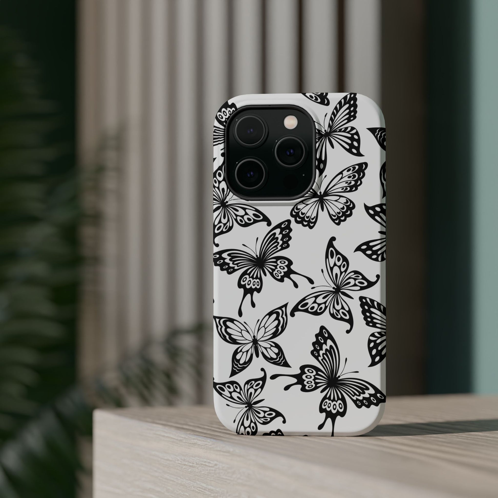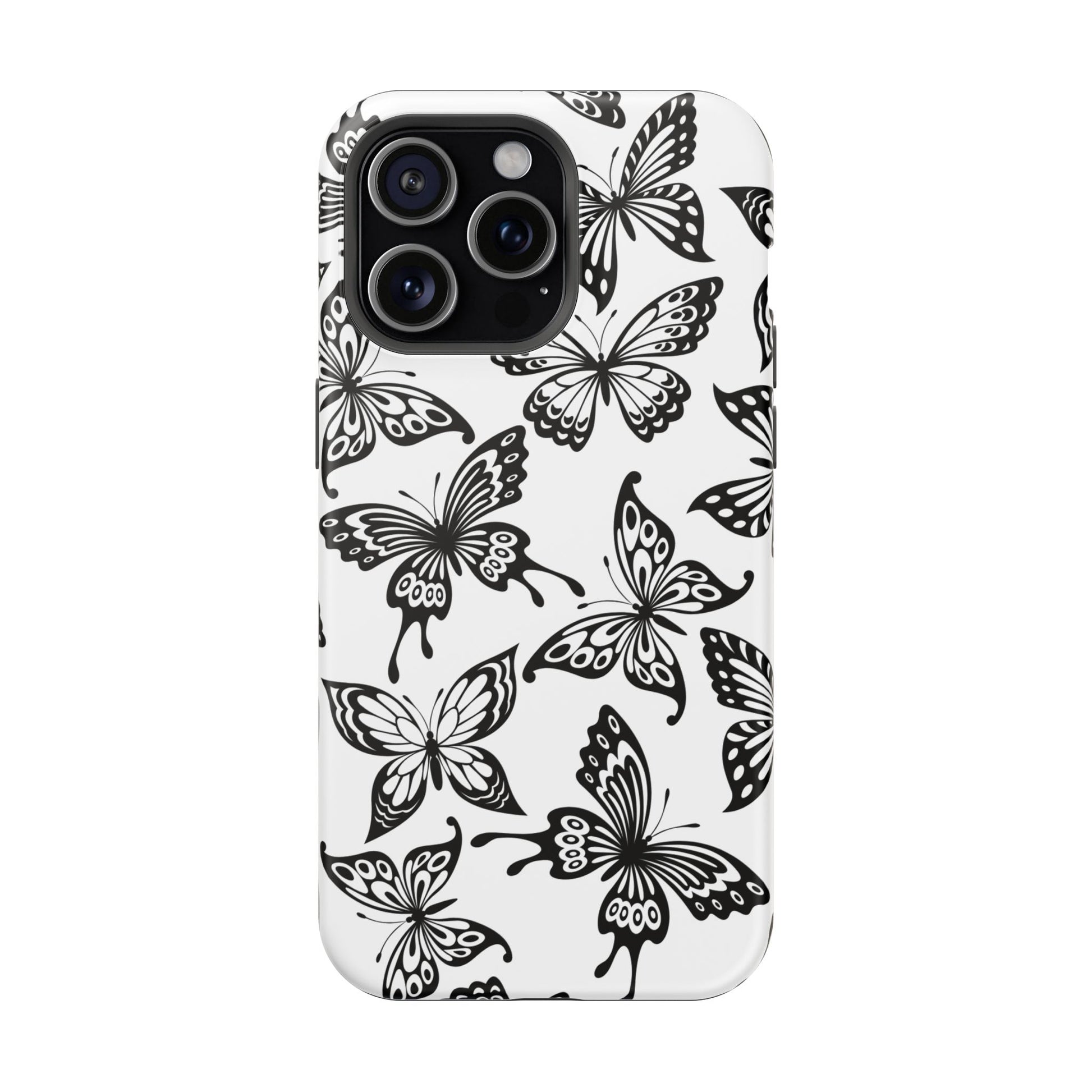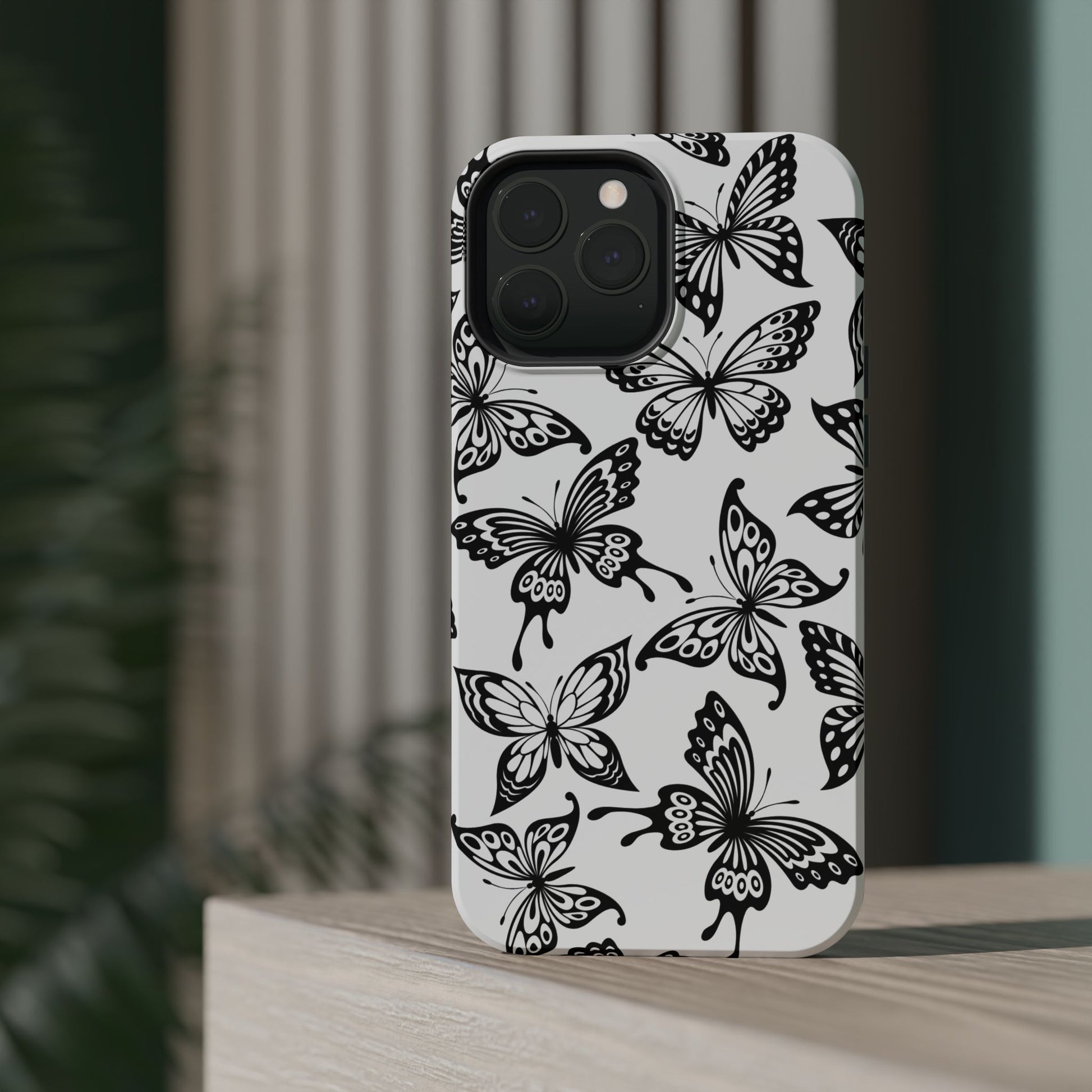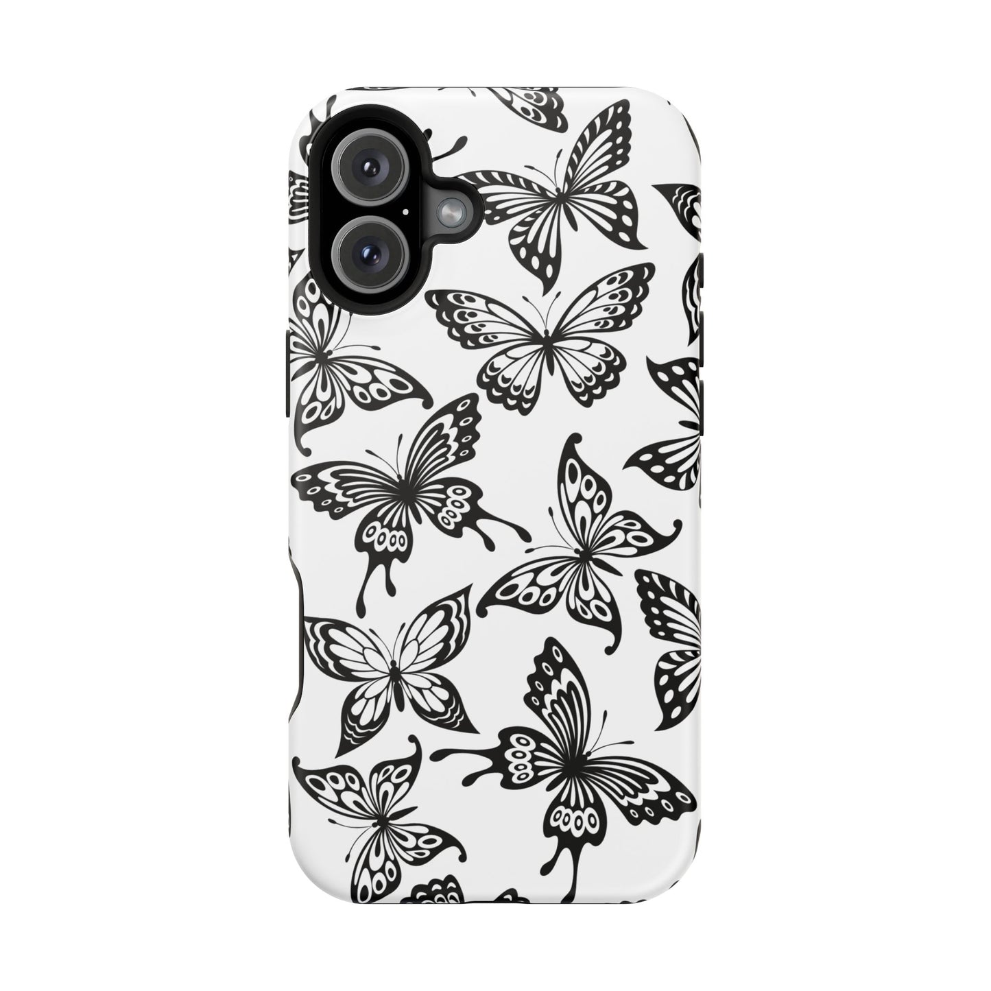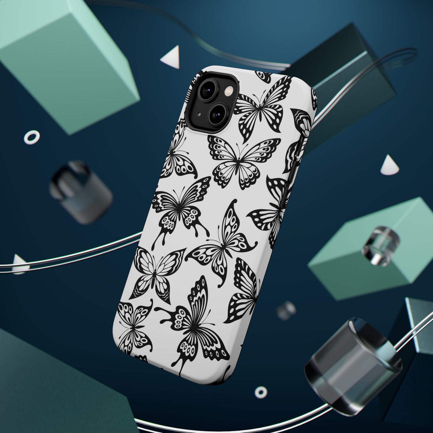 Monochrome Butterfly Pattern Tough MagSafe Case – Dual-Layer Protection with Matte Finish