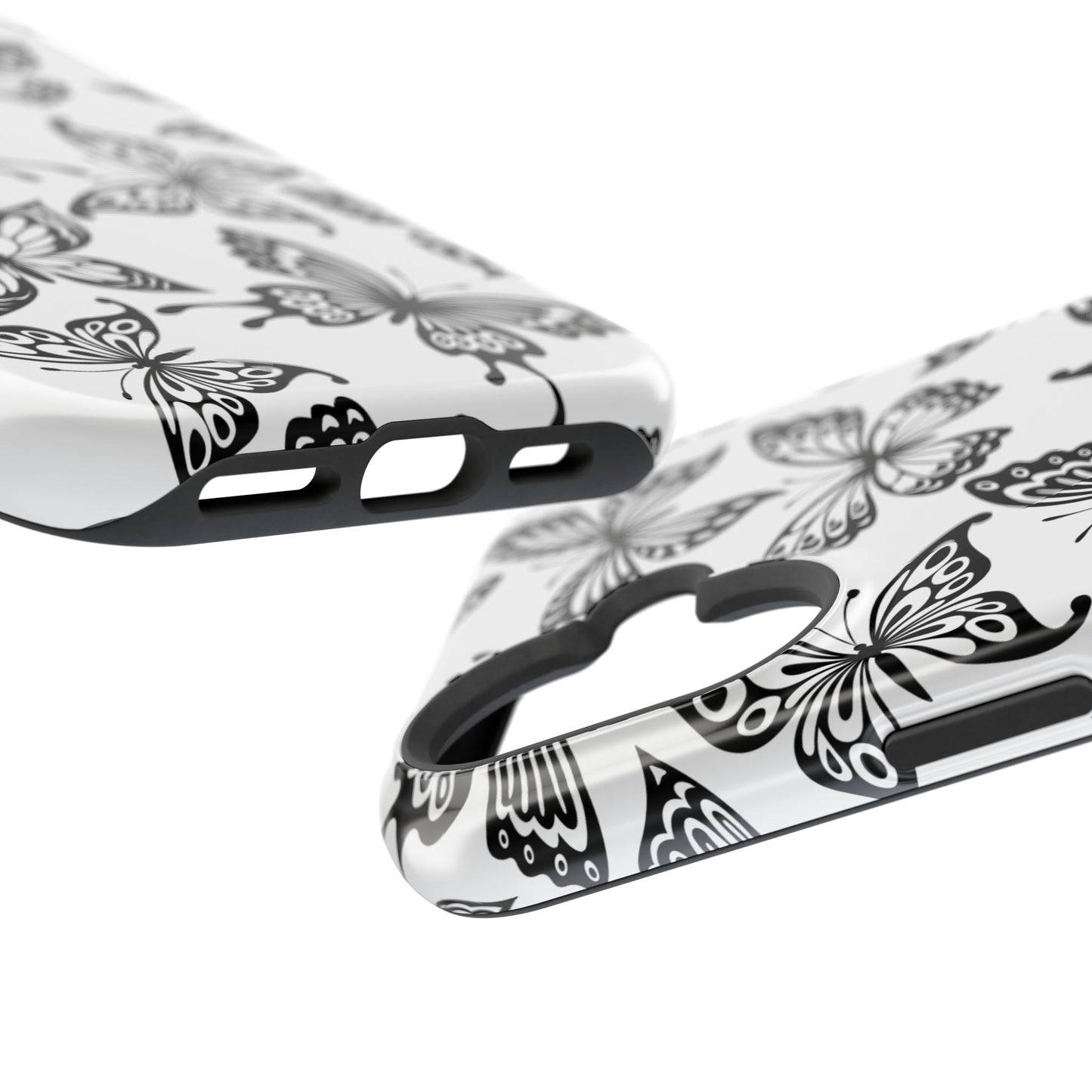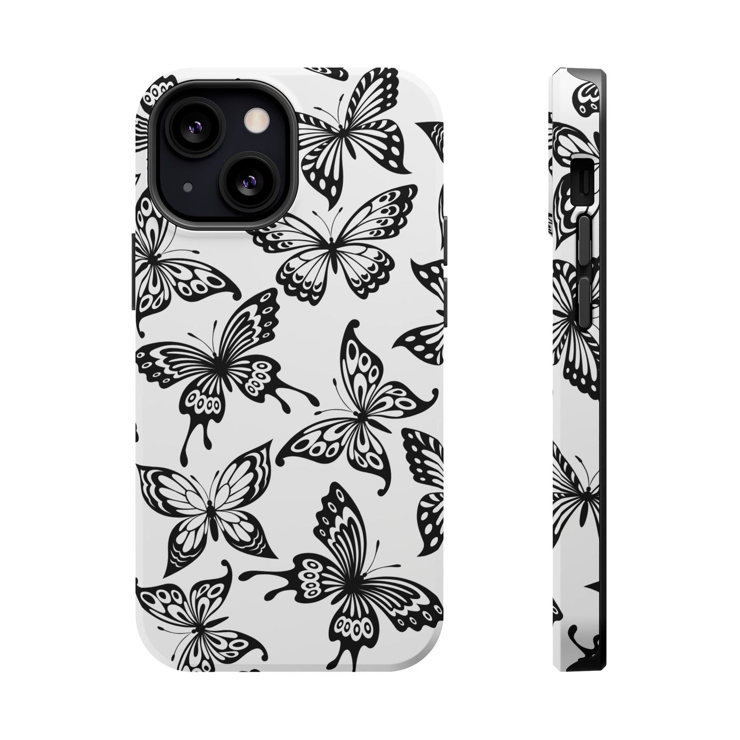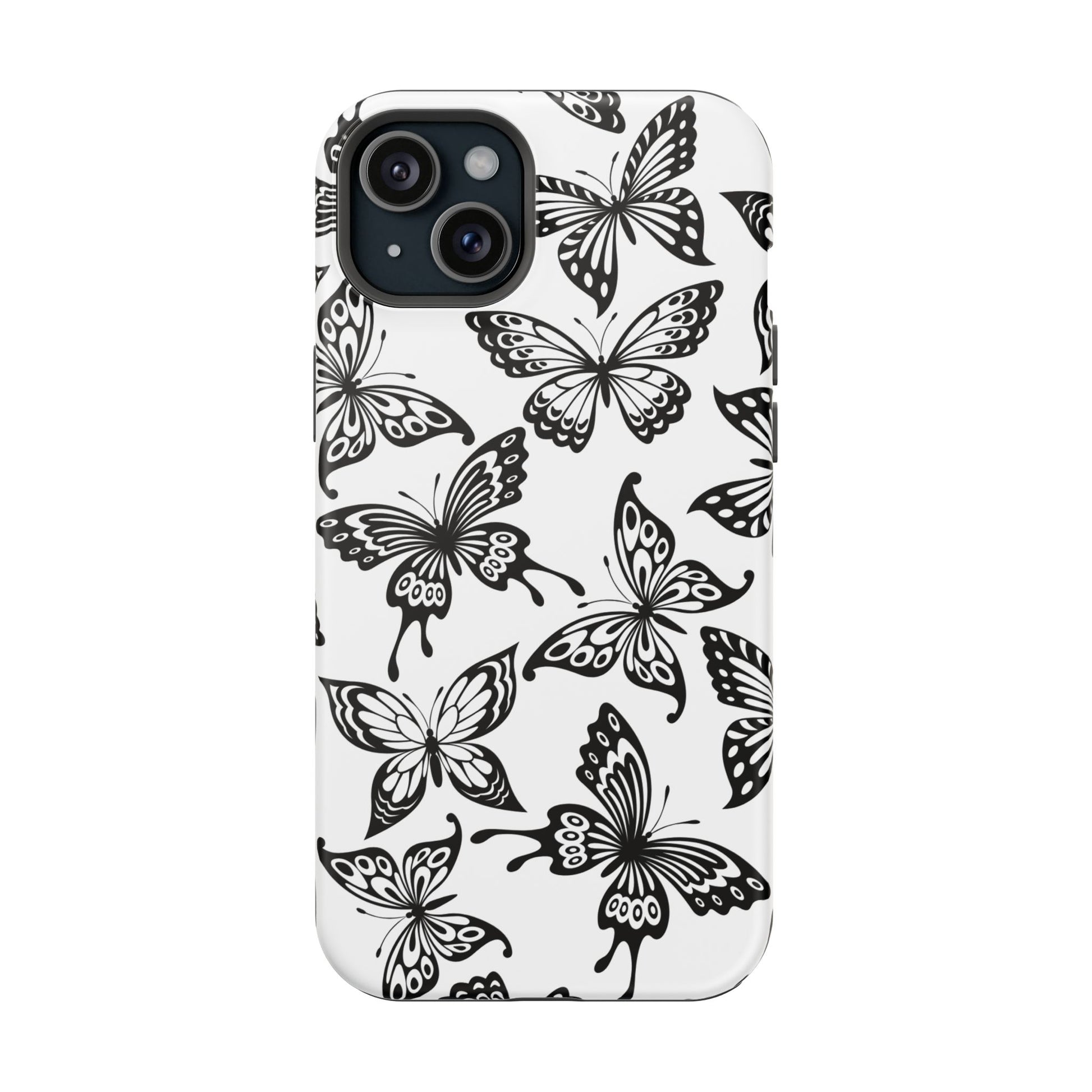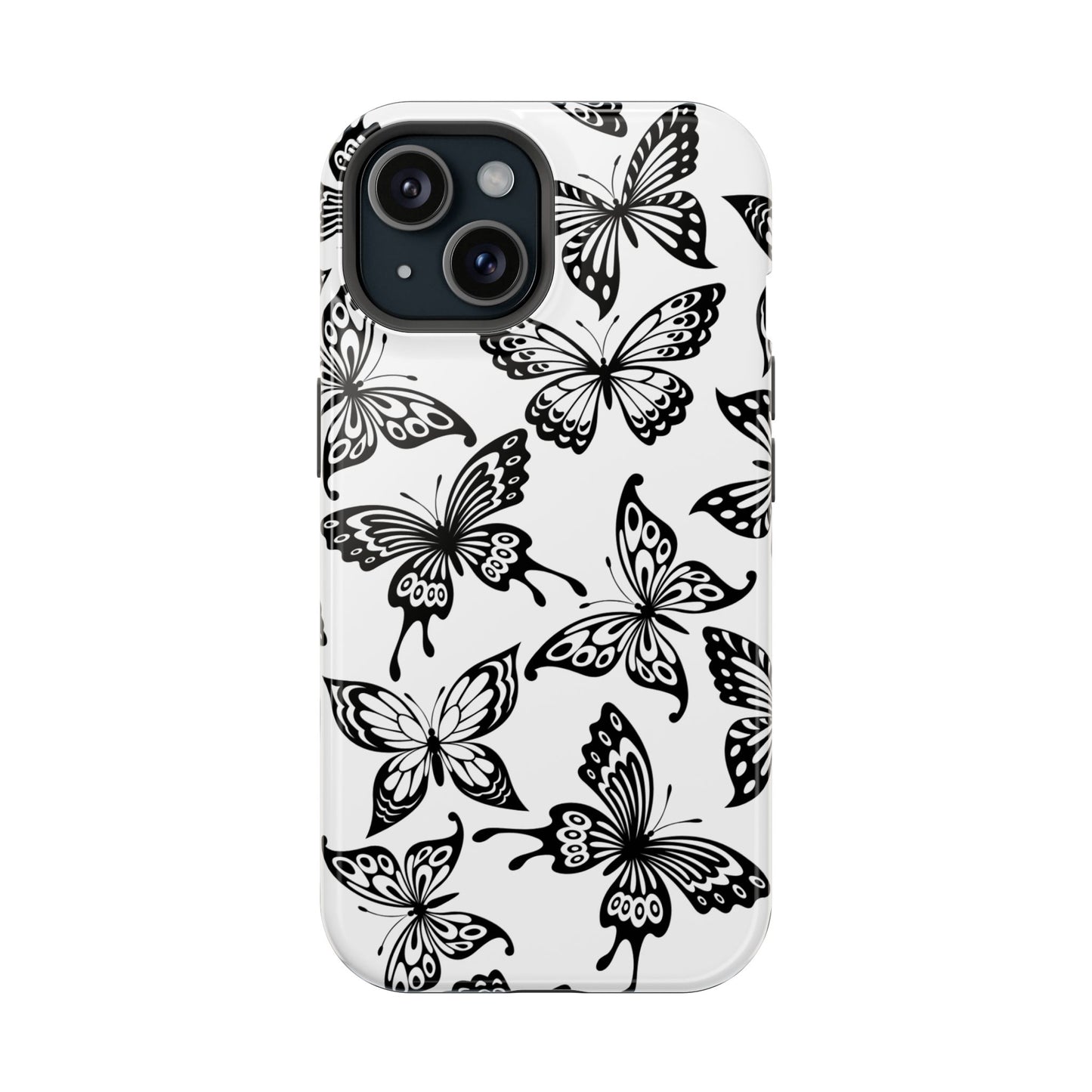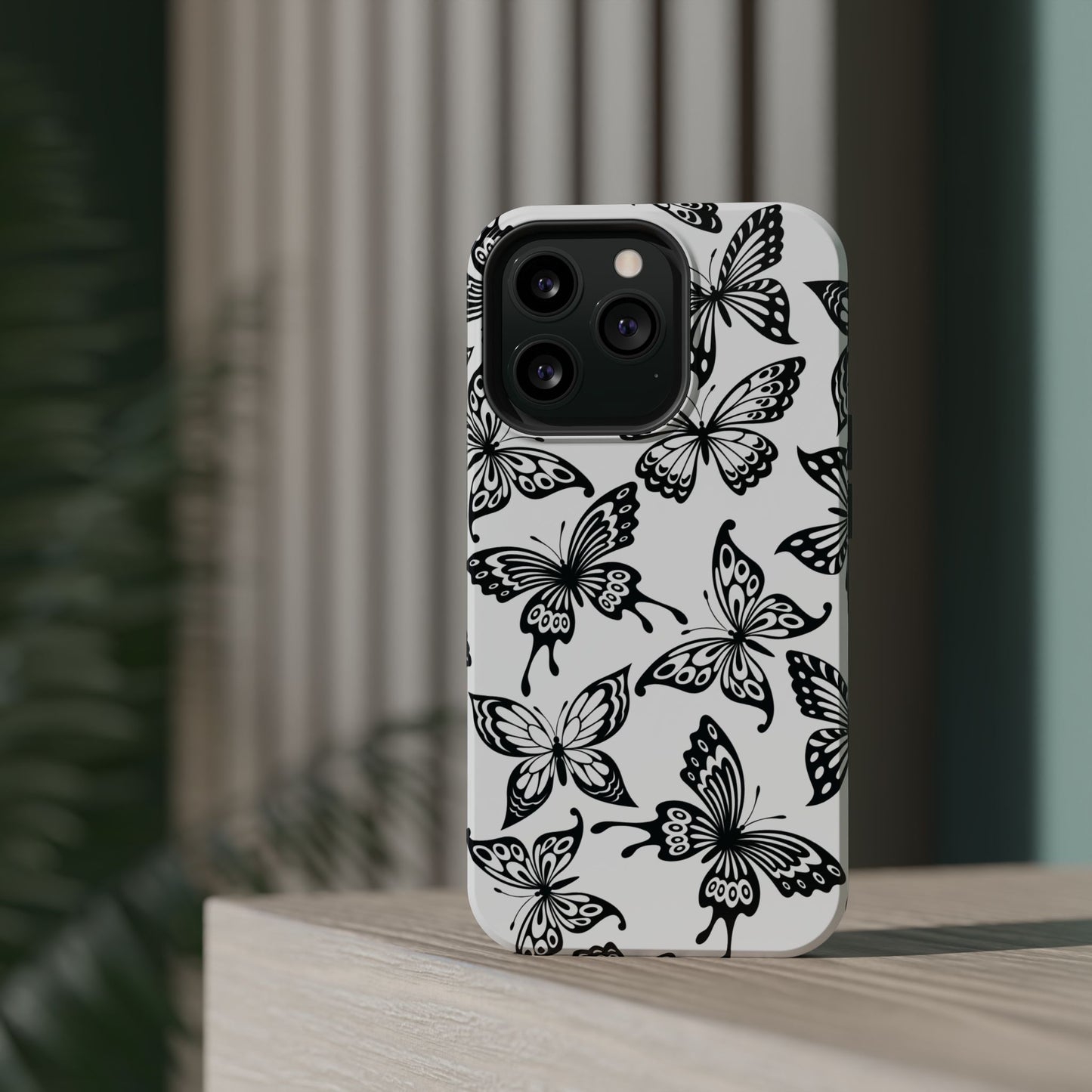 Monochrome Butterfly Pattern Tough MagSafe Case – Dual-Layer Protection with Matte Finish