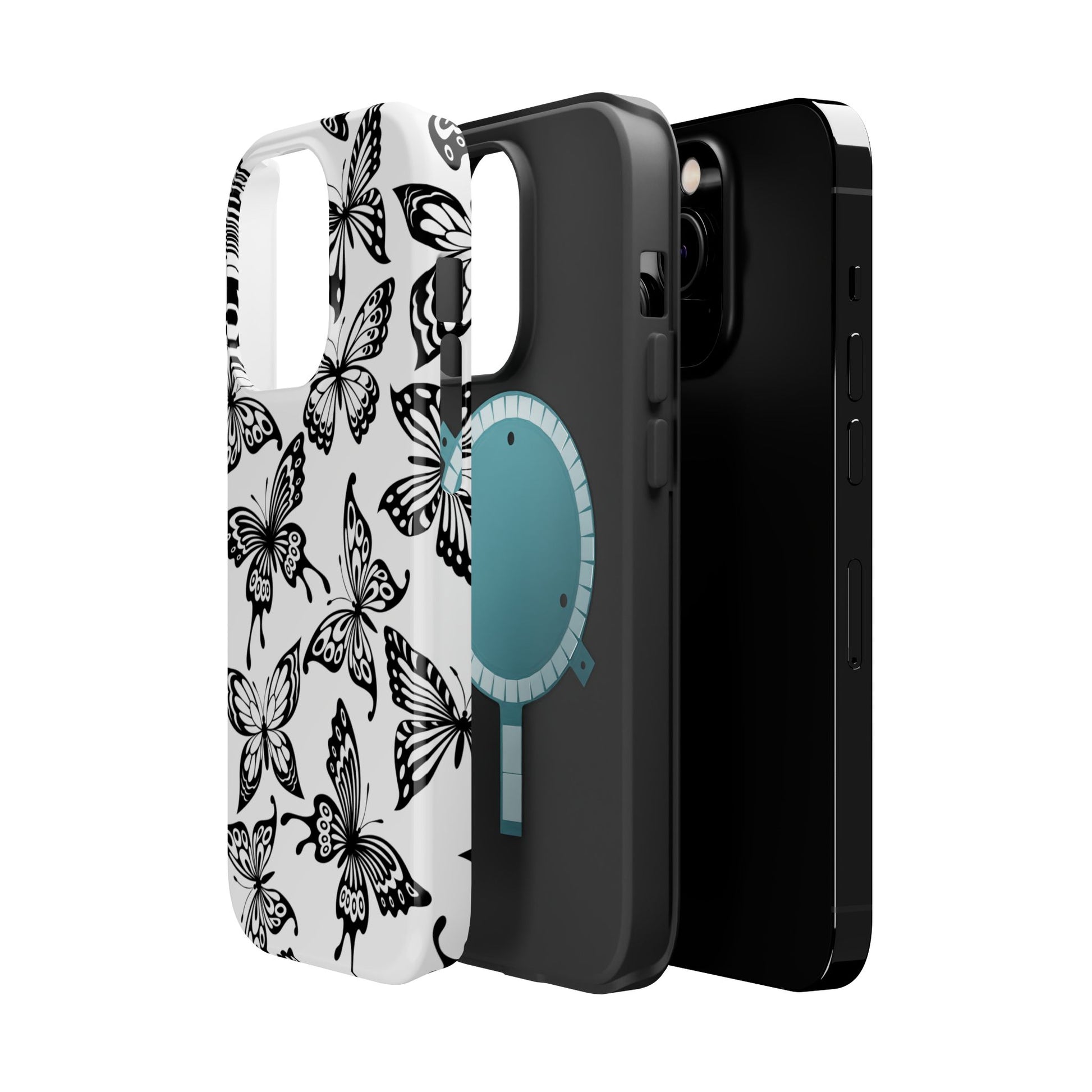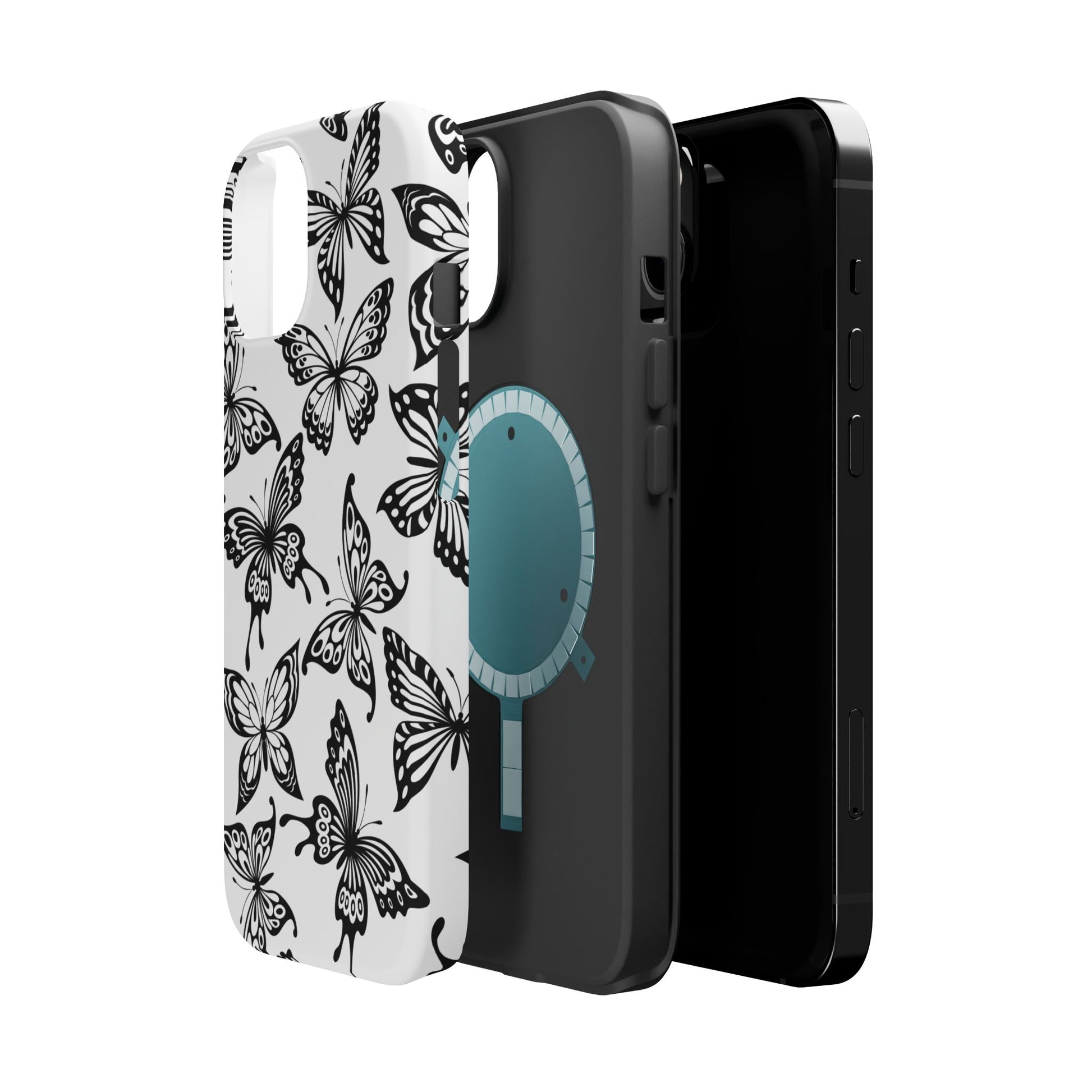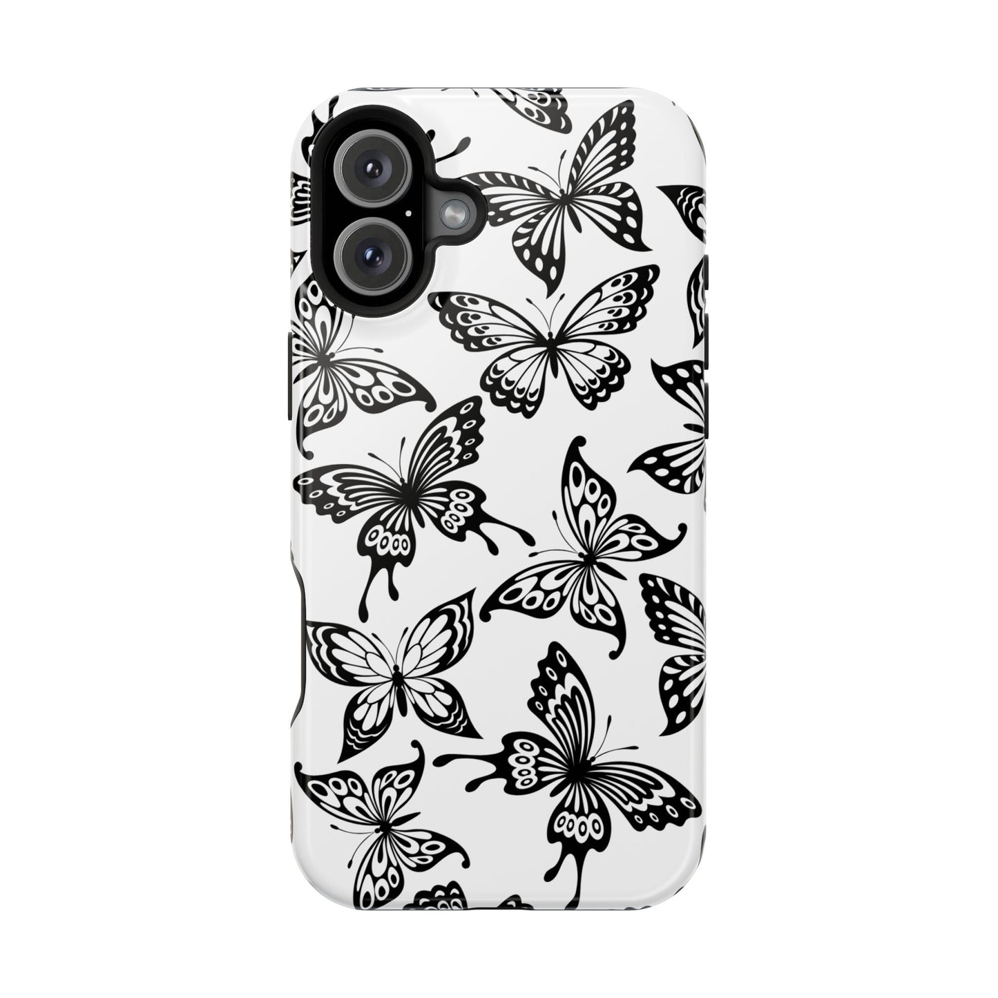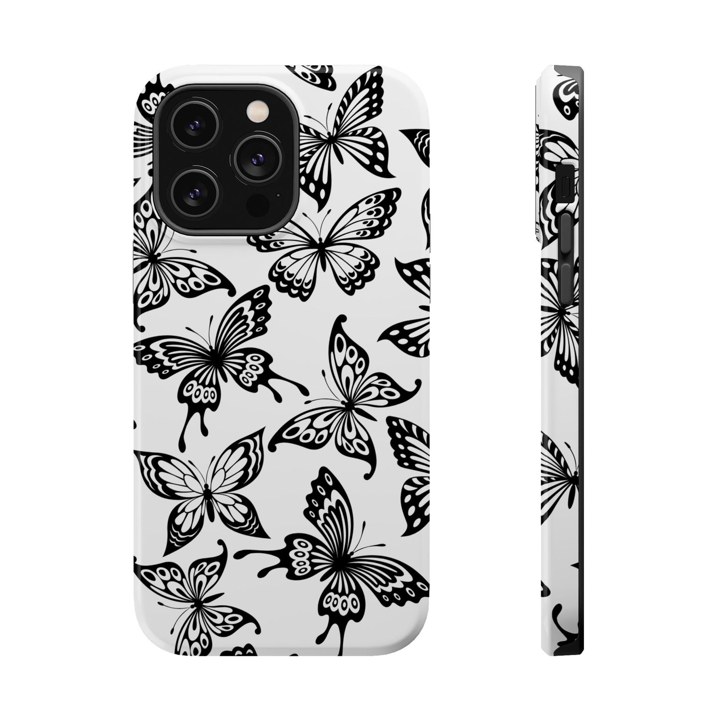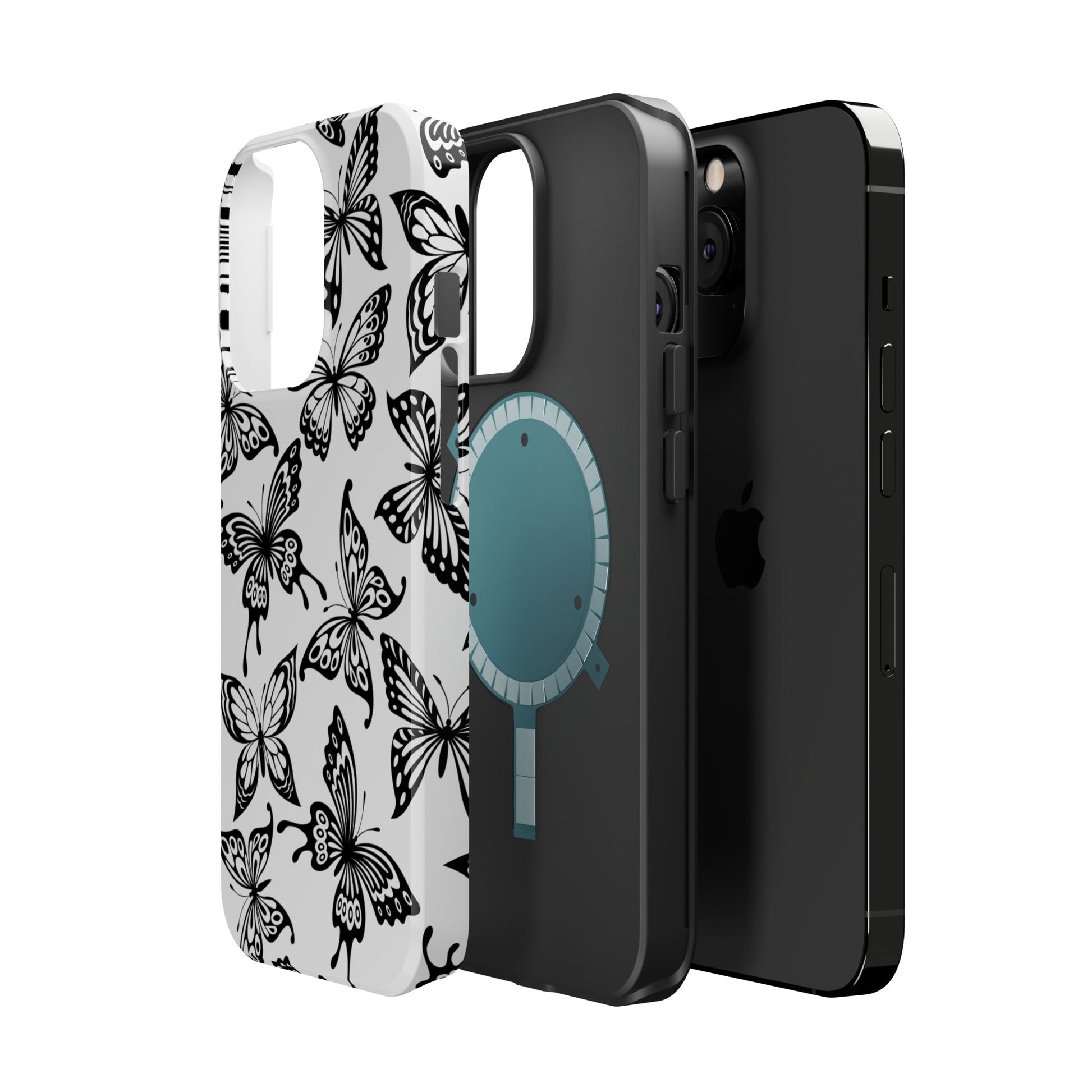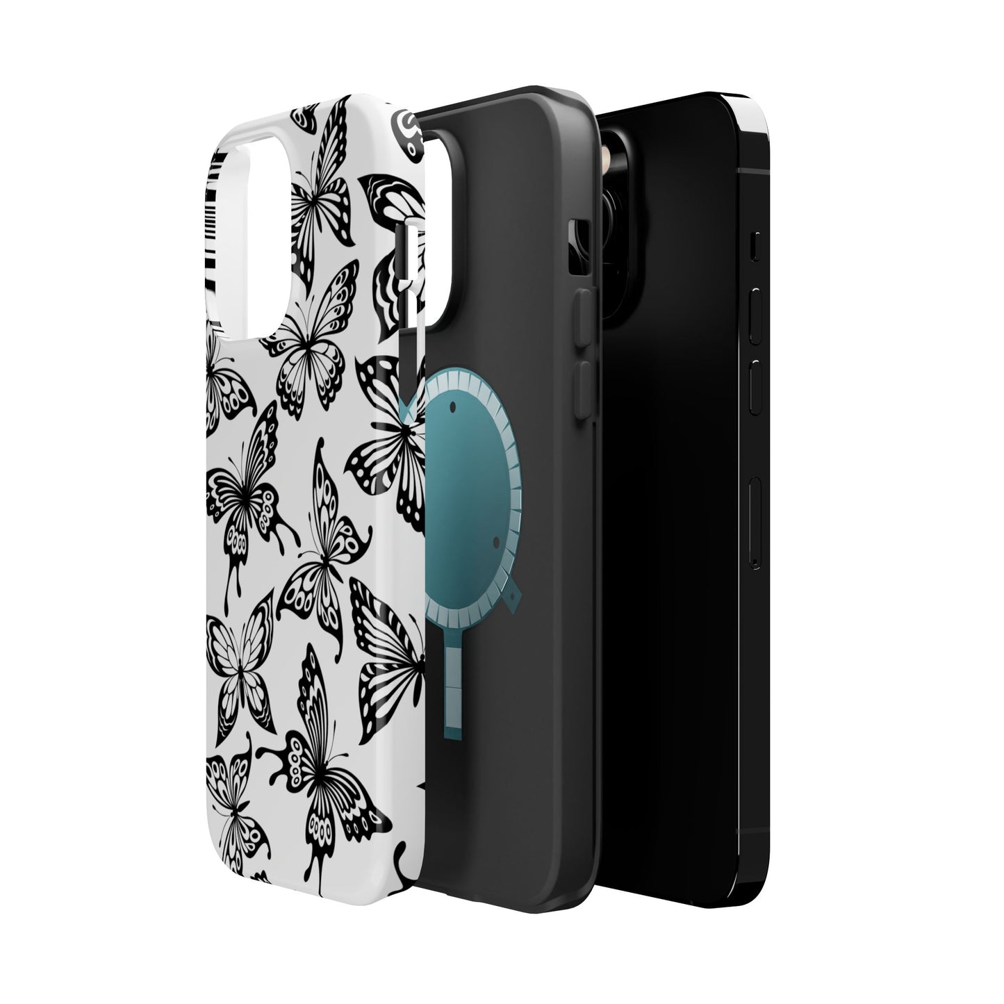 Monochrome Butterfly Pattern Tough MagSafe Case – Dual-Layer Protection with Matte Finish