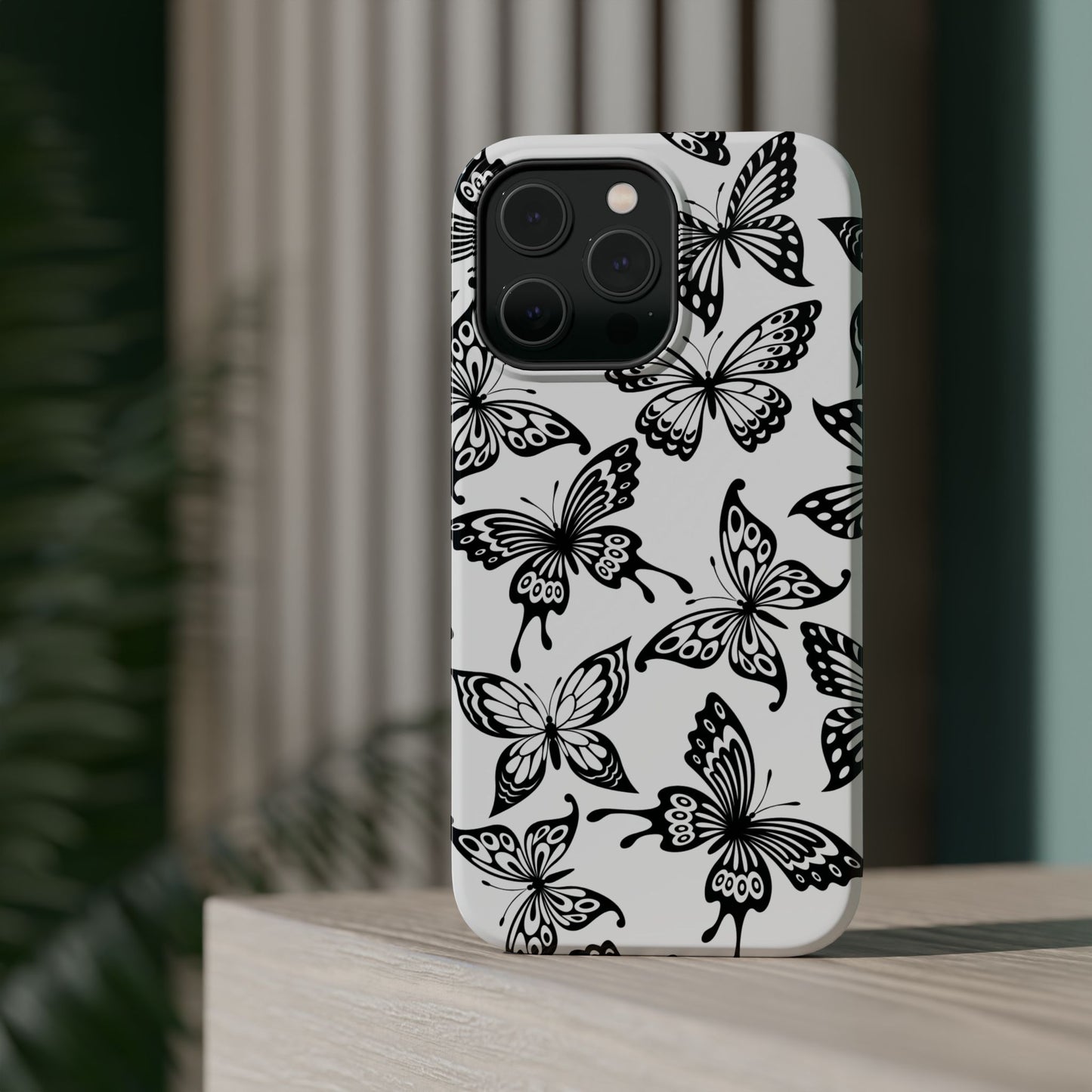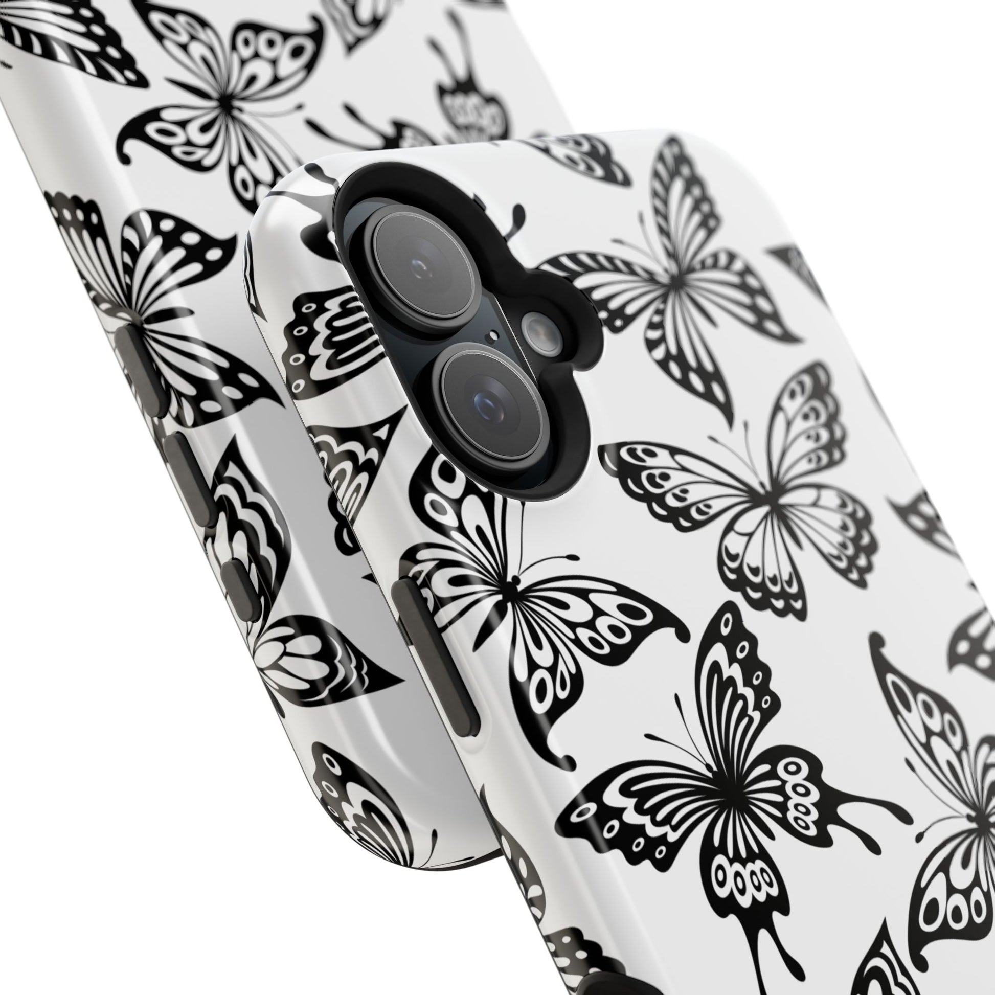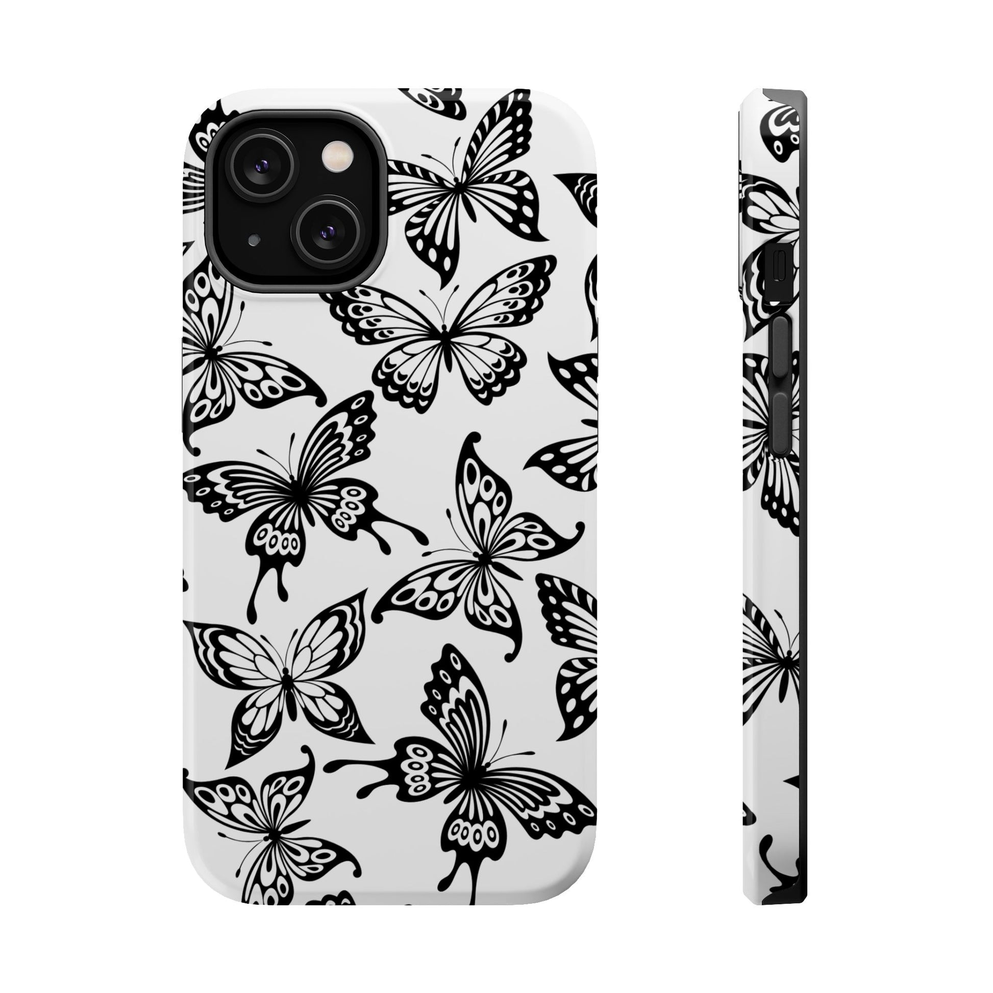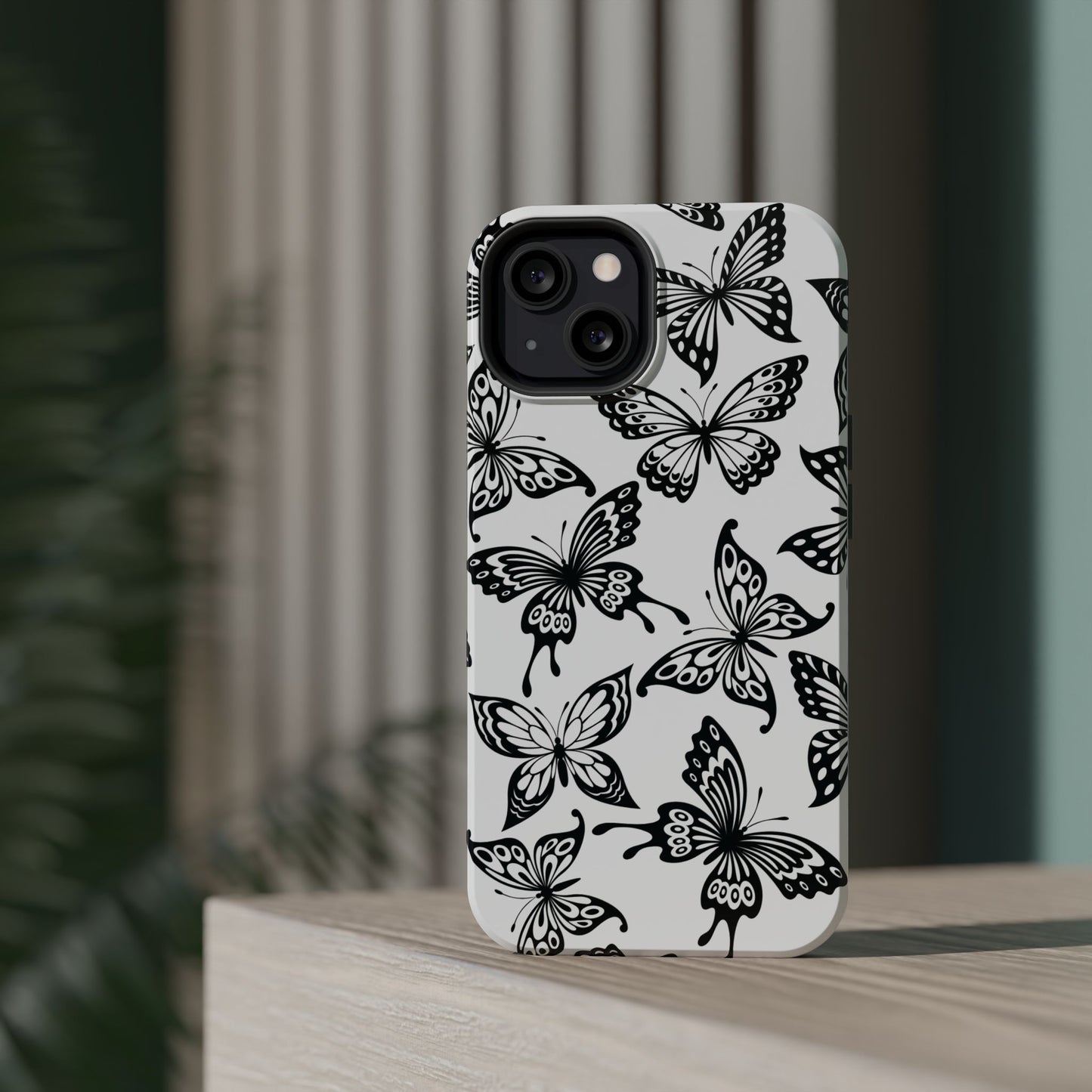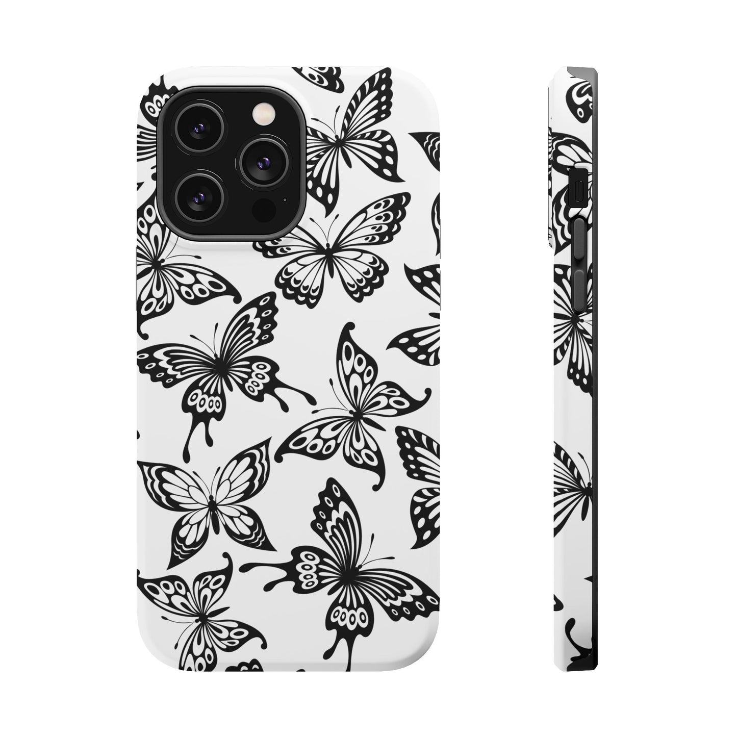 Monochrome Butterfly Pattern Tough MagSafe Case – Dual-Layer Protection with Matte Finish