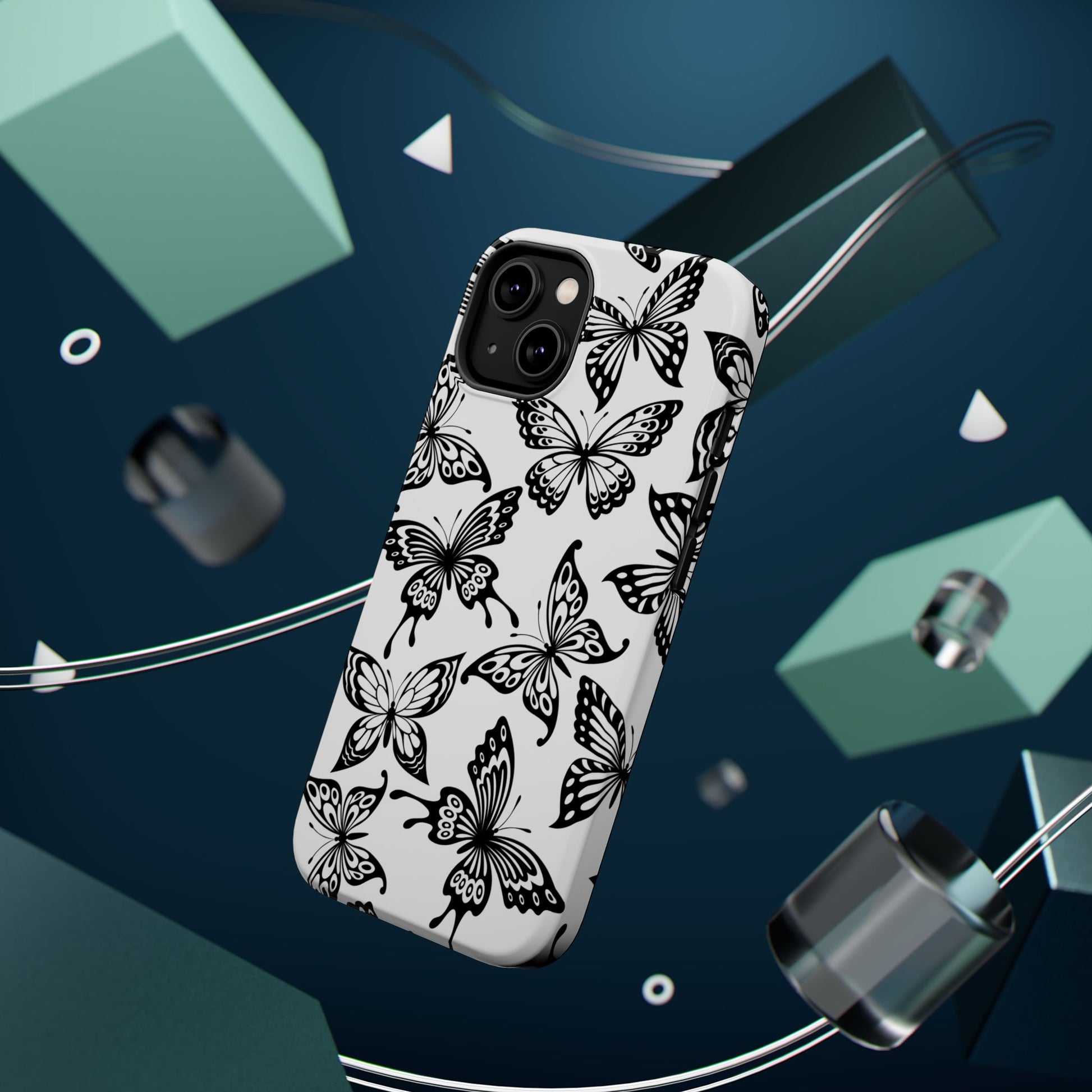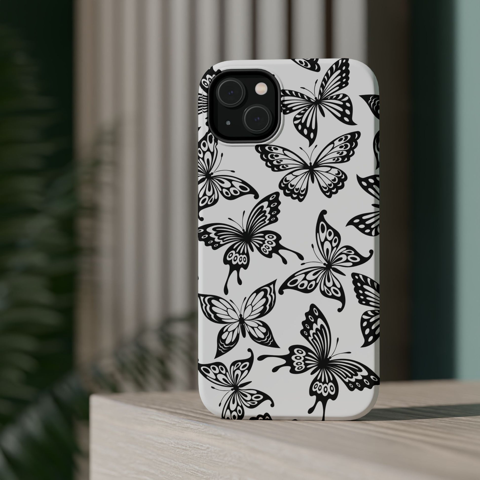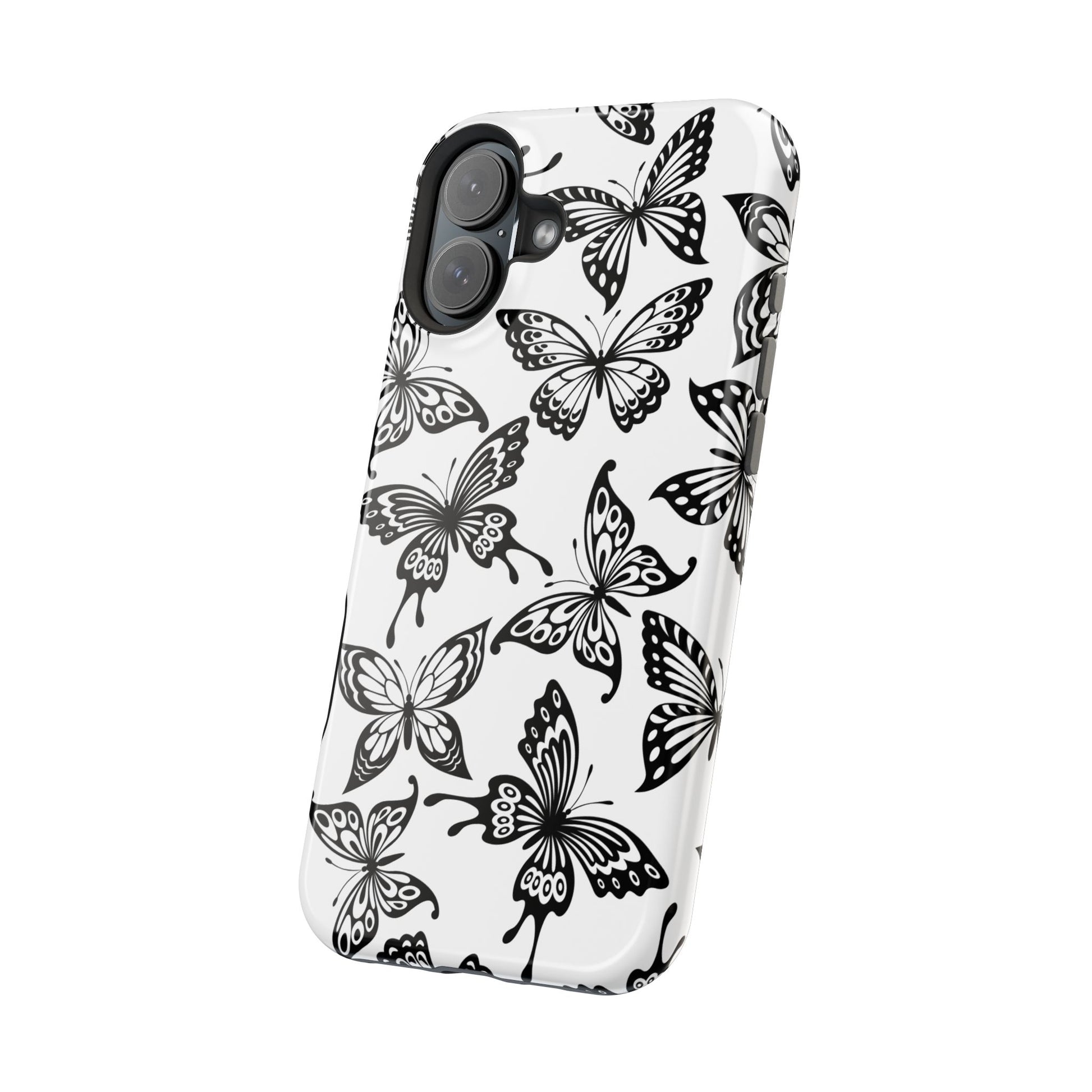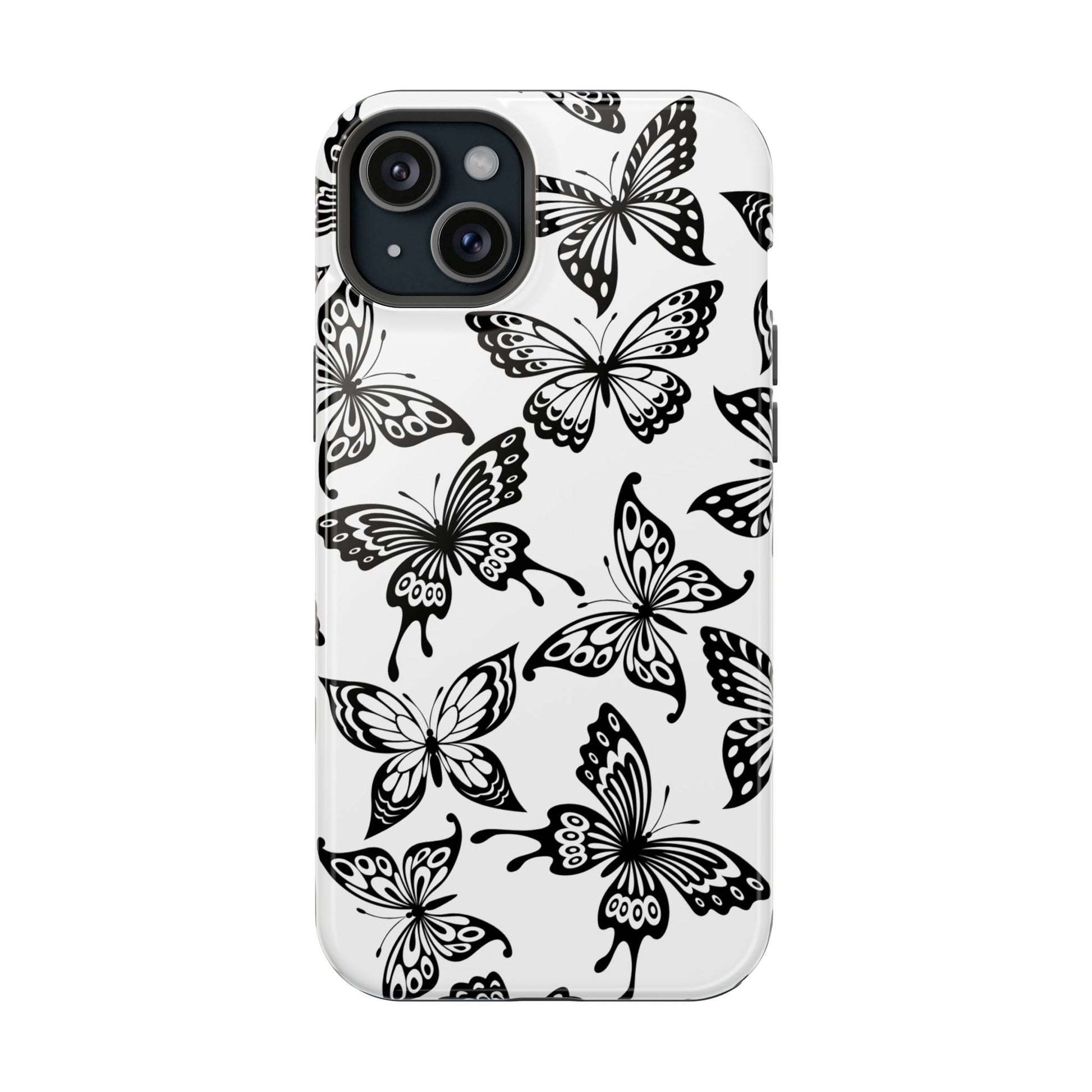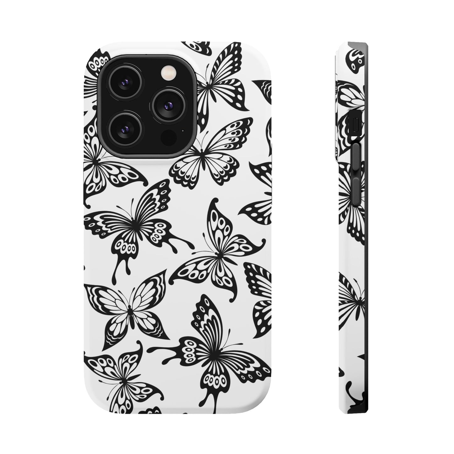 Monochrome Butterfly Pattern Tough MagSafe Case – Dual-Layer Protection with Matte Finish