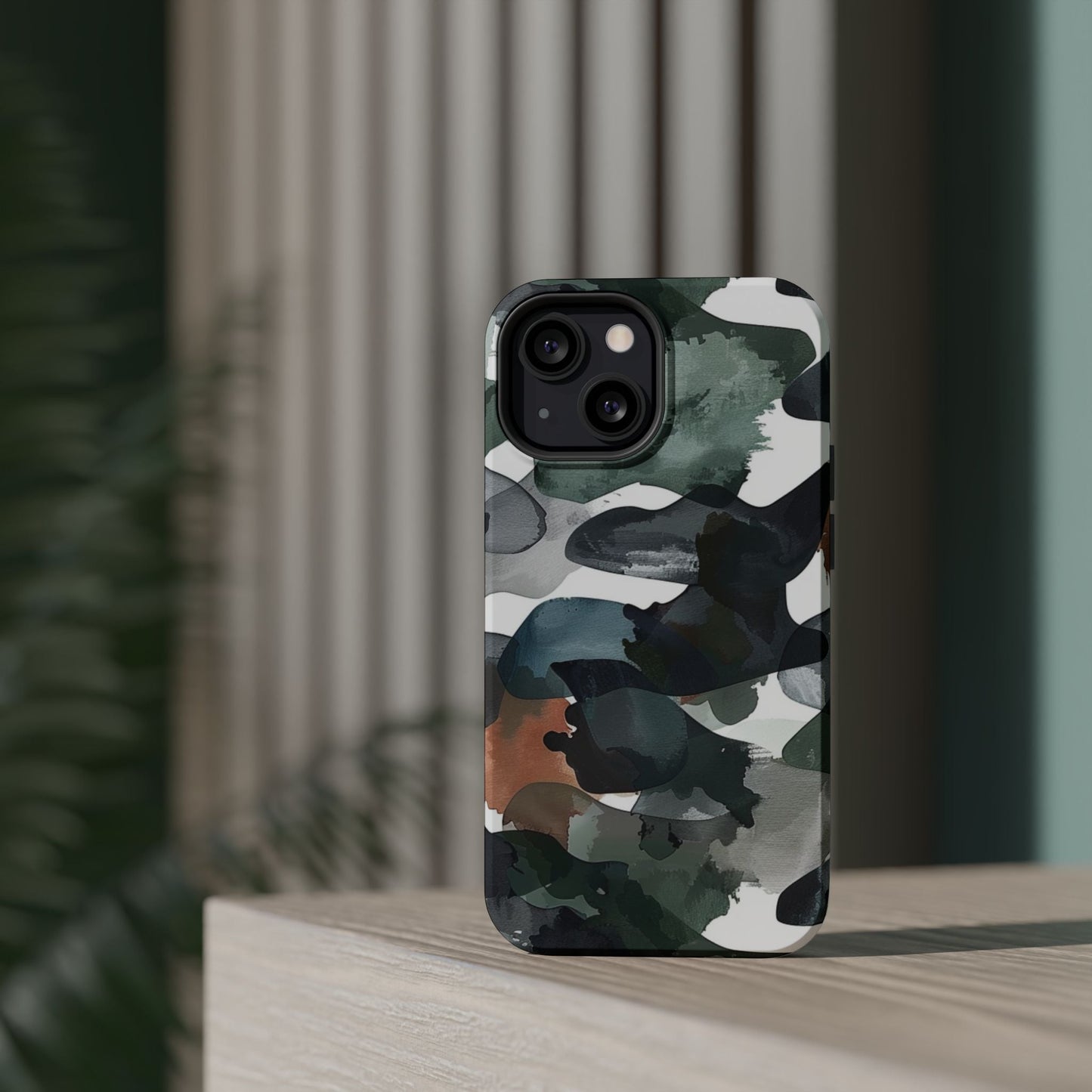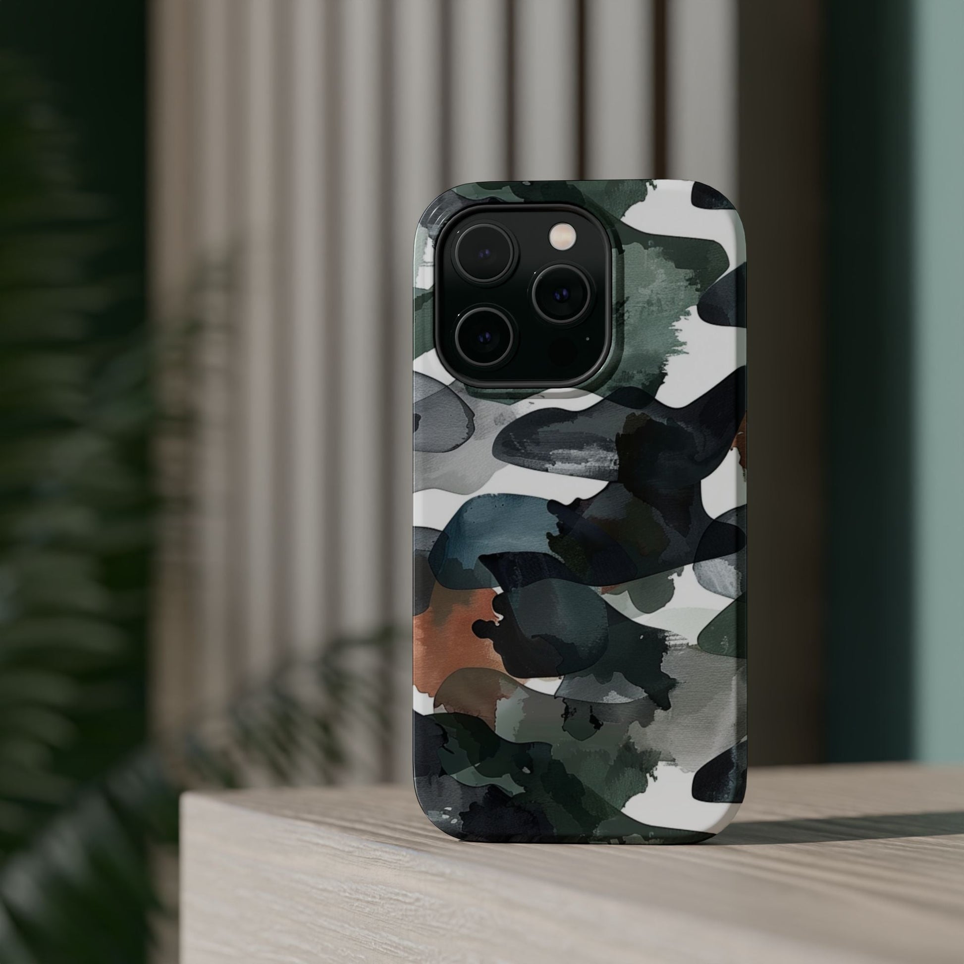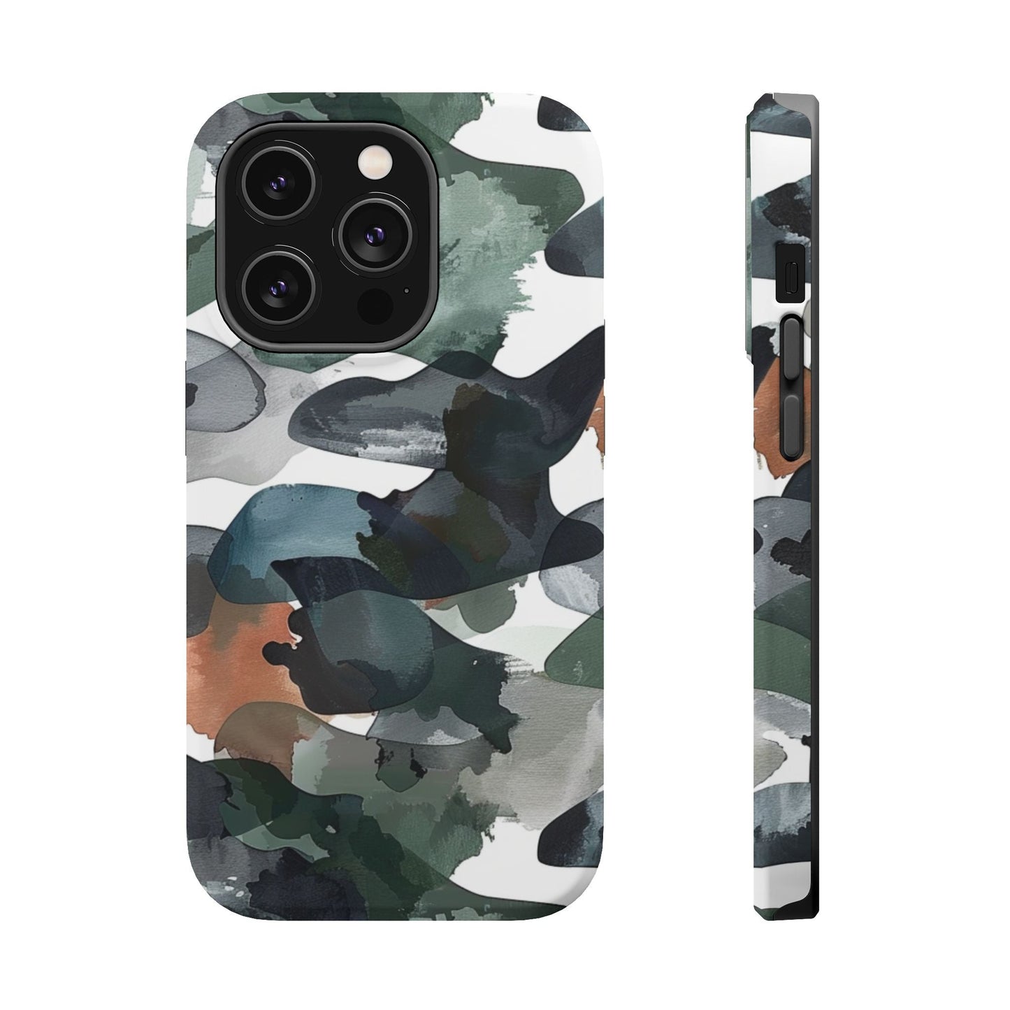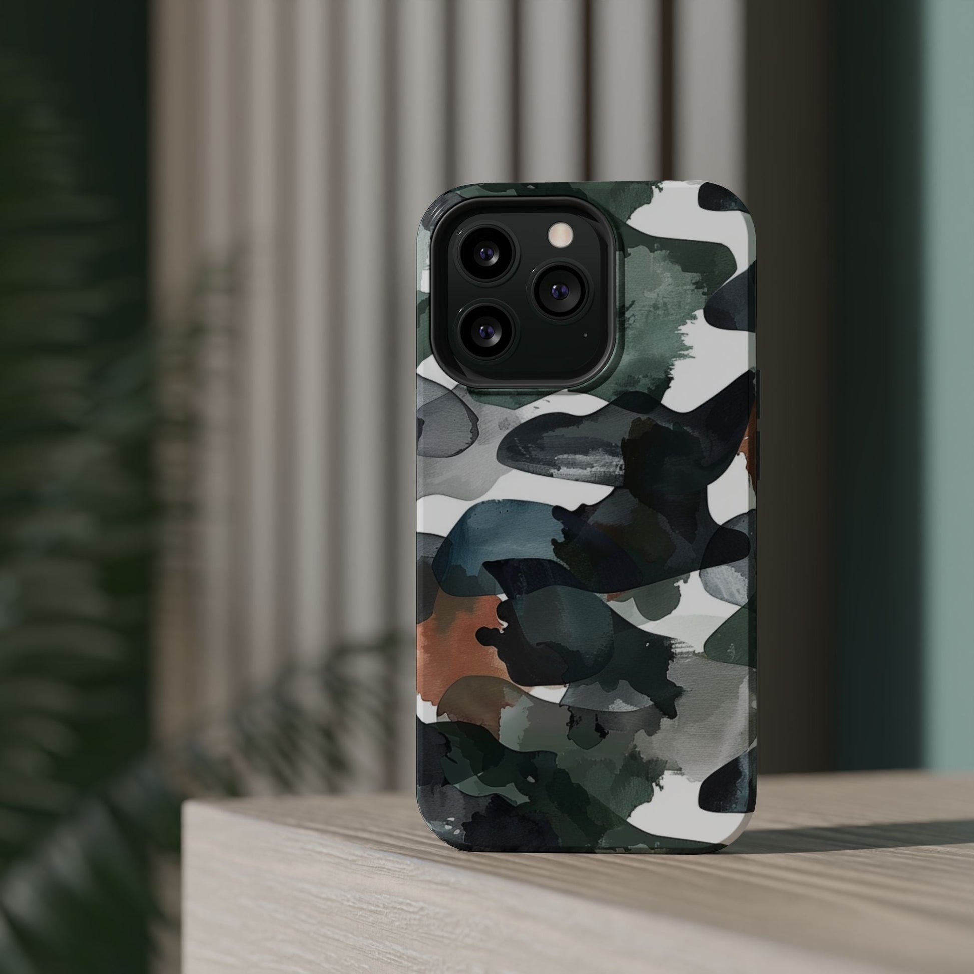 Description: Transform your iPhone into a modern masterpiece with the Moody Abstract Watercolor MagSafe Case. Featuring a stunning interplay of dark green, earthy brown, and rich charcoal tones, this case is as stylish as it is functional. Designed to work seamlessly with MagSafe technology, it ensures effortless charging while providing premium protection for your device.