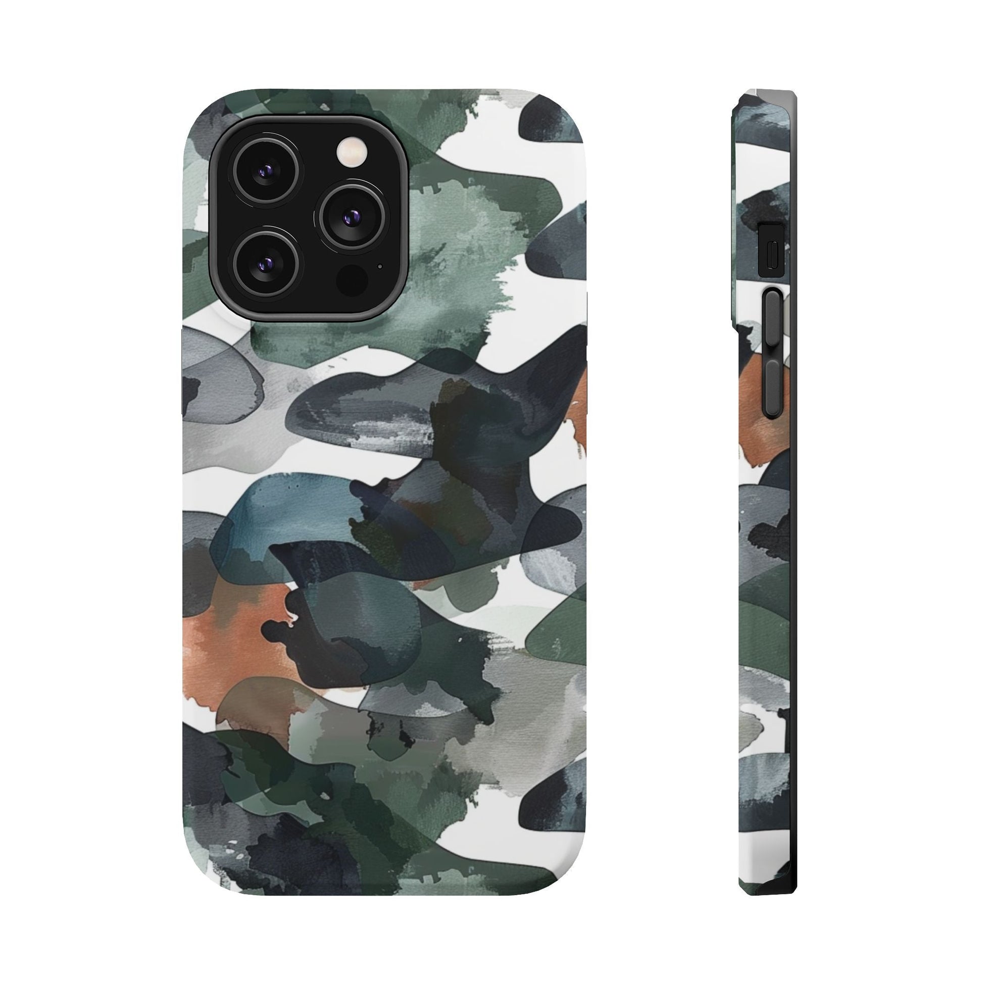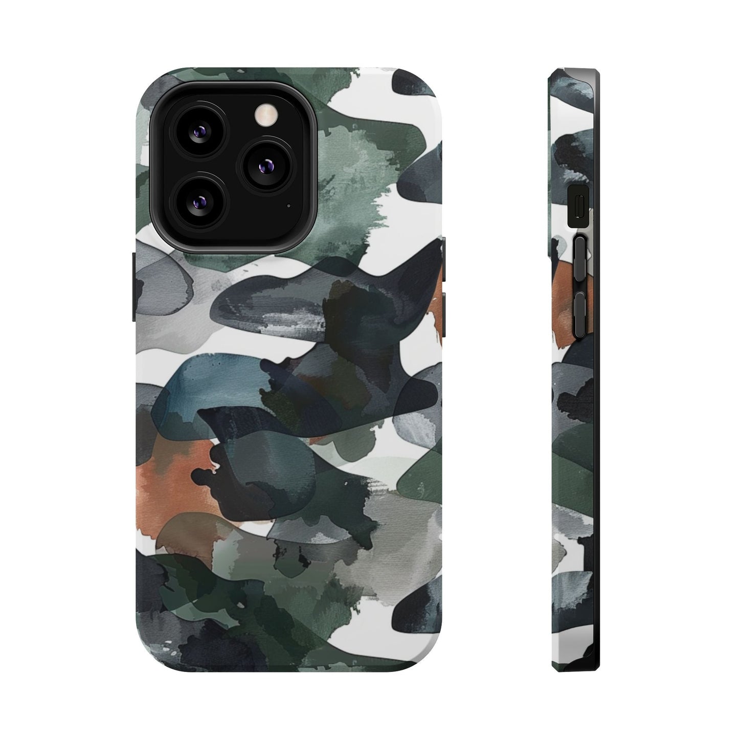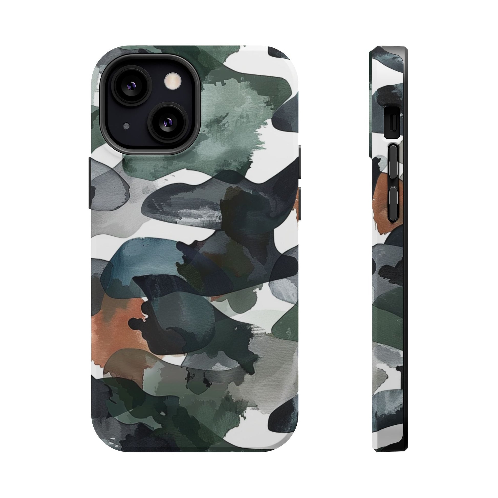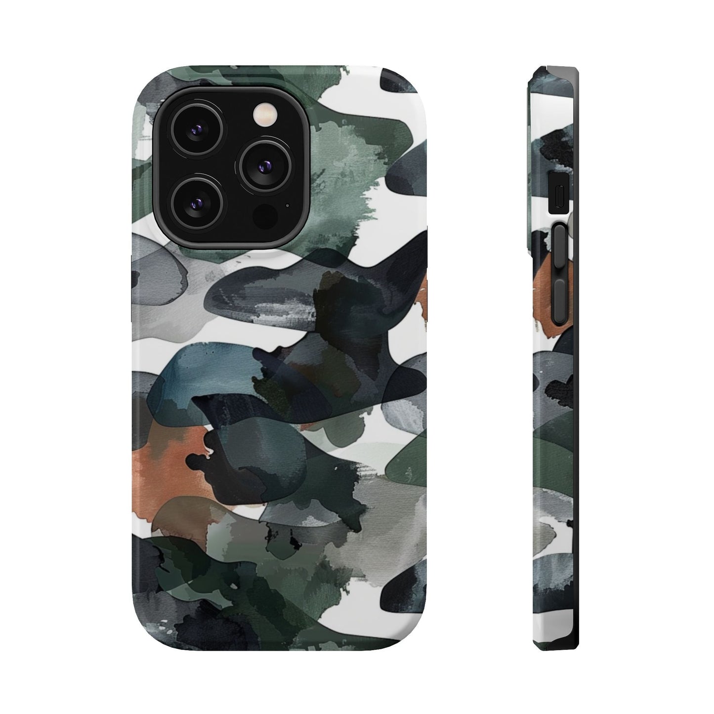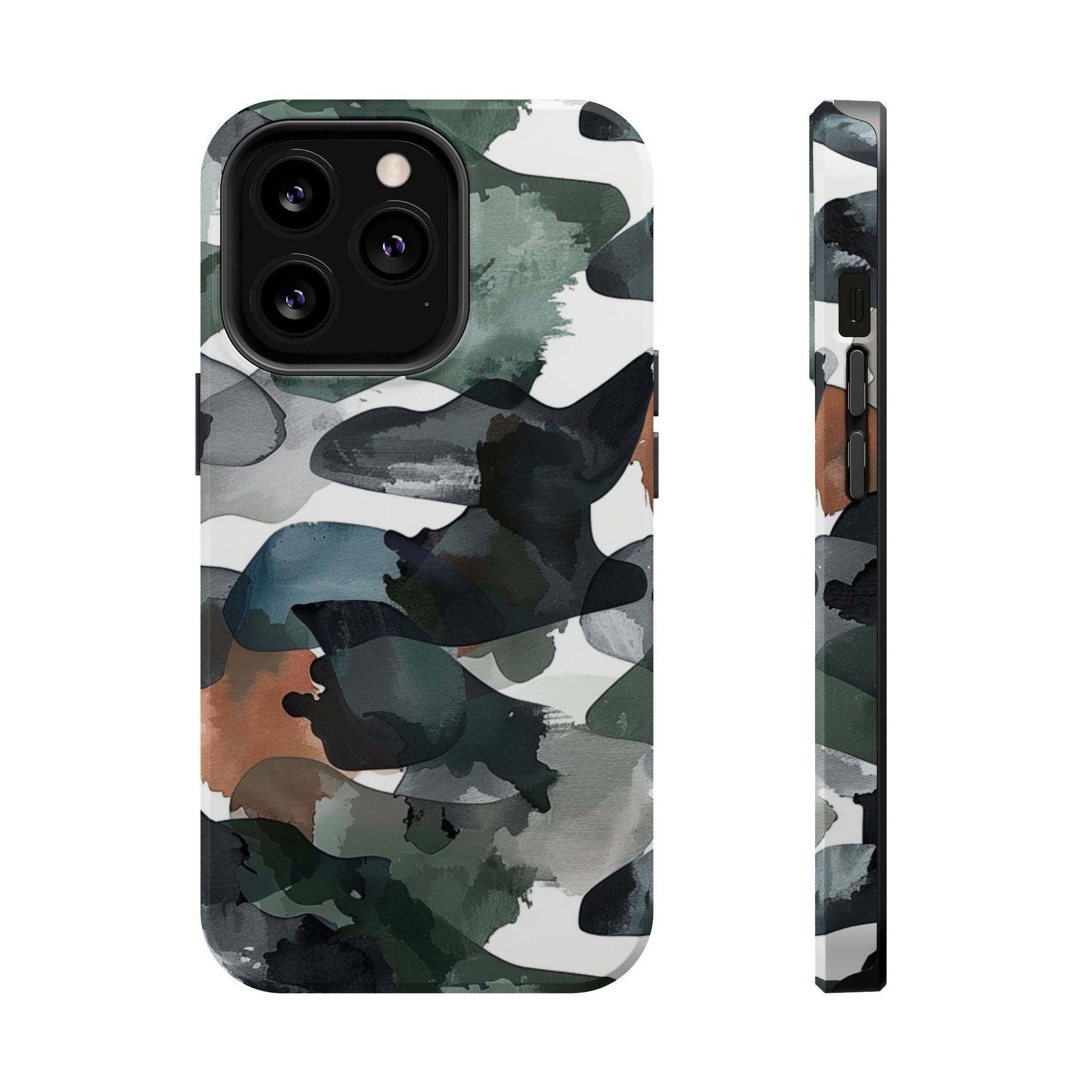Description: Transform your iPhone into a modern masterpiece with the Moody Abstract Watercolor MagSafe Case. Featuring a stunning interplay of dark green, earthy brown, and rich charcoal tones, this case is as stylish as it is functional. Designed to work seamlessly with MagSafe technology, it ensures effortless charging while providing premium protection for your device.
