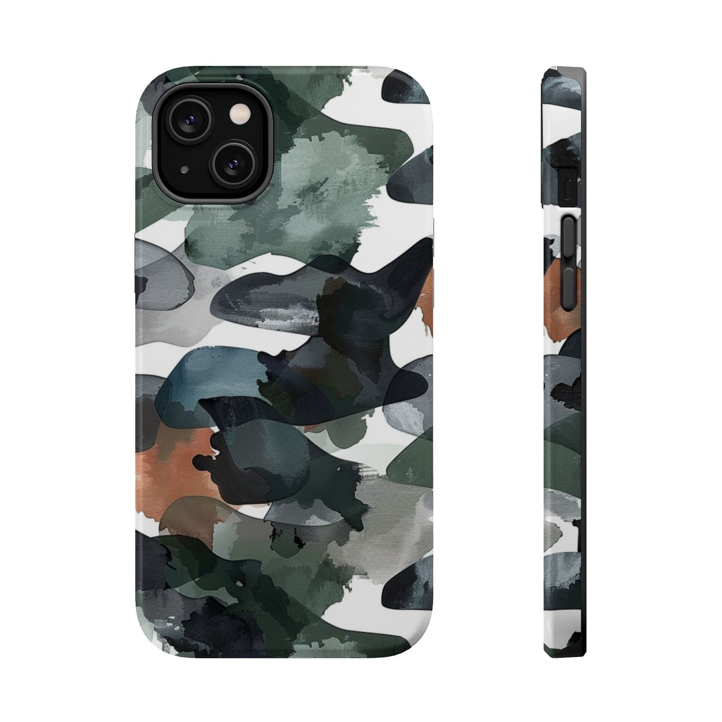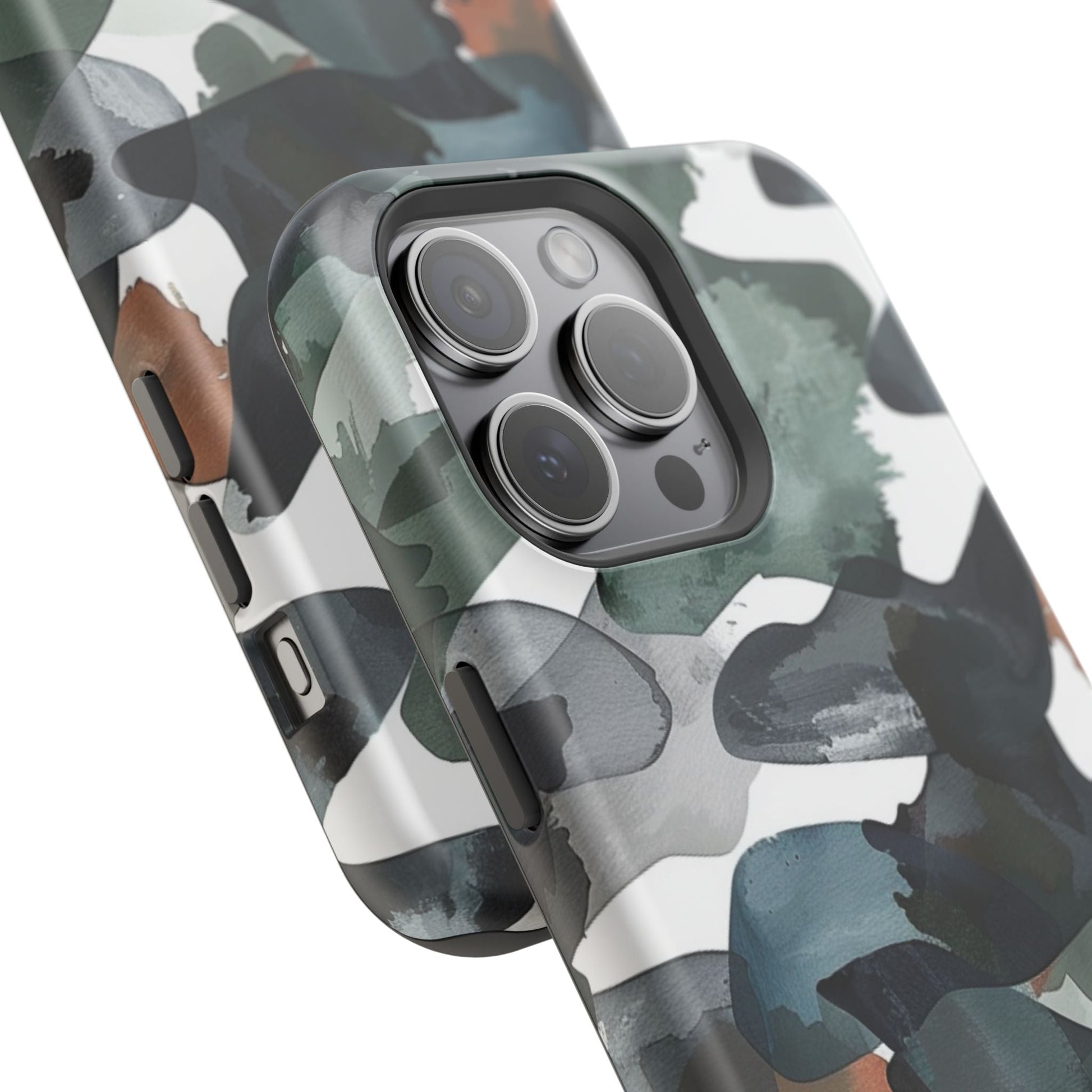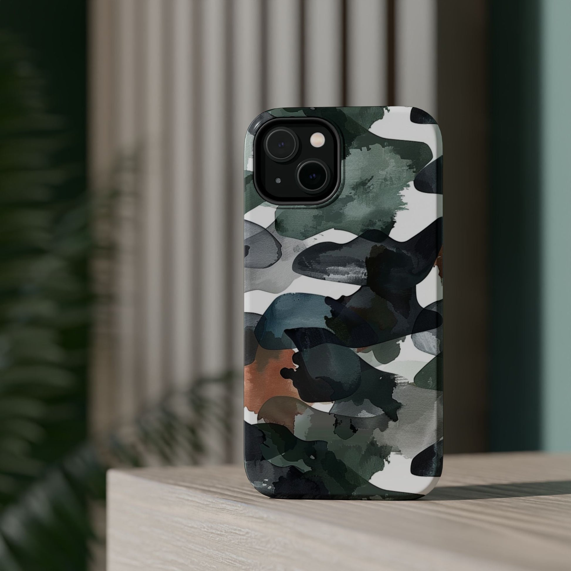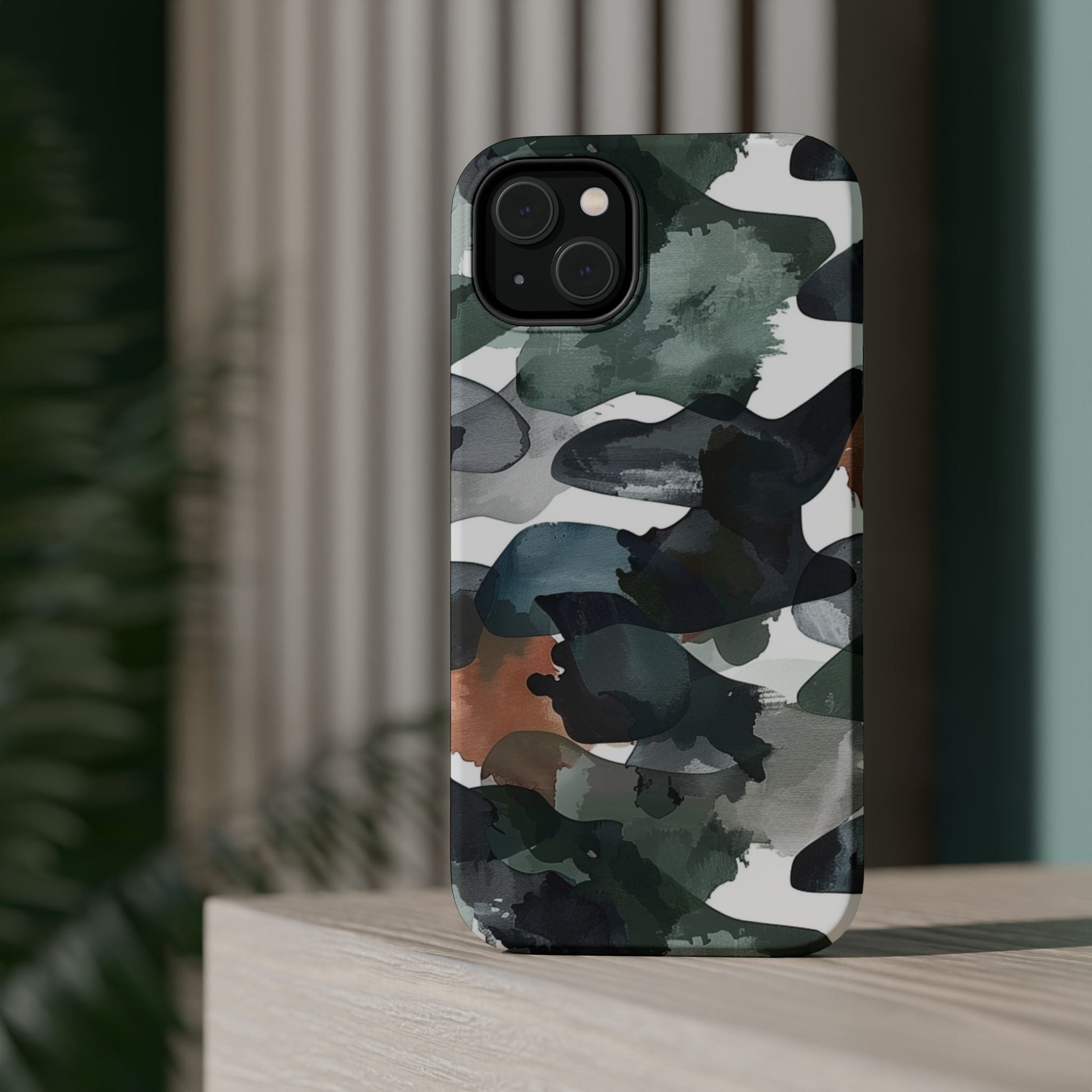 Description: Transform your iPhone into a modern masterpiece with the Moody Abstract Watercolor MagSafe Case. Featuring a stunning interplay of dark green, earthy brown, and rich charcoal tones, this case is as stylish as it is functional. Designed to work seamlessly with MagSafe technology, it ensures effortless charging while providing premium protection for your device.