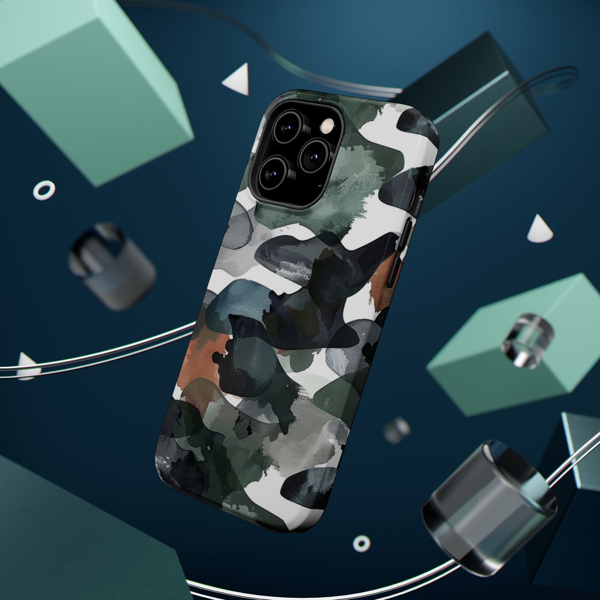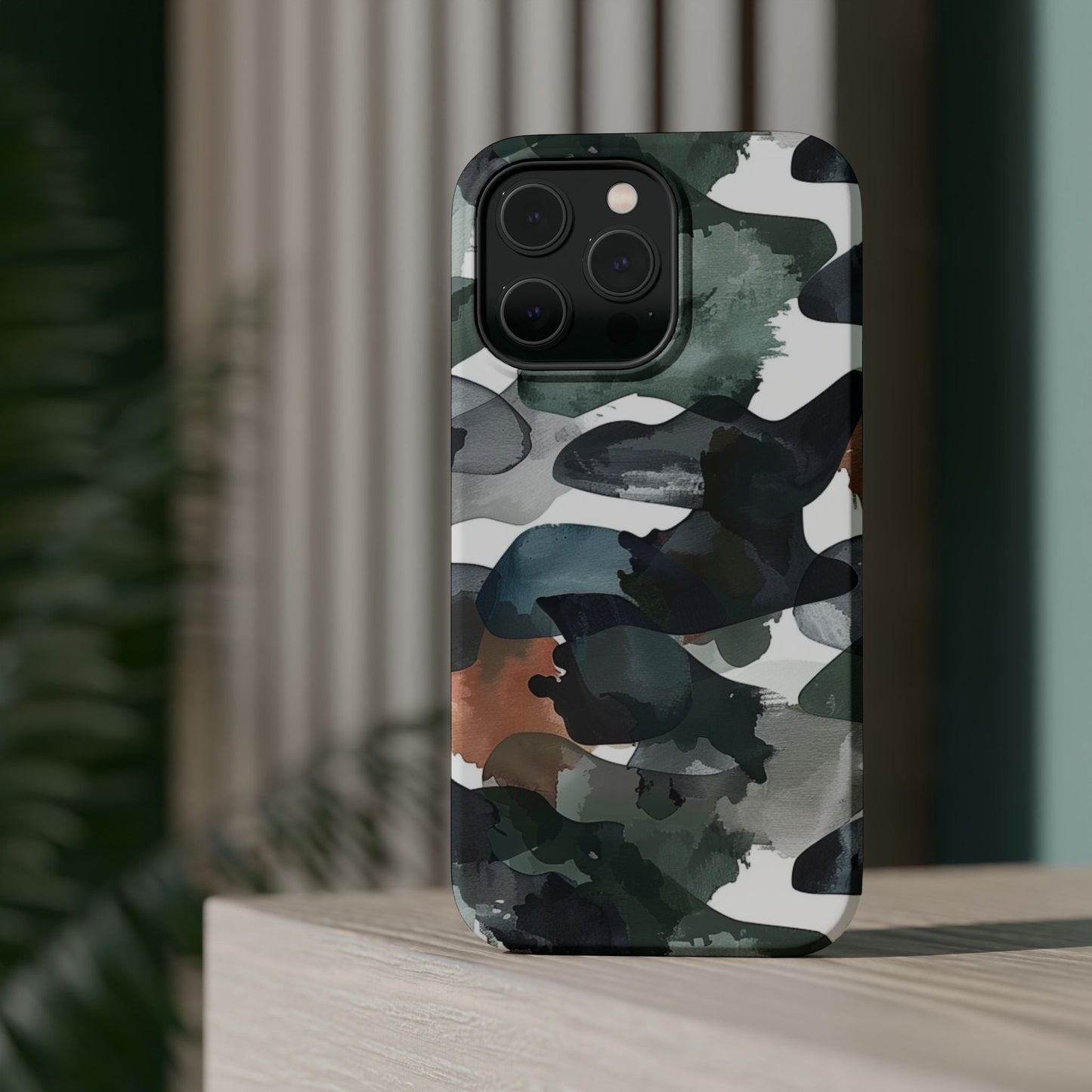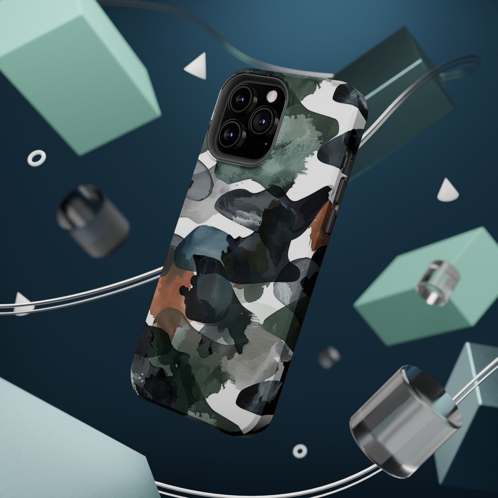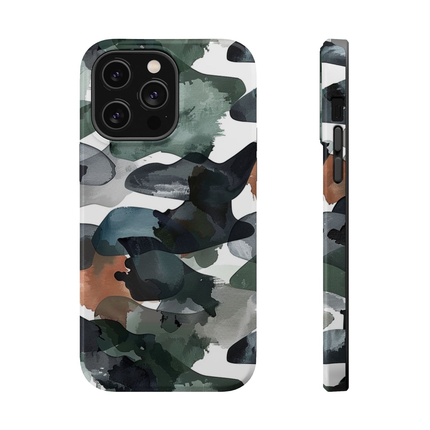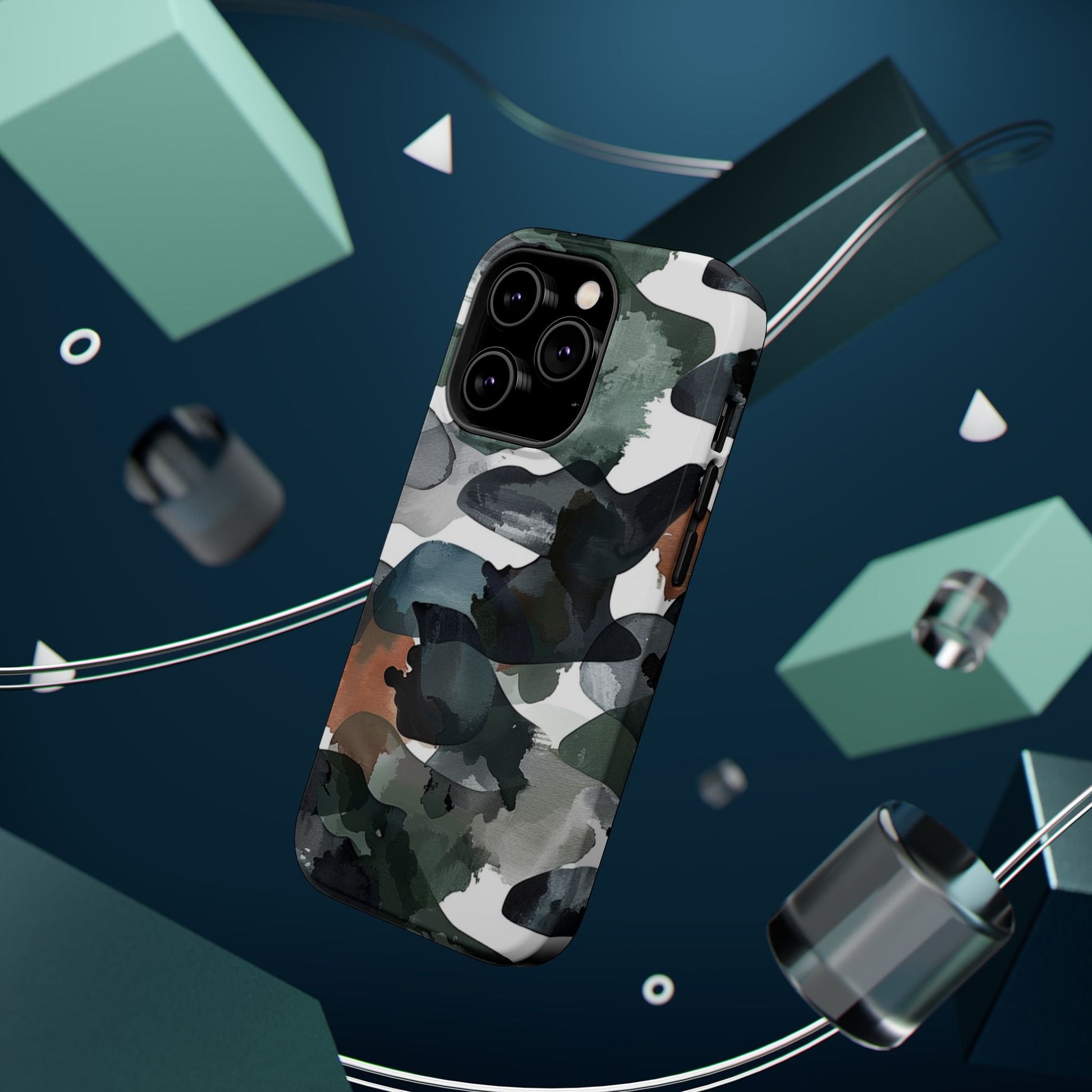 Description: Transform your iPhone into a modern masterpiece with the Moody Abstract Watercolor MagSafe Case. Featuring a stunning interplay of dark green, earthy brown, and rich charcoal tones, this case is as stylish as it is functional. Designed to work seamlessly with MagSafe technology, it ensures effortless charging while providing premium protection for your device.