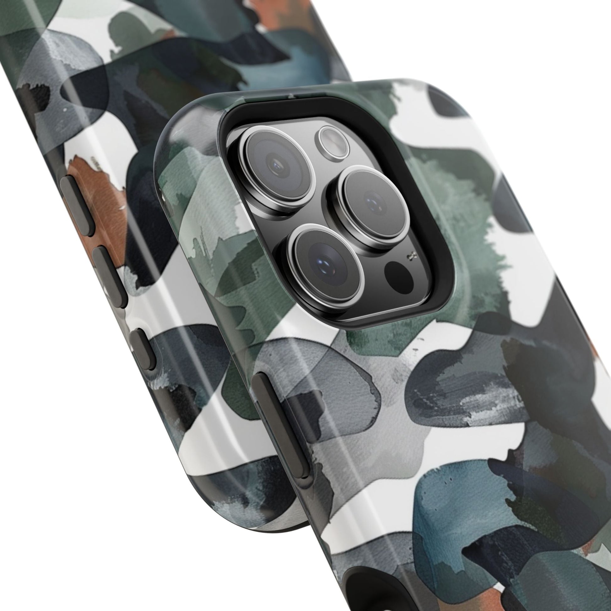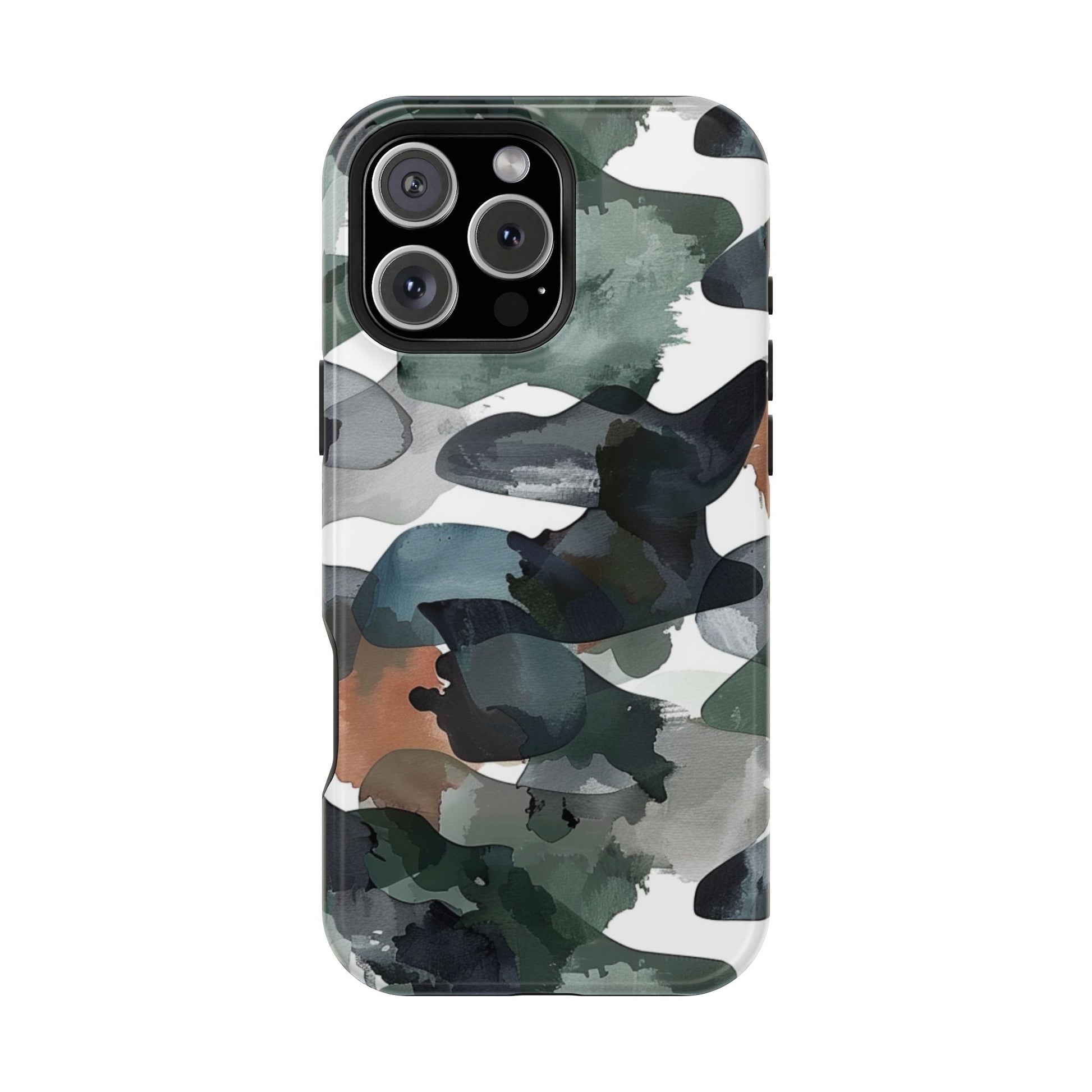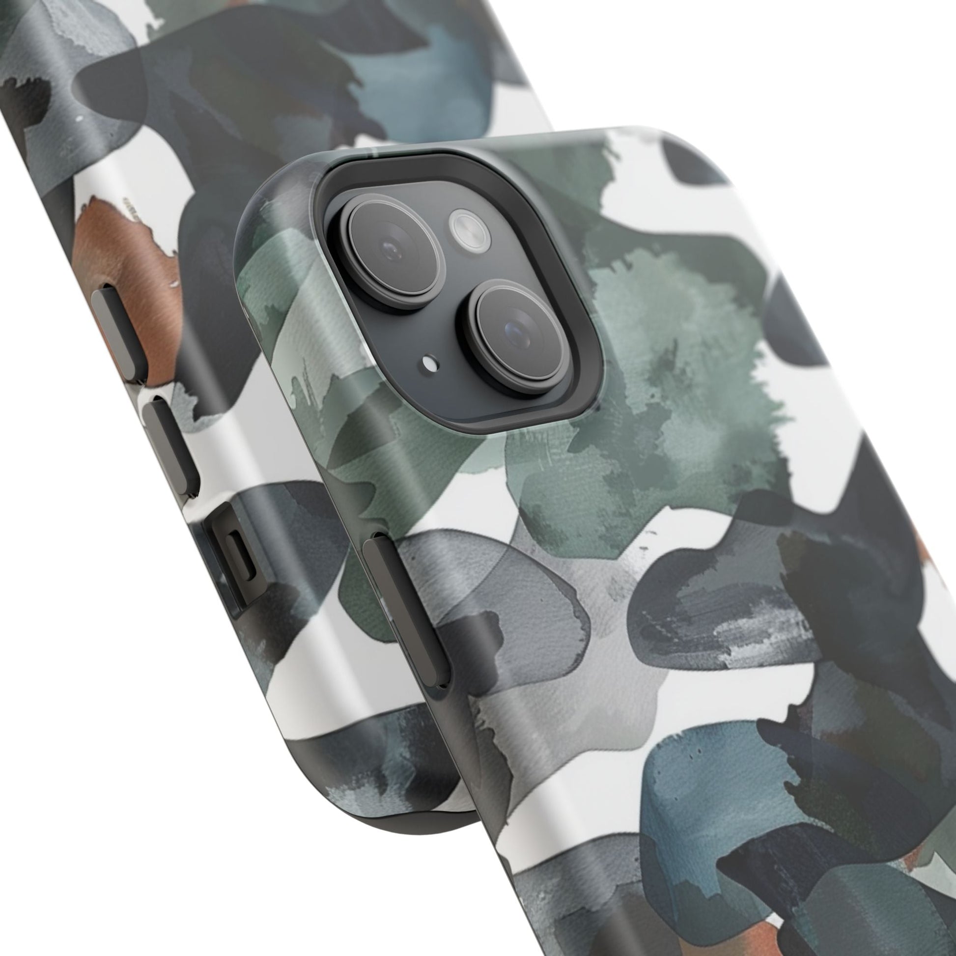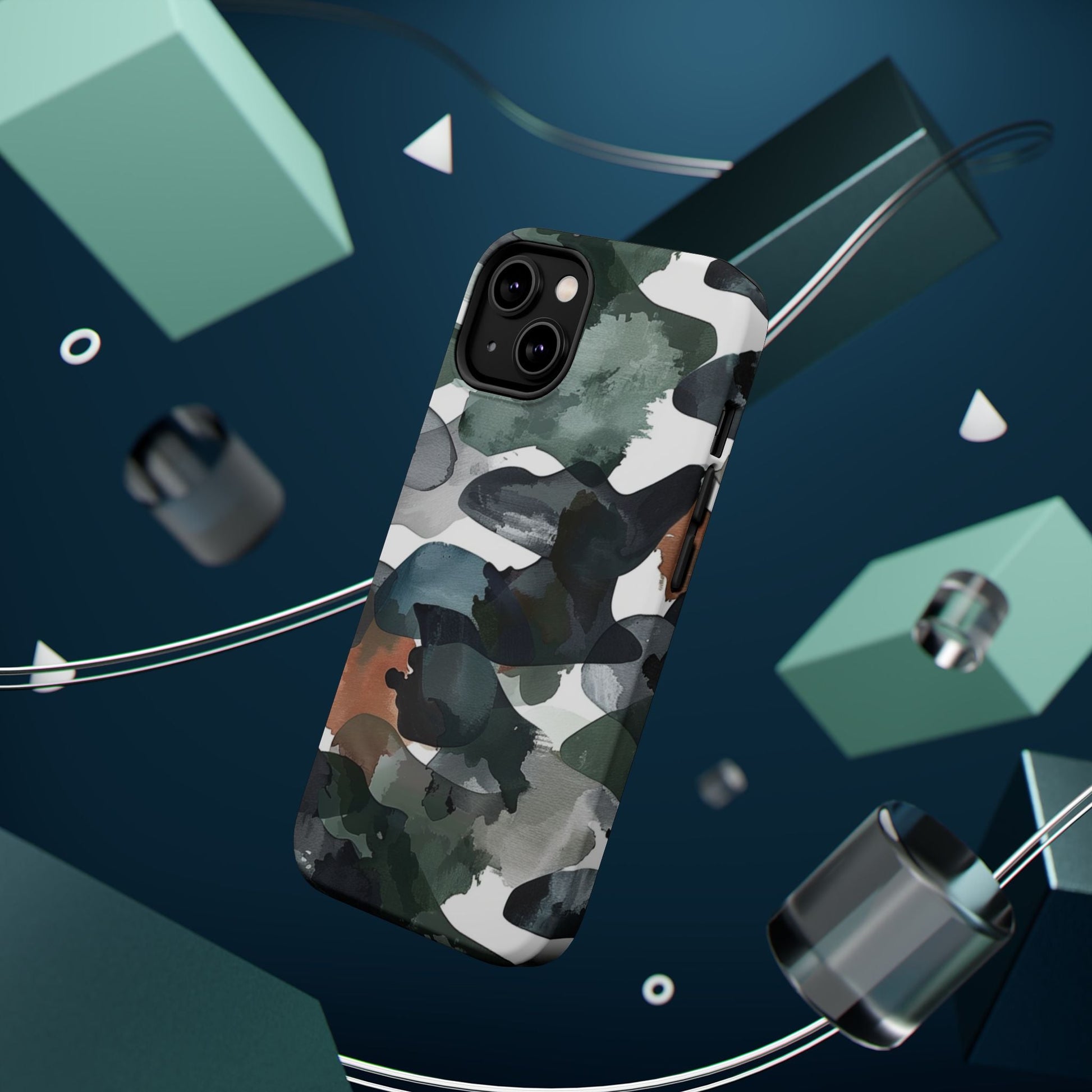 Description: Transform your iPhone into a modern masterpiece with the Moody Abstract Watercolor MagSafe Case. Featuring a stunning interplay of dark green, earthy brown, and rich charcoal tones, this case is as stylish as it is functional. Designed to work seamlessly with MagSafe technology, it ensures effortless charging while providing premium protection for your device.