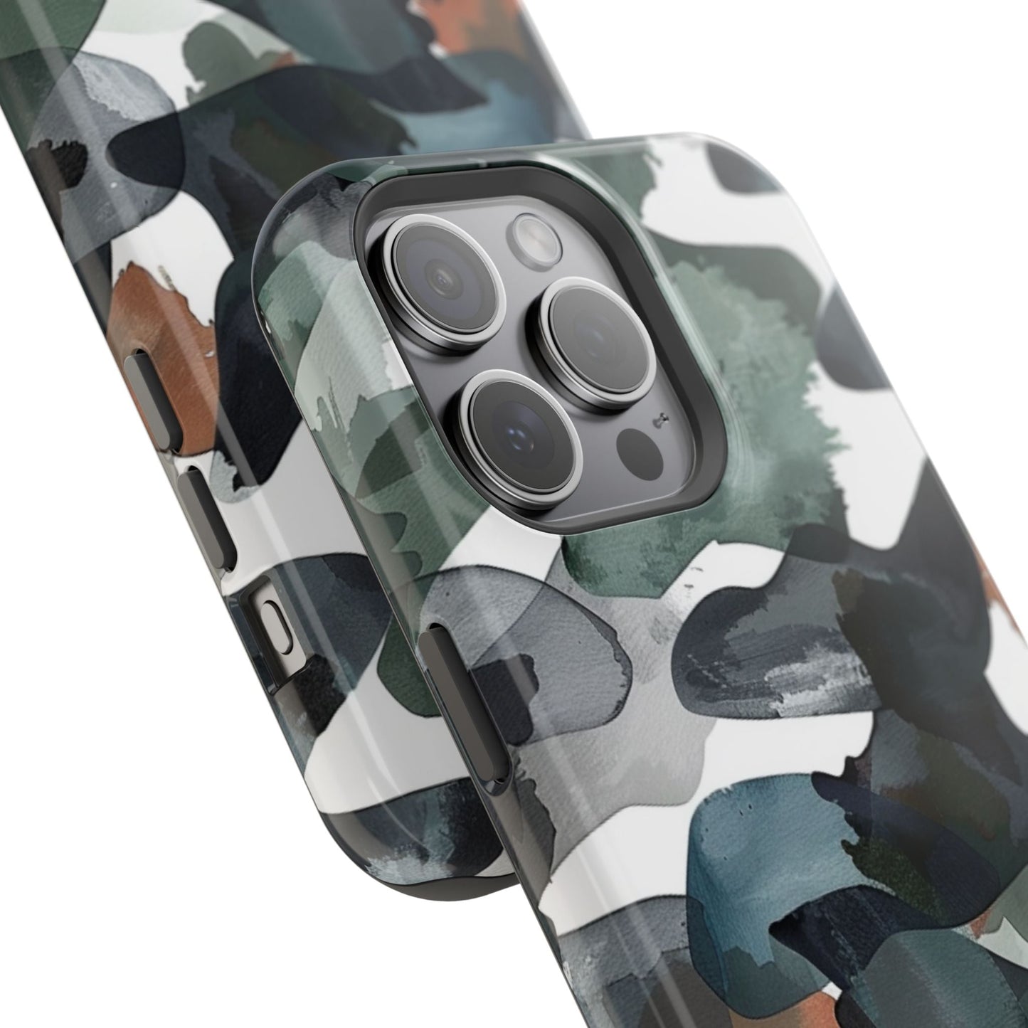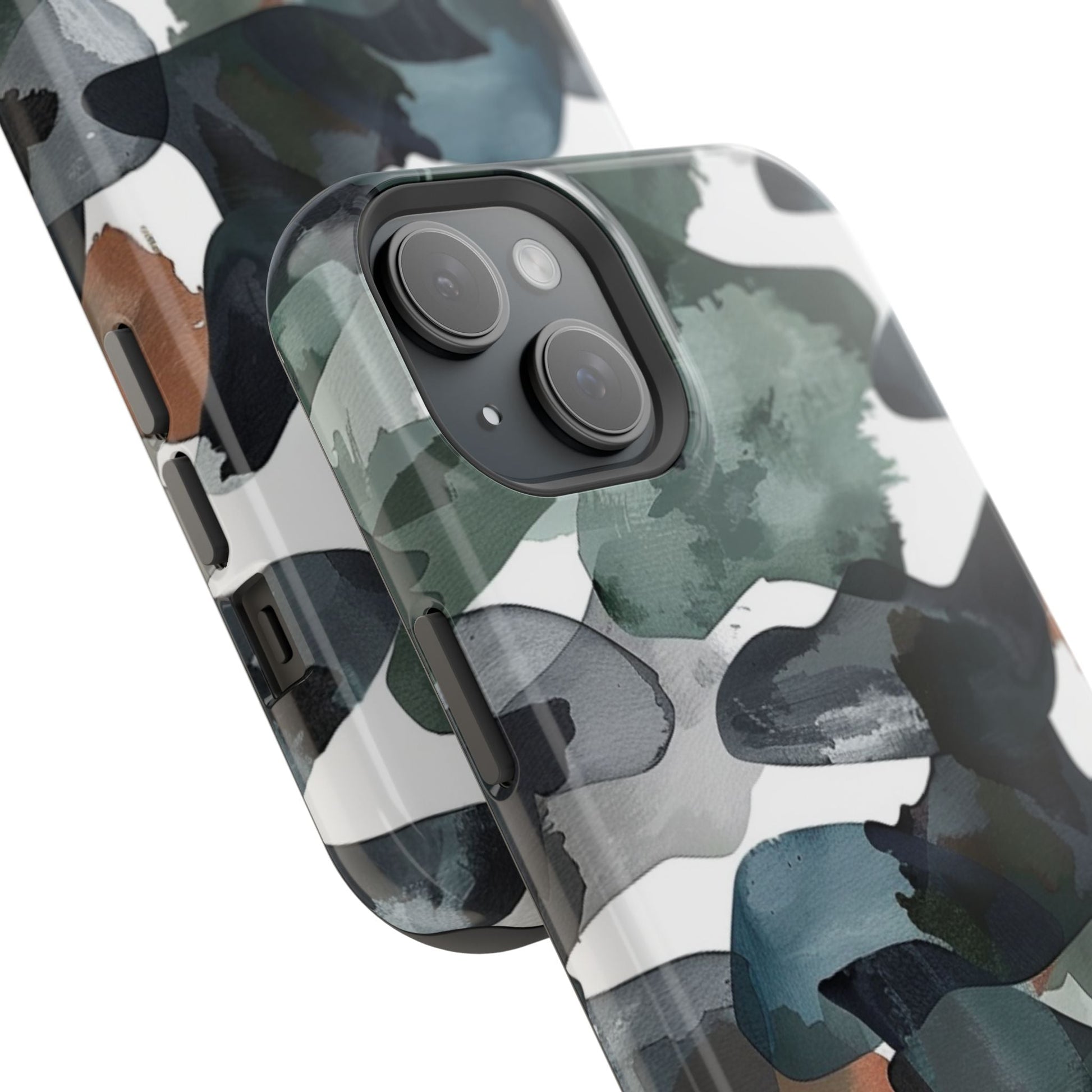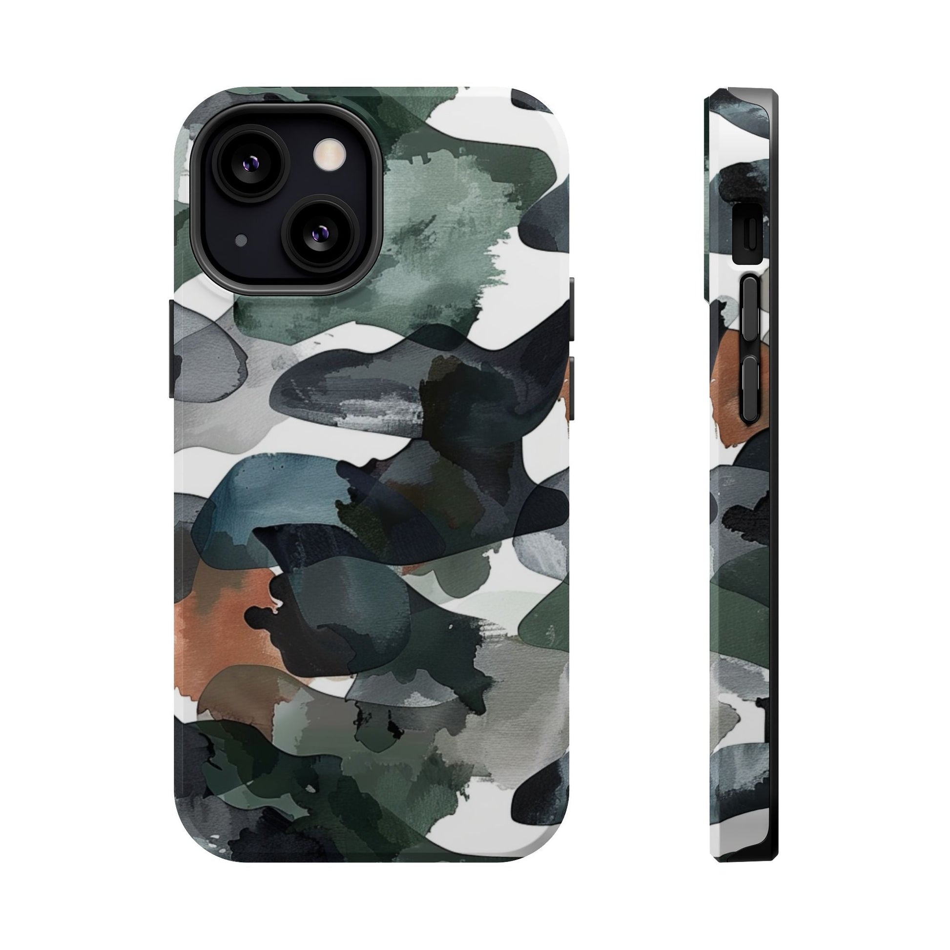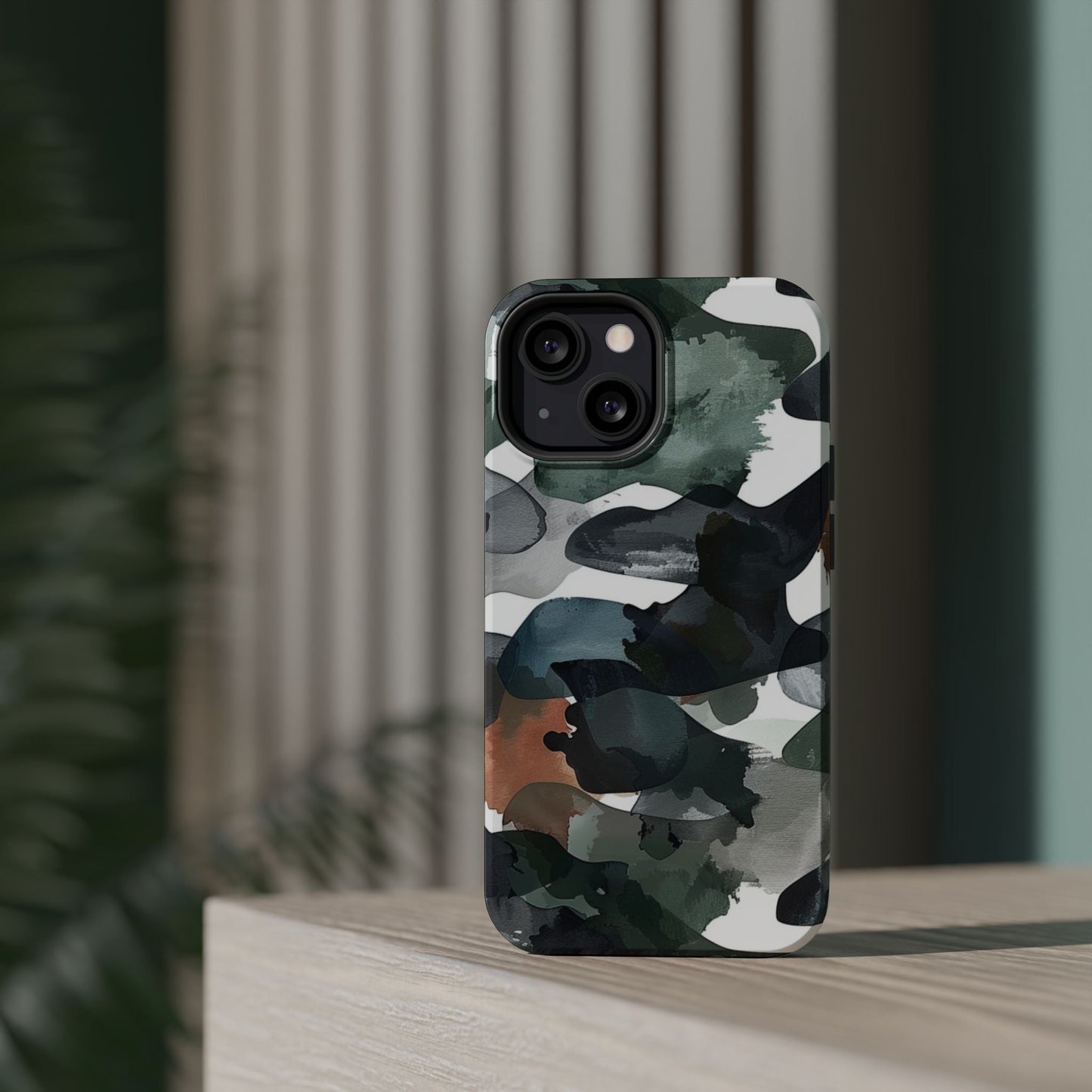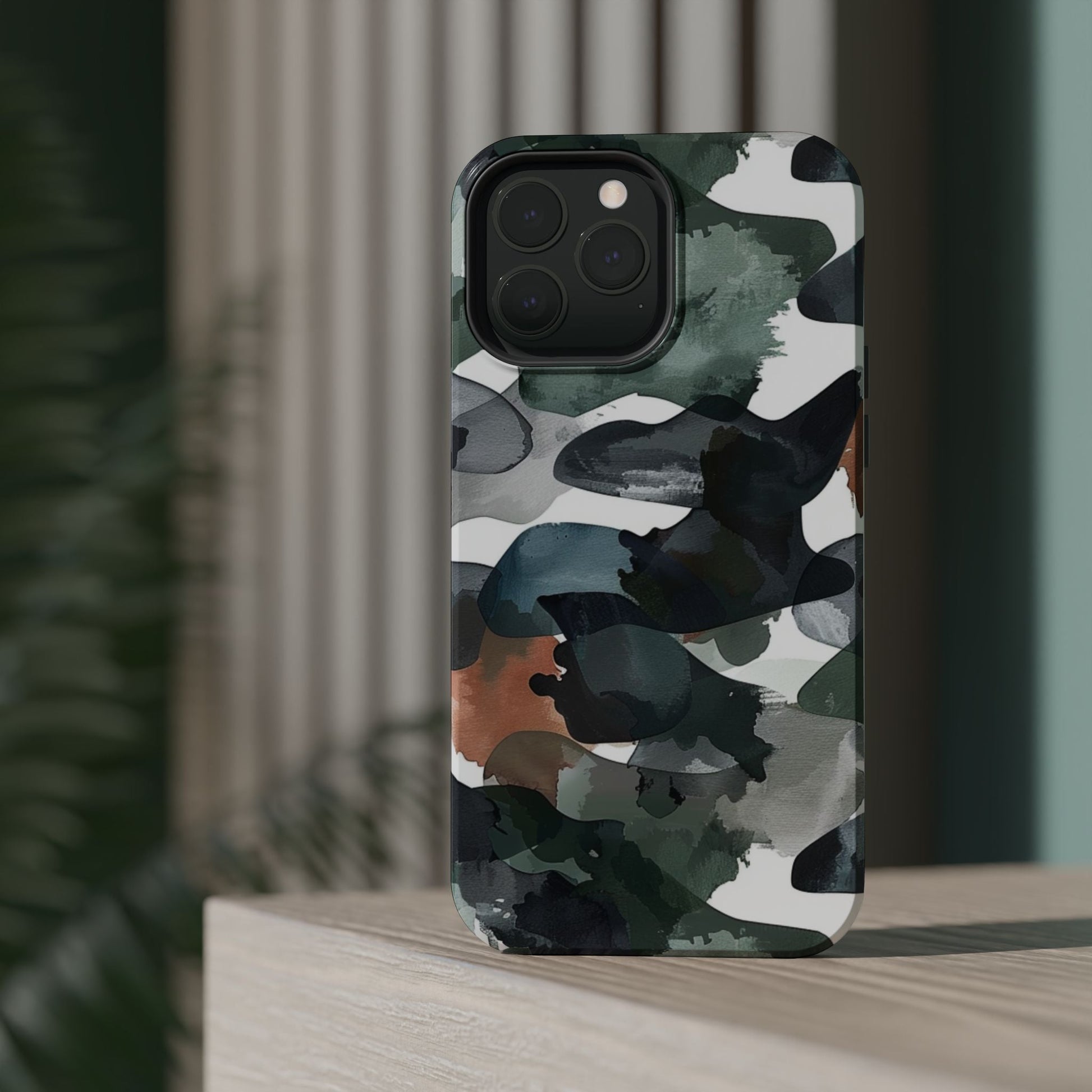 Moody Abstract Watercolor MagSafe Case – Dark Green and Earthy Brown with MagSafe Compatibility