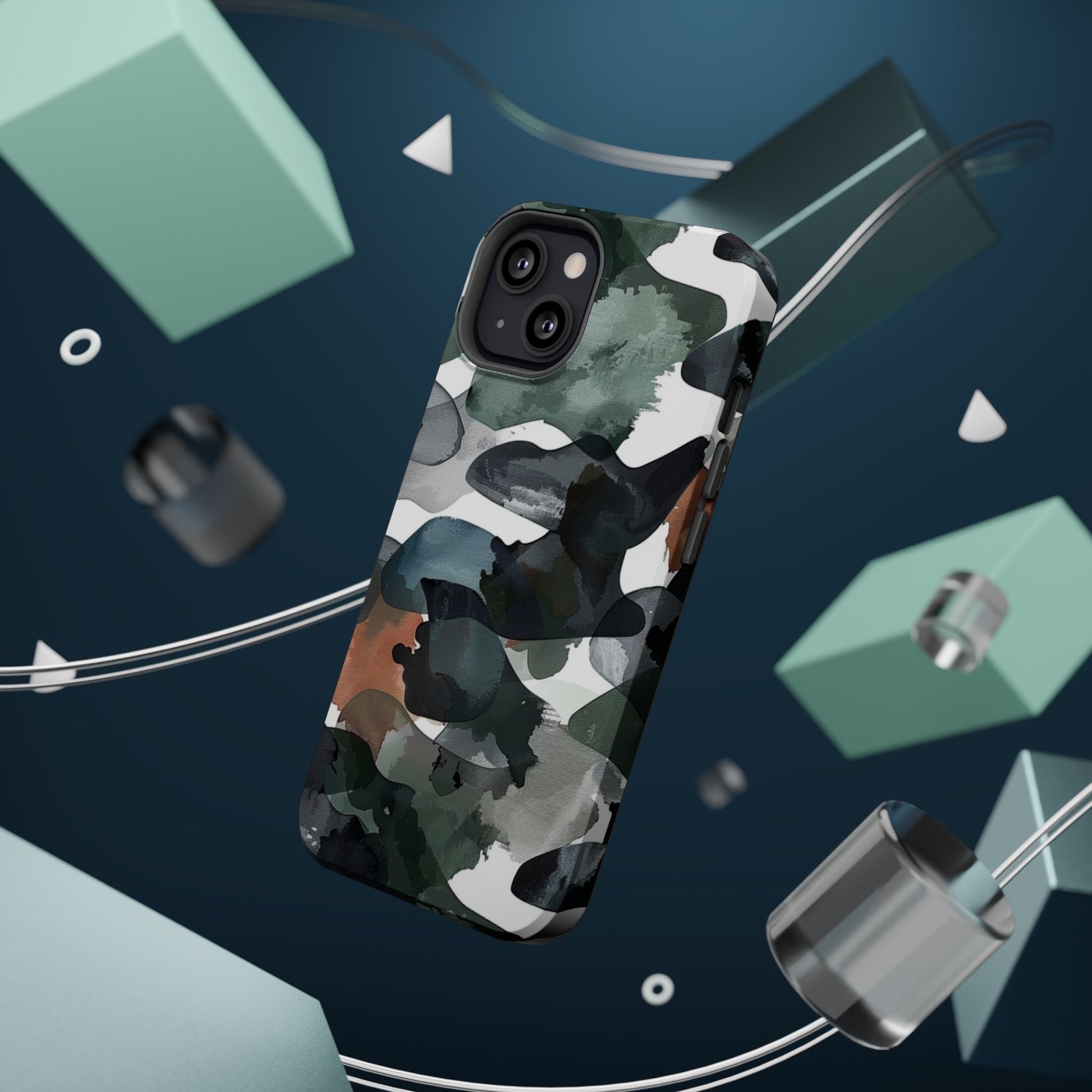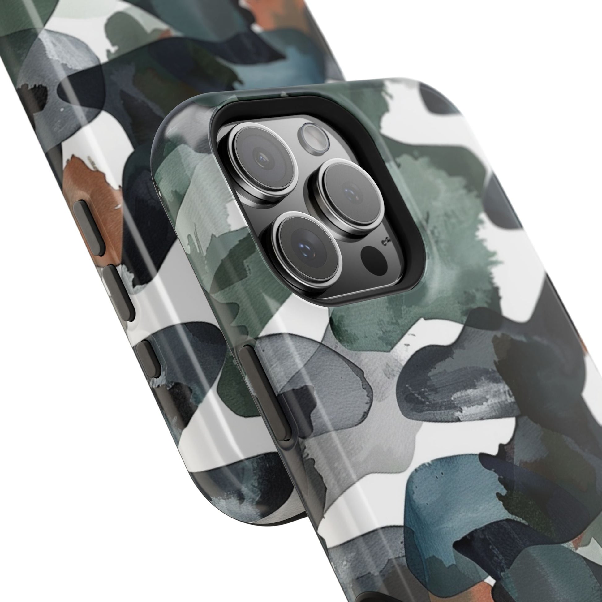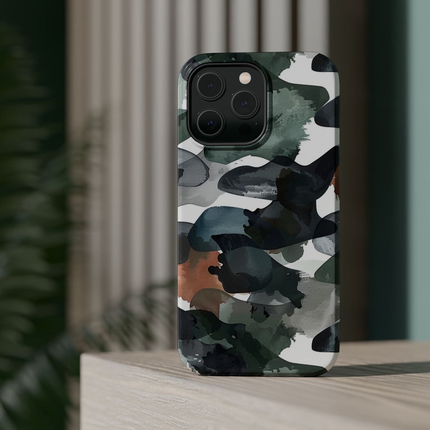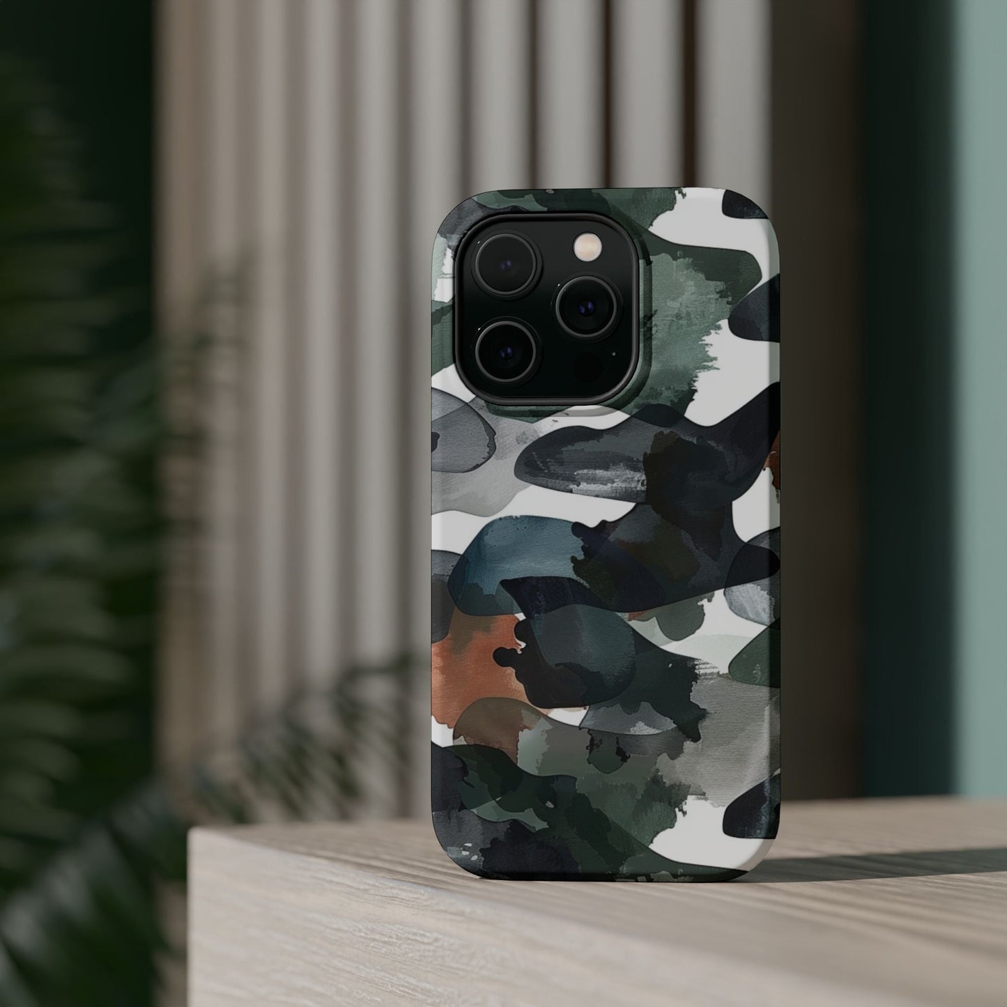 Moody Abstract Watercolor MagSafe Case – Dark Green and Earthy Brown with MagSafe Compatibility