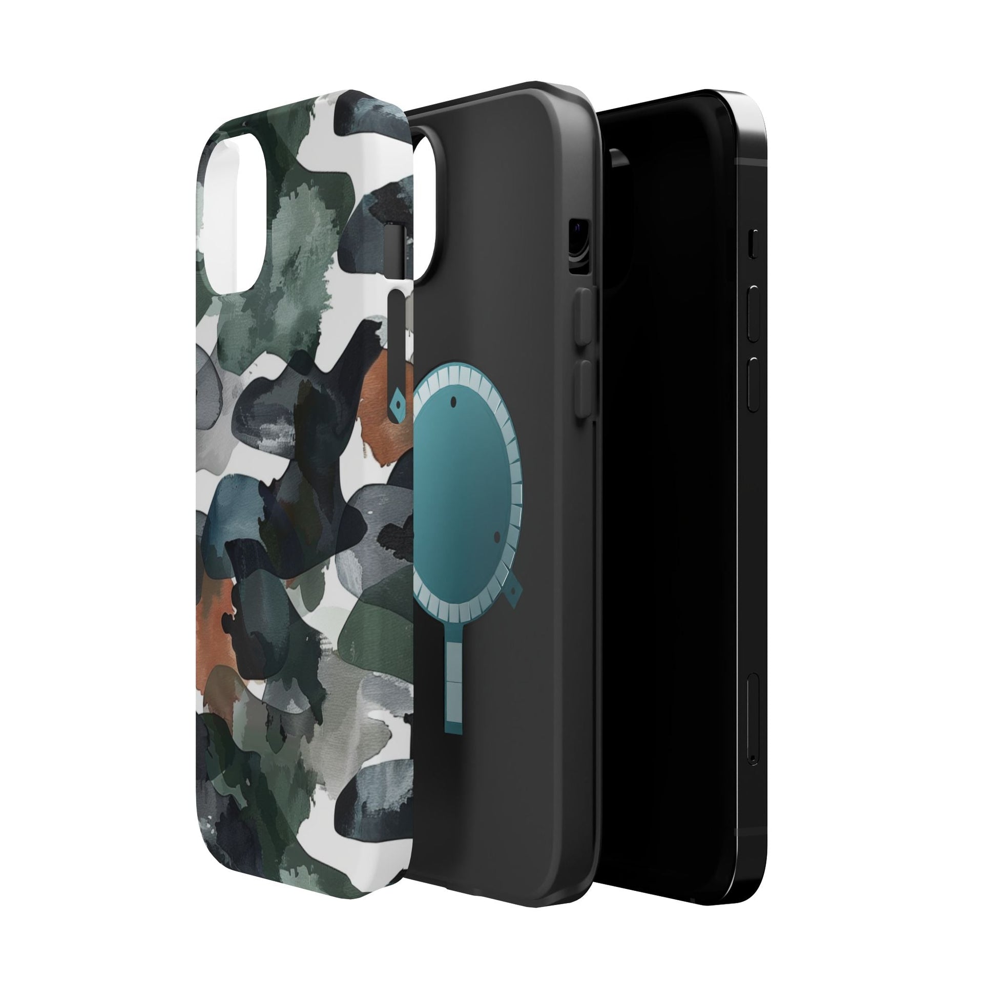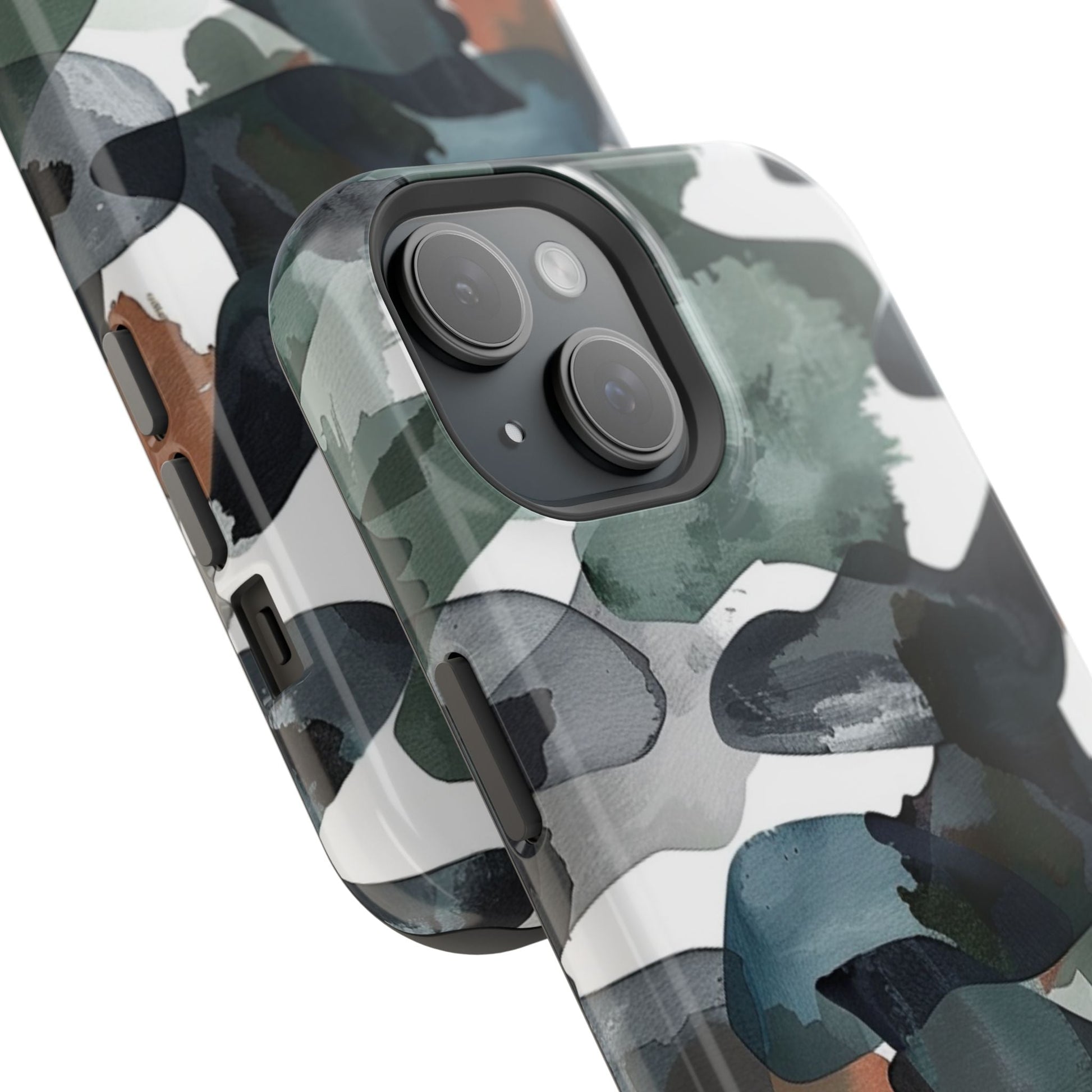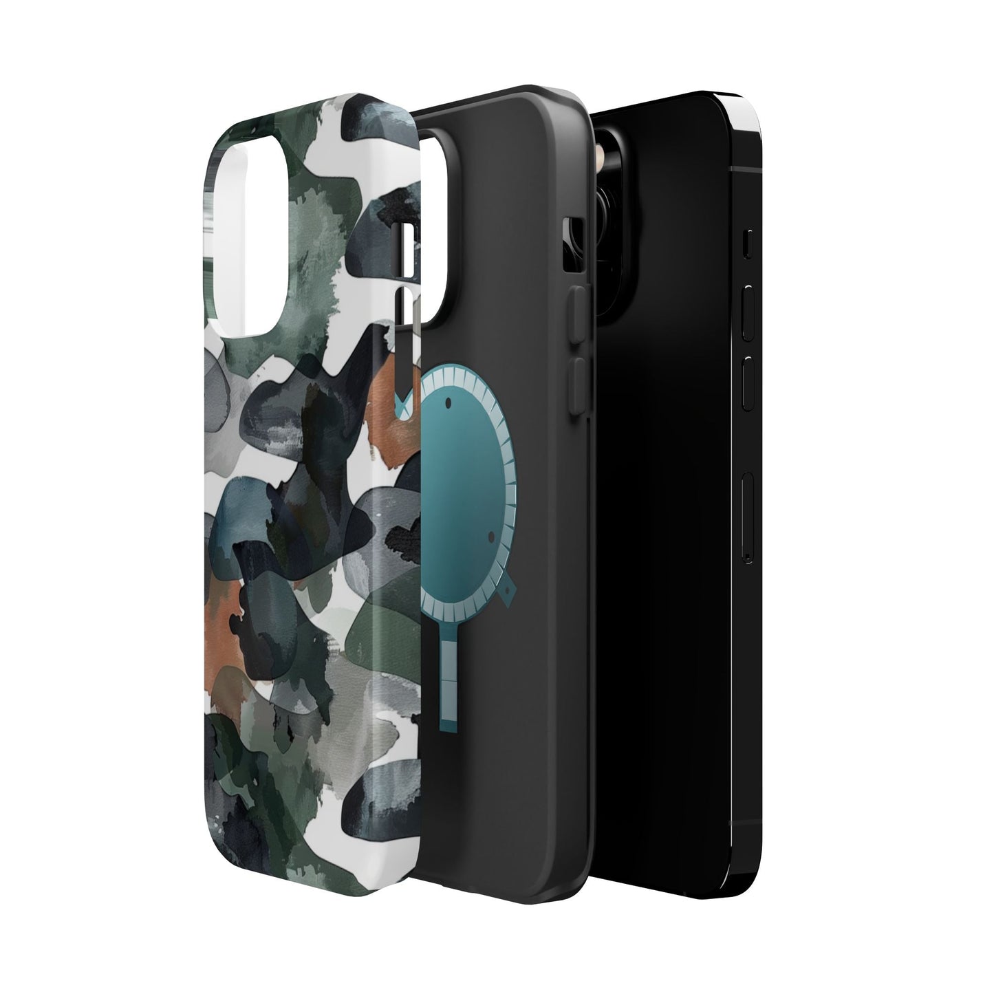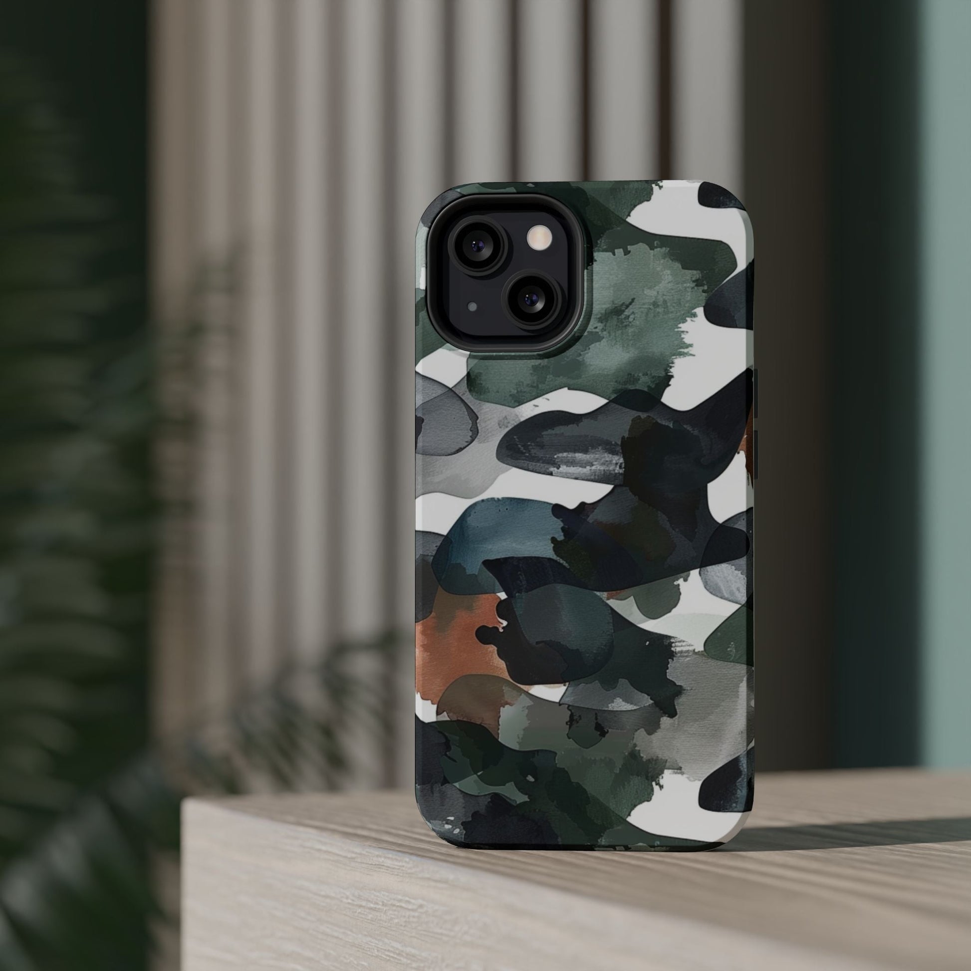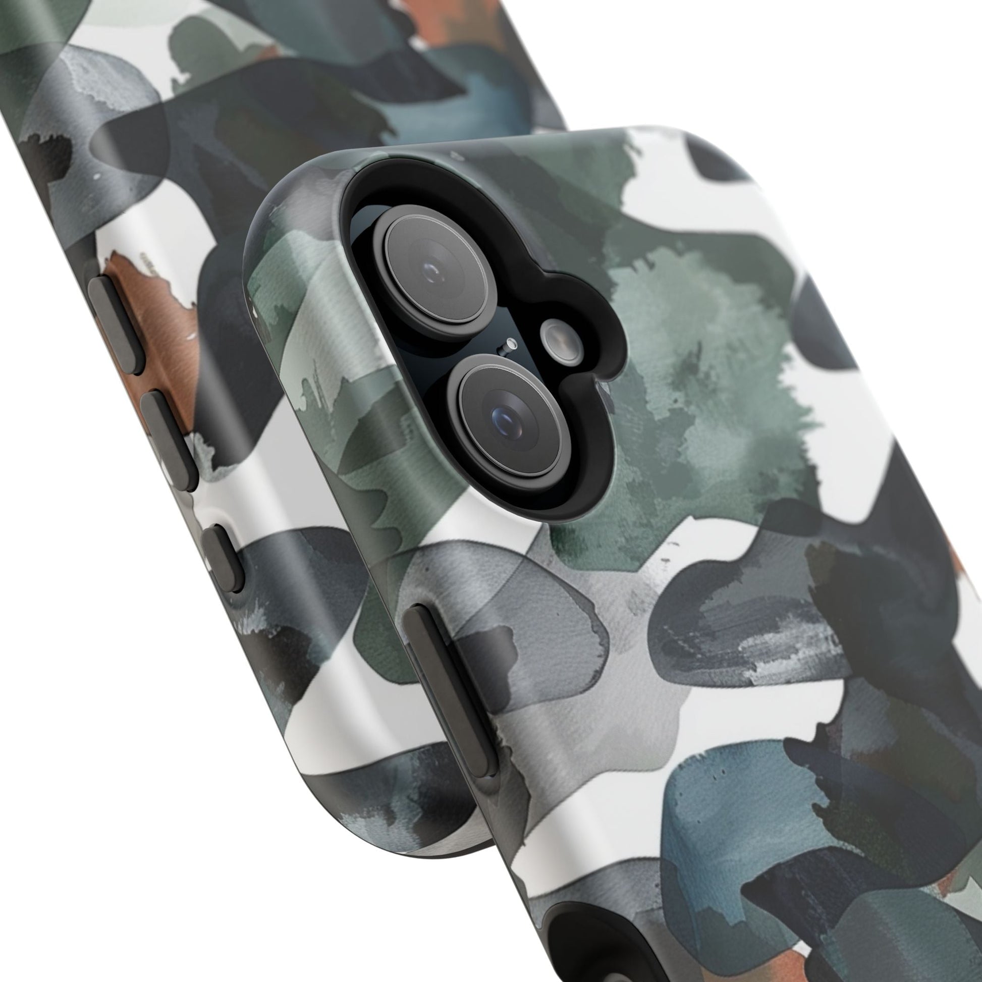 Moody Abstract Watercolor MagSafe Case – Dark Green and Earthy Brown with MagSafe Compatibility