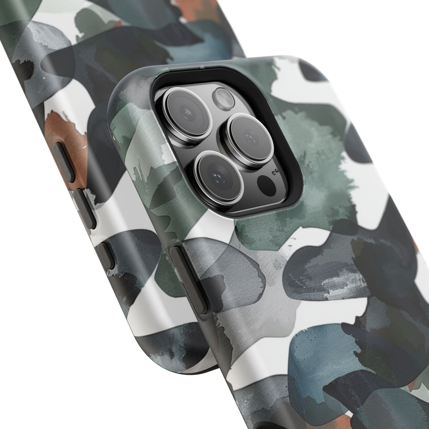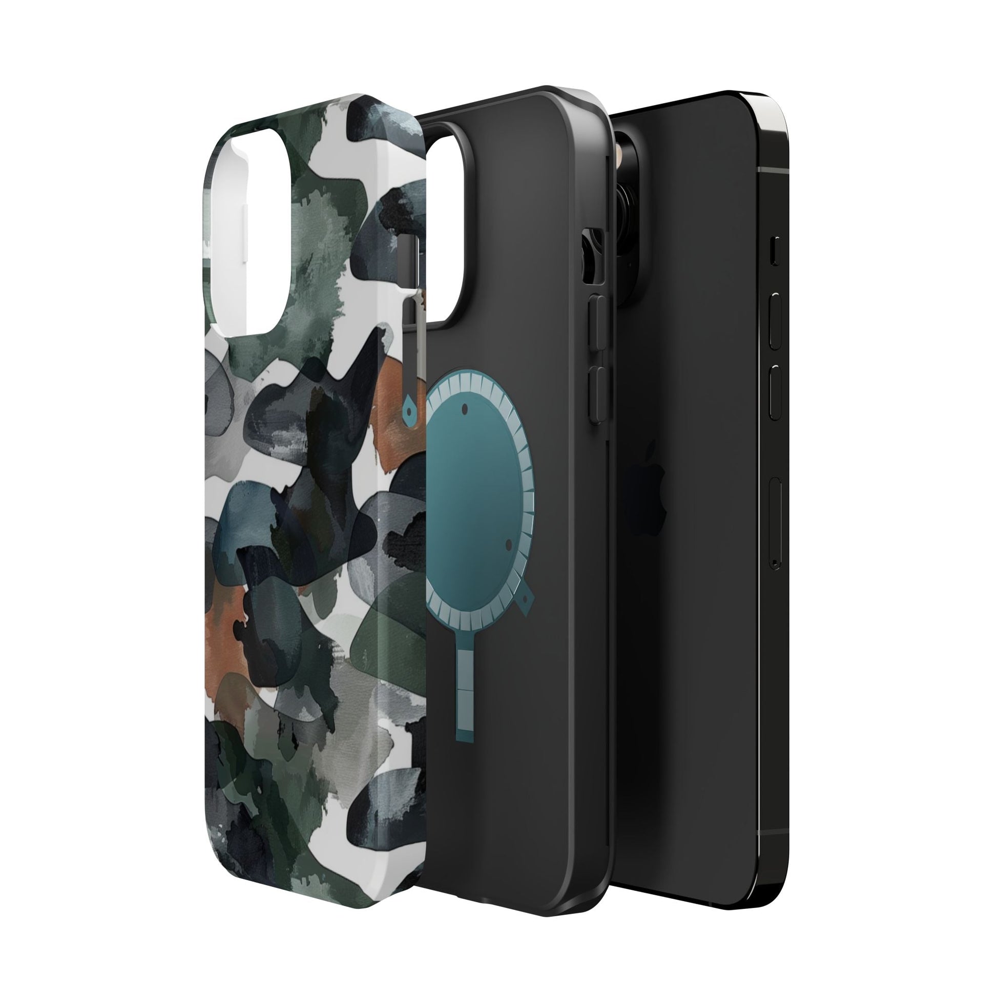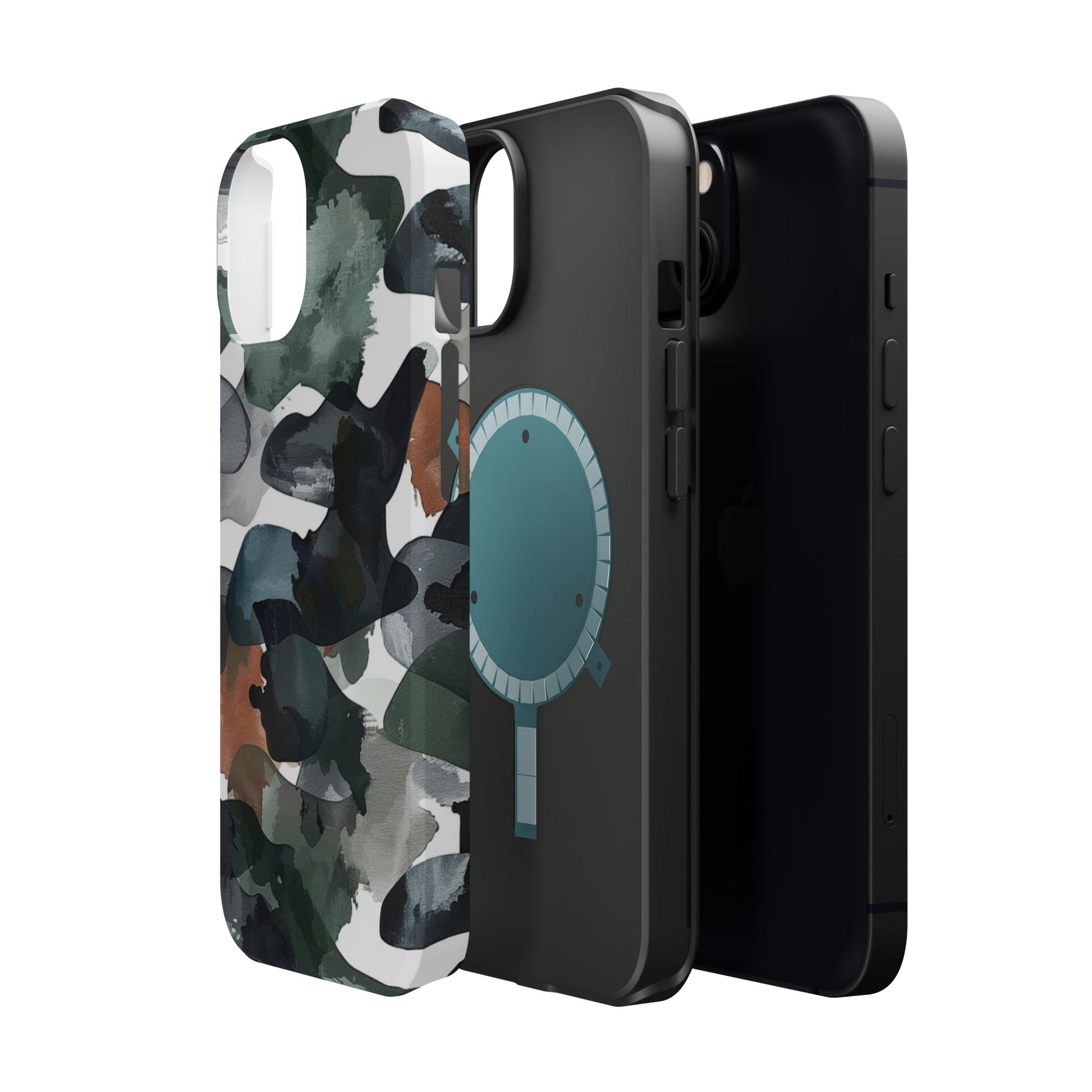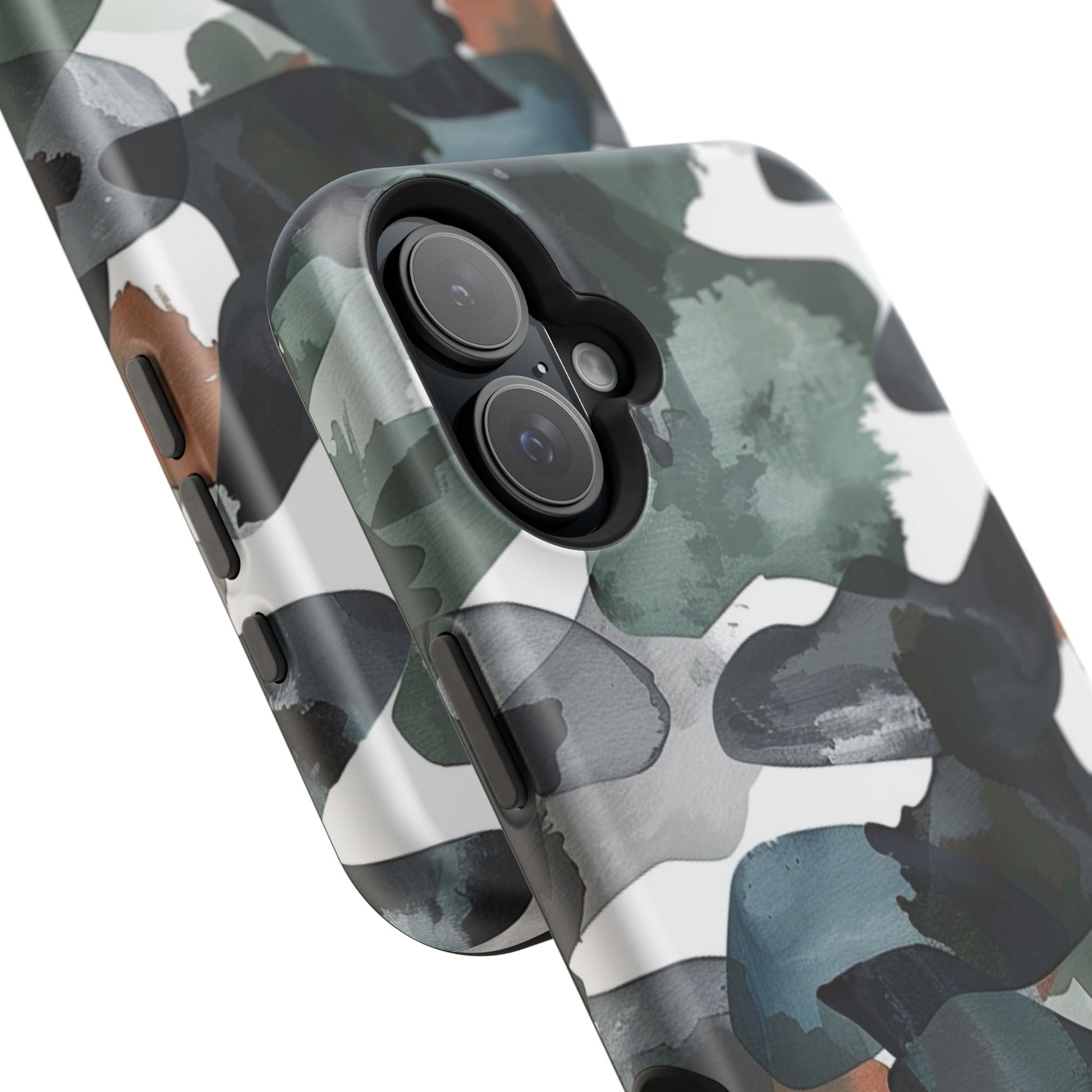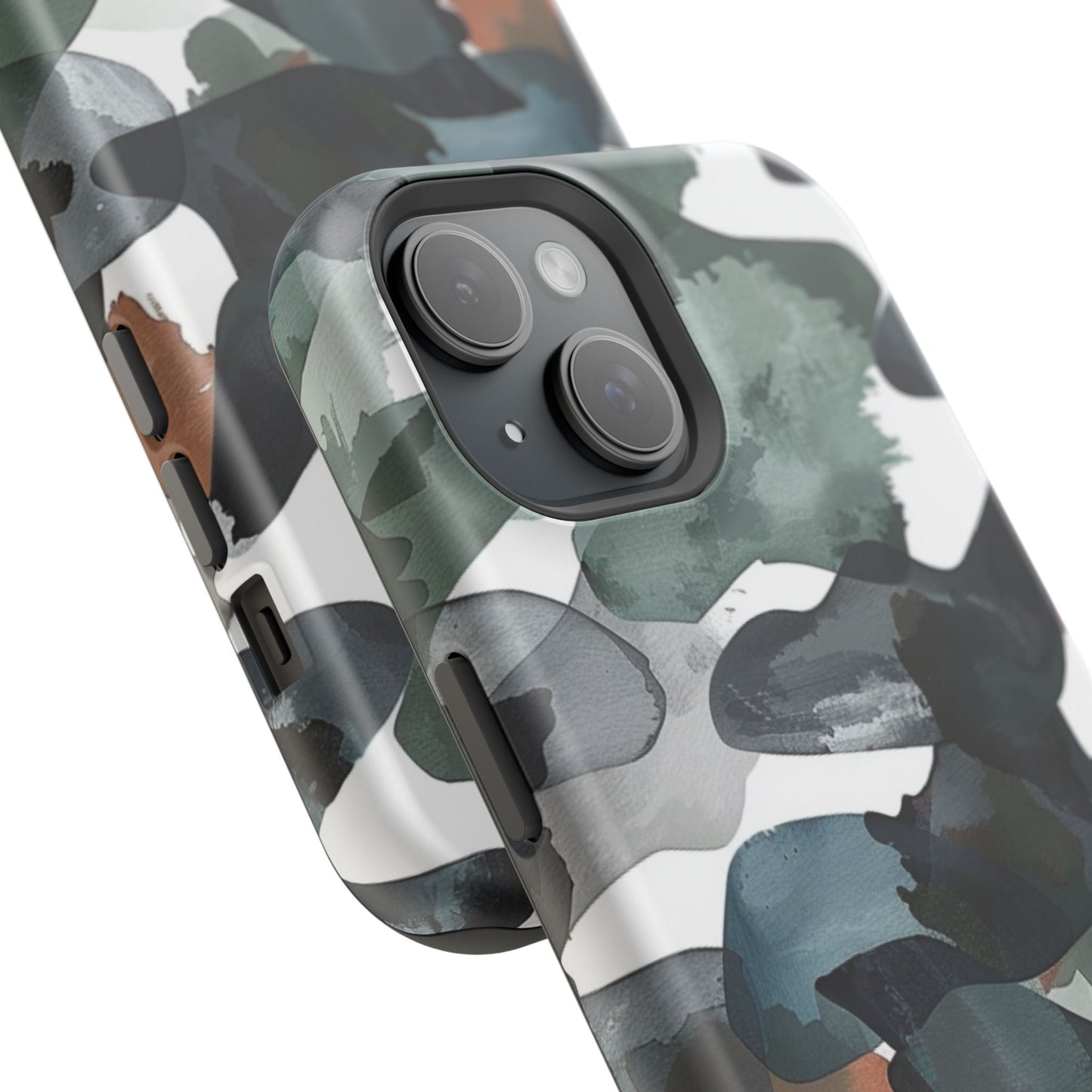 Moody Abstract Watercolor MagSafe Case – Dark Green and Earthy Brown with MagSafe Compatibility