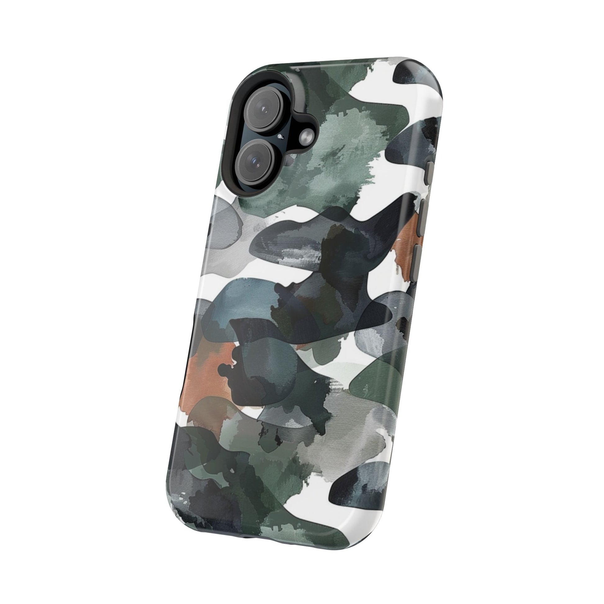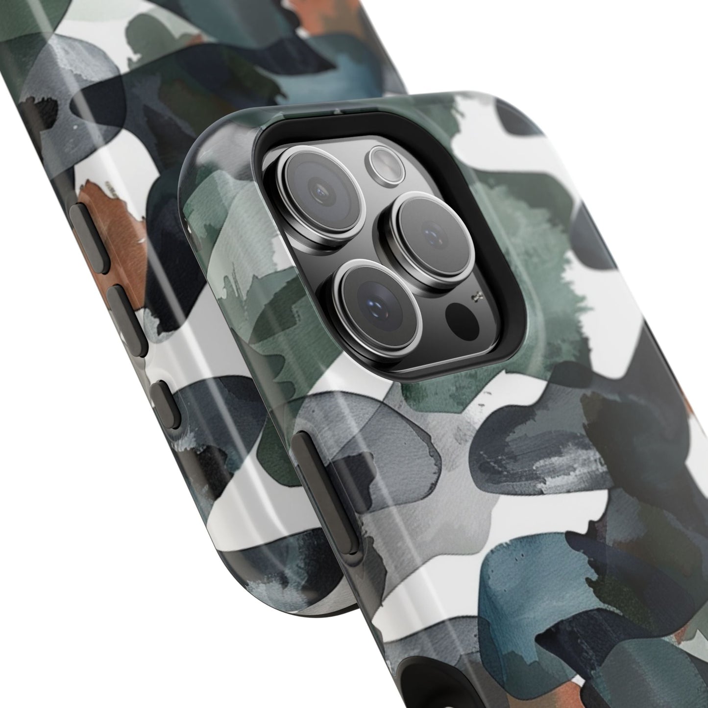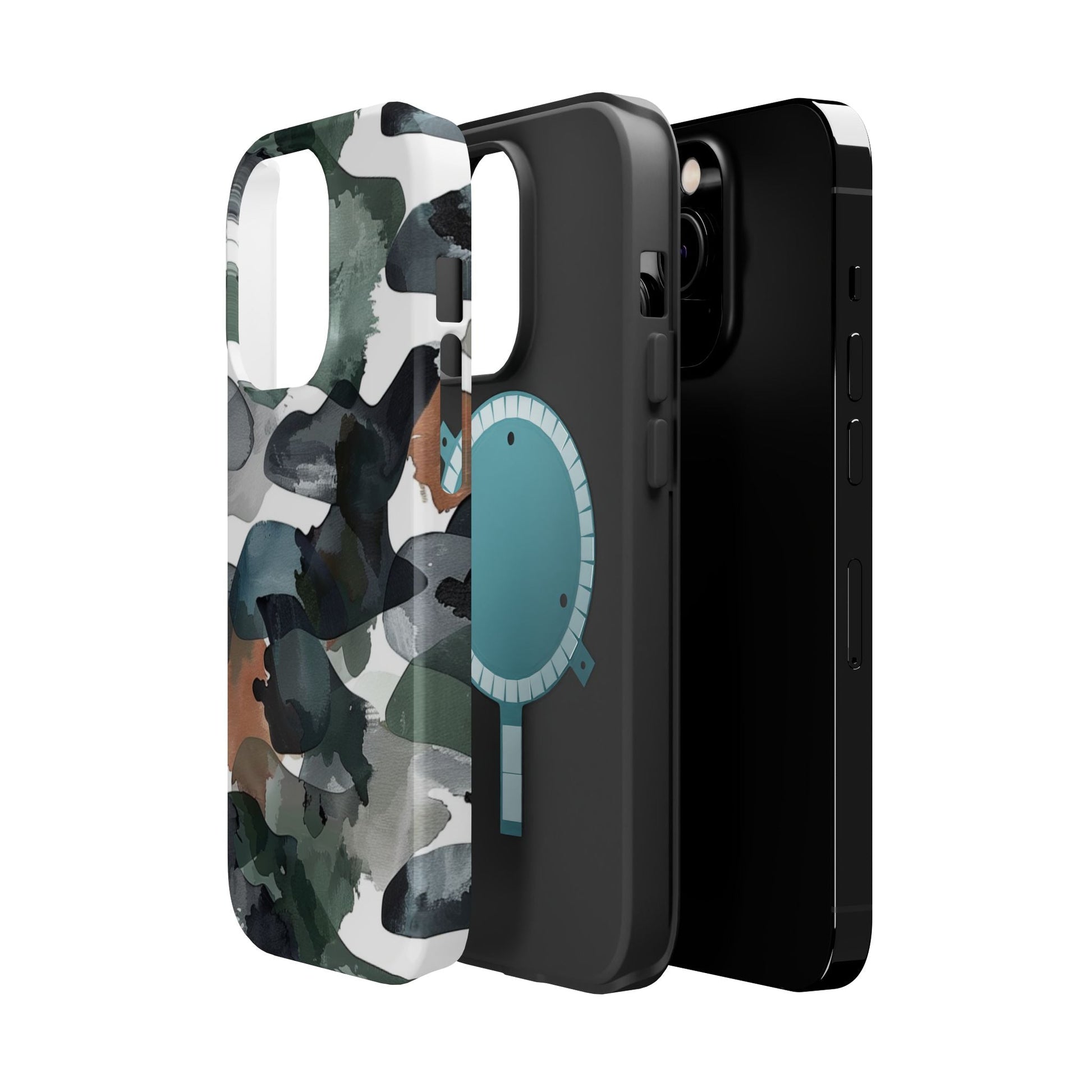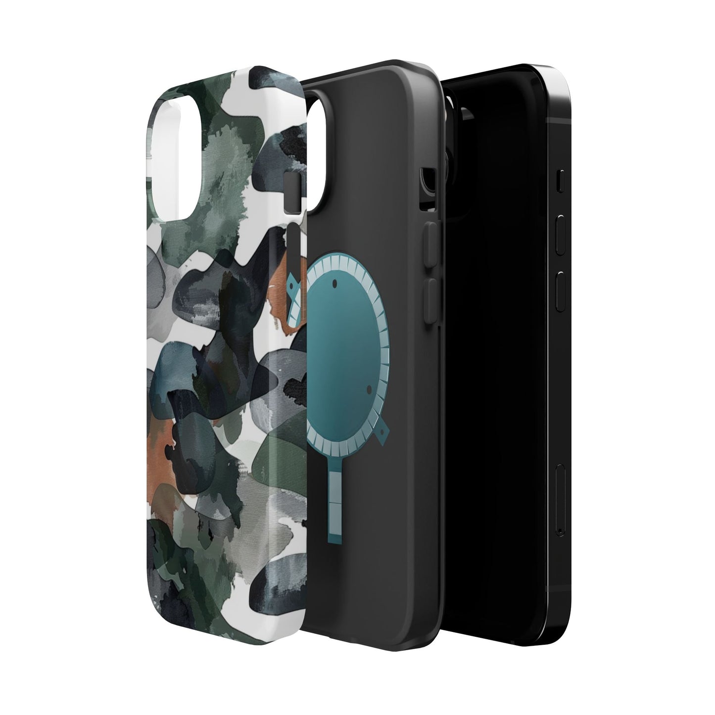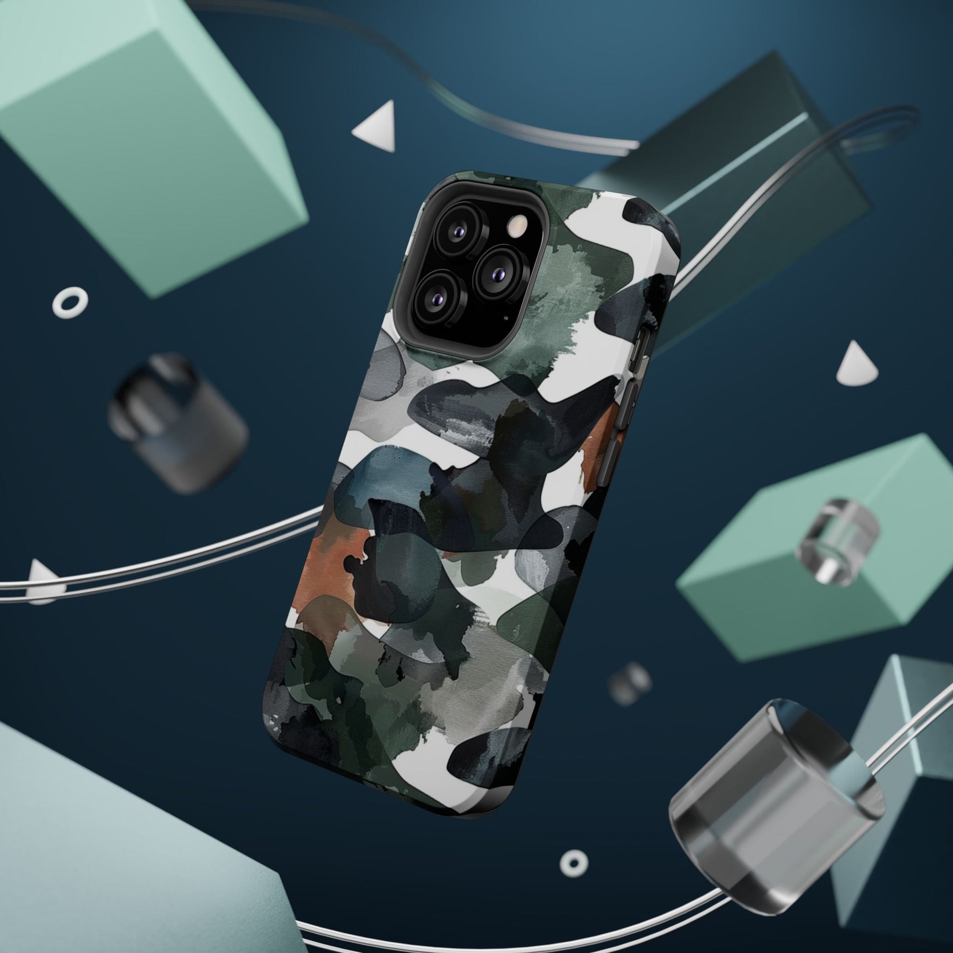 Moody Abstract Watercolor MagSafe Case – Dark Green and Earthy Brown with MagSafe Compatibility