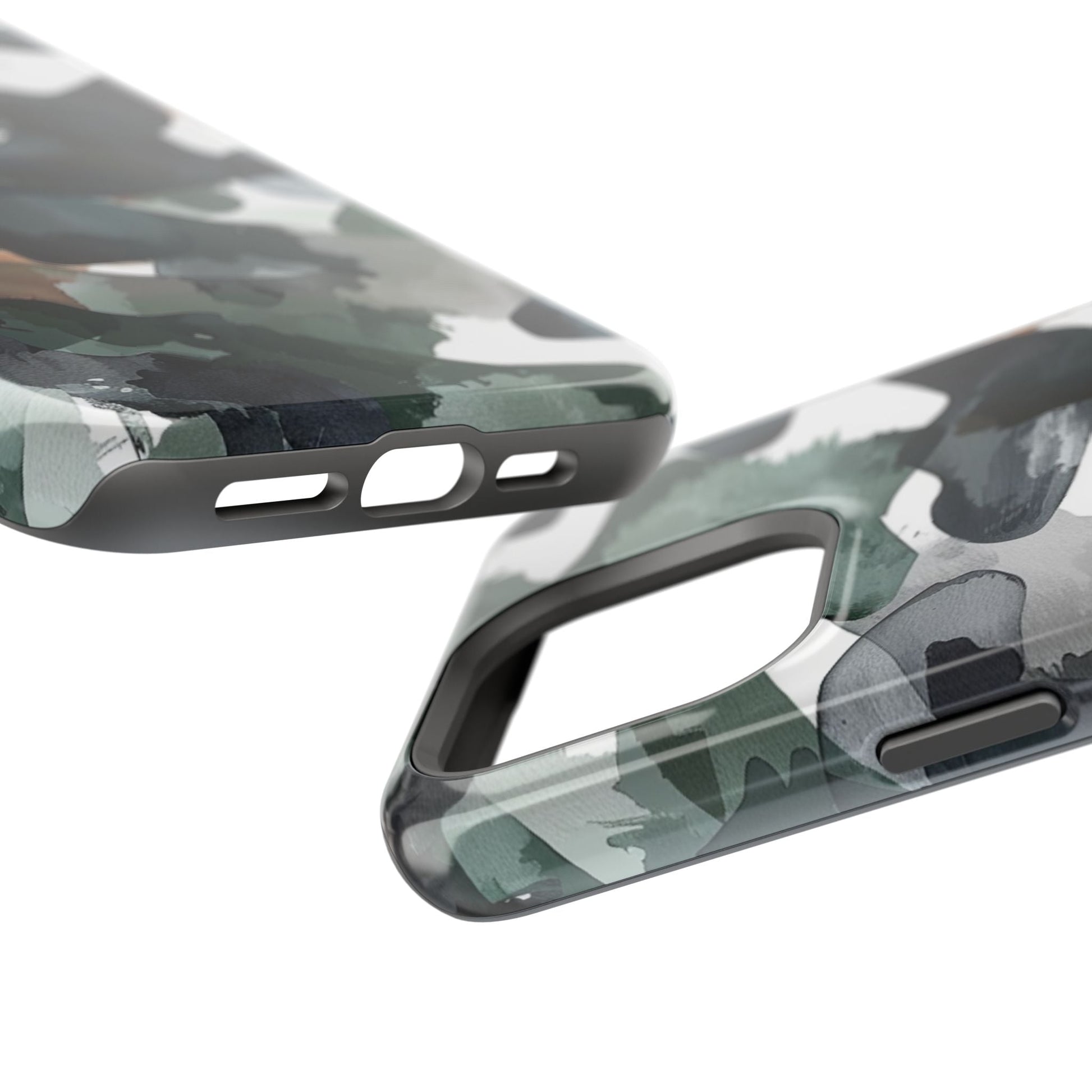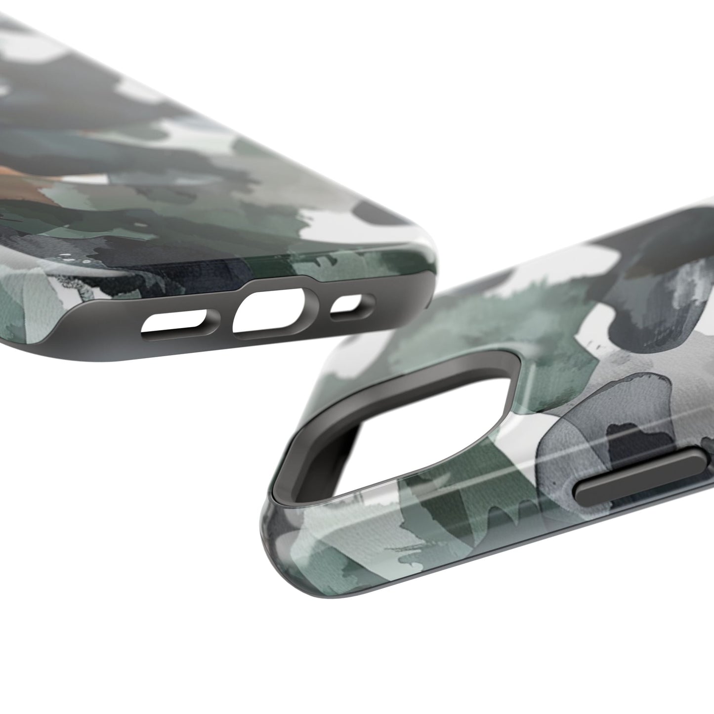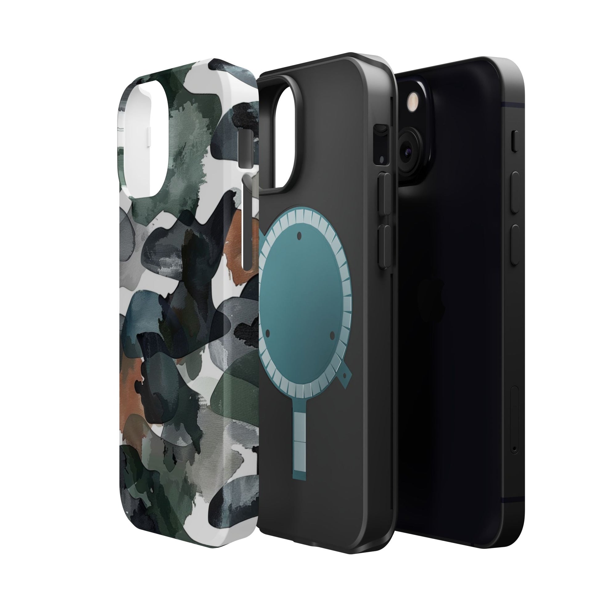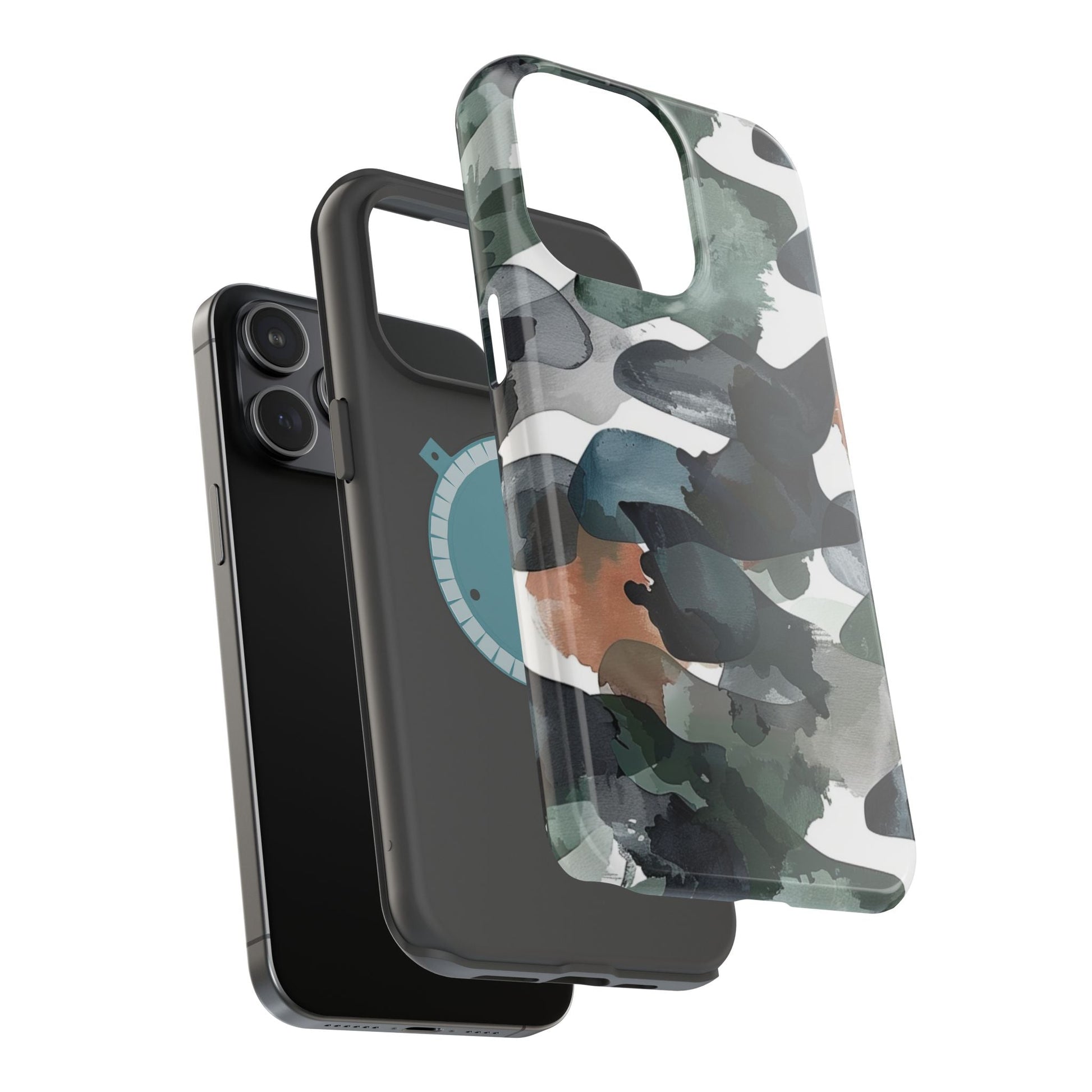 Moody Abstract Watercolor MagSafe Case – Dark Green and Earthy Brown with MagSafe Compatibility