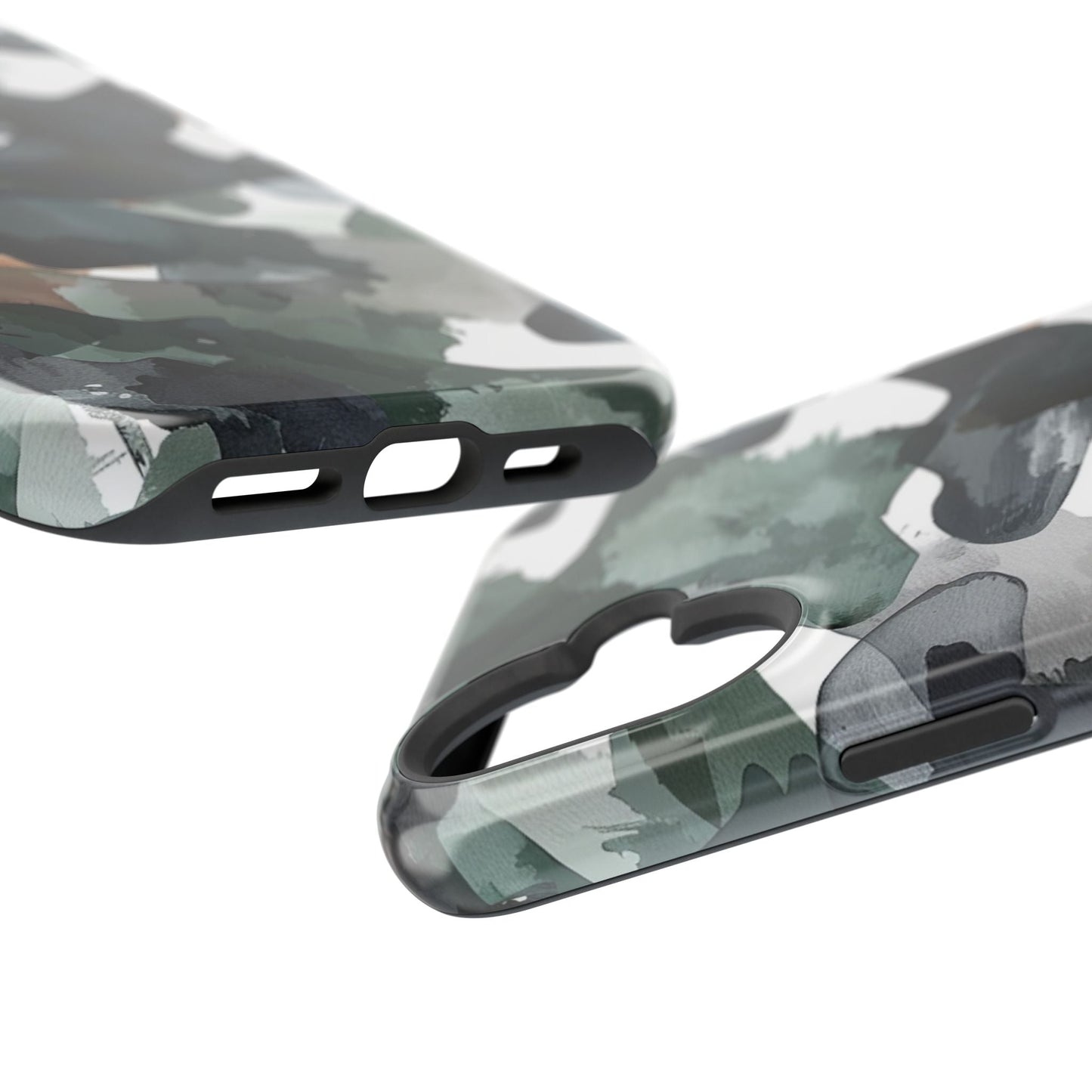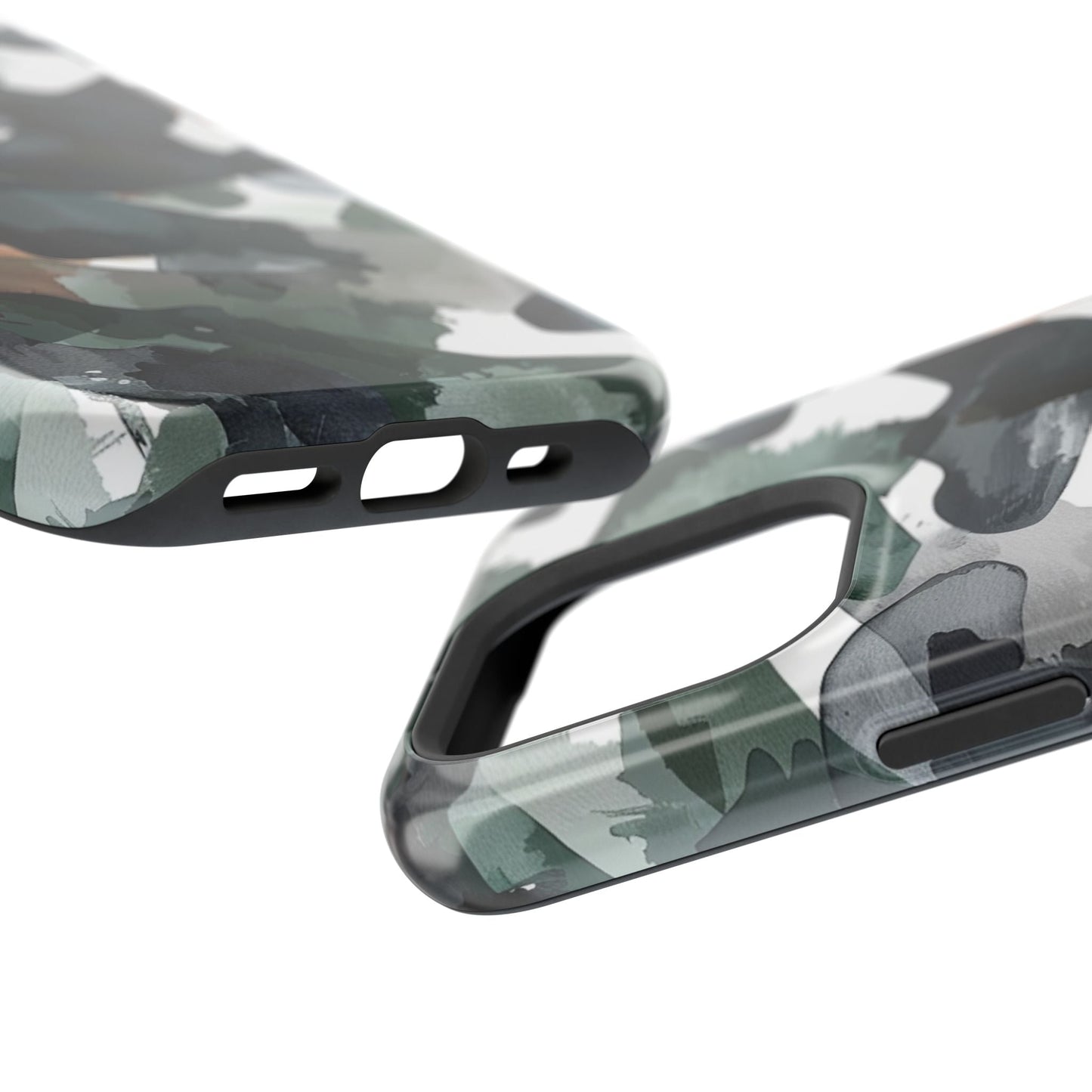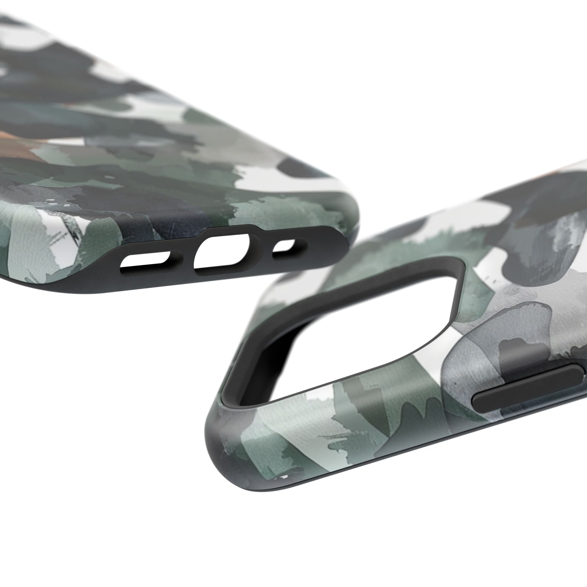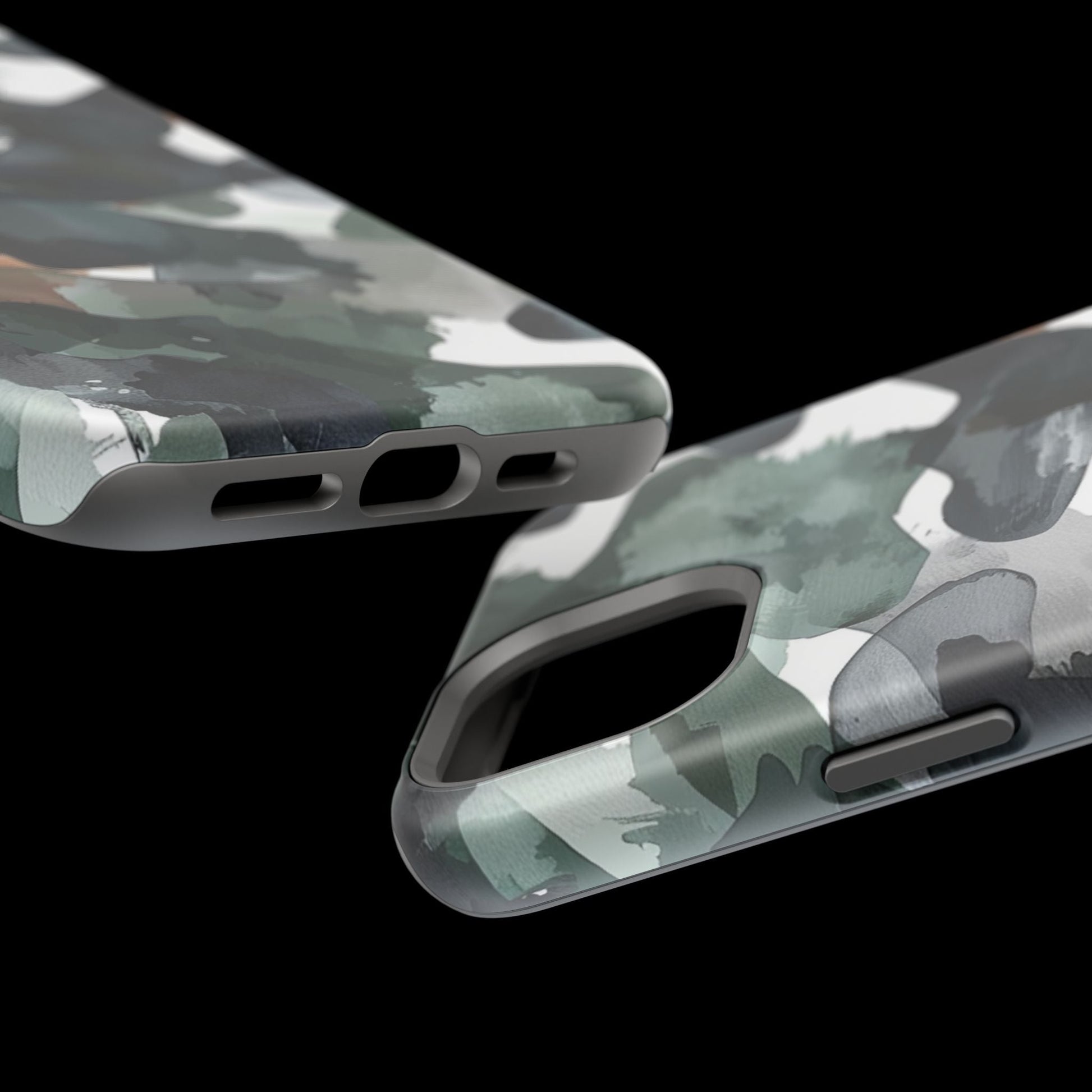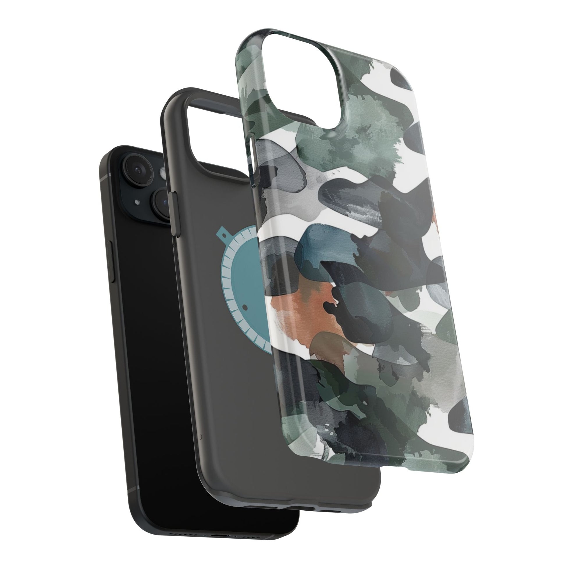 Moody Abstract Watercolor MagSafe Case – Dark Green and Earthy Brown with MagSafe Compatibility