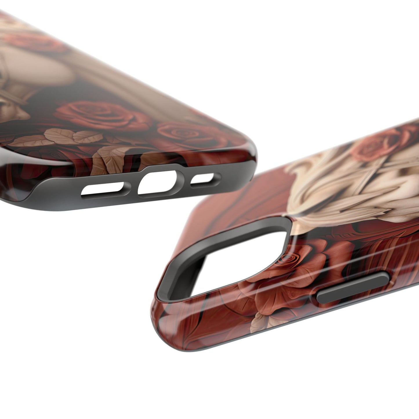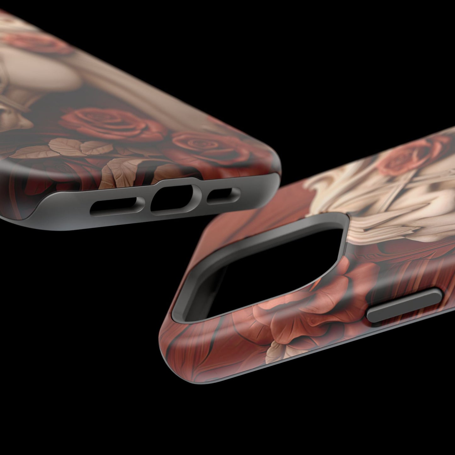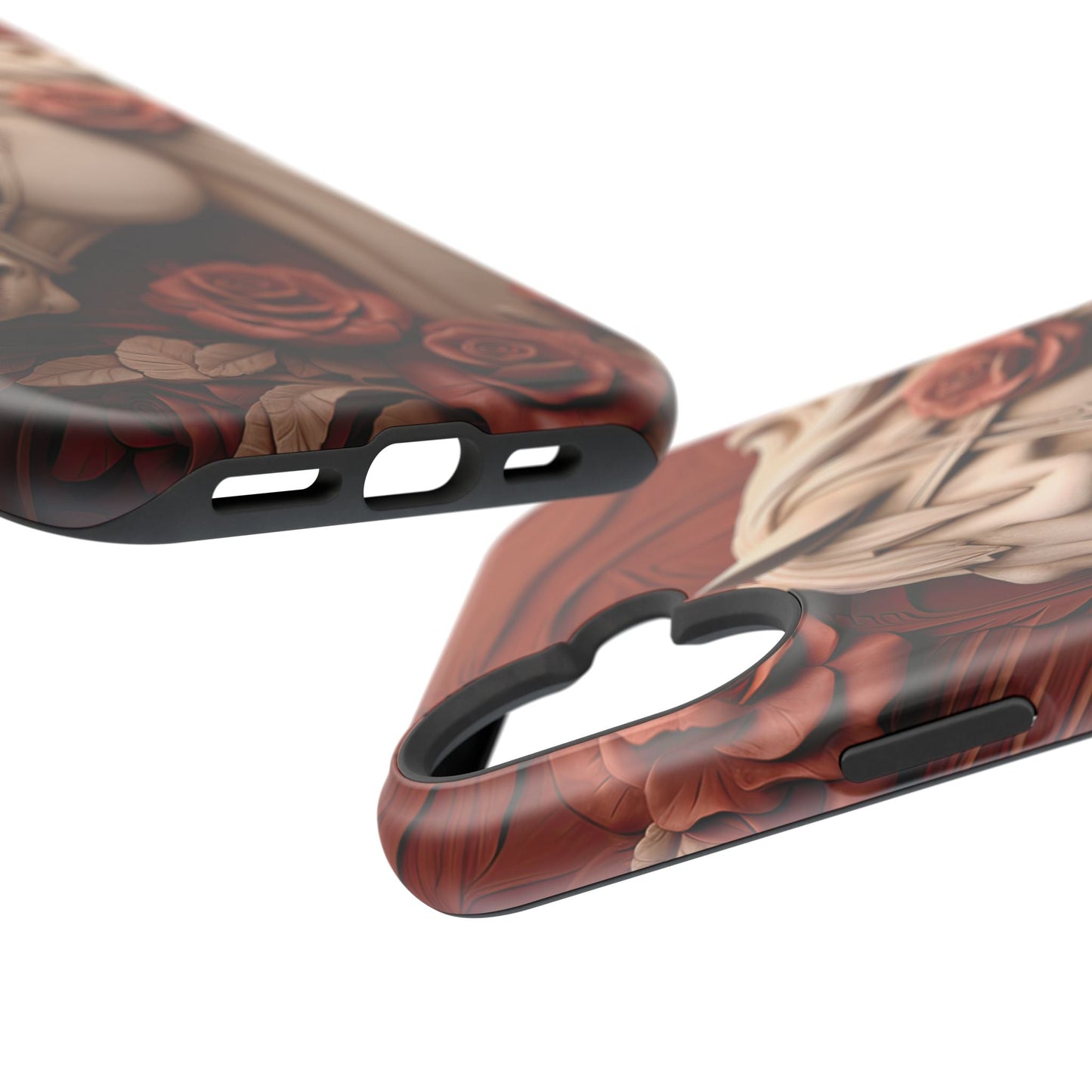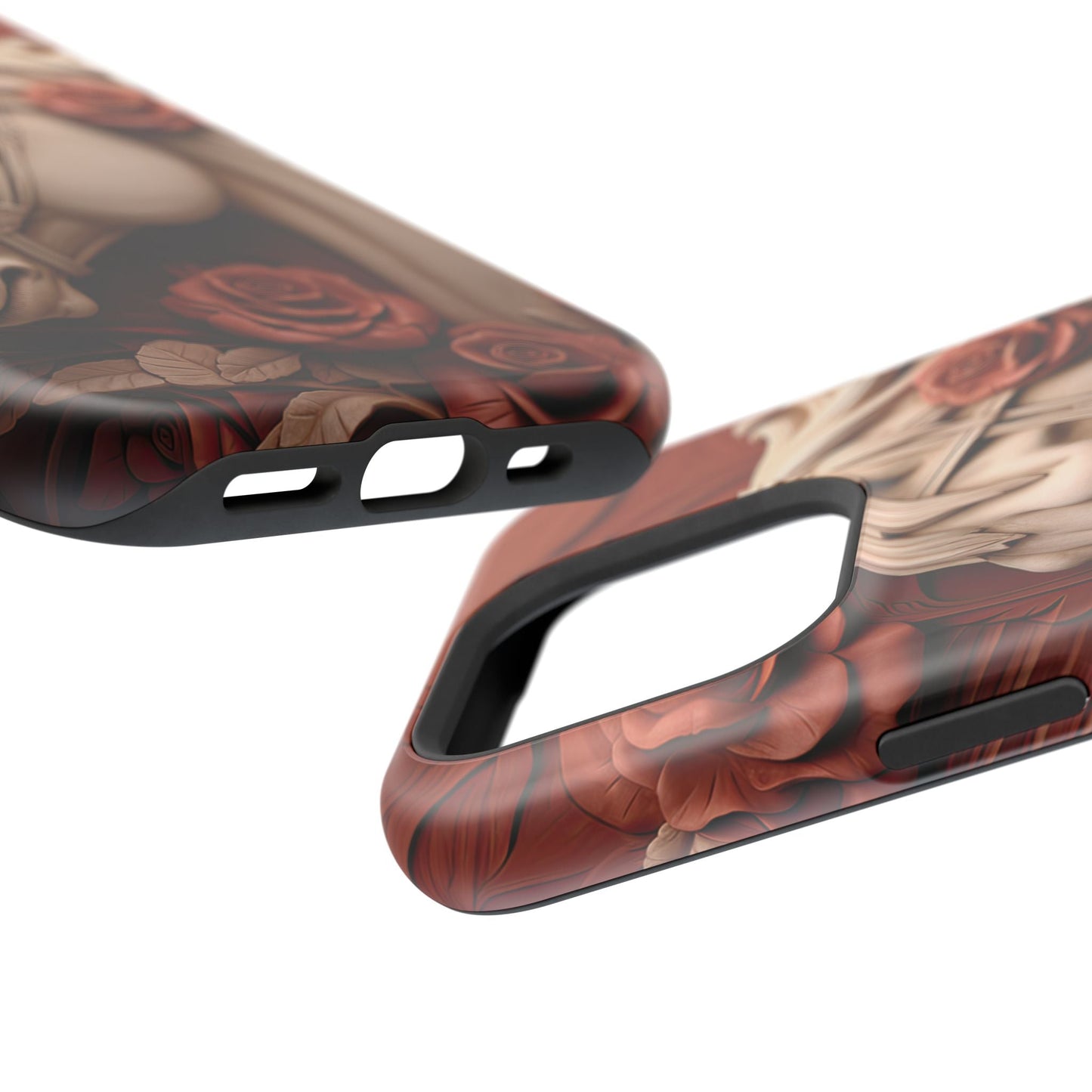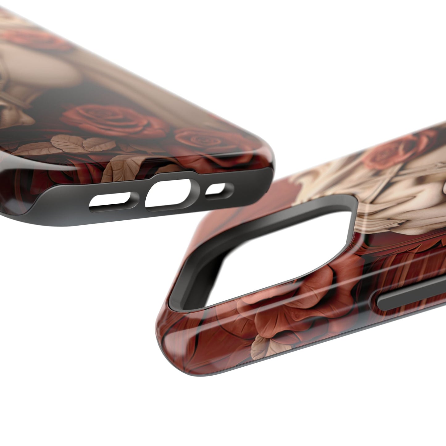 Embrace elegance with our Noble Horse MagSafe iPhone Case! This captivating design features a sculpted horse's head adorned with delicate roses, set against a rich, textured background. It's a timeless piece that adds a touch of sophistication to your phone.