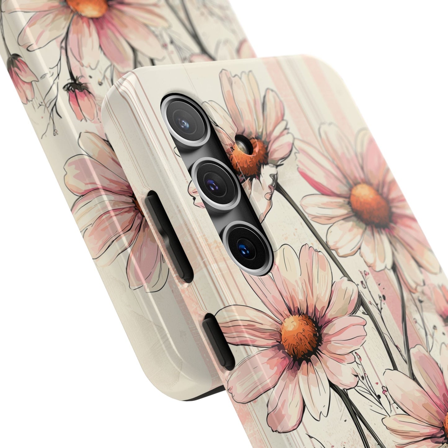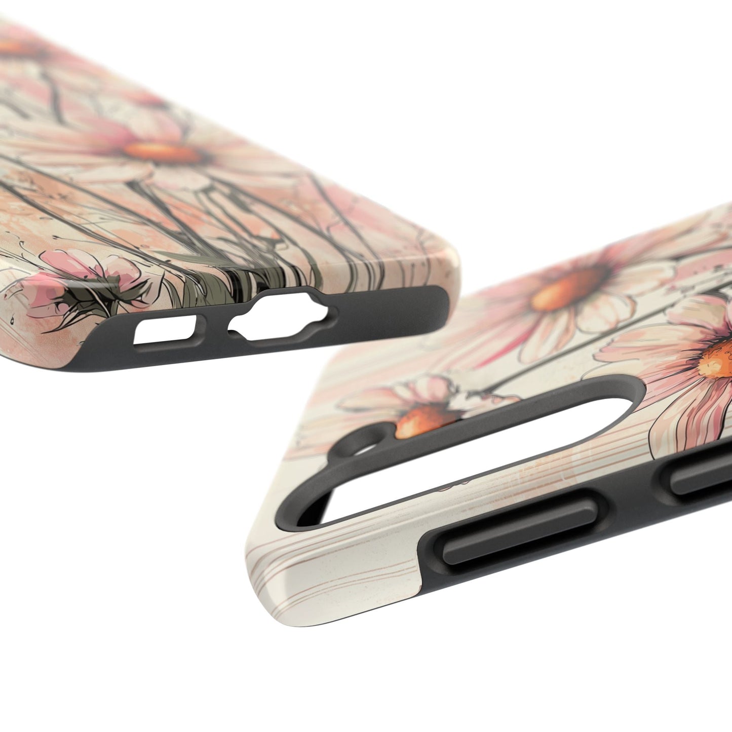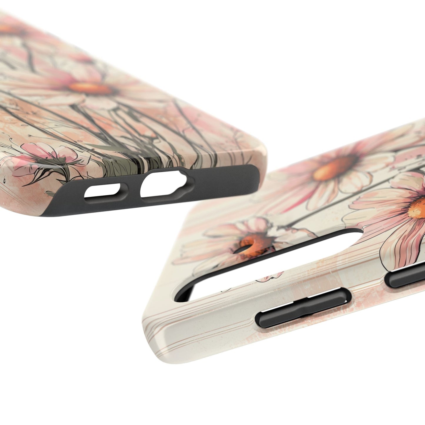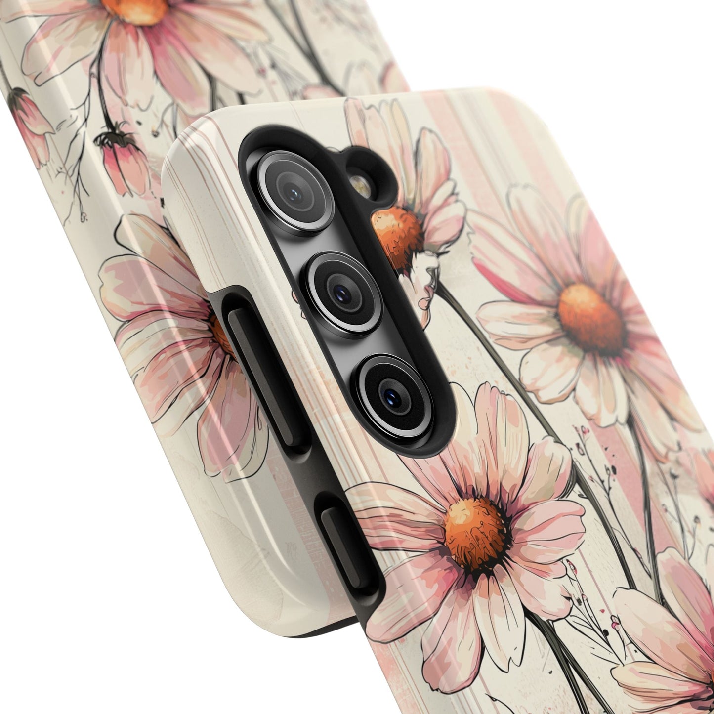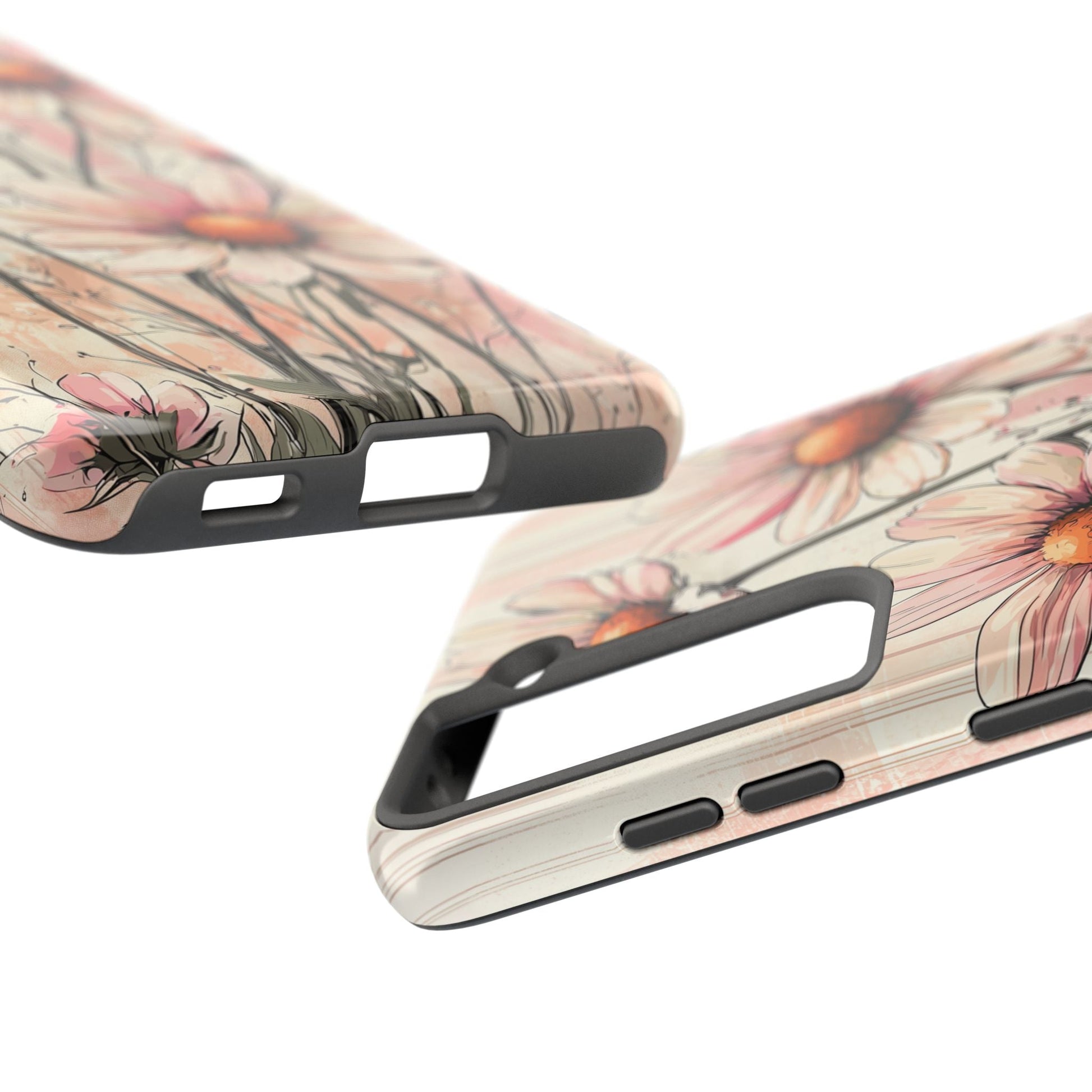 Add a touch of natural beauty to your Samsung Galaxy with our Pastel Pink Daisy Case! This case showcases a delicate arrangement of hand-drawn daisies in soft pink hues, set against a subtle plaid background. It's the perfect accessory for nature lovers who appreciate elegance and a rustic yet modern aesthetic.