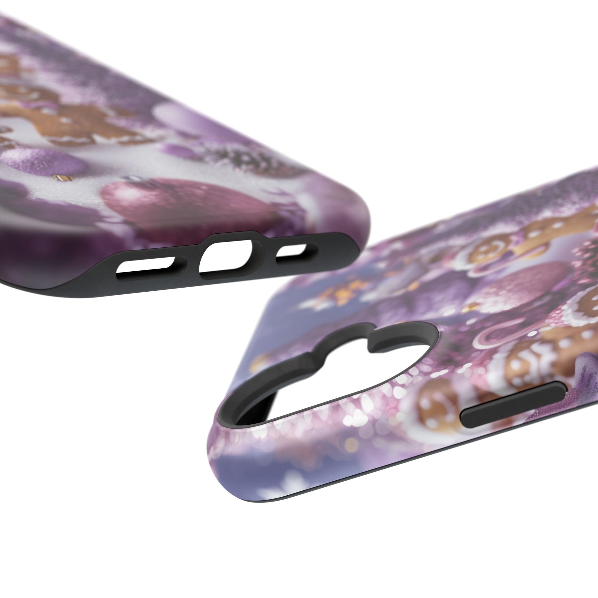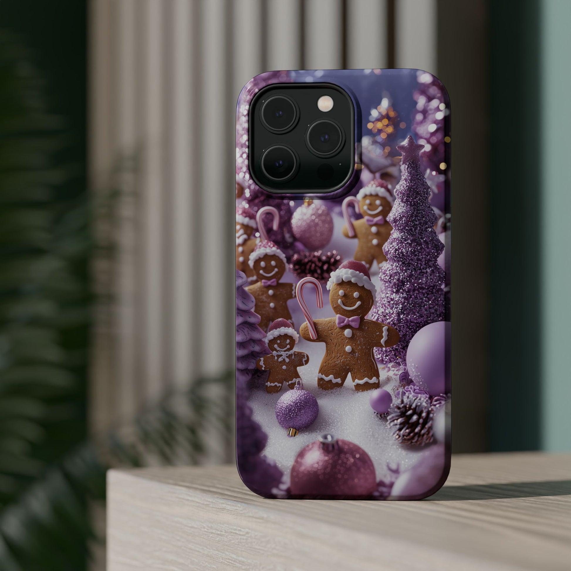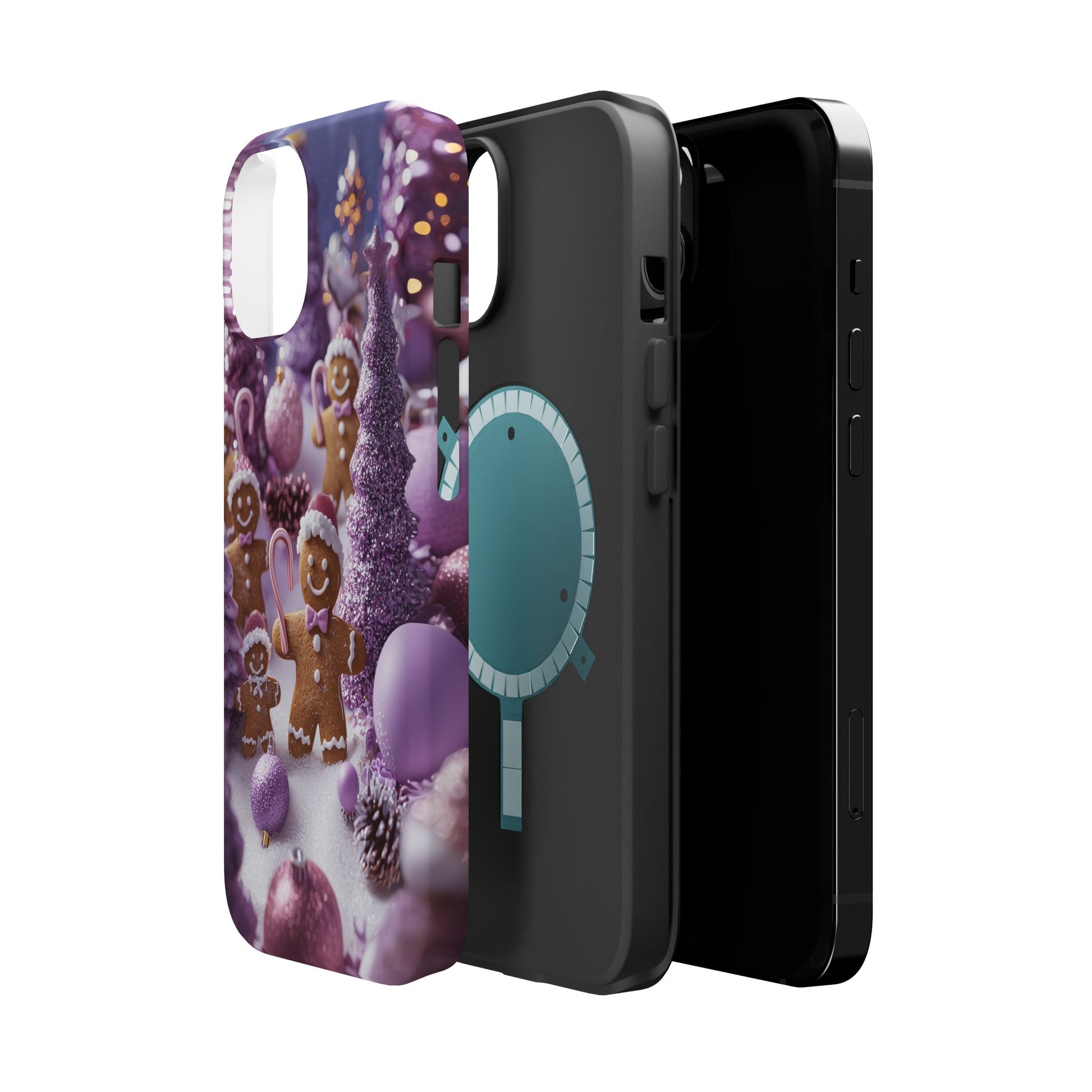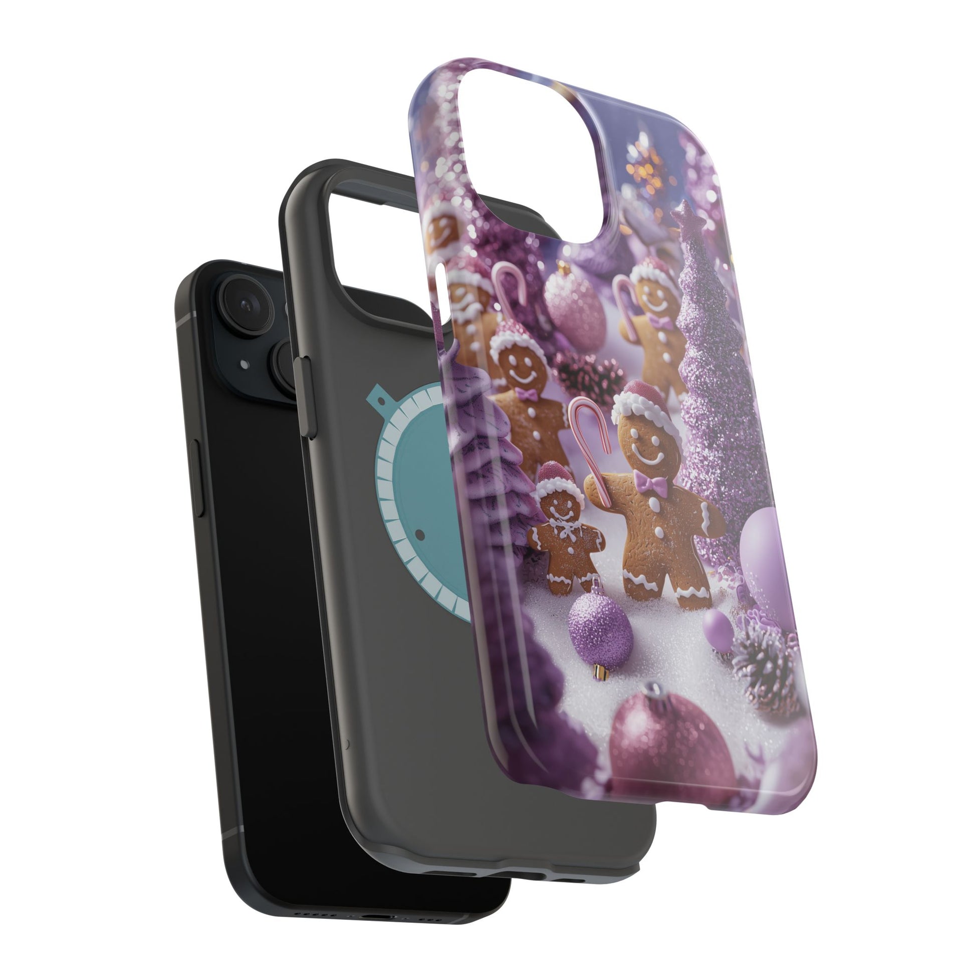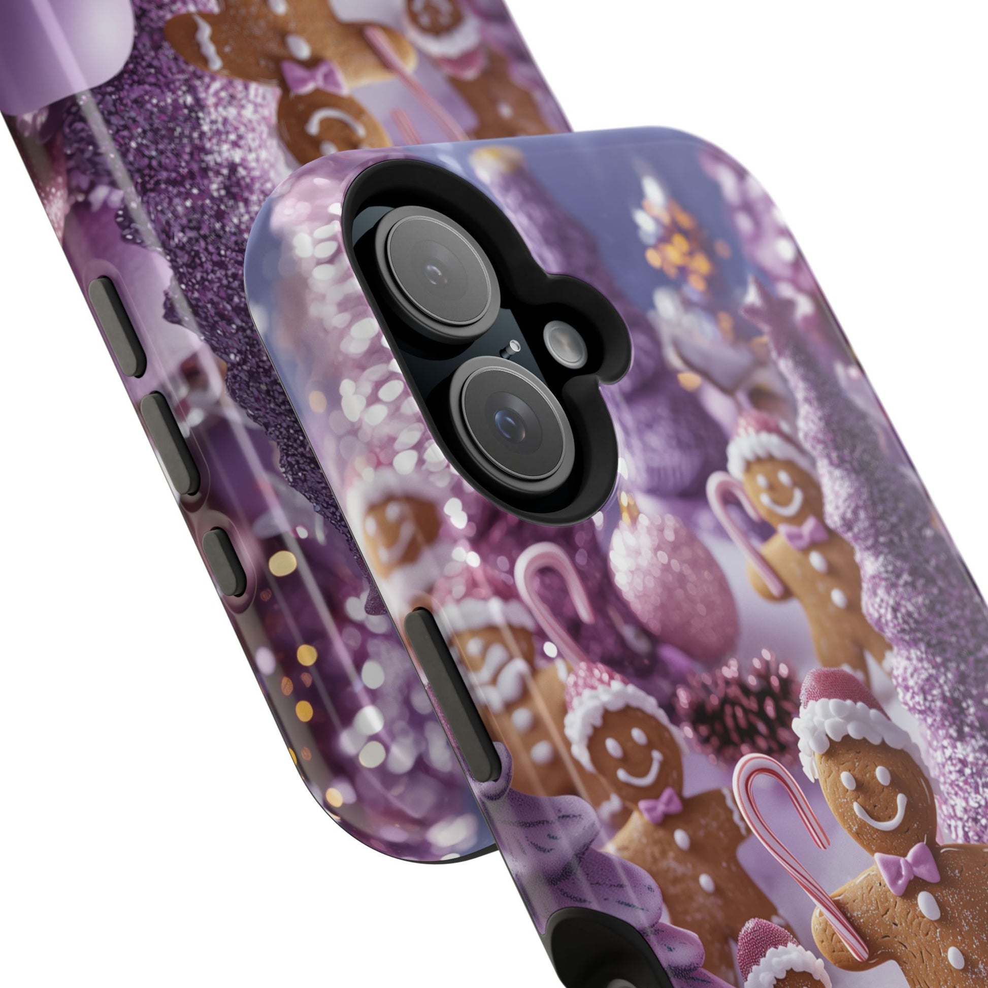 Step into a whimsical winter forest with our Pink Frosted Gingerbread Forest MagSafe iPhone case! This charming holiday design features a playful scene of gingerbread cookies dressed in Santa hats and bow ties, surrounded by sparkling pink and lavender Christmas trees, frosted ornaments, and f...