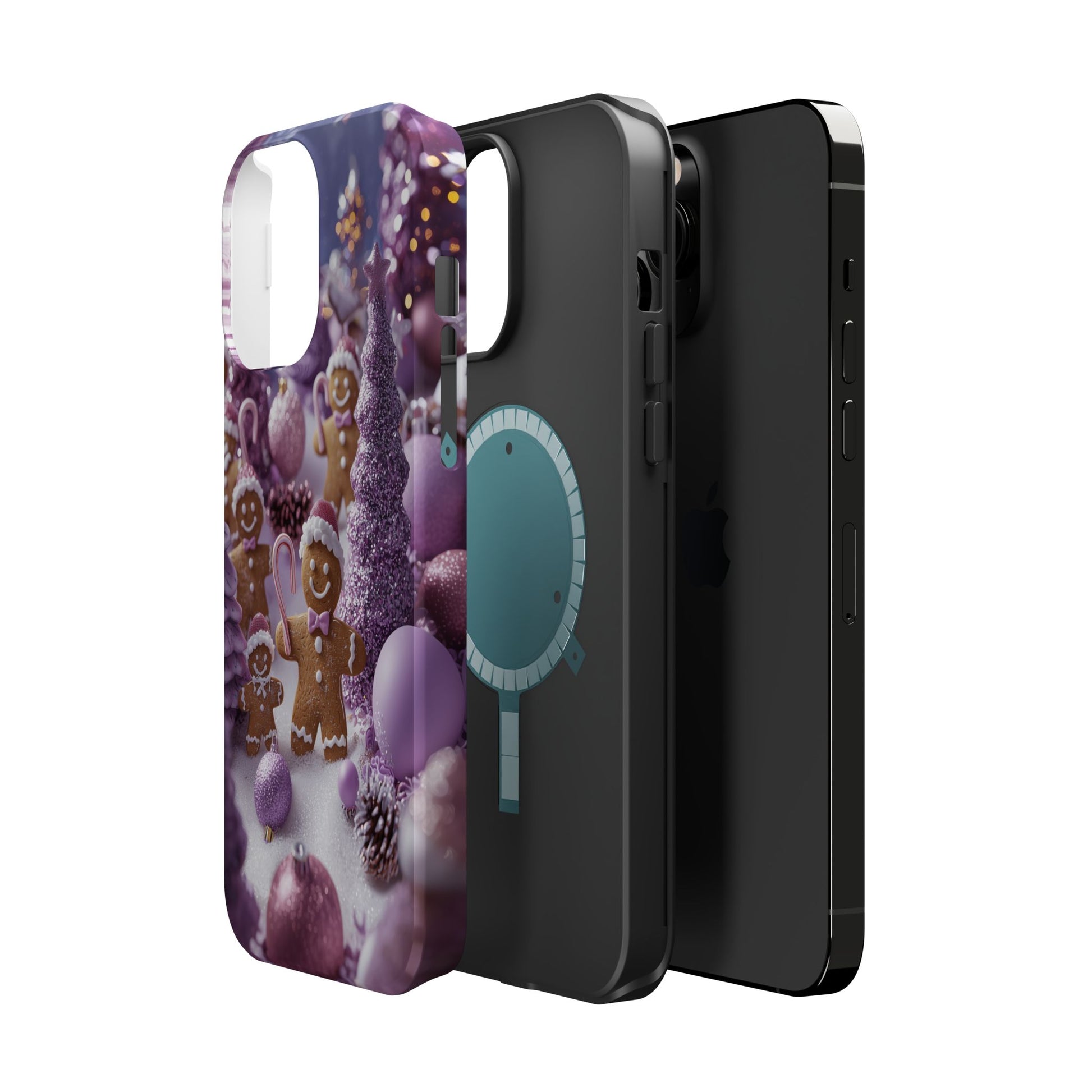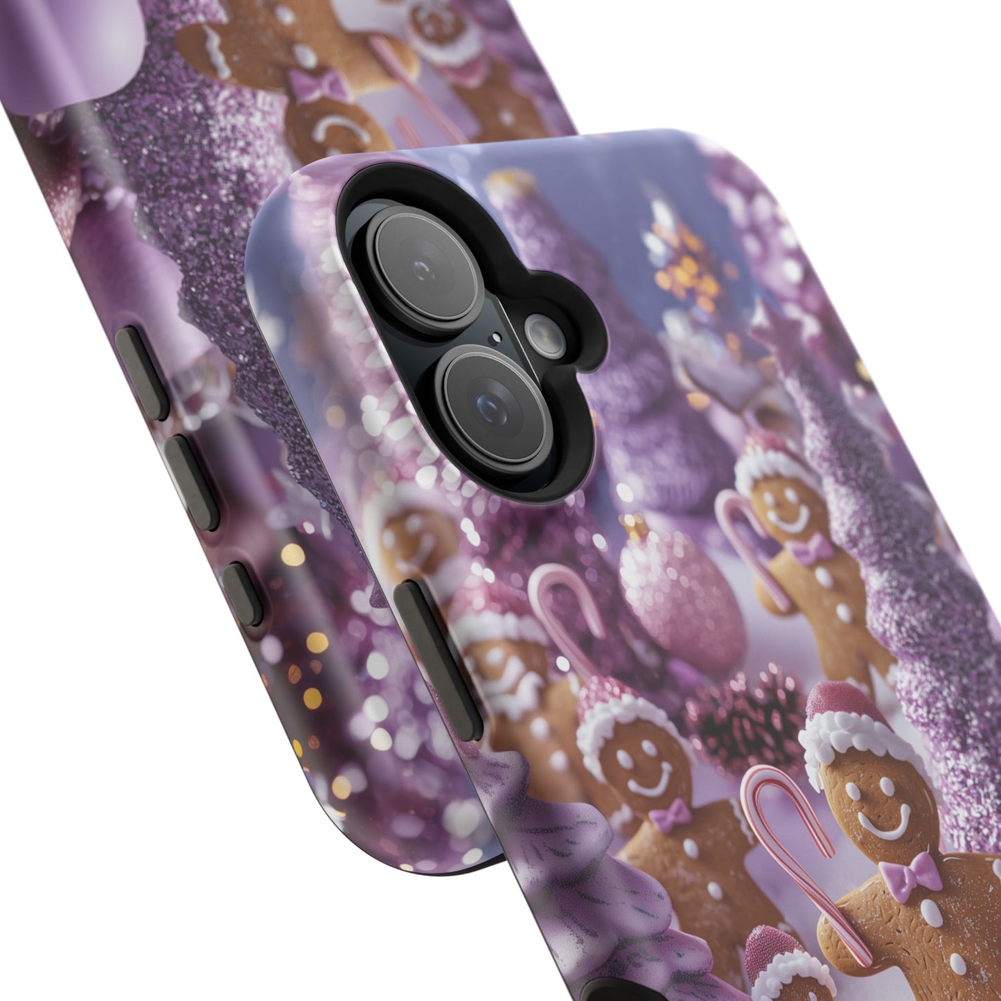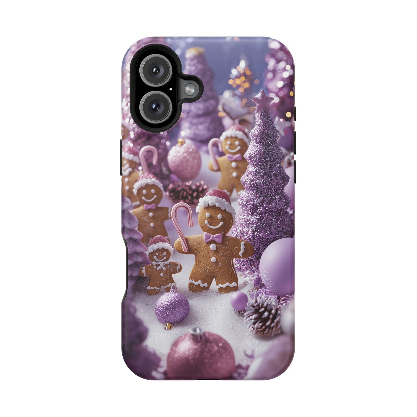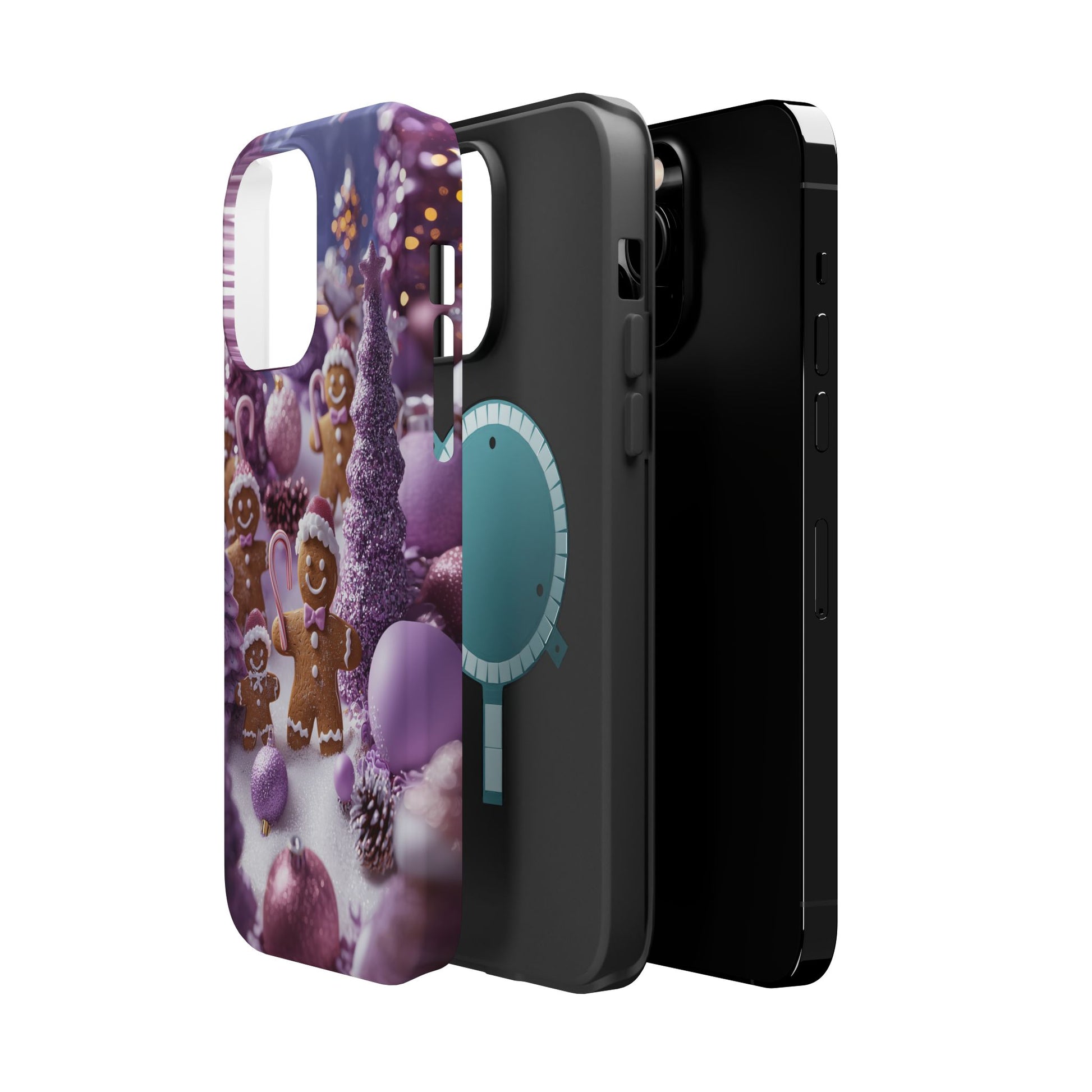 Step into a whimsical winter forest with our Pink Frosted Gingerbread Forest MagSafe iPhone case! This charming holiday design features a playful scene of gingerbread cookies dressed in Santa hats and bow ties, surrounded by sparkling pink and lavender Christmas trees, frosted ornaments, and f...