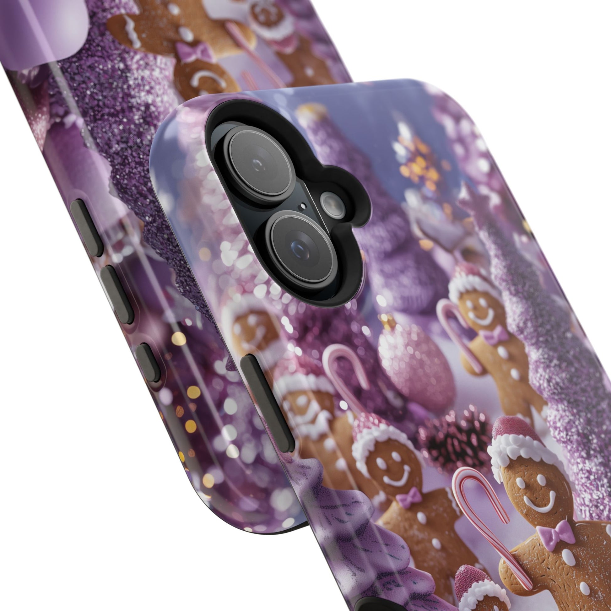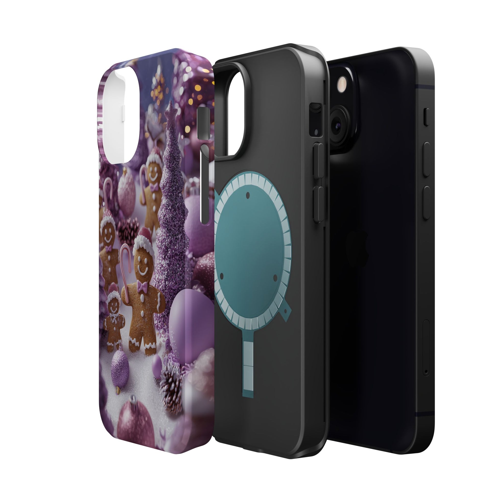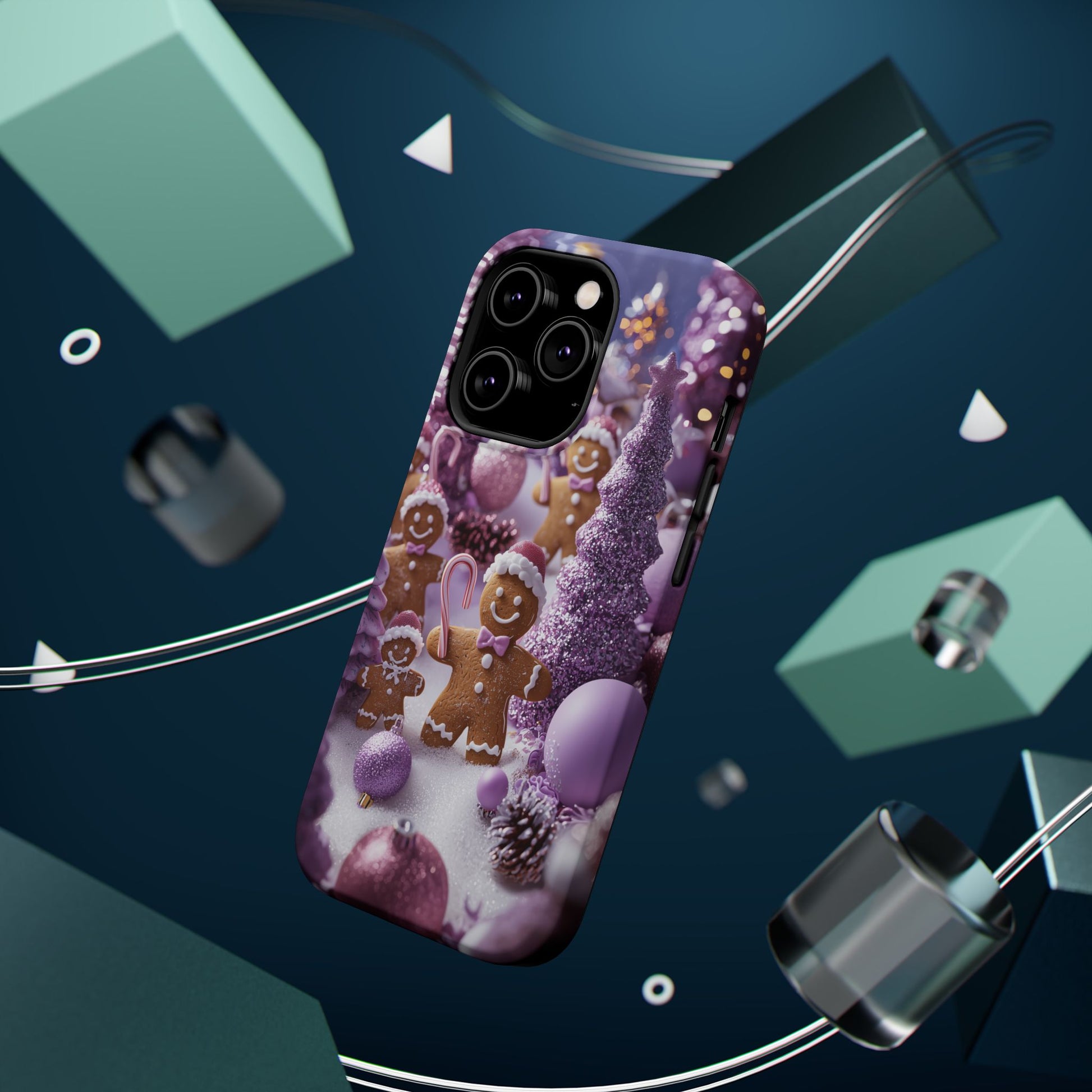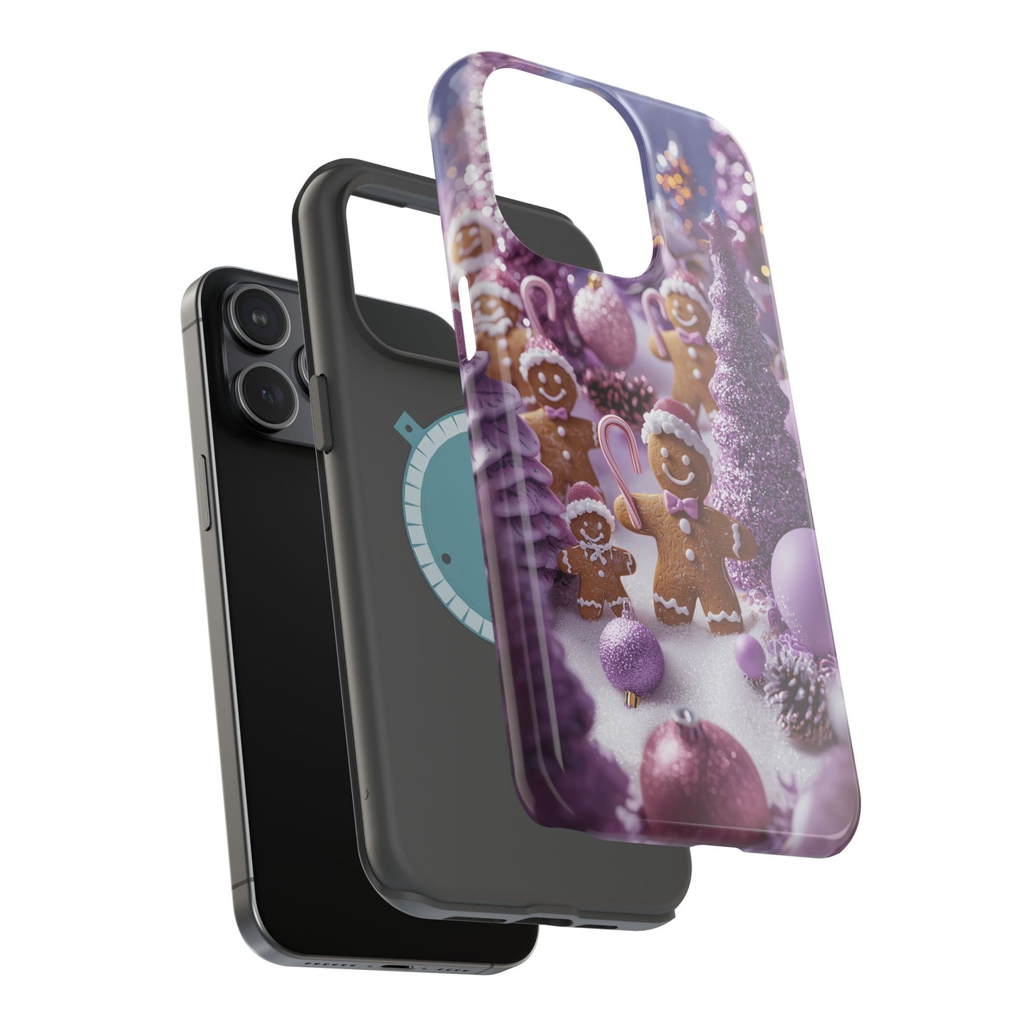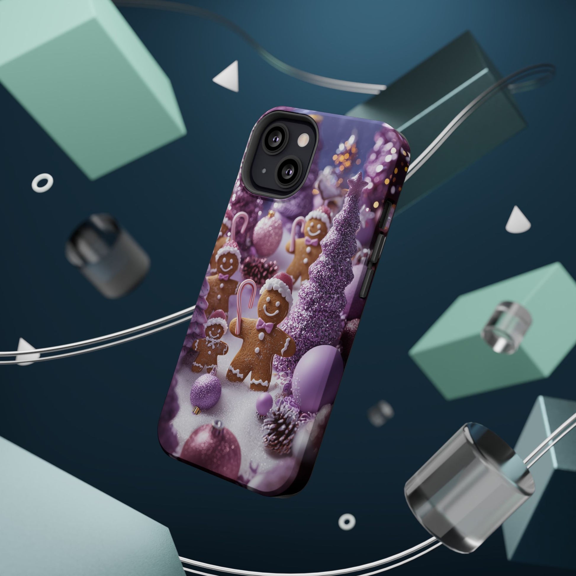 Step into a whimsical winter forest with our Pink Frosted Gingerbread Forest MagSafe iPhone case! This charming holiday design features a playful scene of gingerbread cookies dressed in Santa hats and bow ties, surrounded by sparkling pink and lavender Christmas trees, frosted ornaments, and f...