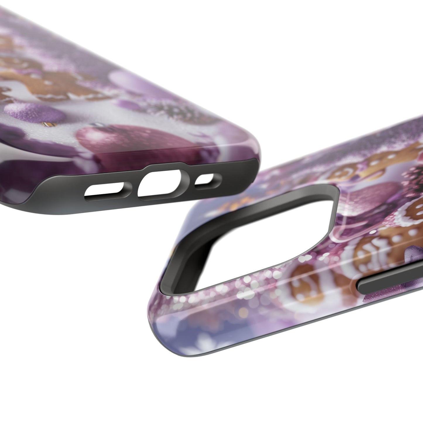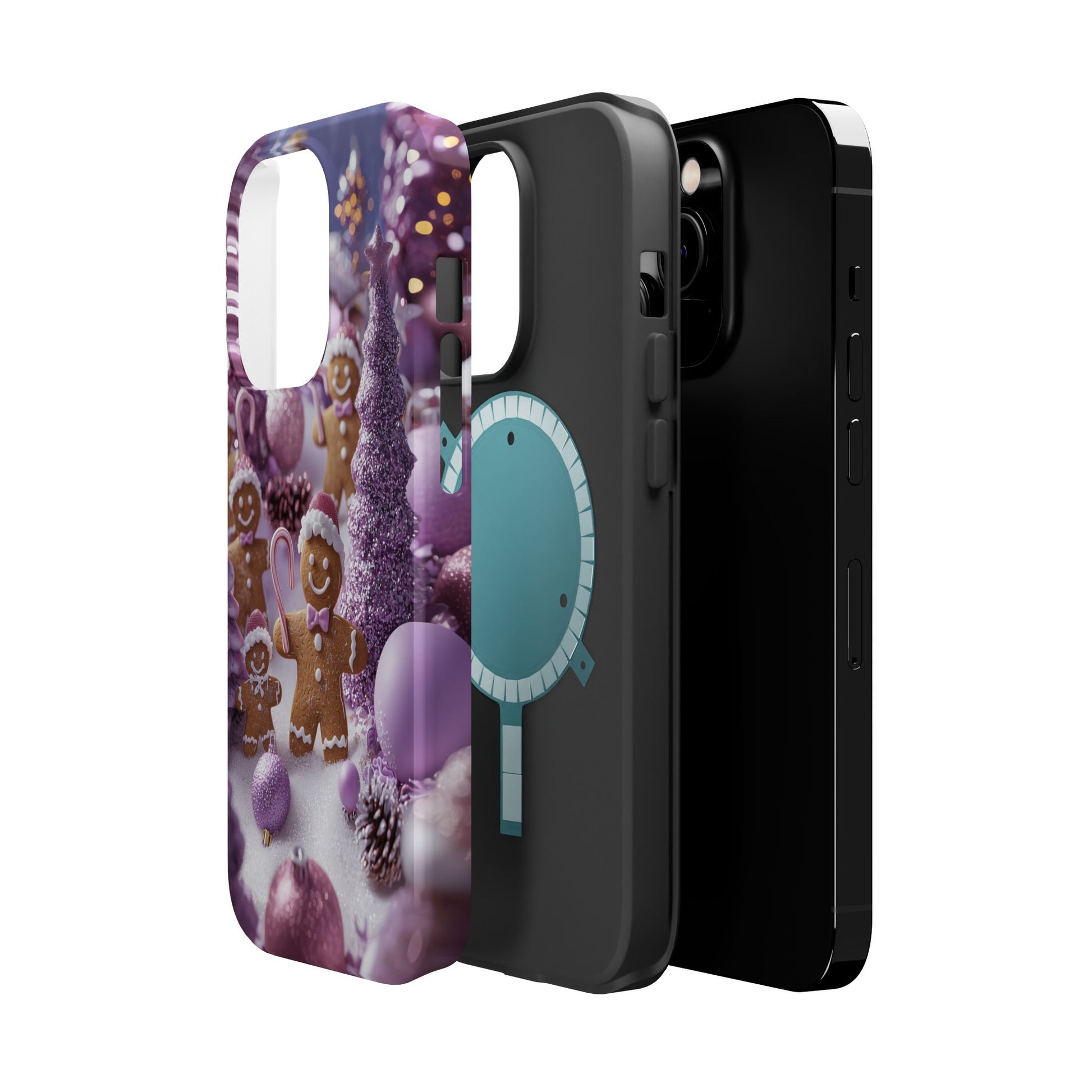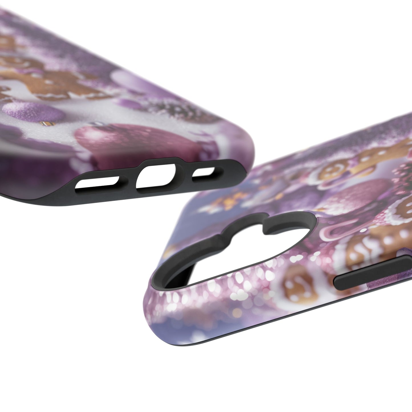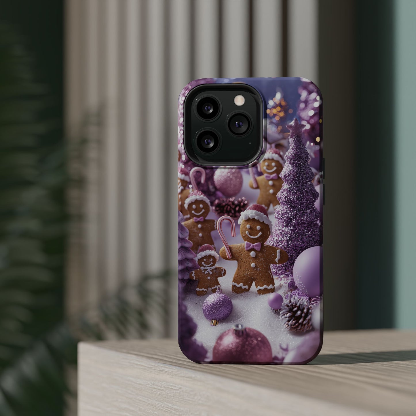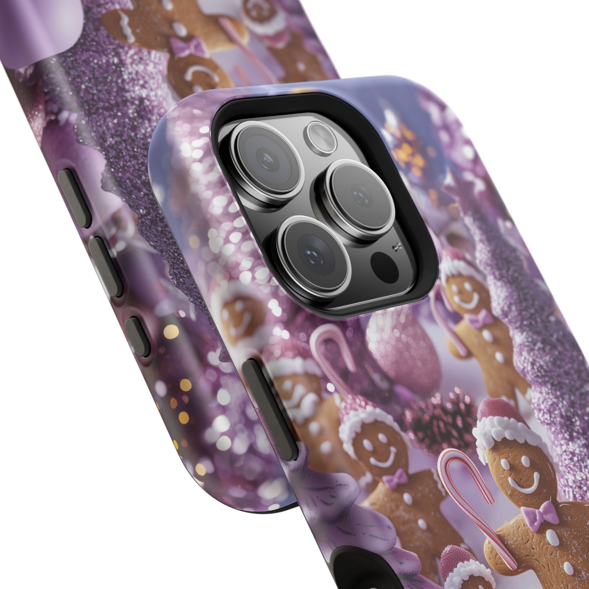 Step into a whimsical winter forest with our Pink Frosted Gingerbread Forest MagSafe iPhone case! This charming holiday design features a playful scene of gingerbread cookies dressed in Santa hats and bow ties, surrounded by sparkling pink and lavender Christmas trees, frosted ornaments, and f...
