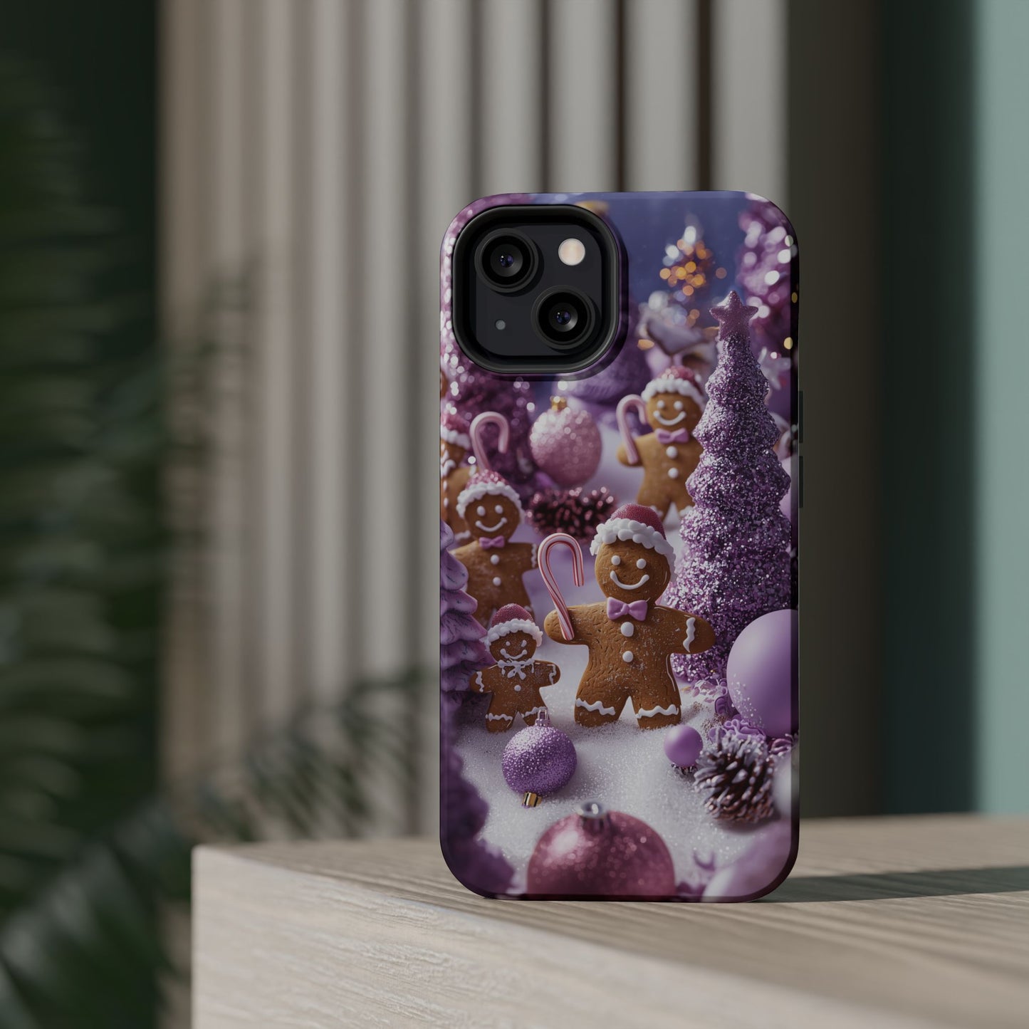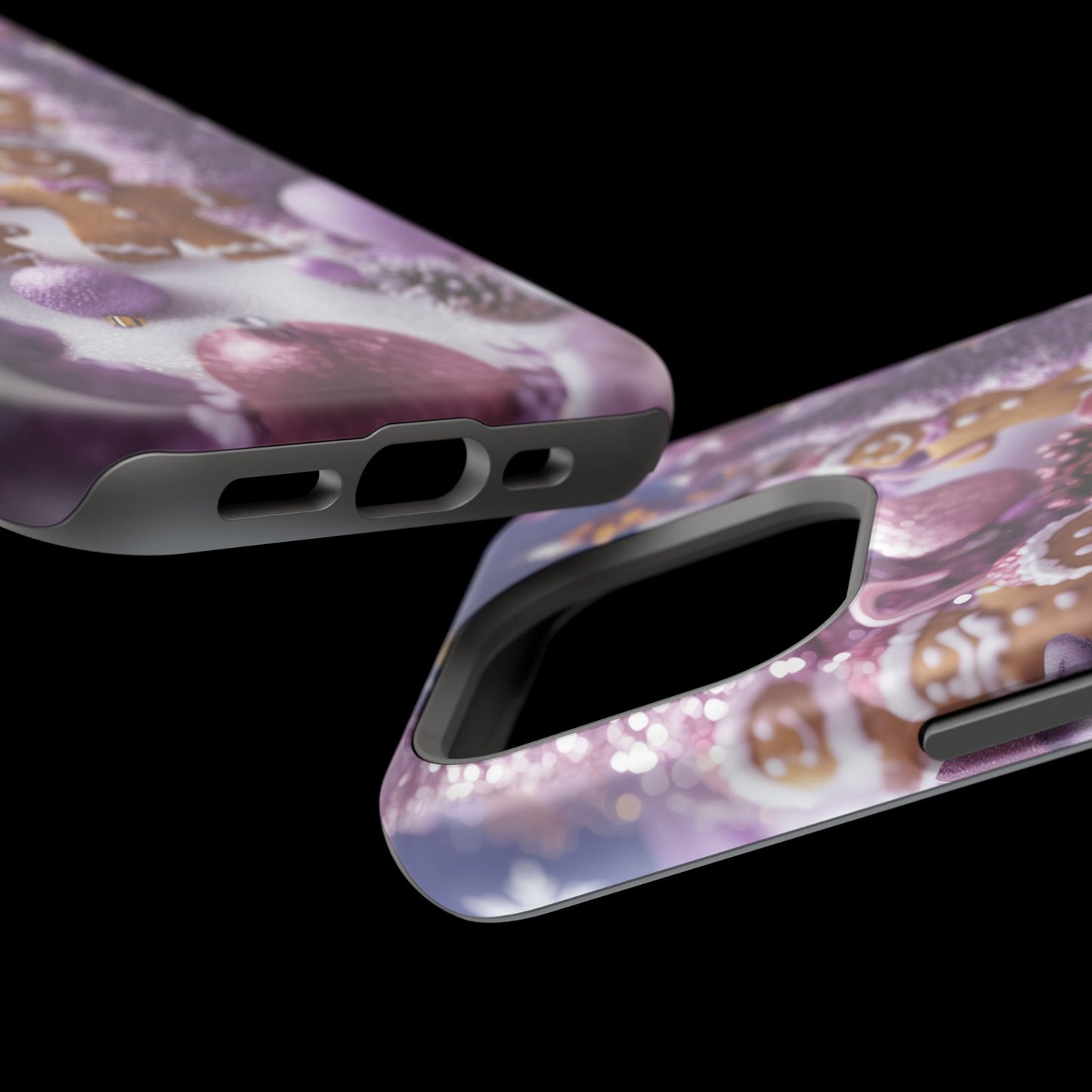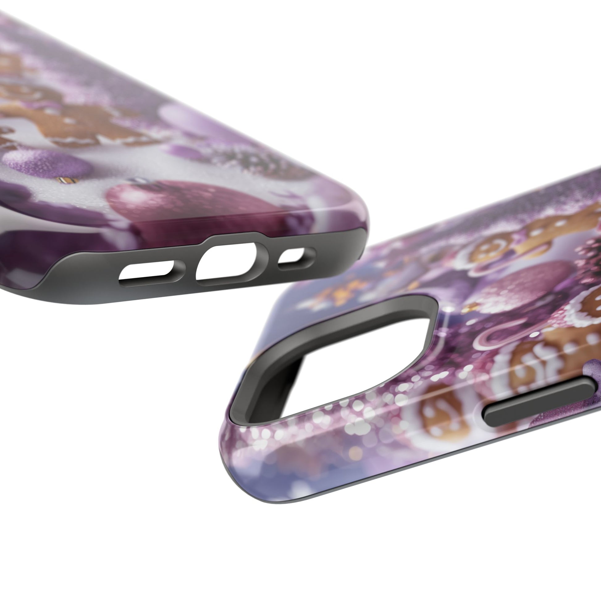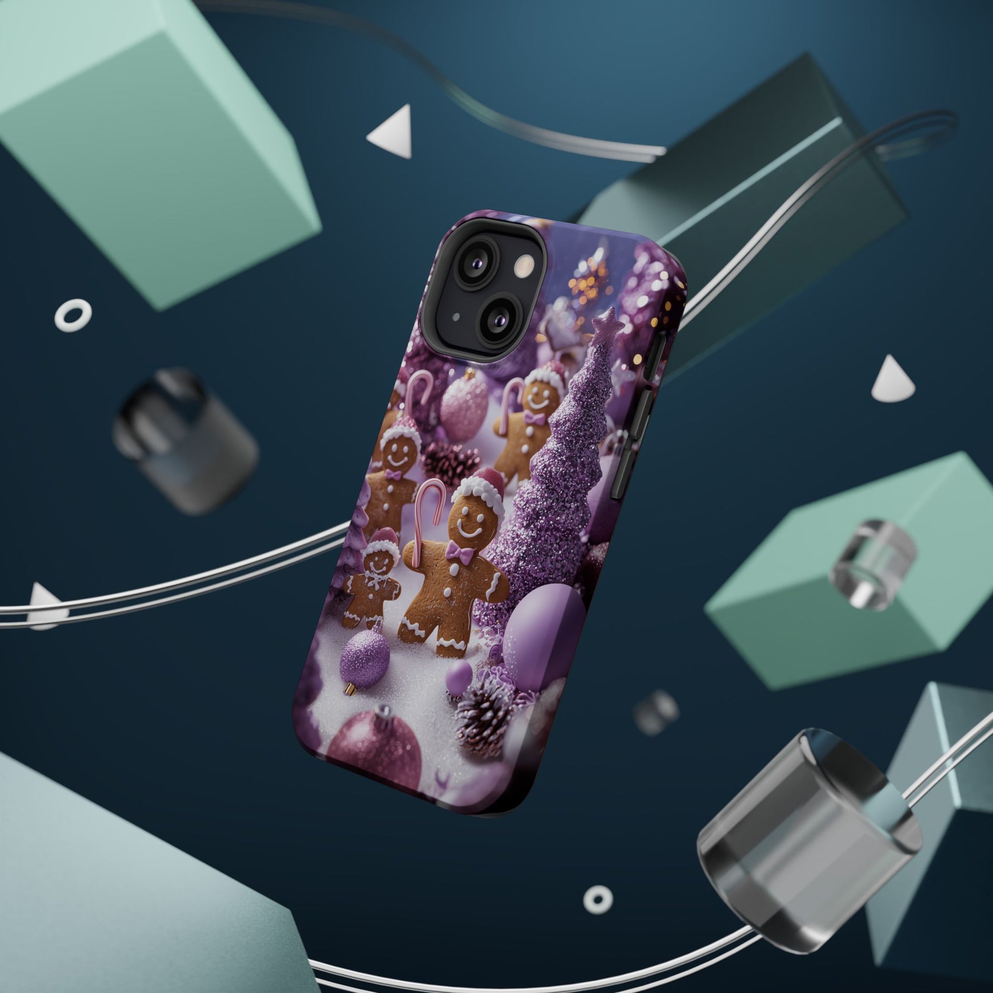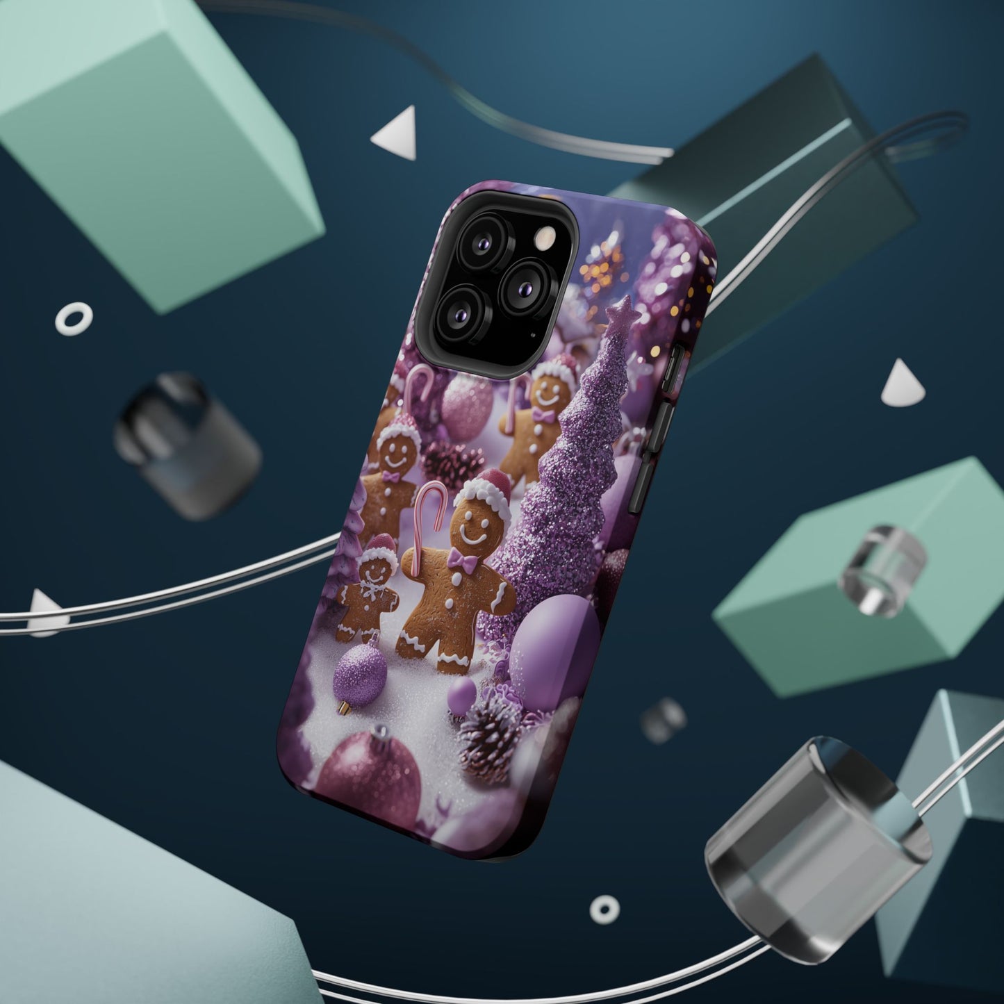 Step into a whimsical winter forest with our Pink Frosted Gingerbread Forest MagSafe iPhone case! This charming holiday design features a playful scene of gingerbread cookies dressed in Santa hats and bow ties, surrounded by sparkling pink and lavender Christmas trees, frosted ornaments, and f...