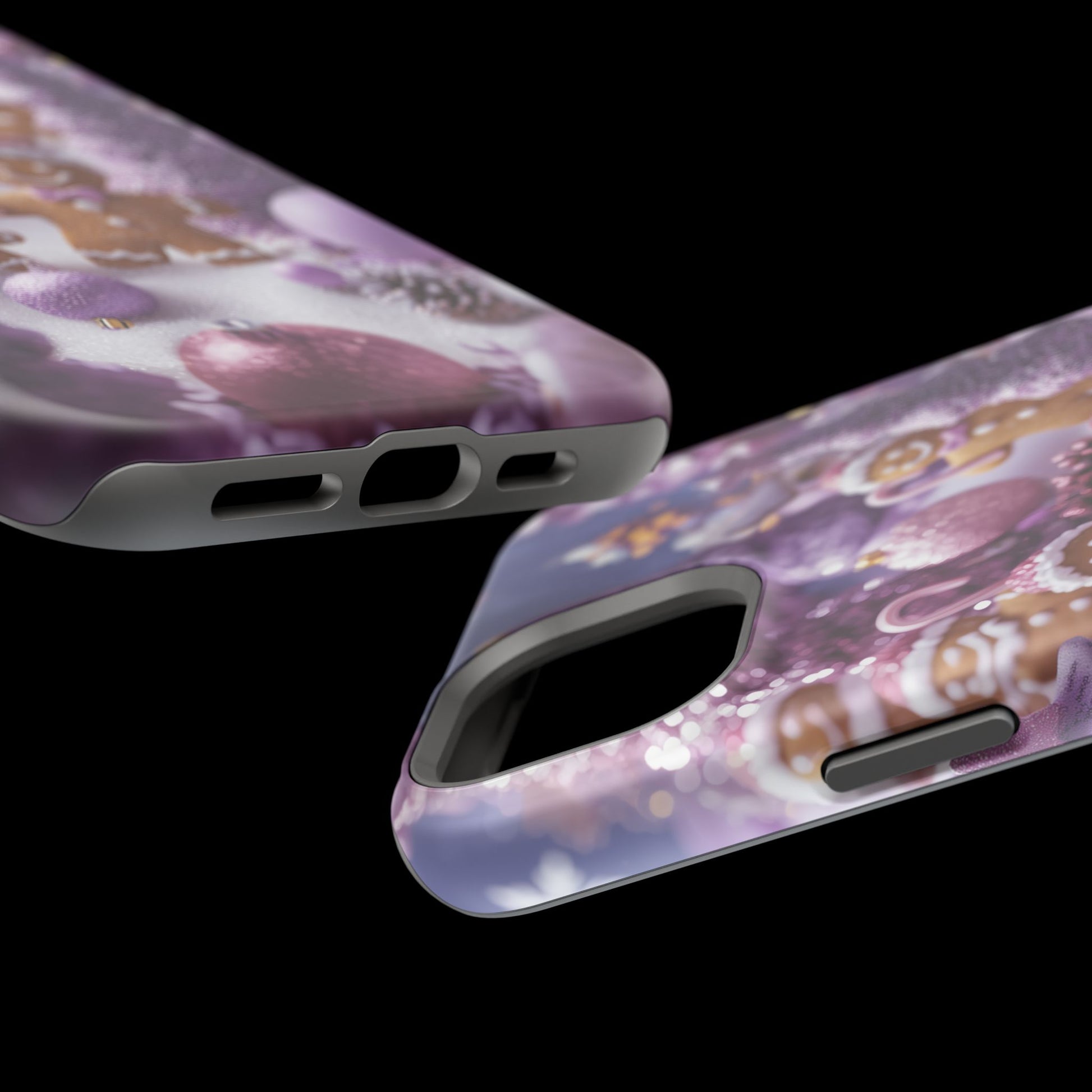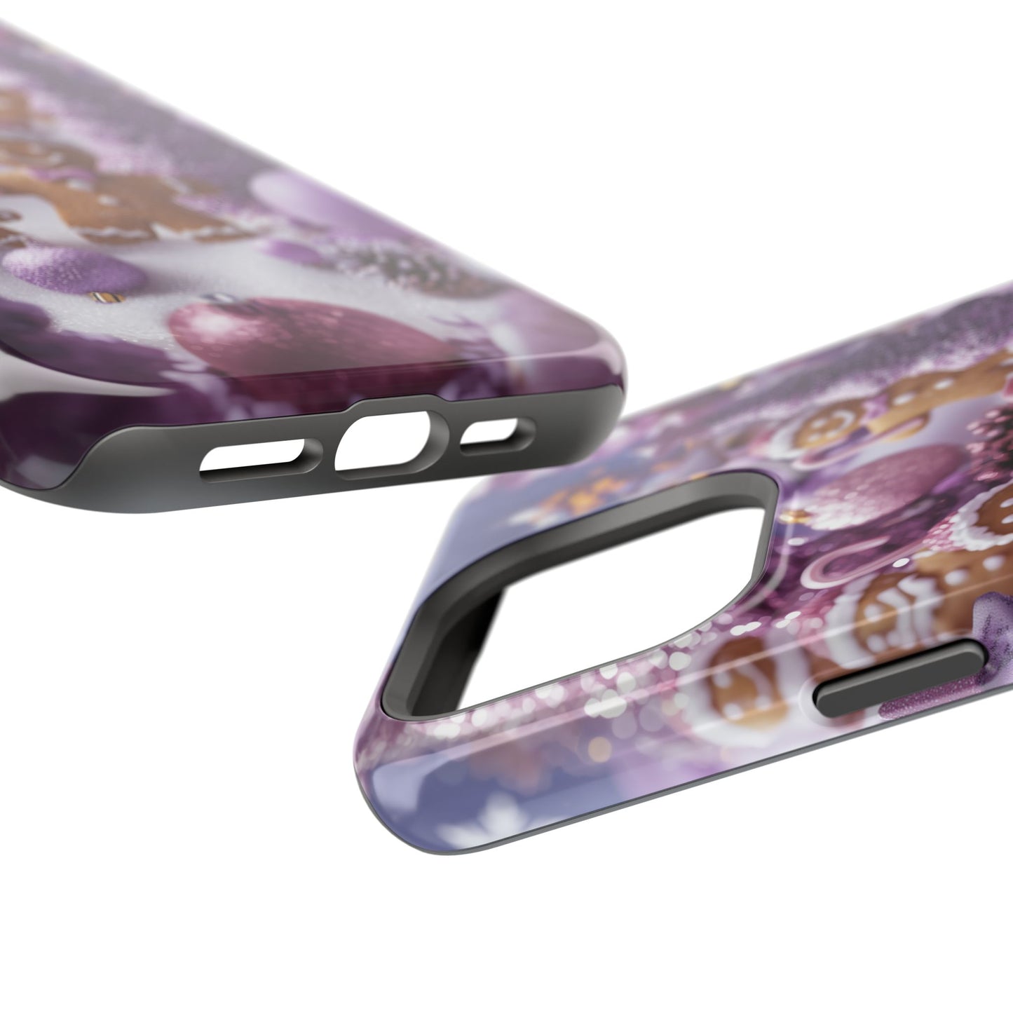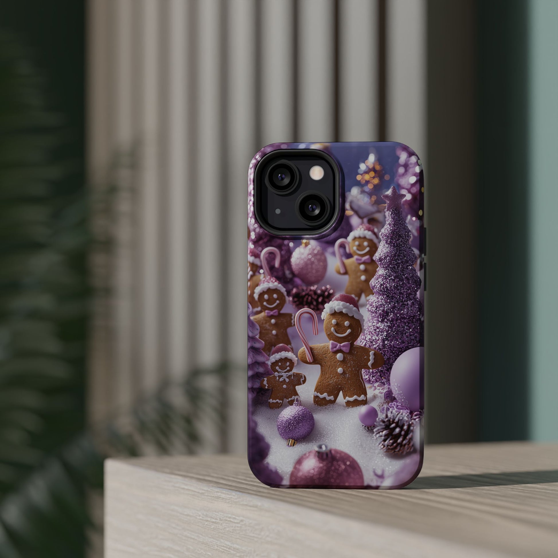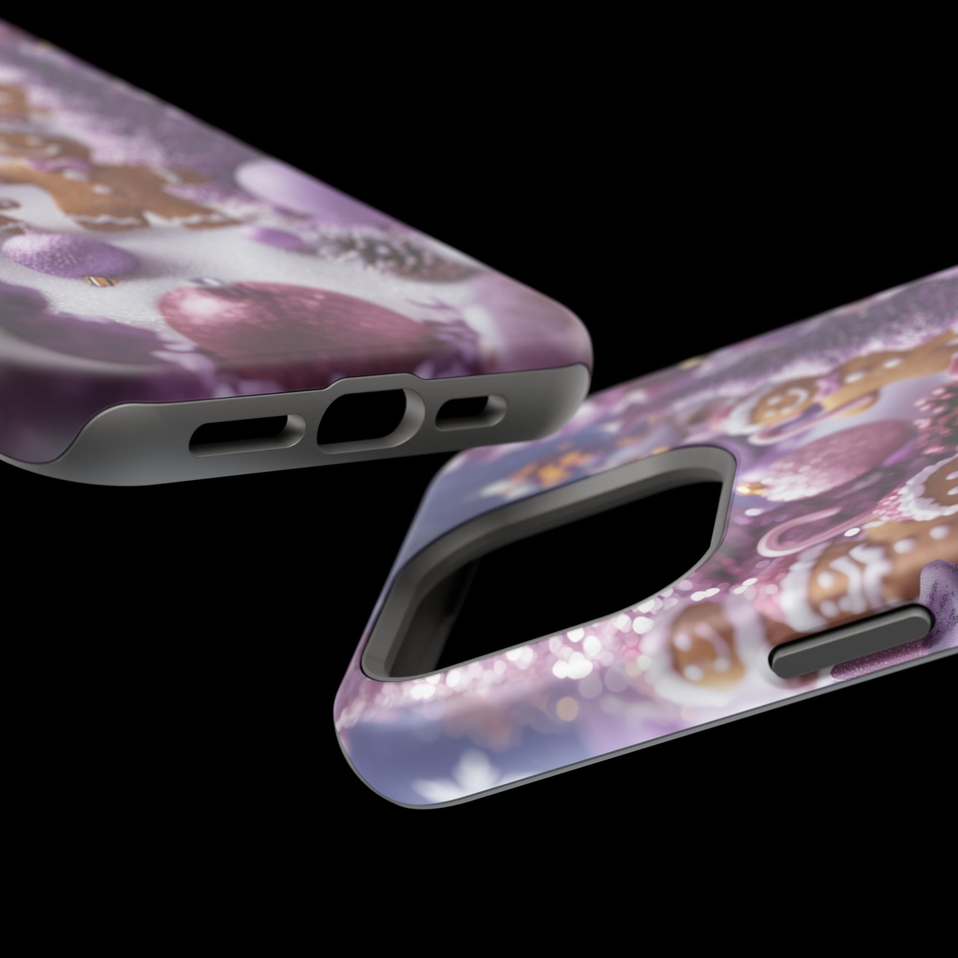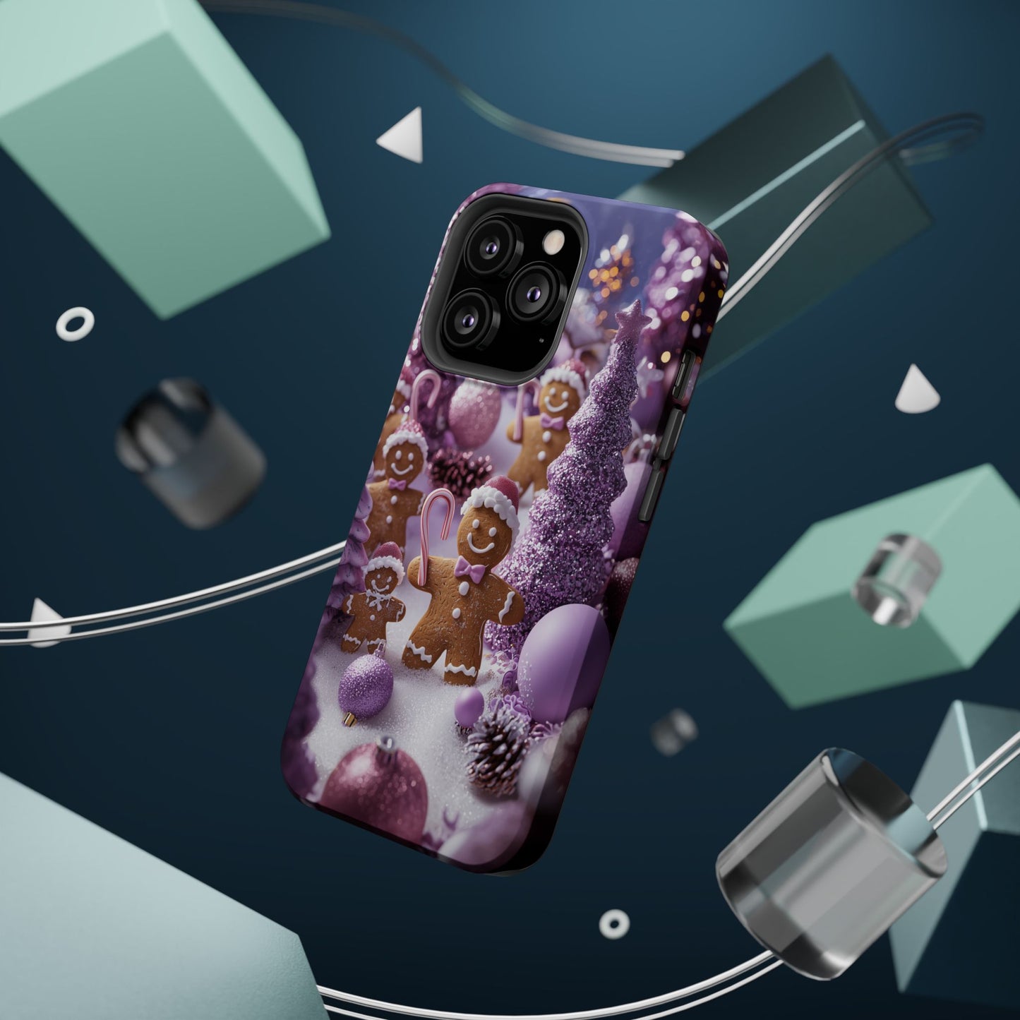 Step into a whimsical winter forest with our Pink Frosted Gingerbread Forest MagSafe iPhone case! This charming holiday design features a playful scene of gingerbread cookies dressed in Santa hats and bow ties, surrounded by sparkling pink and lavender Christmas trees, frosted ornaments, and f...