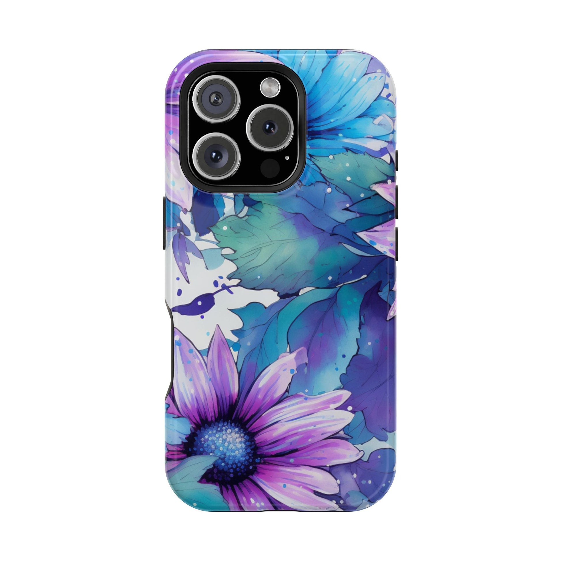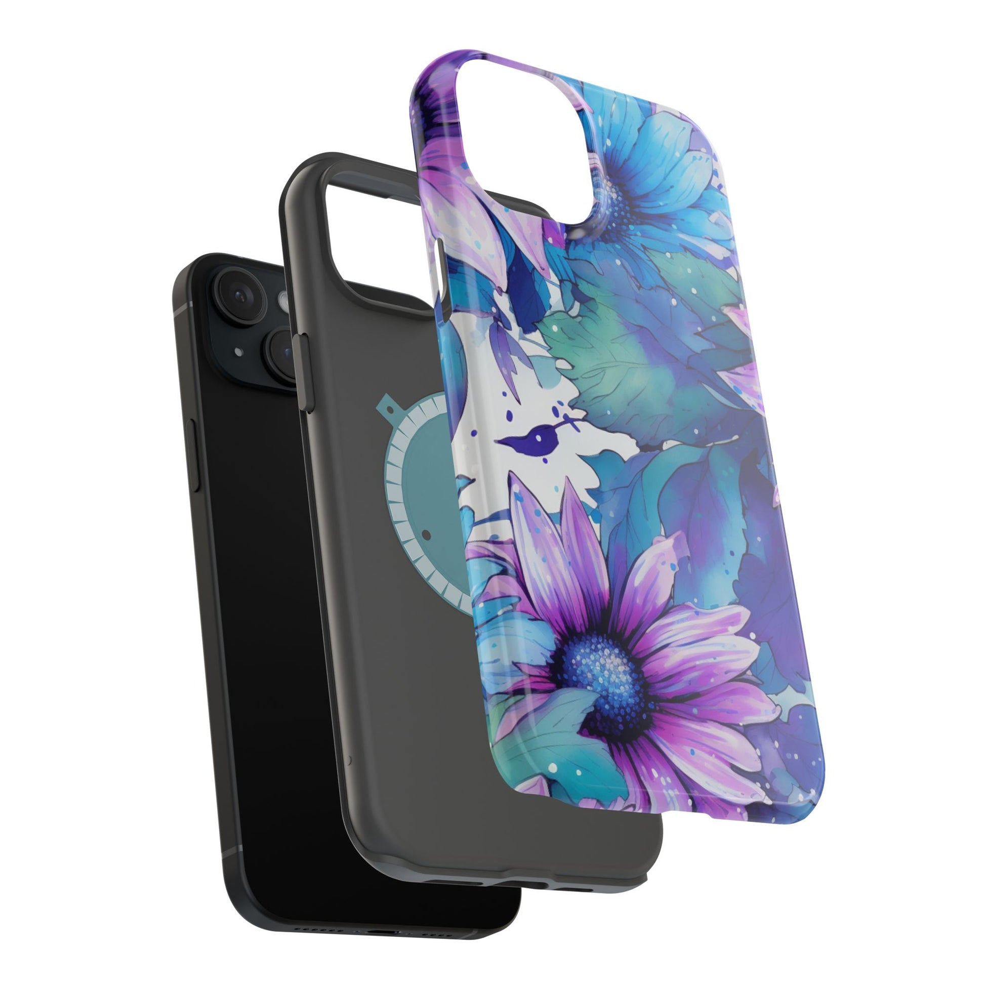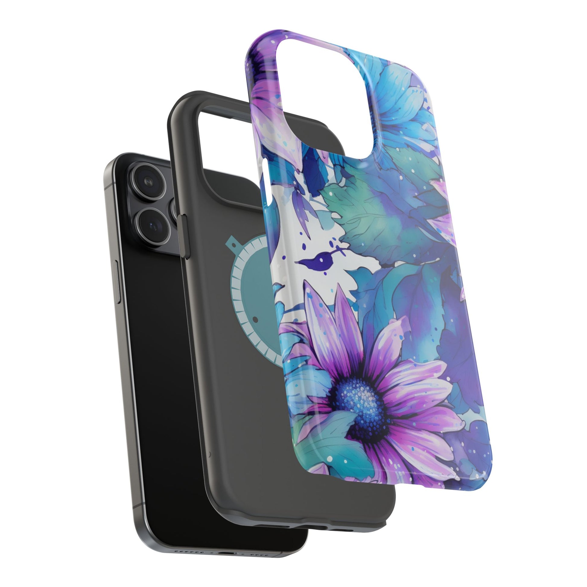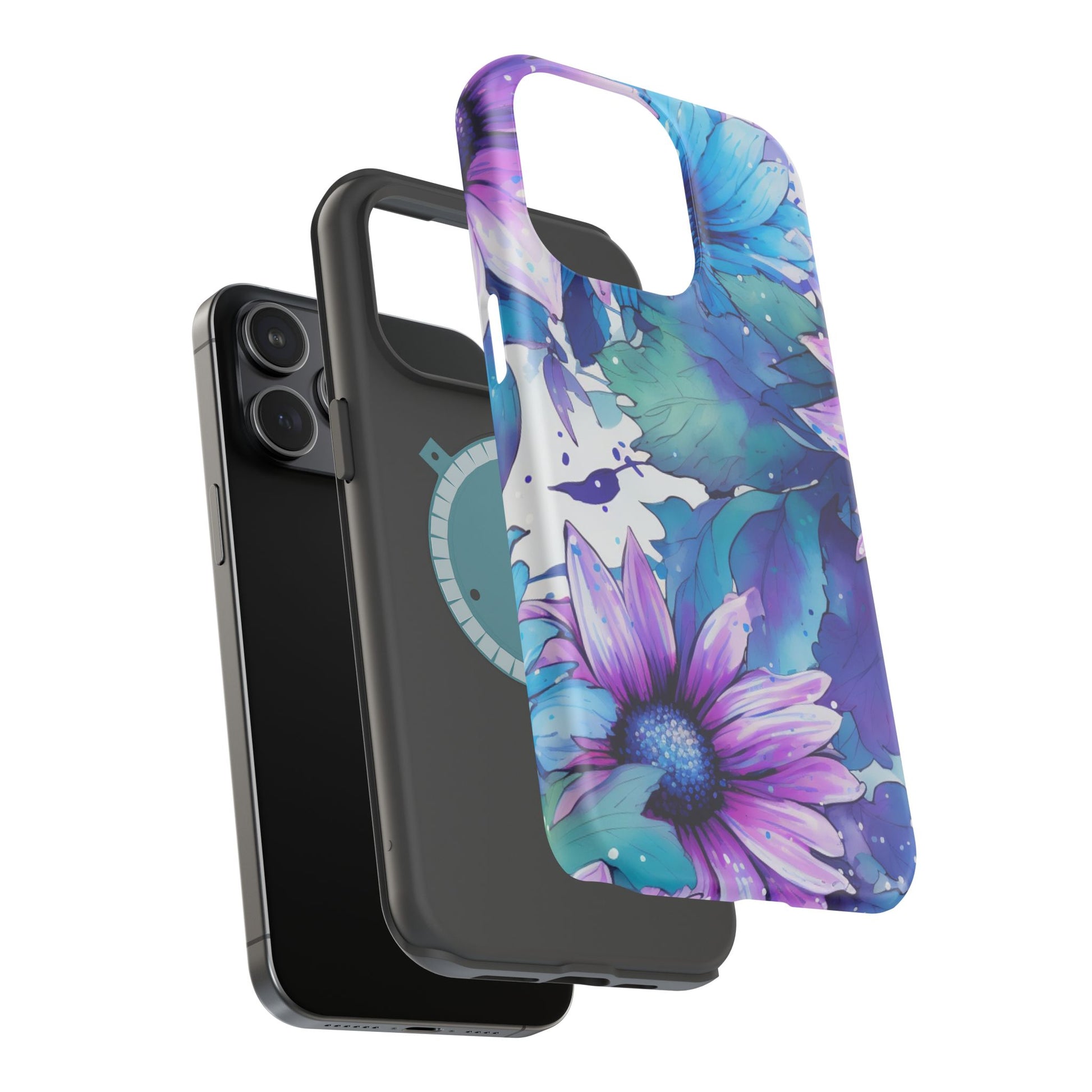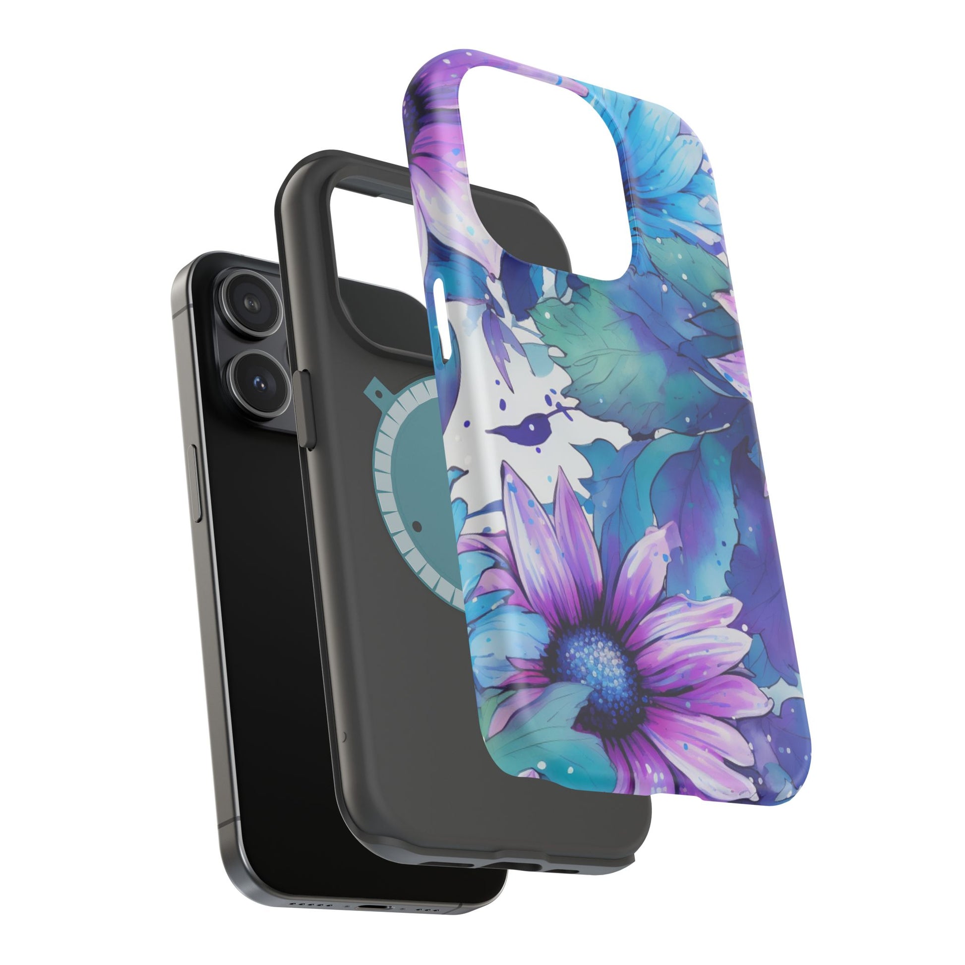 Purple & Teal Watercolor Floral MagSafe iPhone Case - Artistic Flower Design