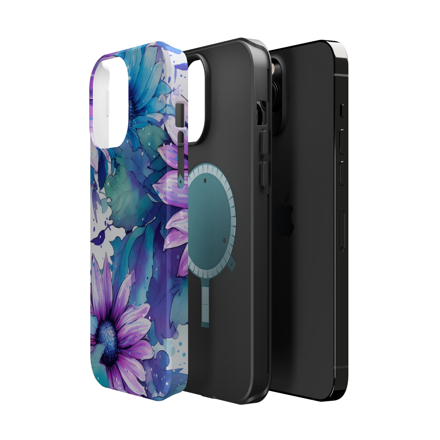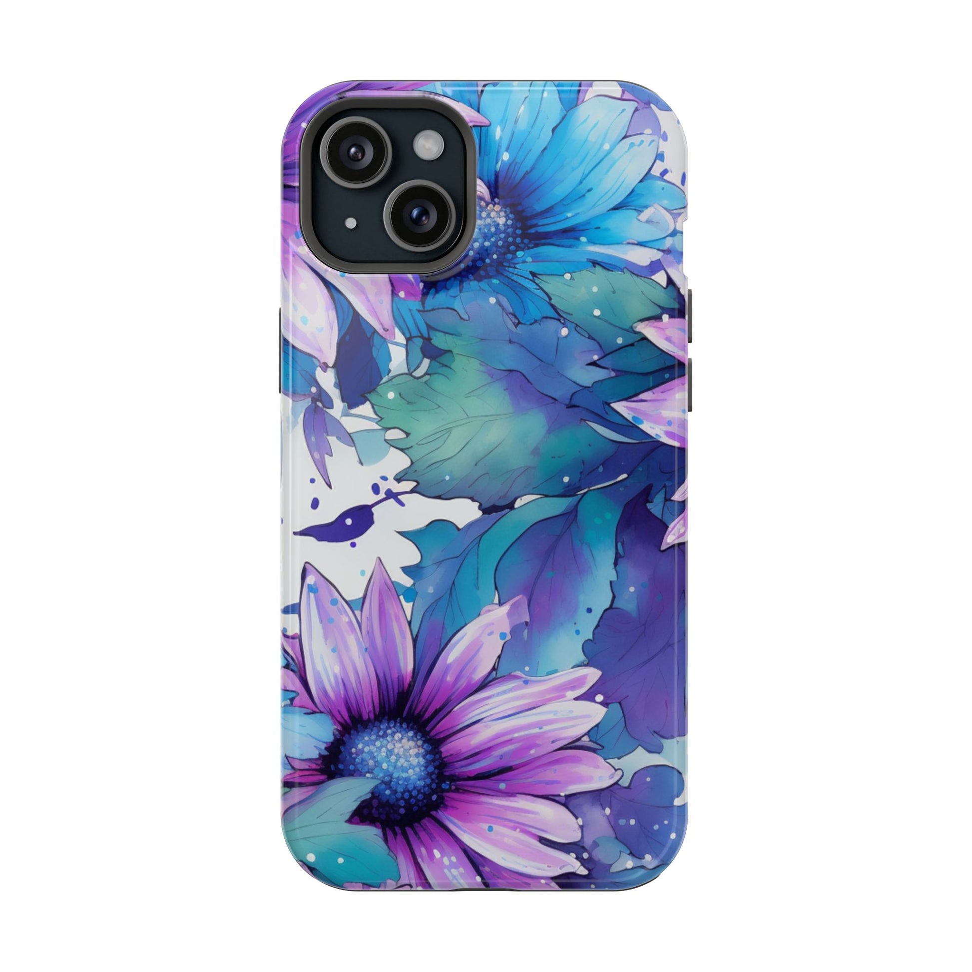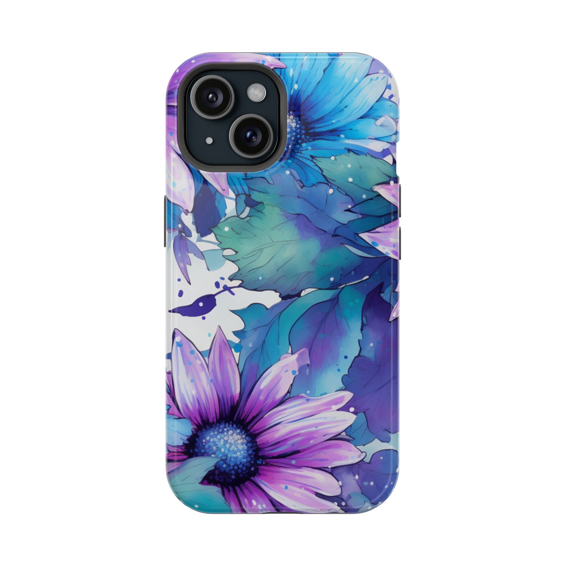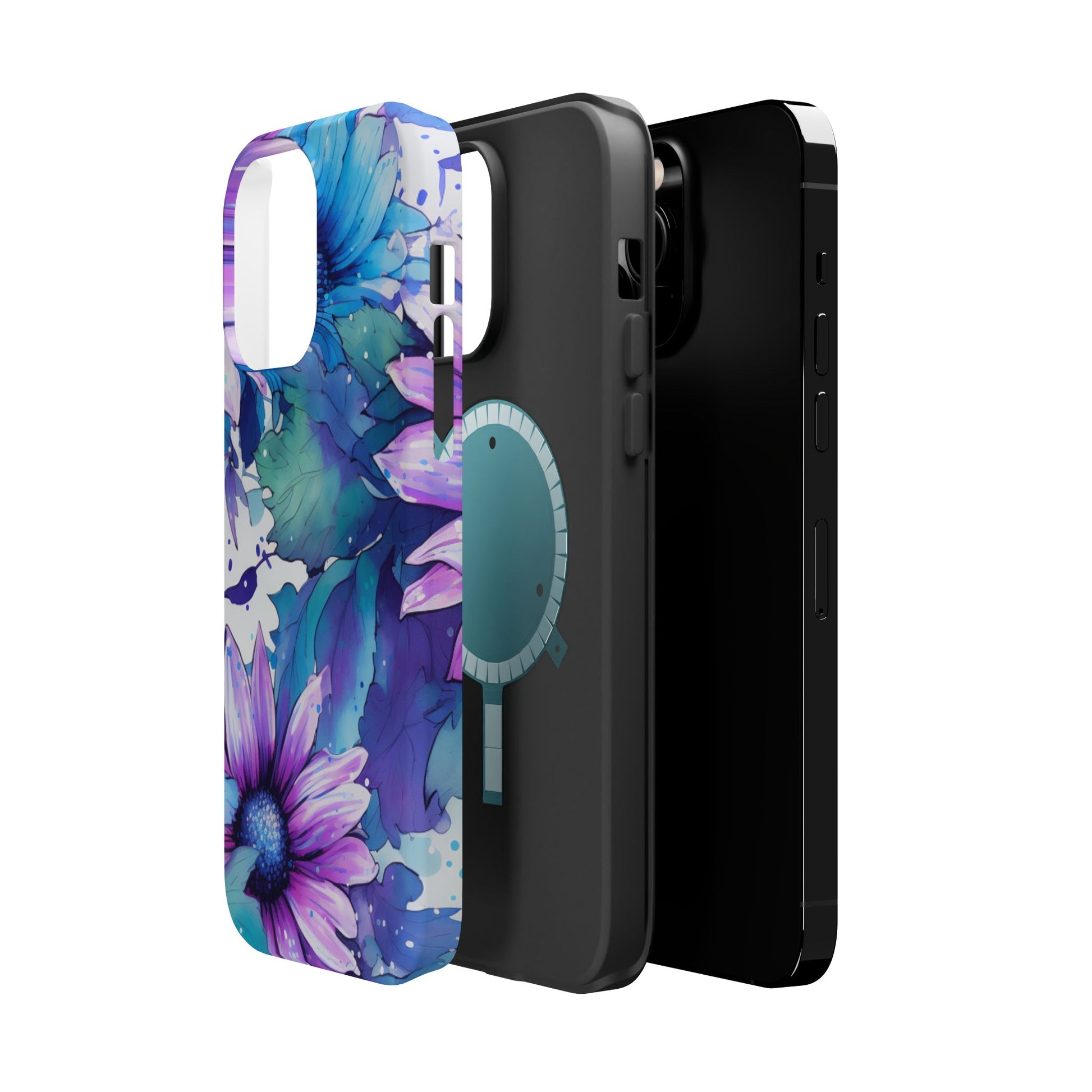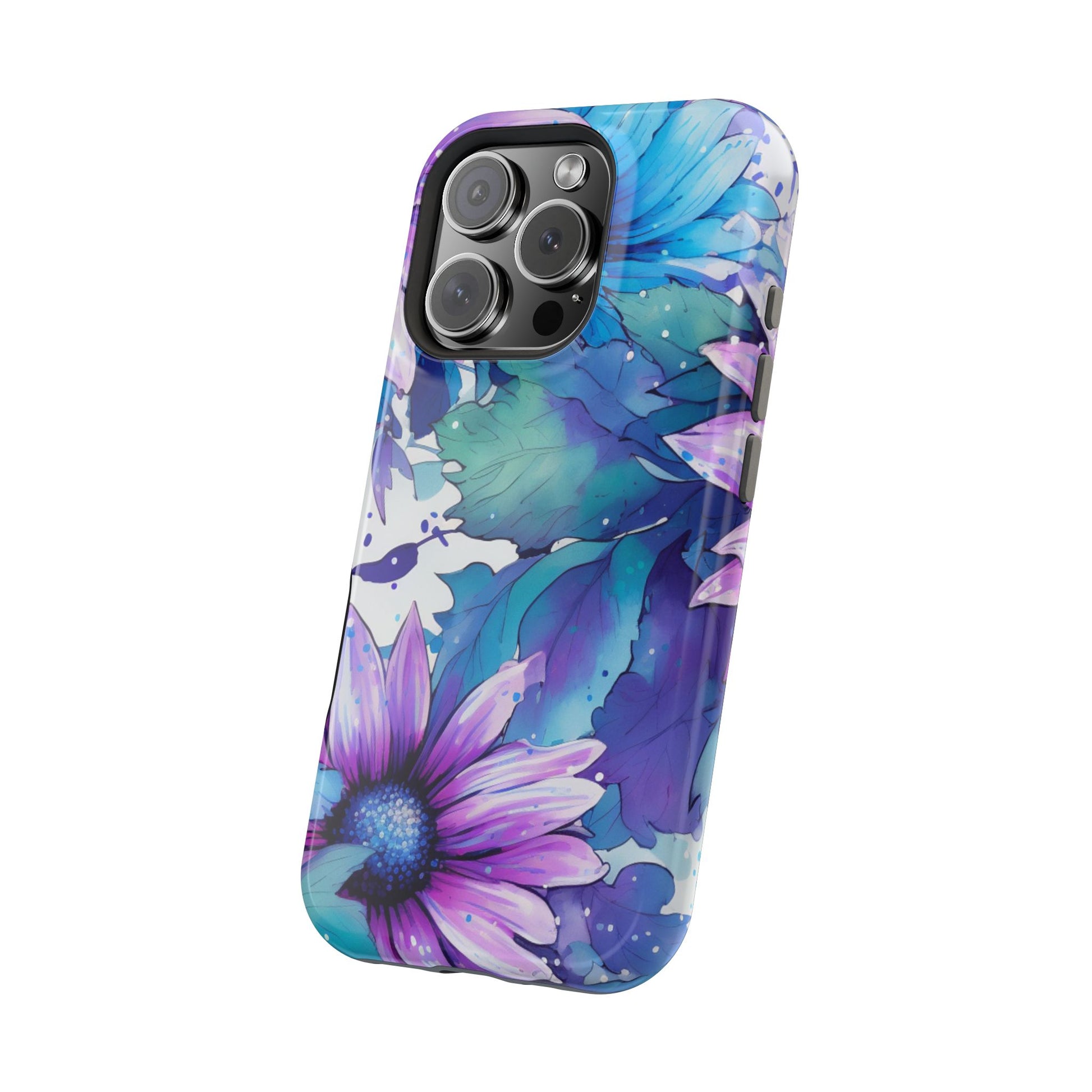 Purple & Teal Watercolor Floral MagSafe iPhone Case - Artistic Flower Design