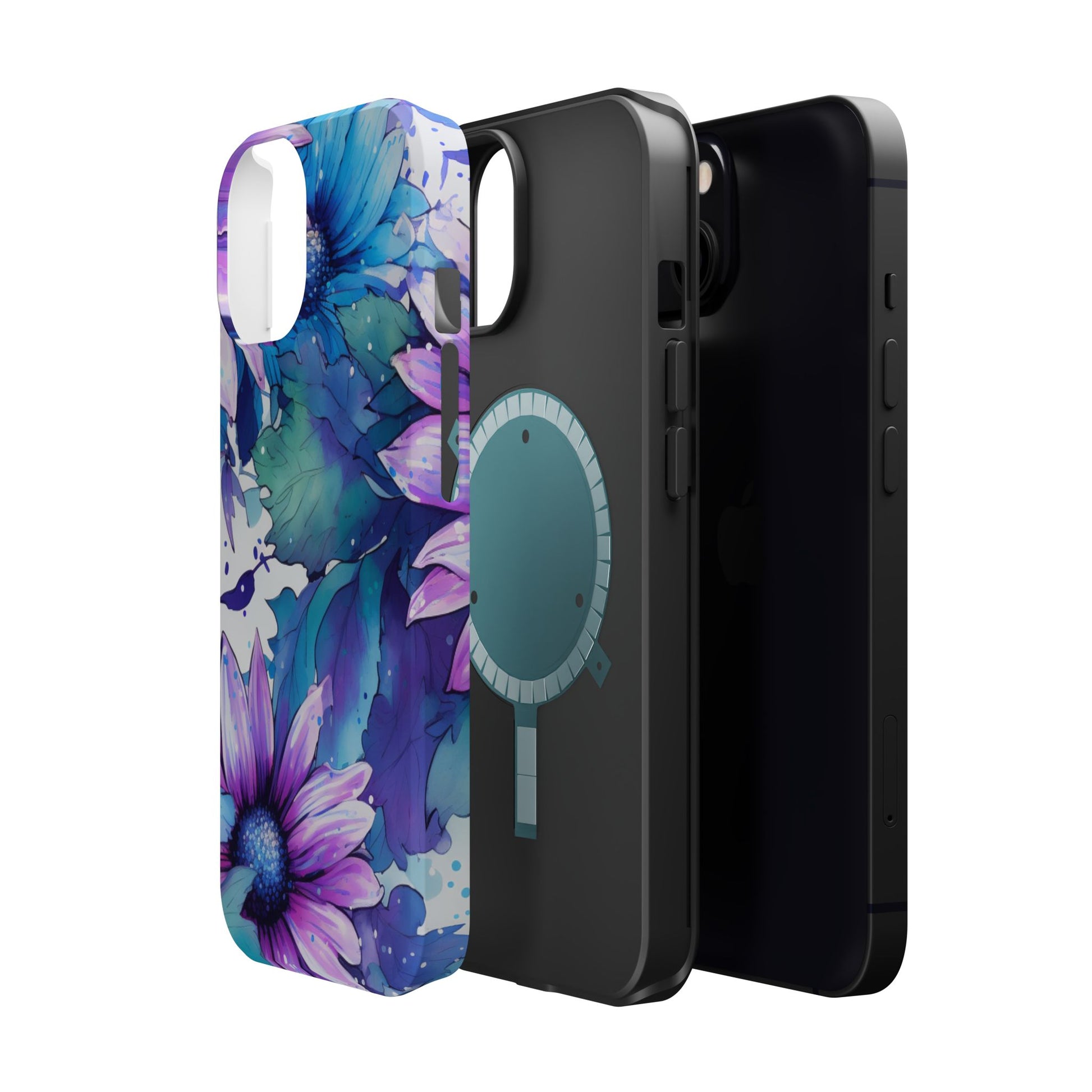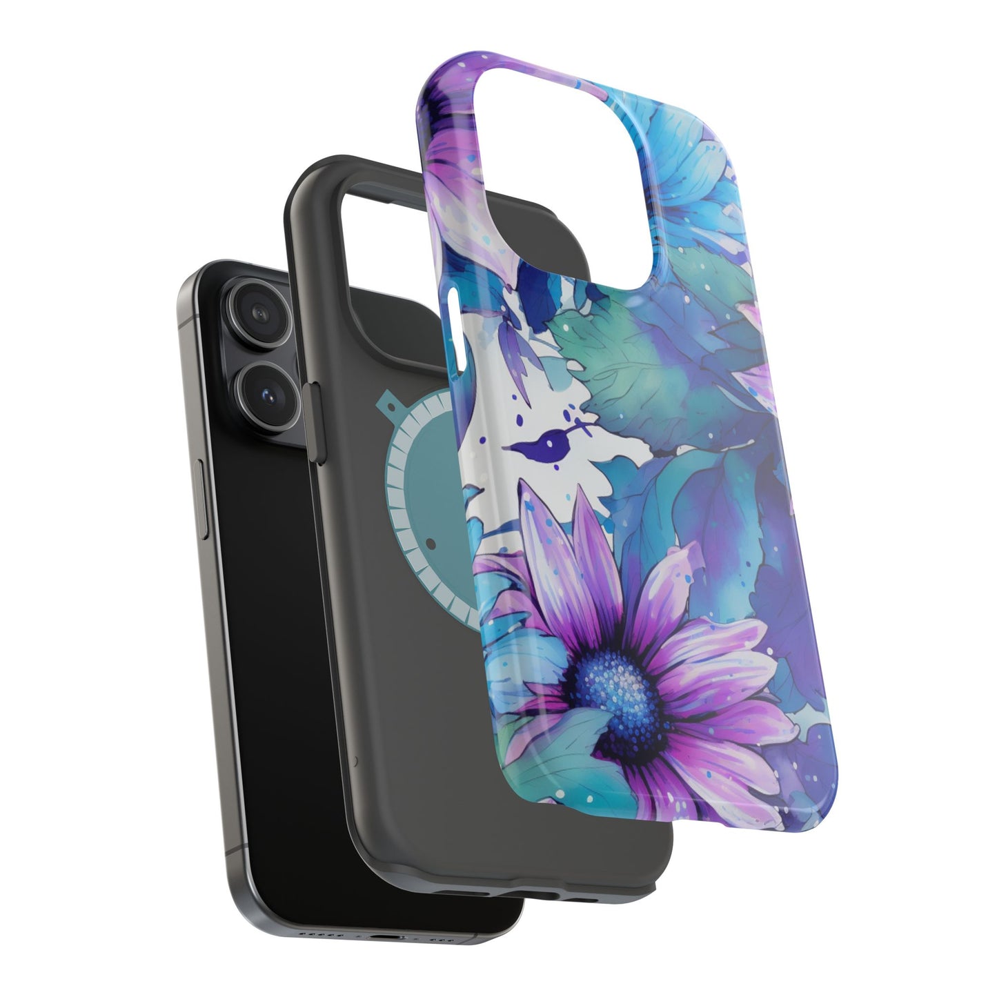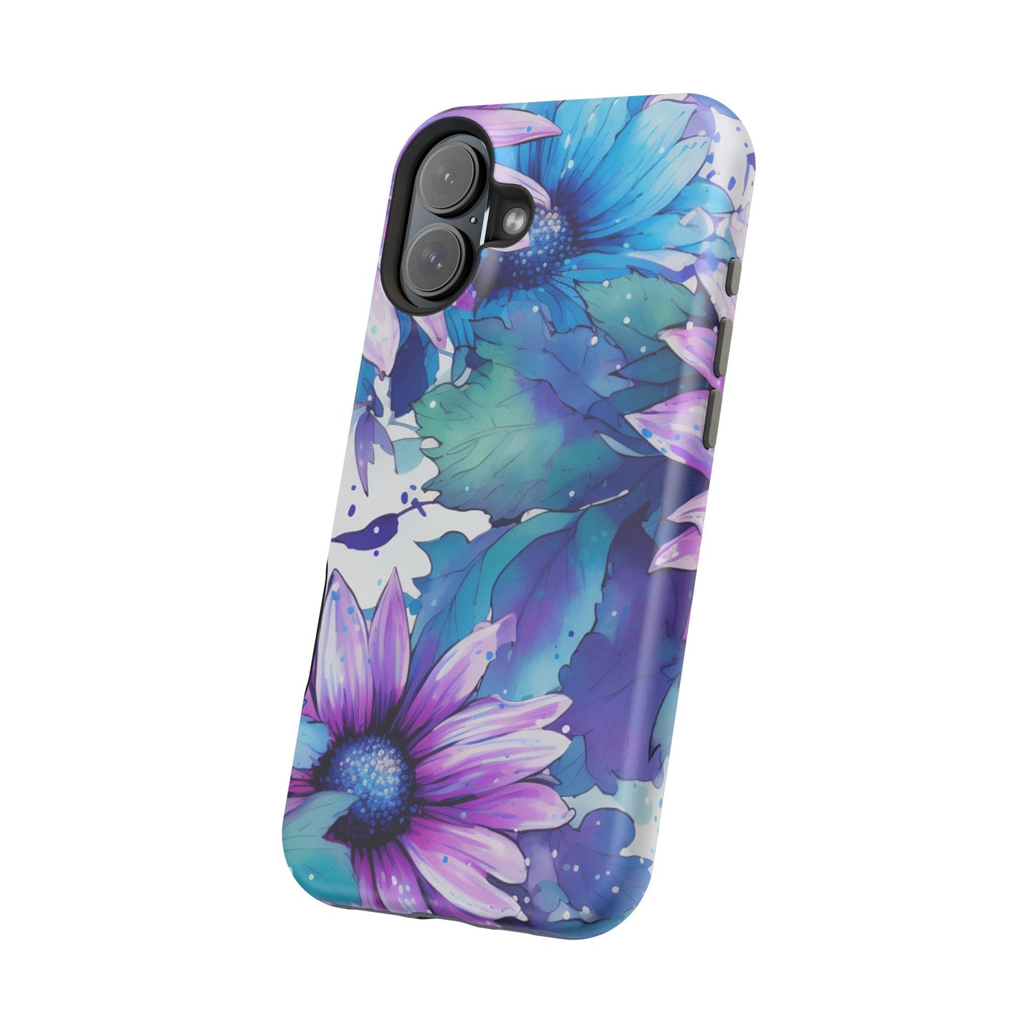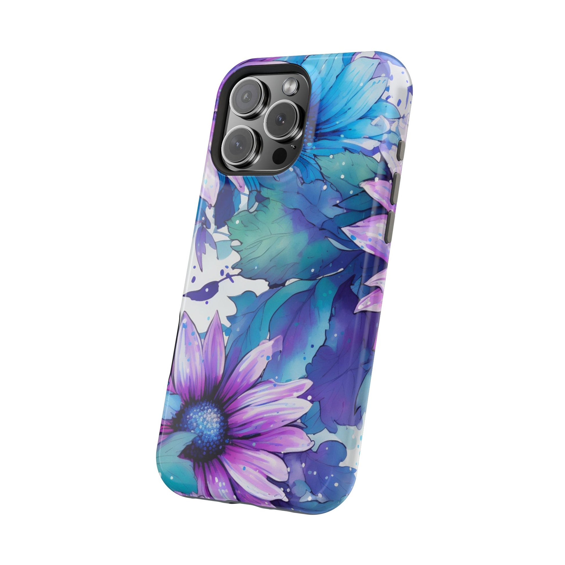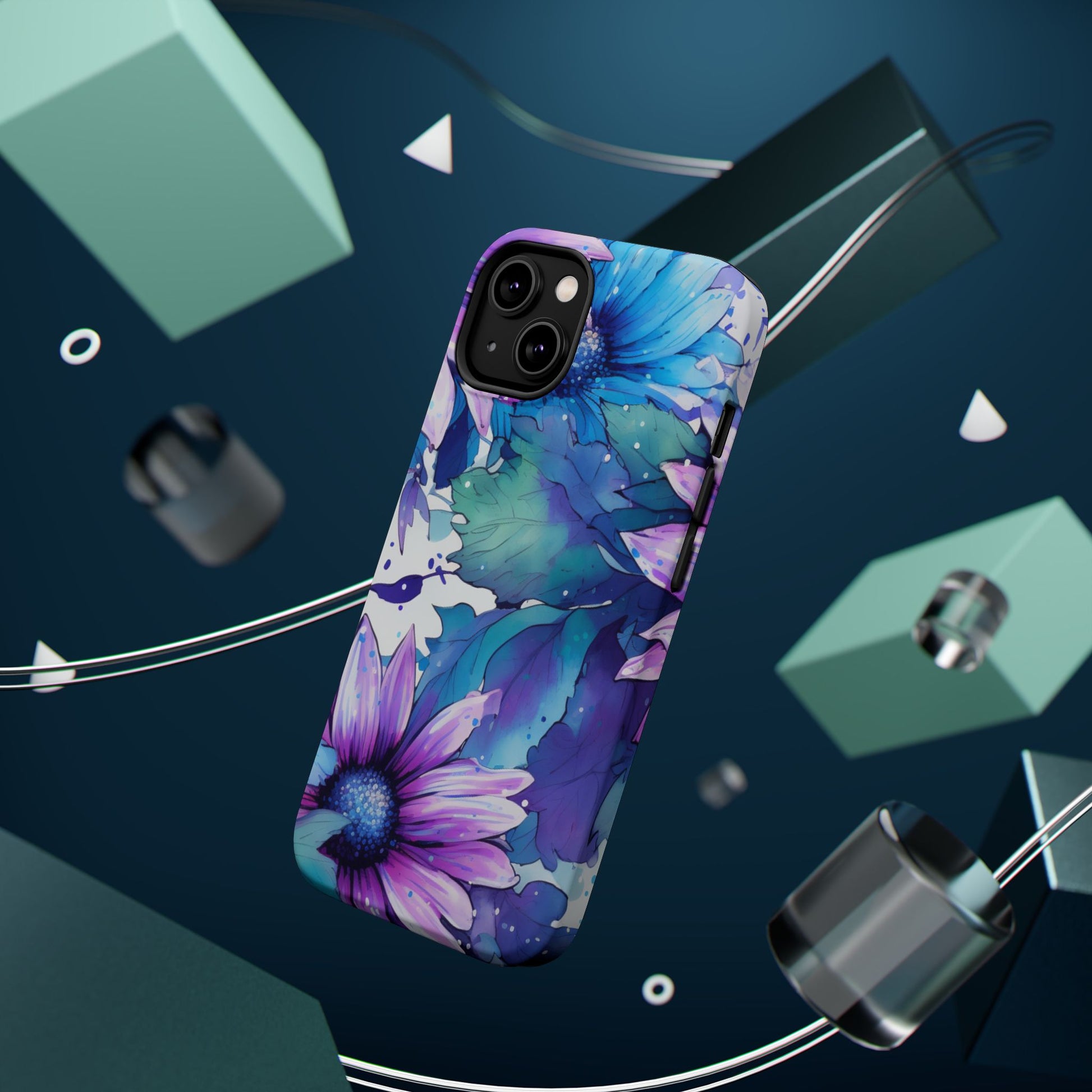 Purple & Teal Watercolor Floral MagSafe iPhone Case - Artistic Flower Design