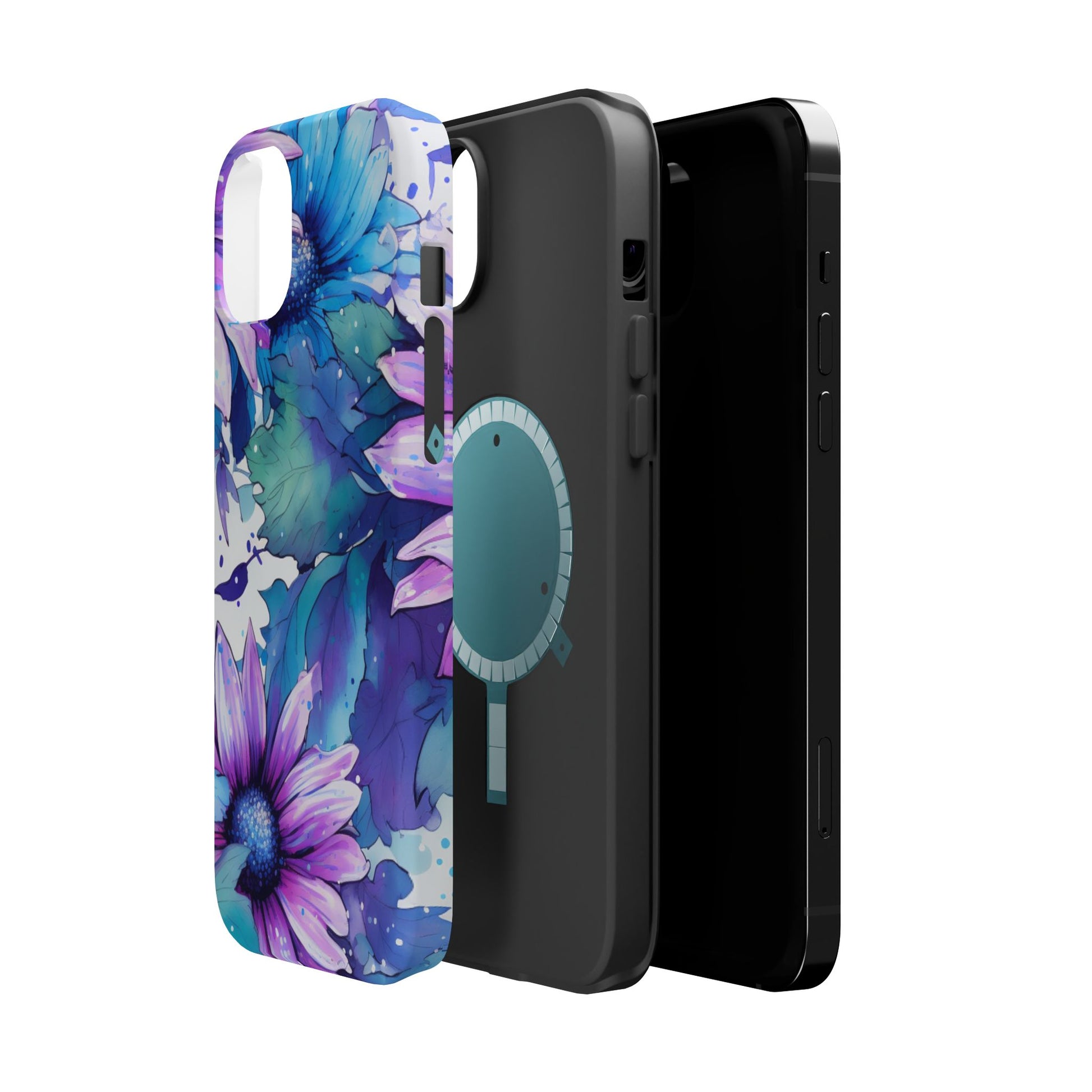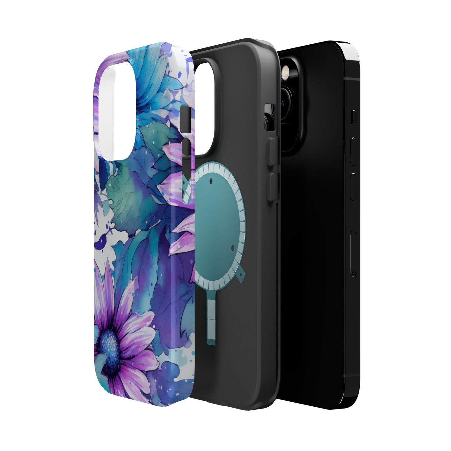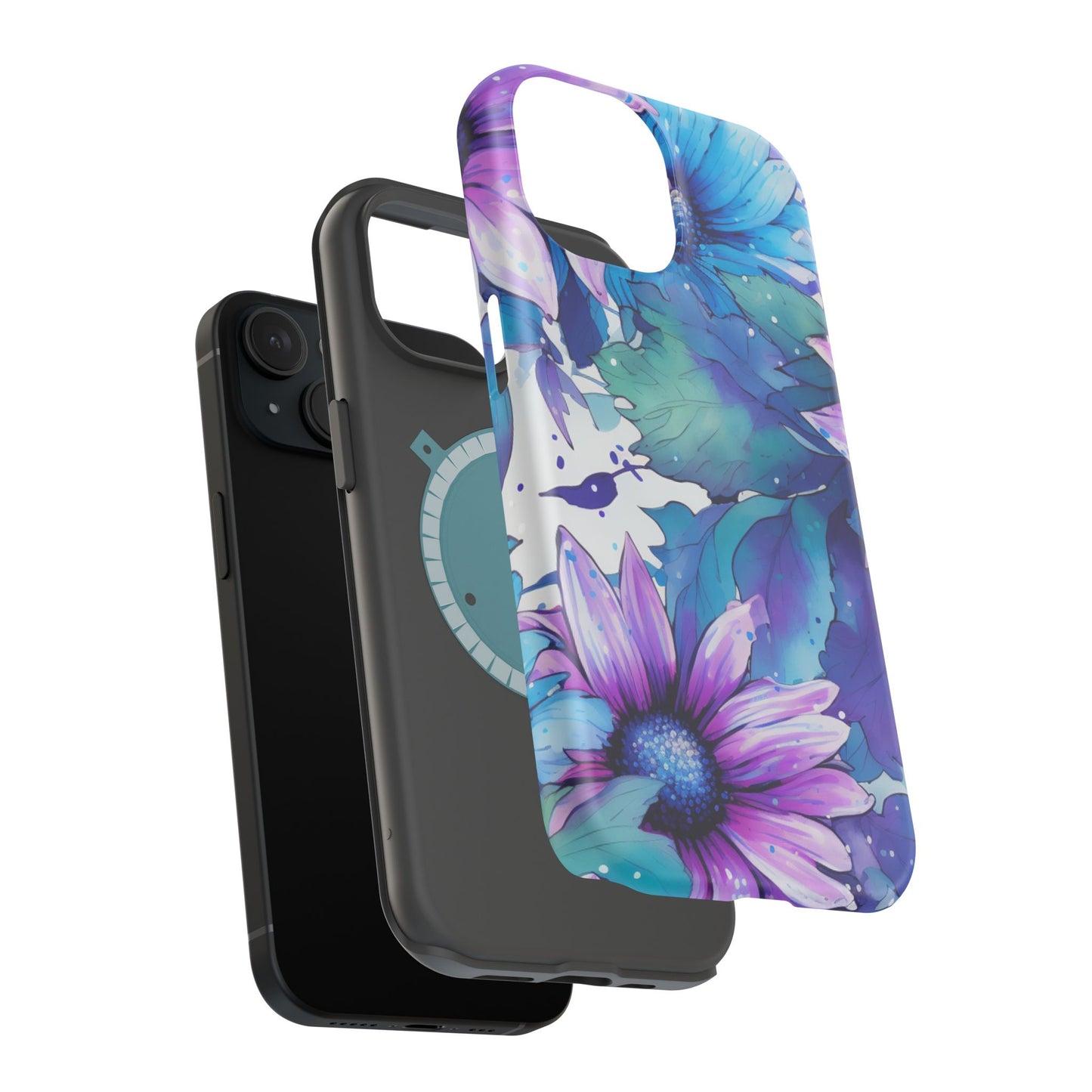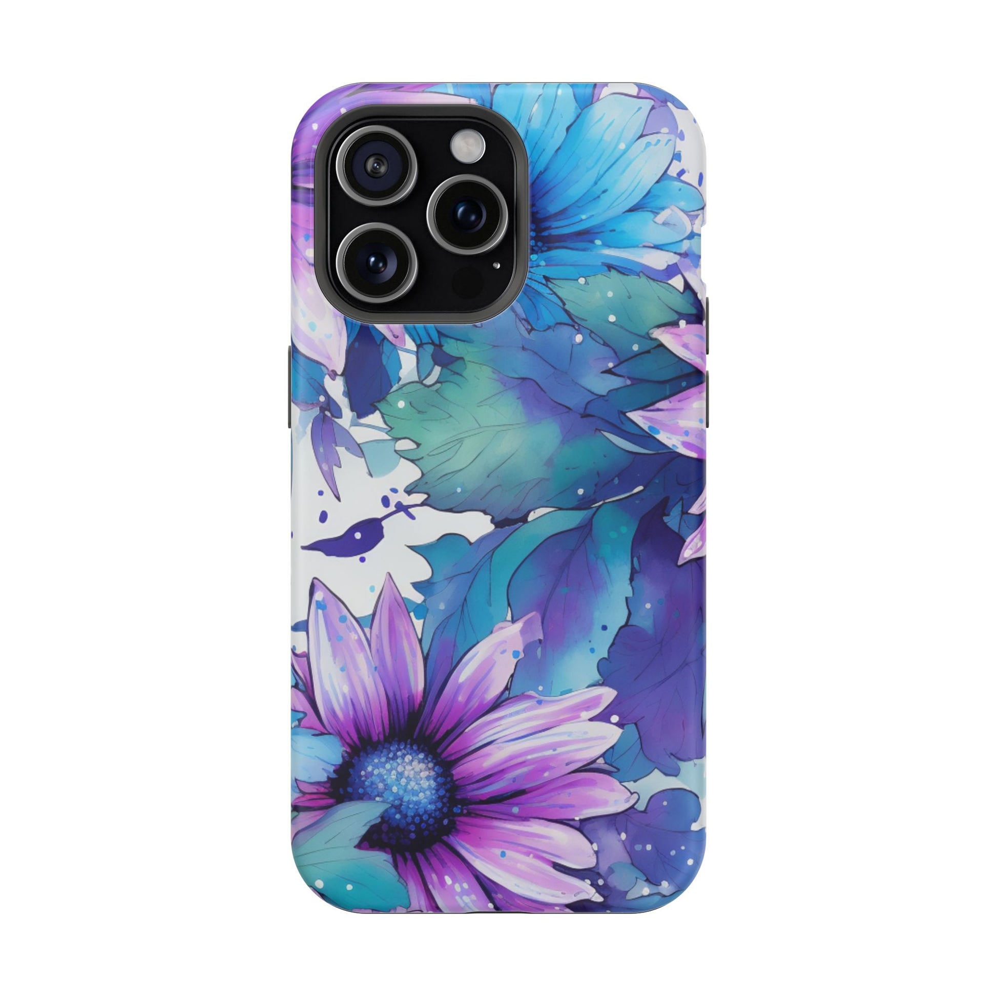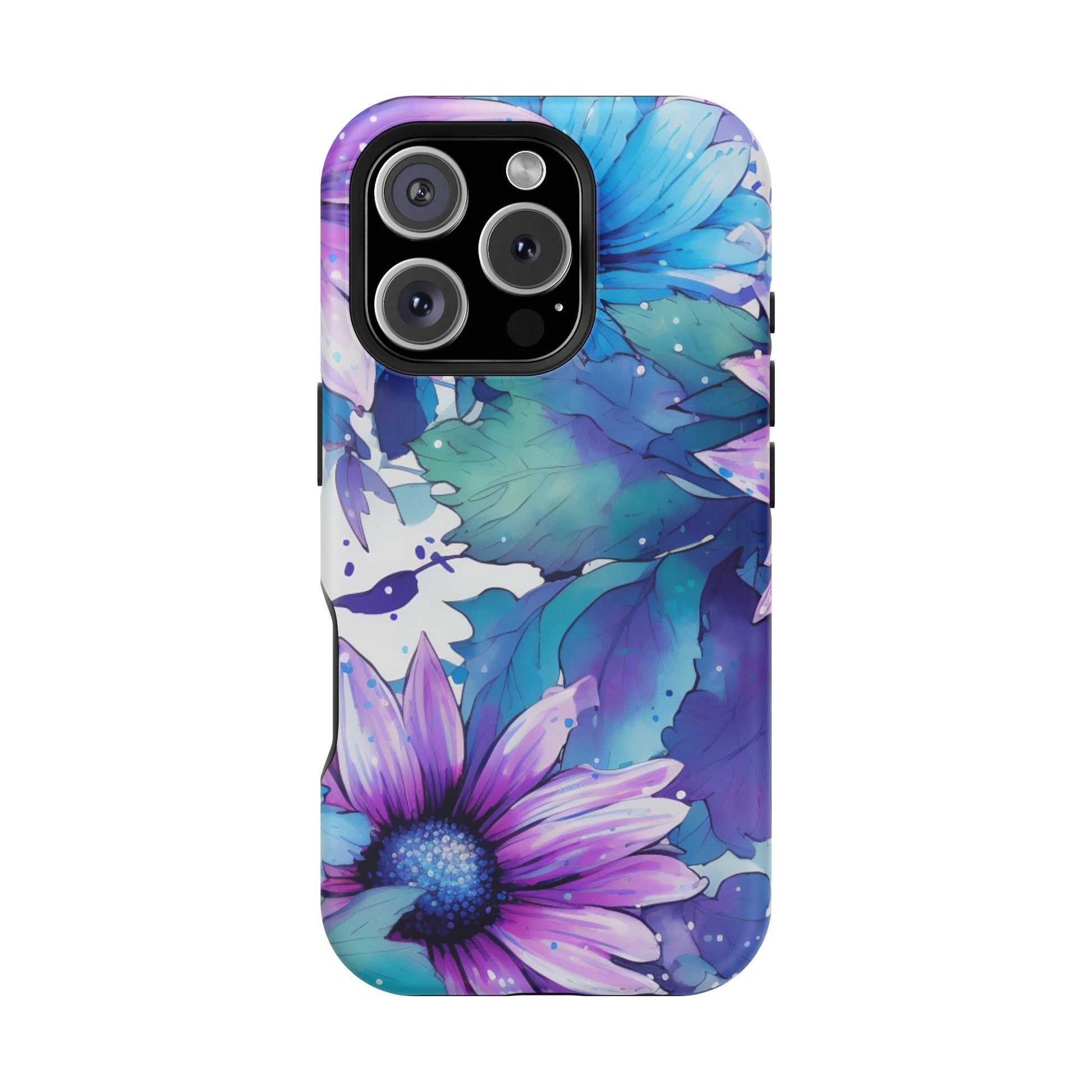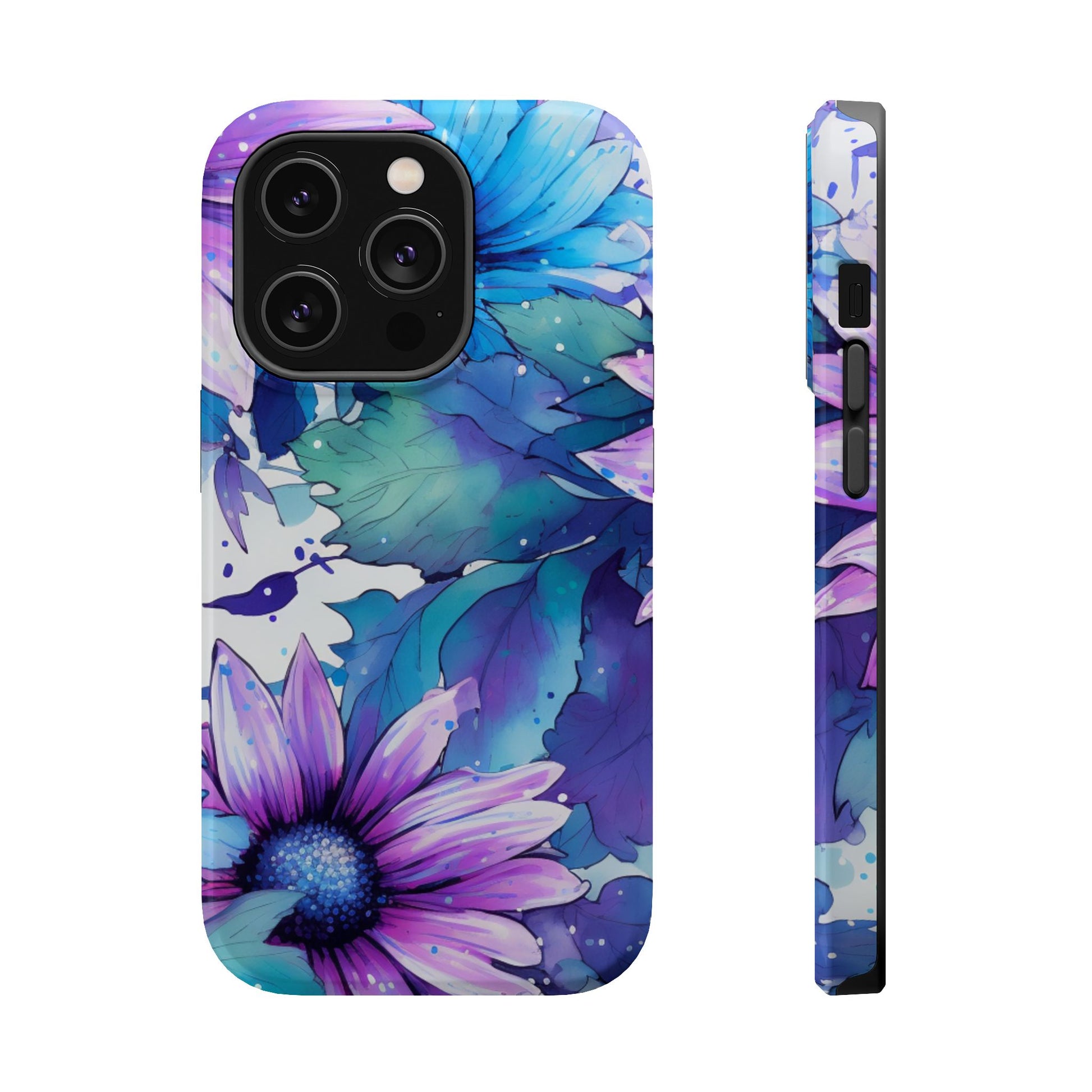 Purple & Teal Watercolor Floral MagSafe iPhone Case - Artistic Flower Design