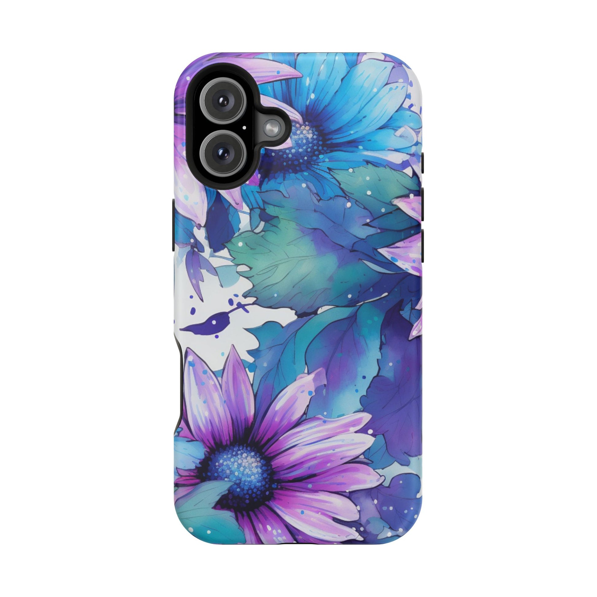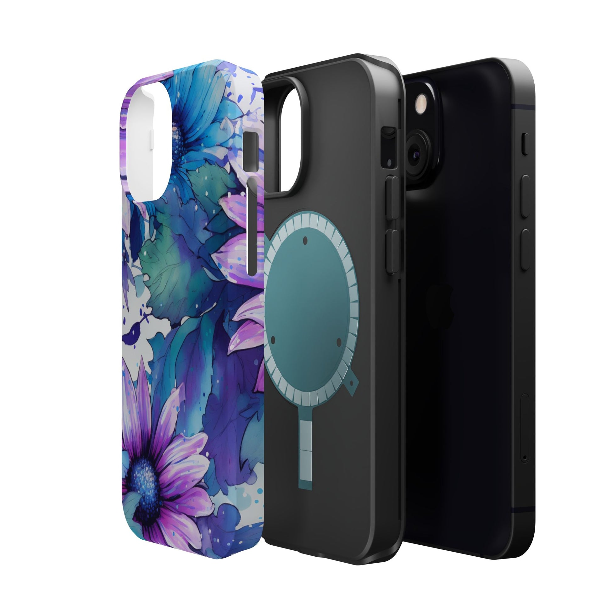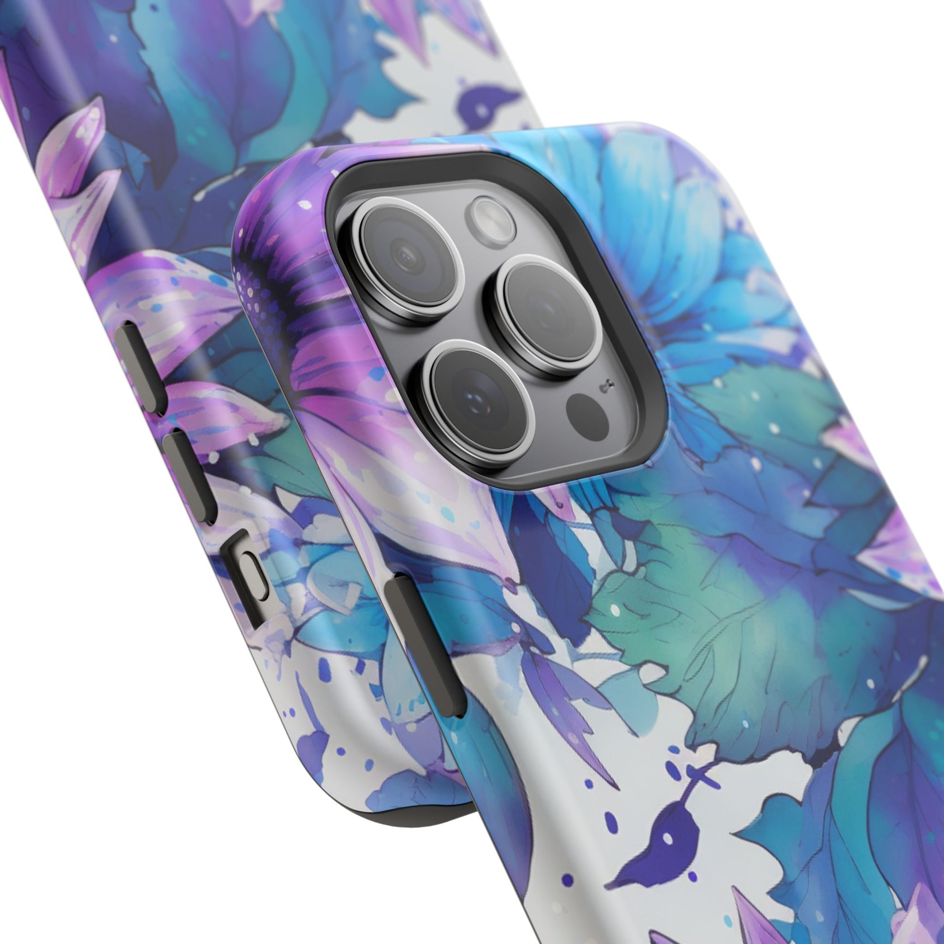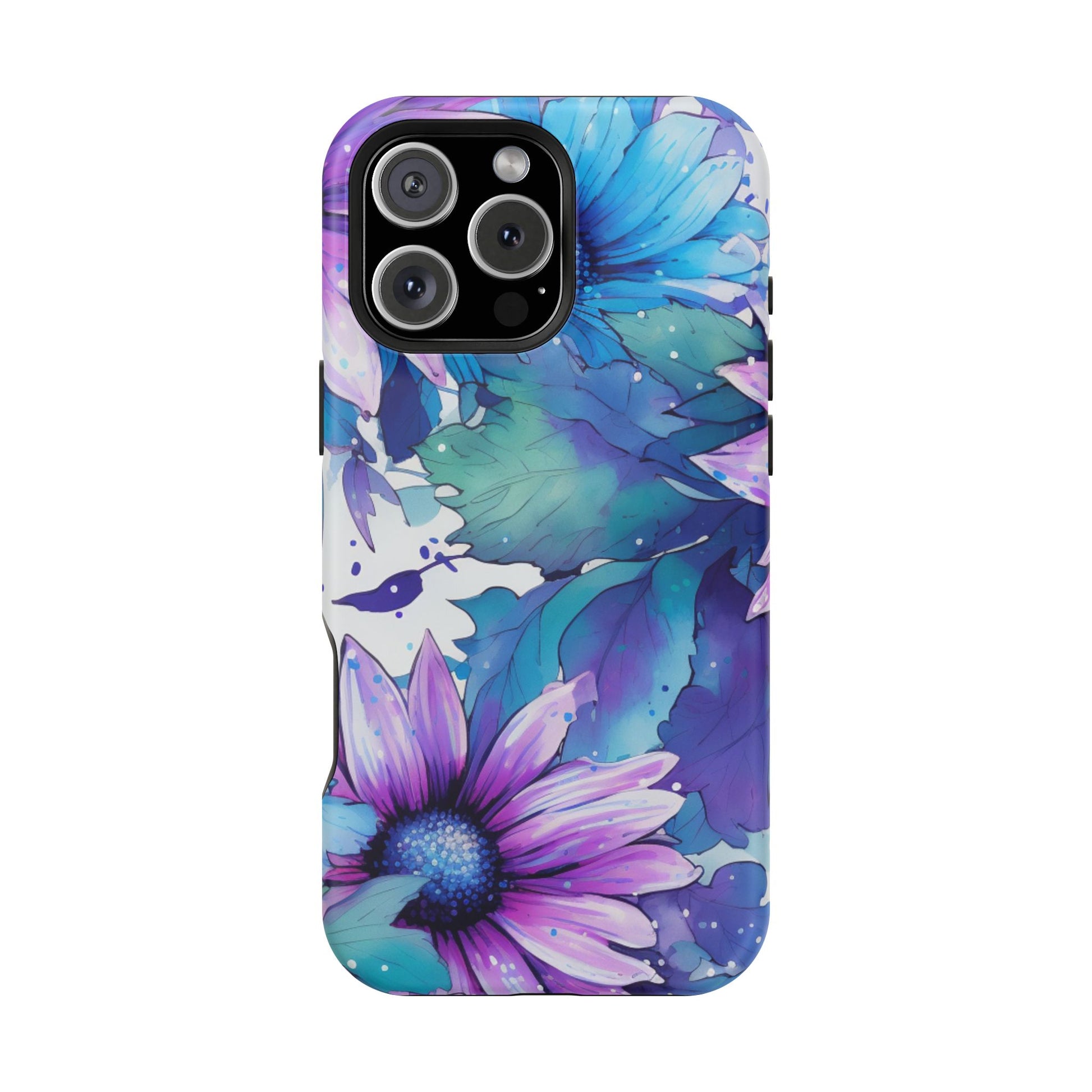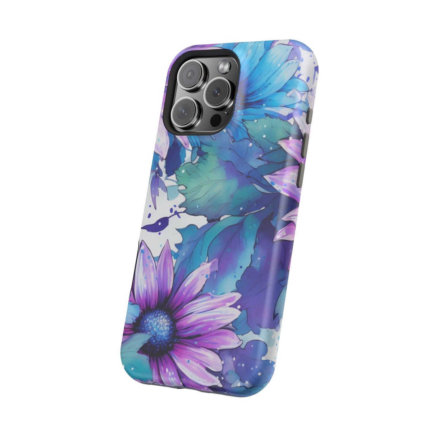 Purple & Teal Watercolor Floral MagSafe iPhone Case - Artistic Flower Design