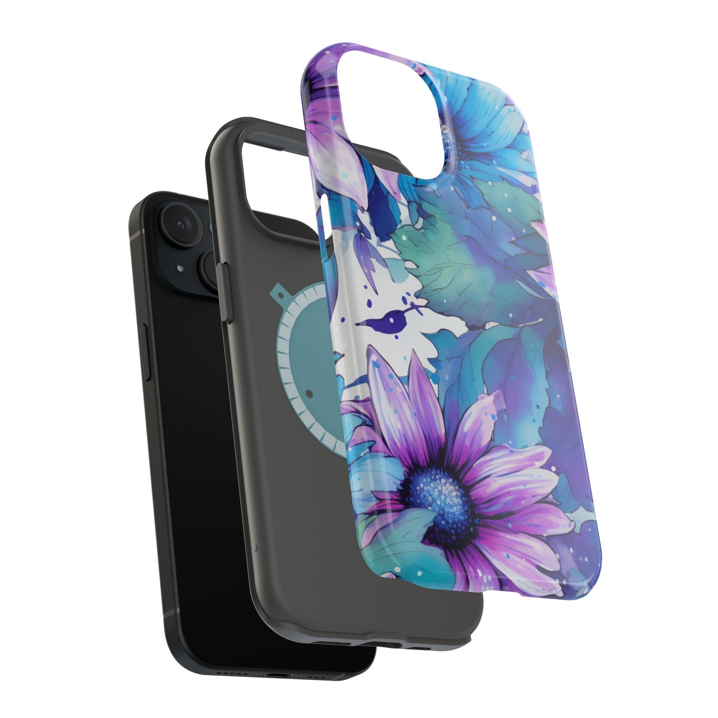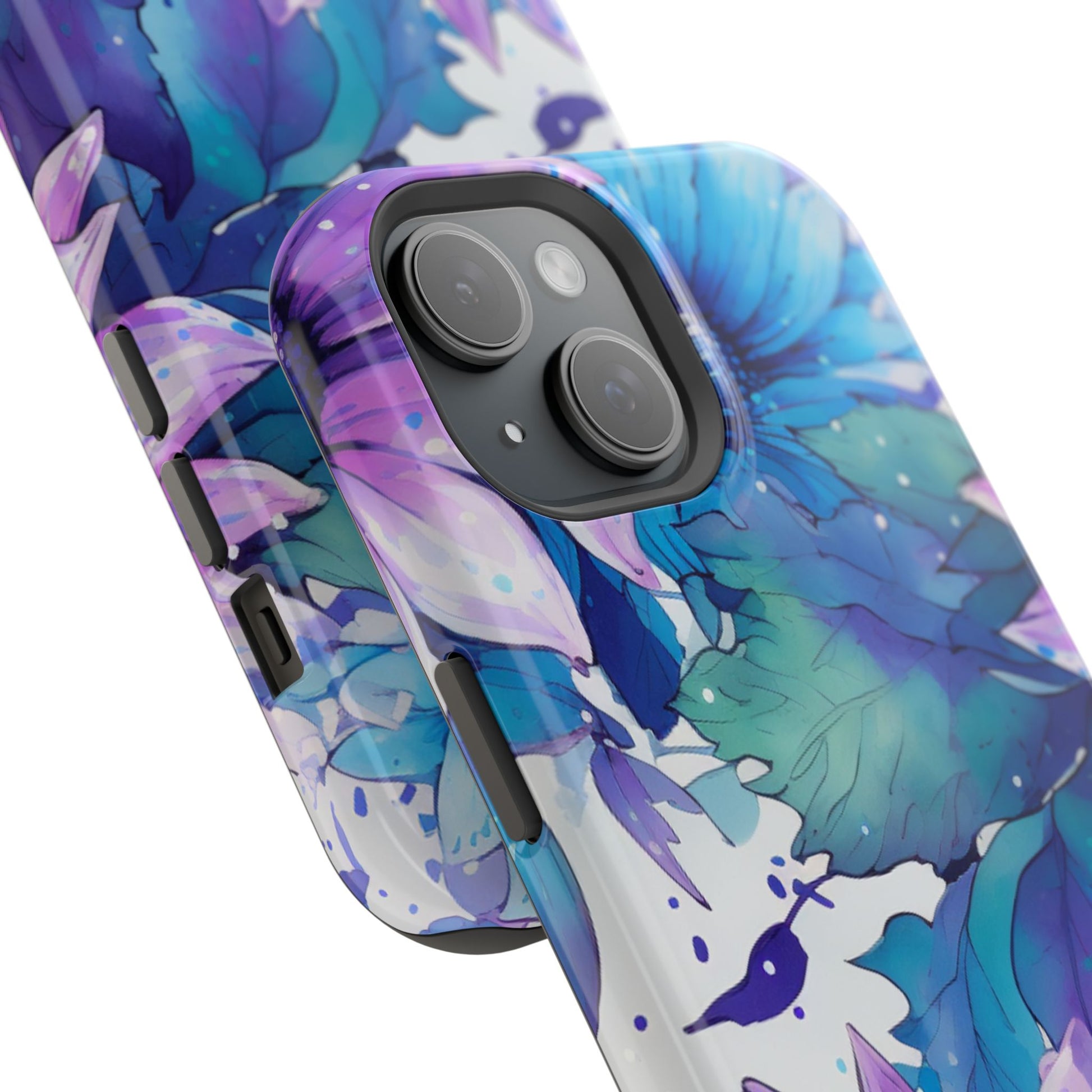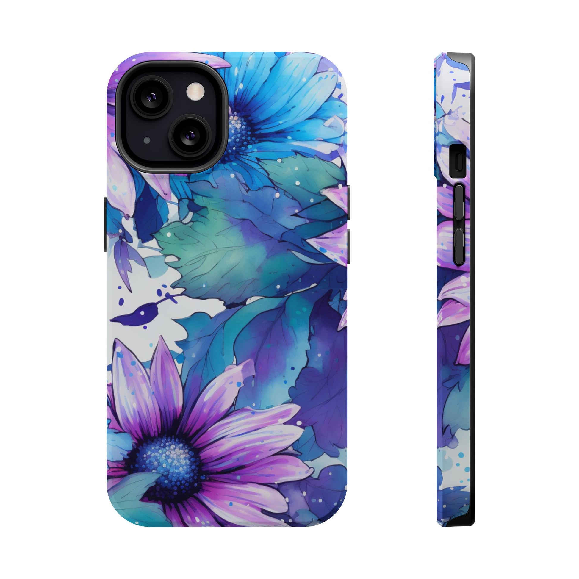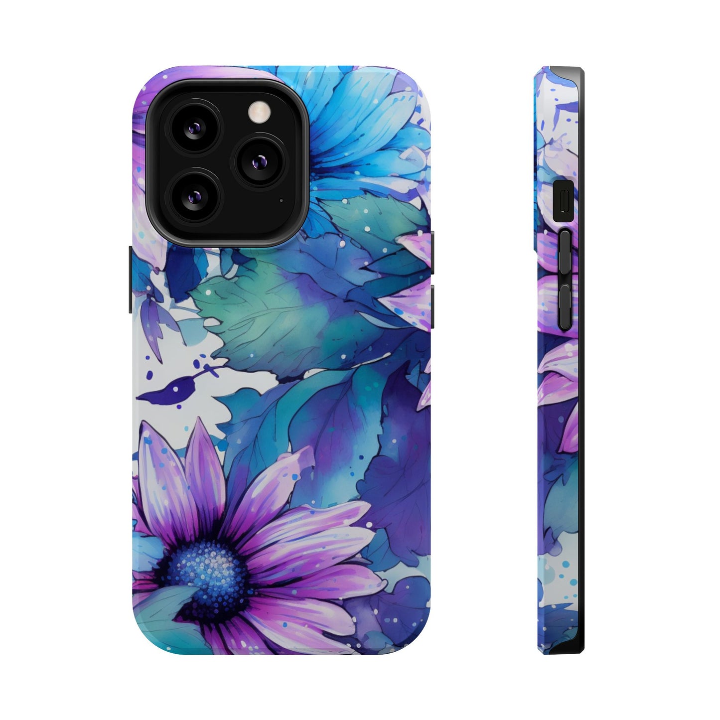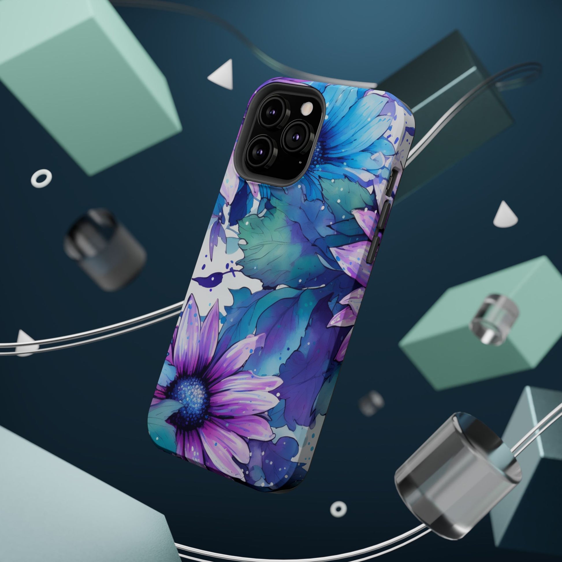 Purple & Teal Watercolor Floral MagSafe iPhone Case - Artistic Flower Design