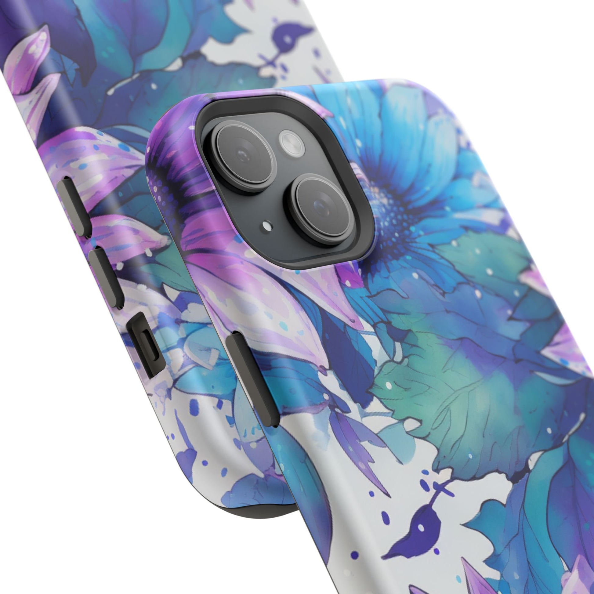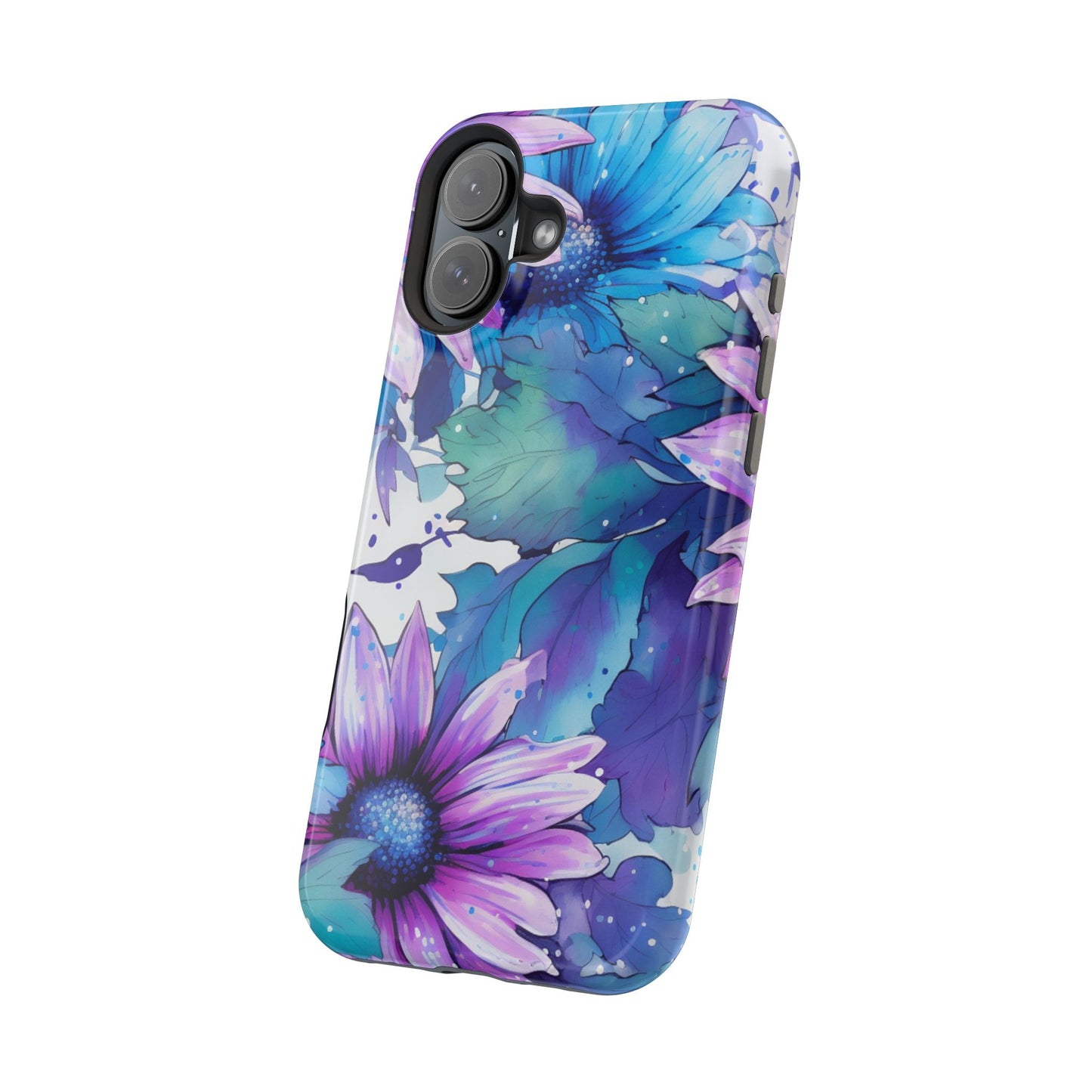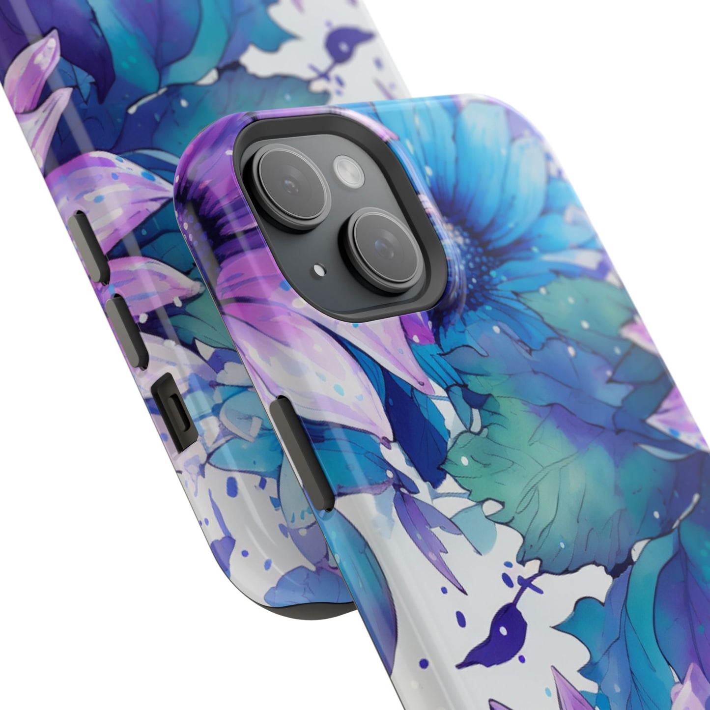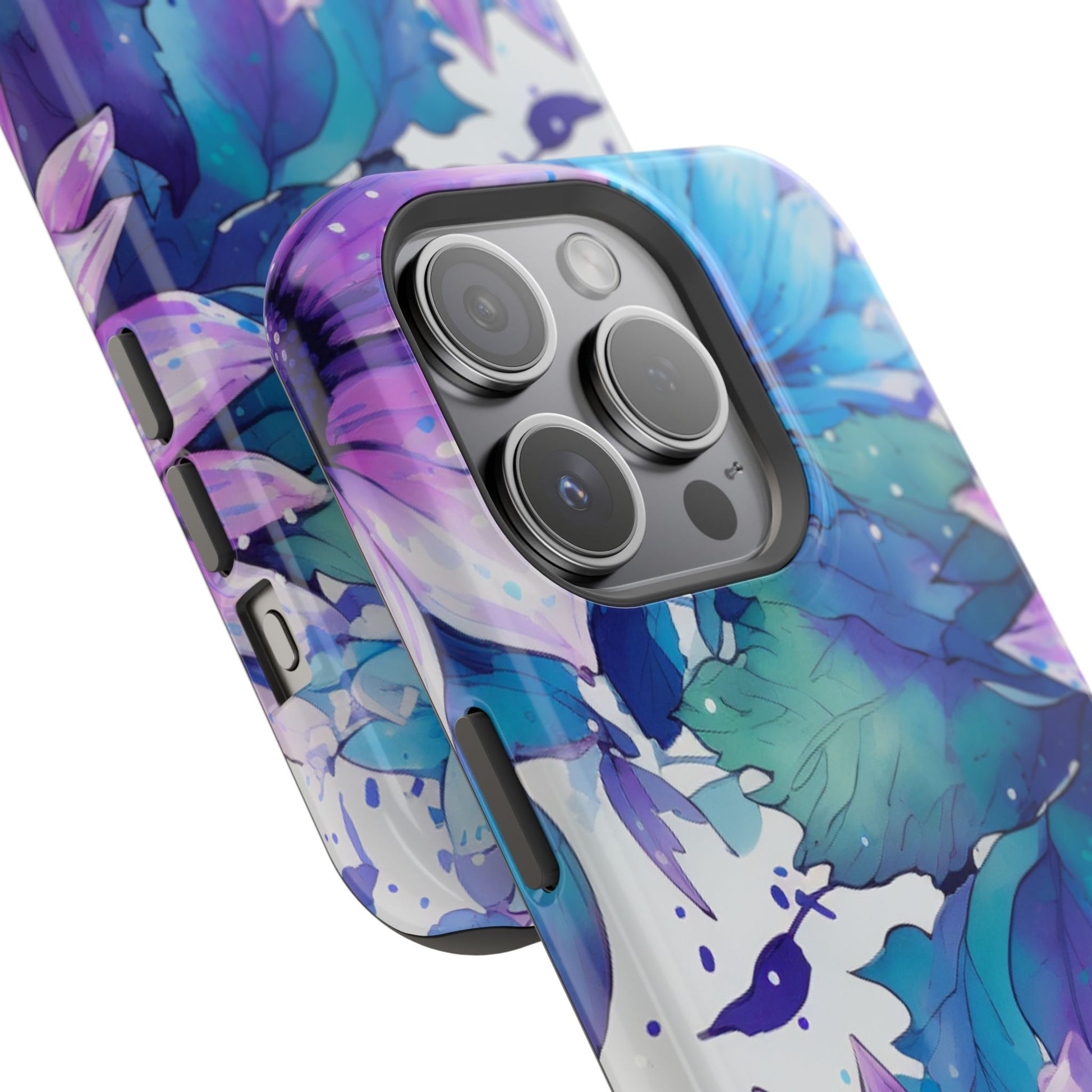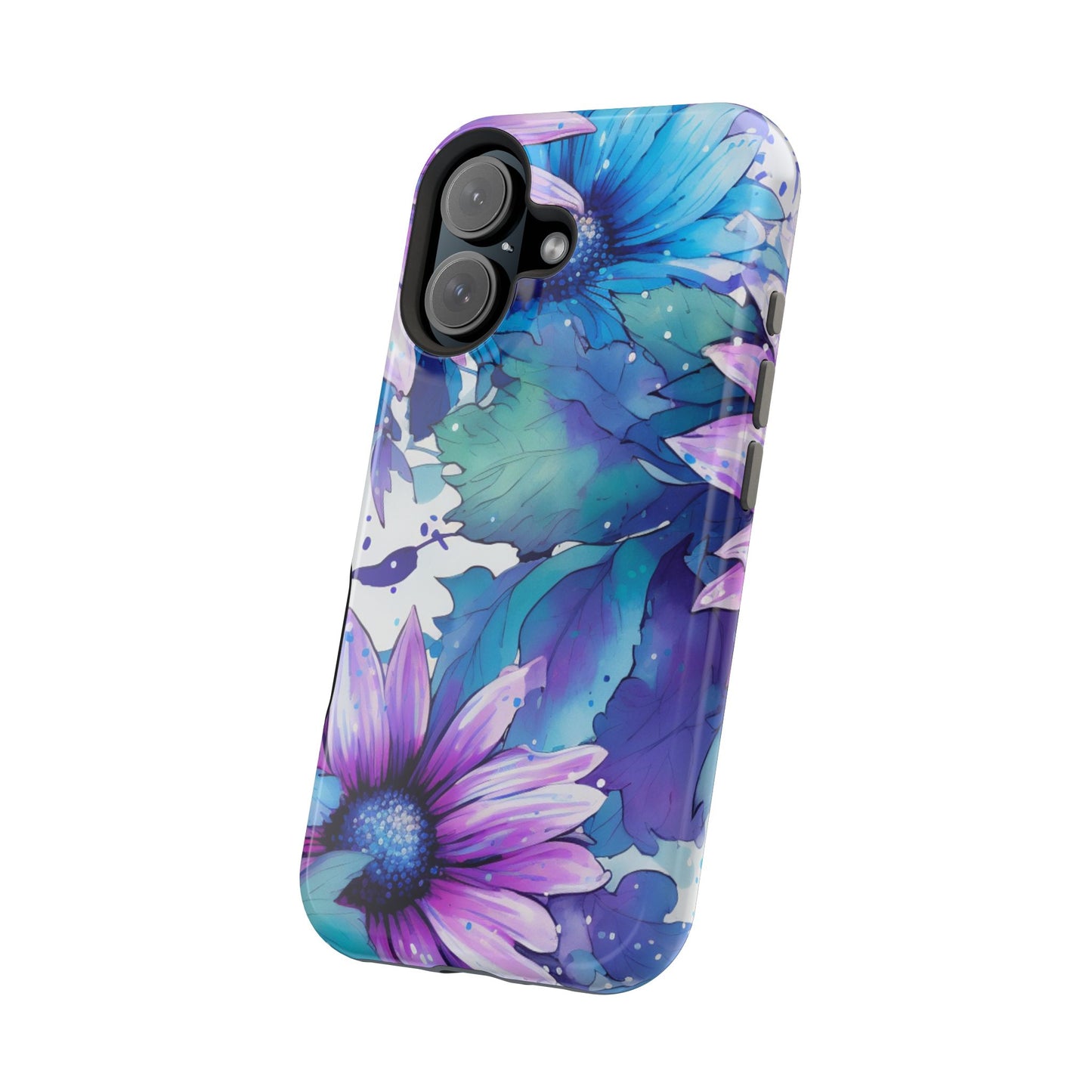 Purple & Teal Watercolor Floral MagSafe iPhone Case - Artistic Flower Design