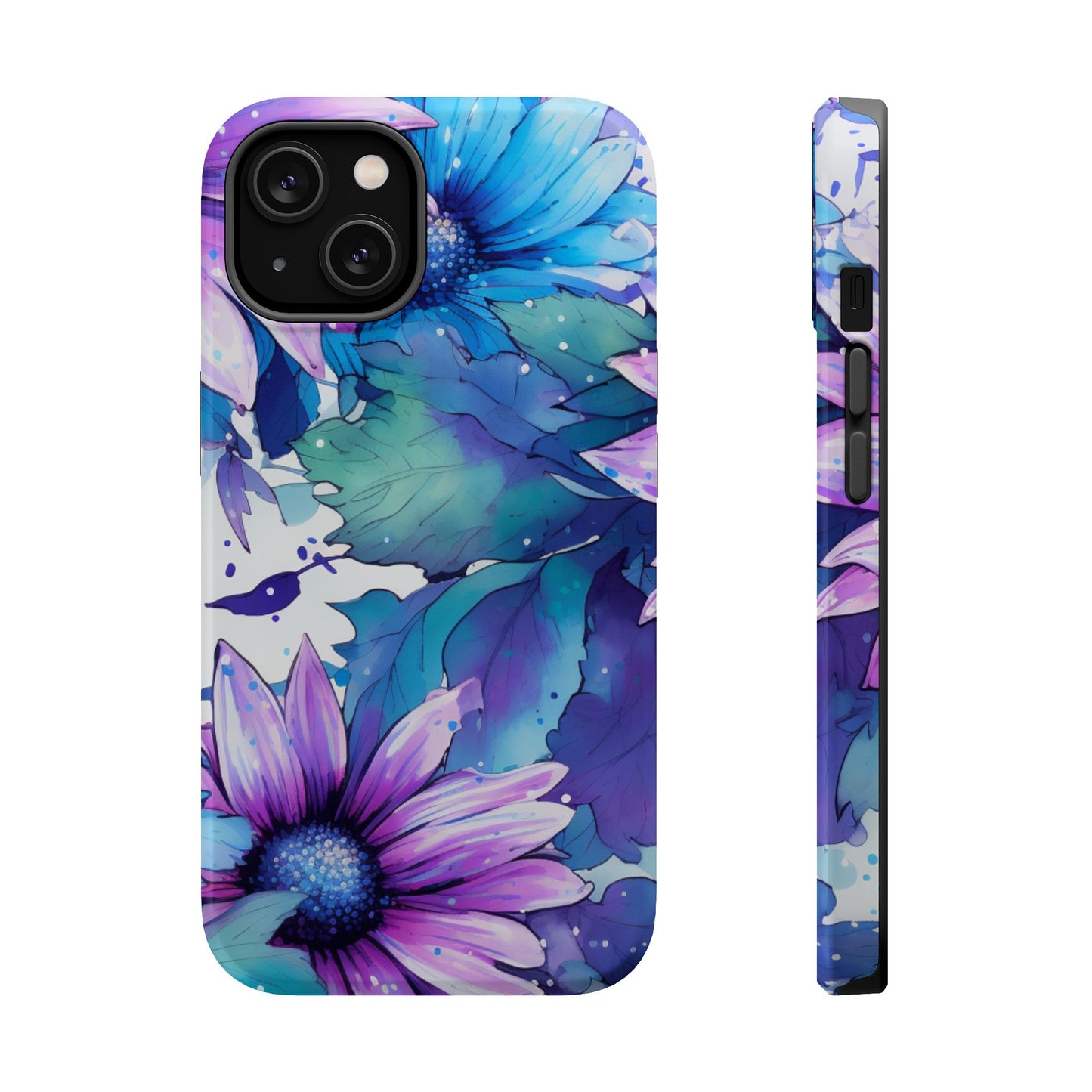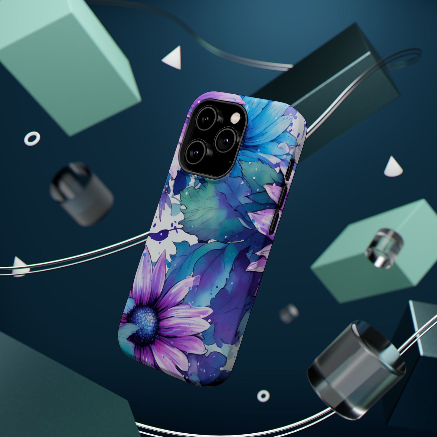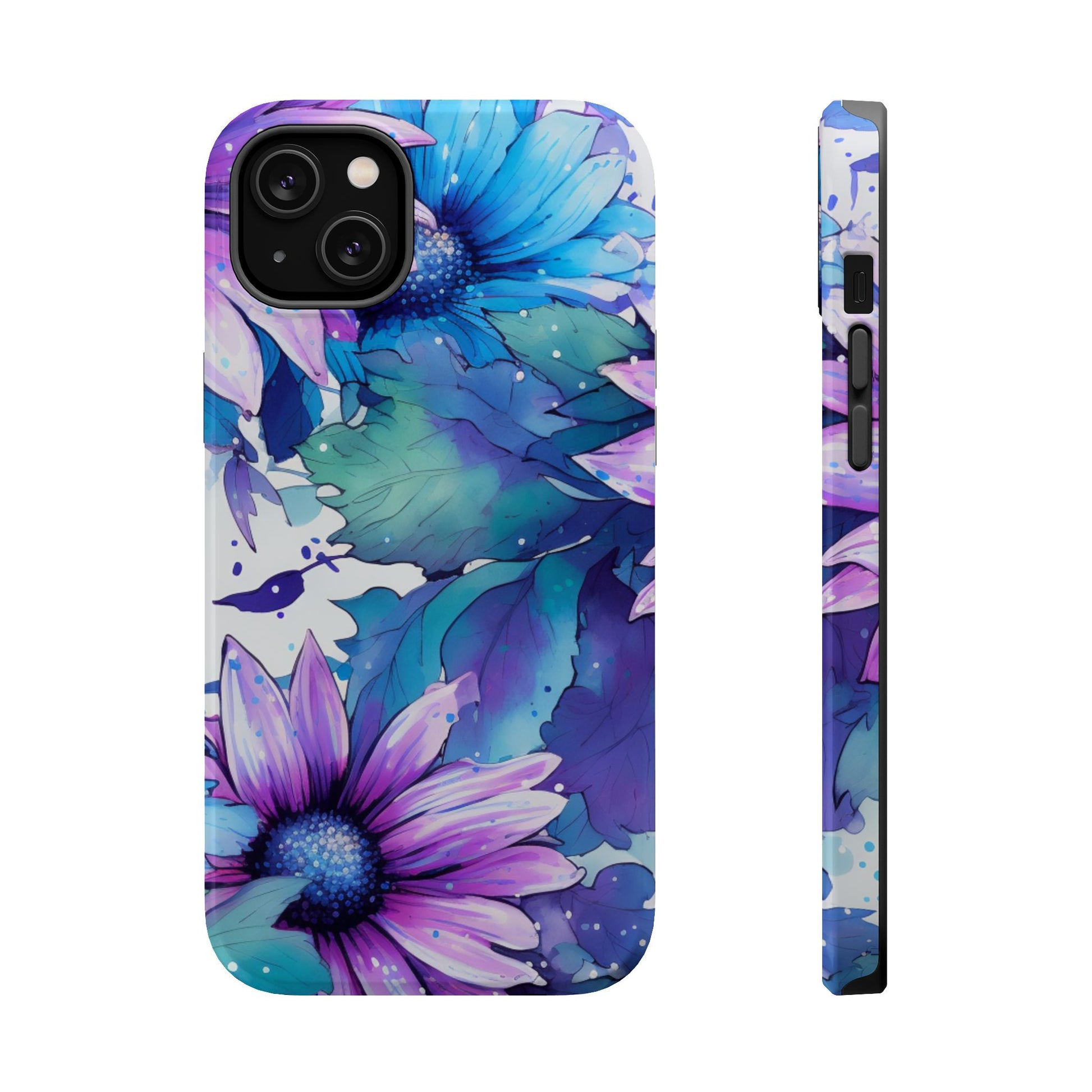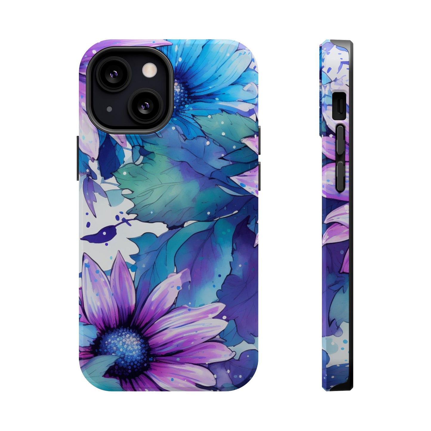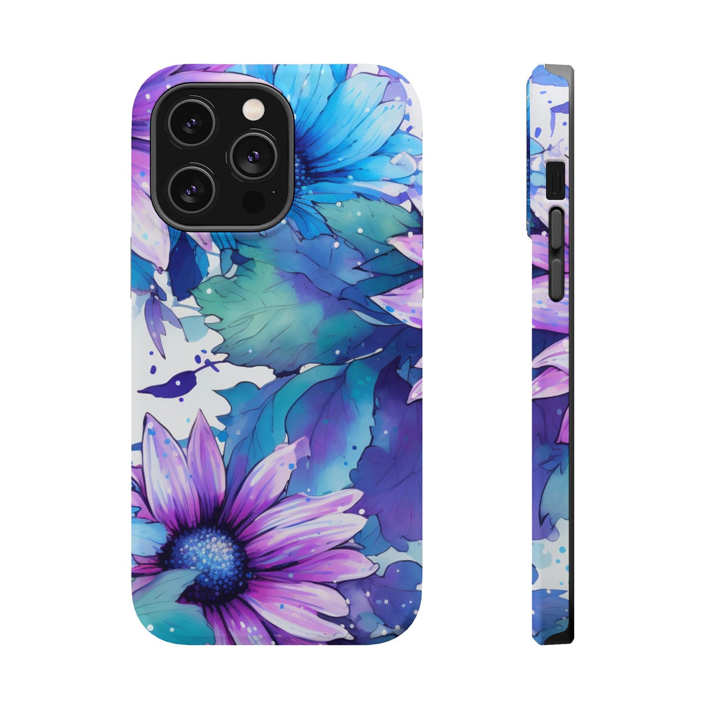 Purple & Teal Watercolor Floral MagSafe iPhone Case - Artistic Flower Design