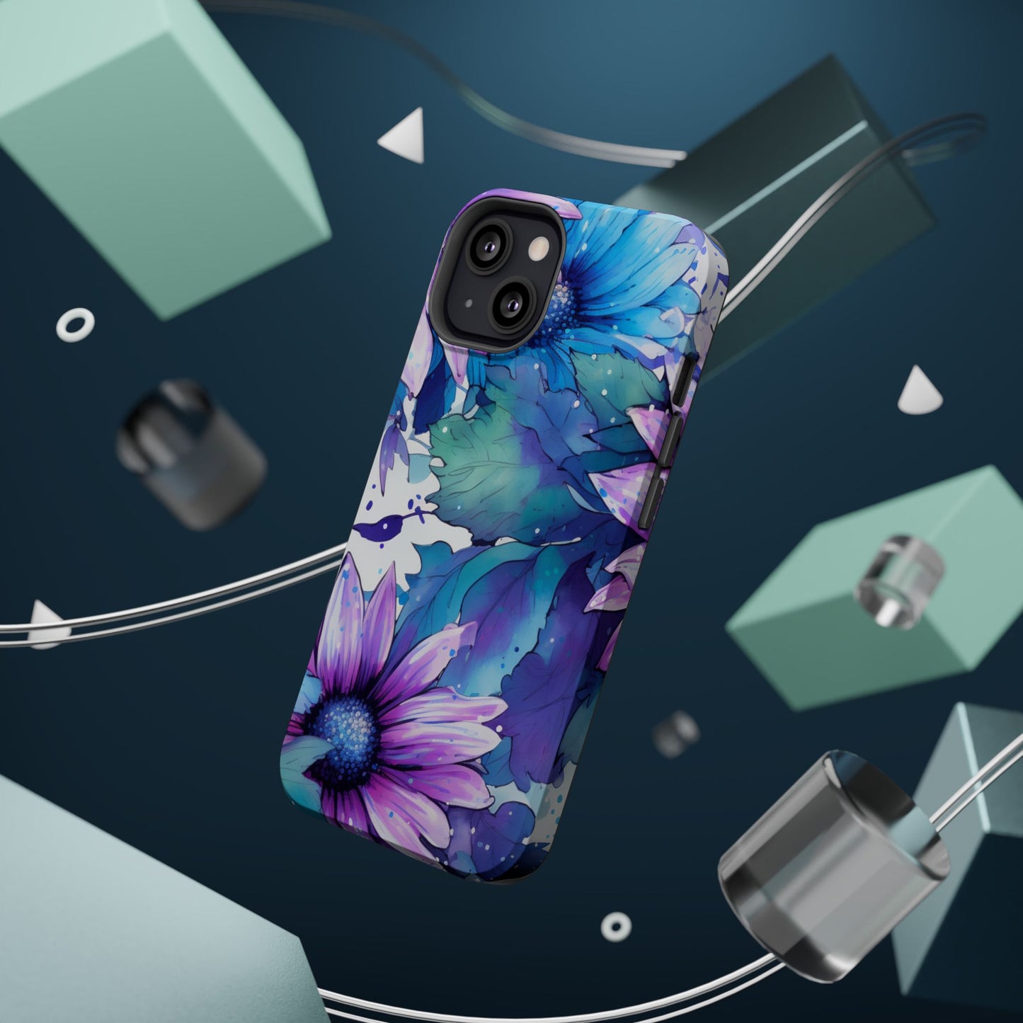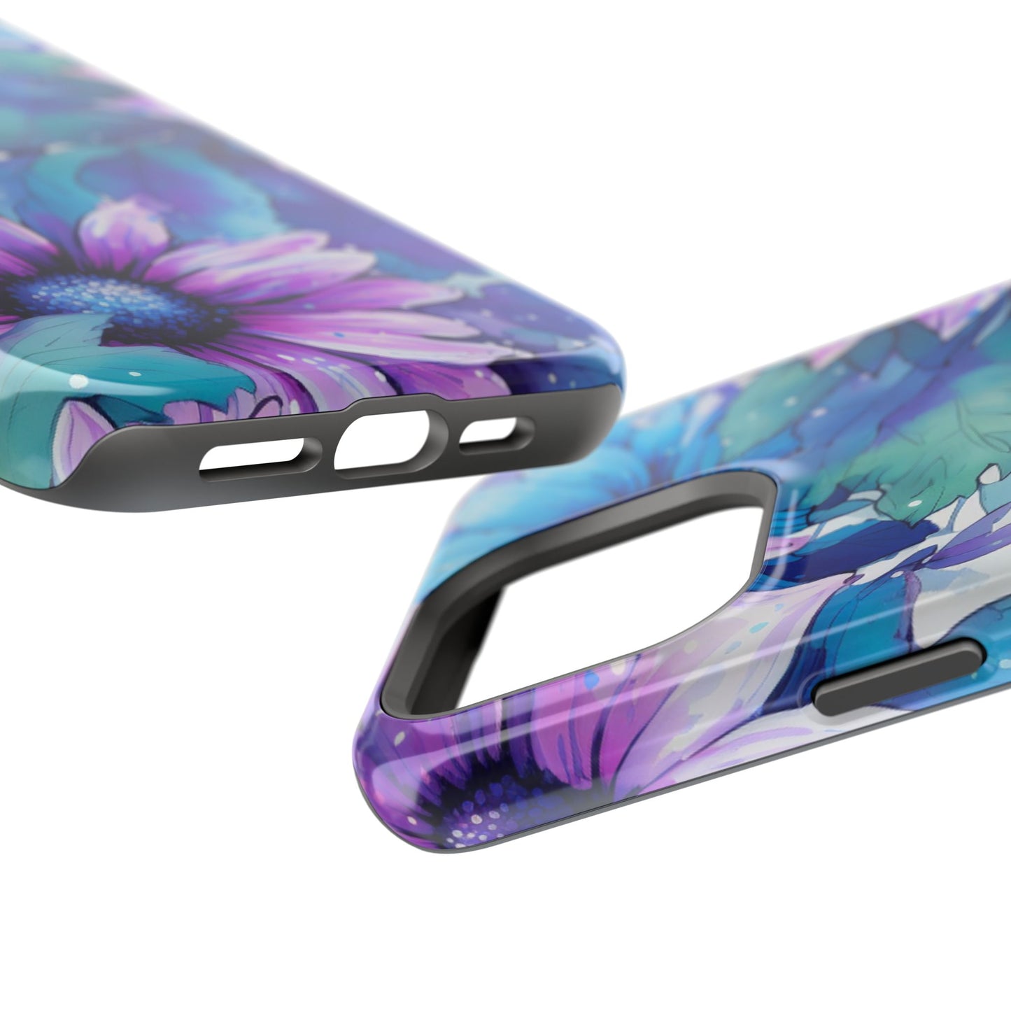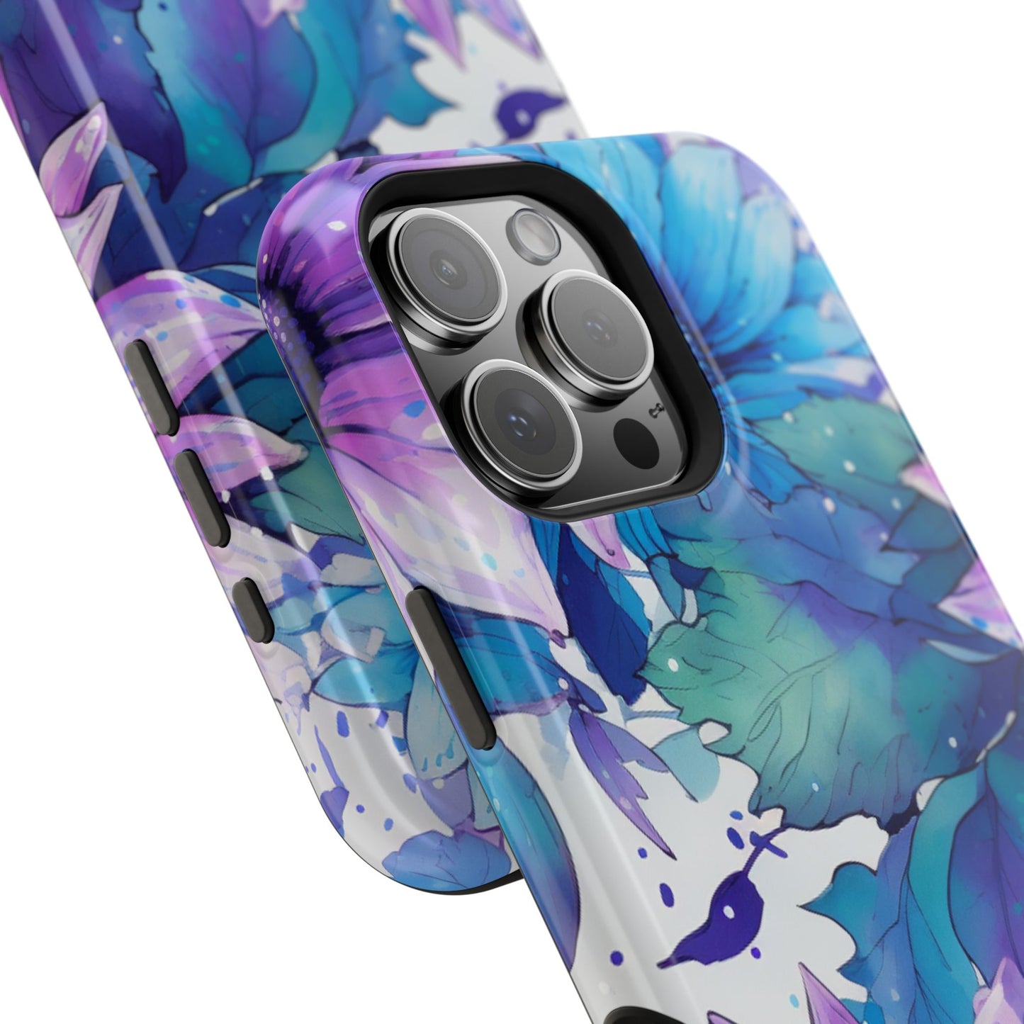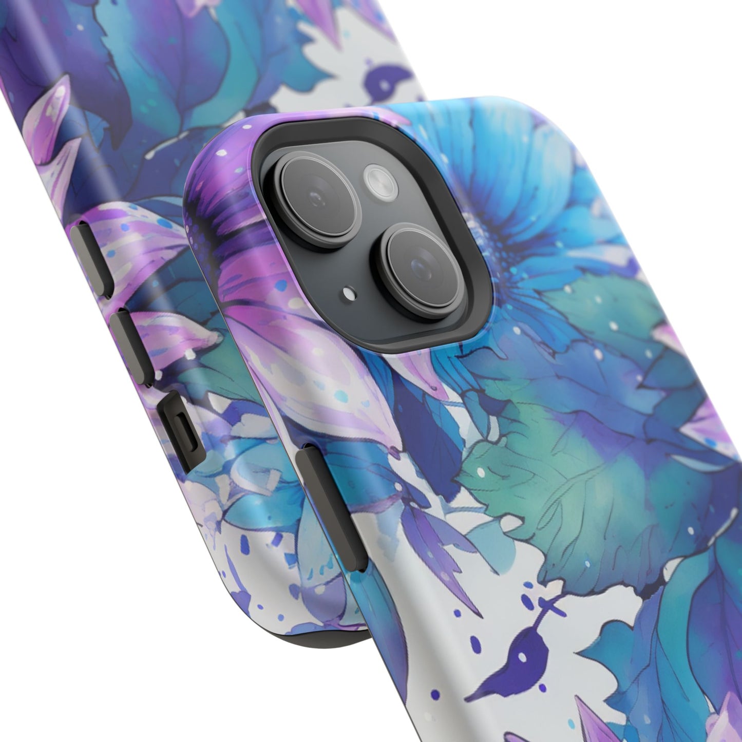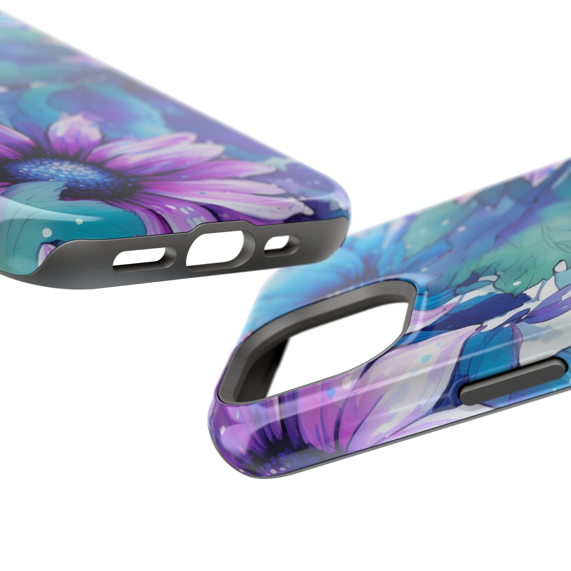 Purple & Teal Watercolor Floral MagSafe iPhone Case - Artistic Flower Design