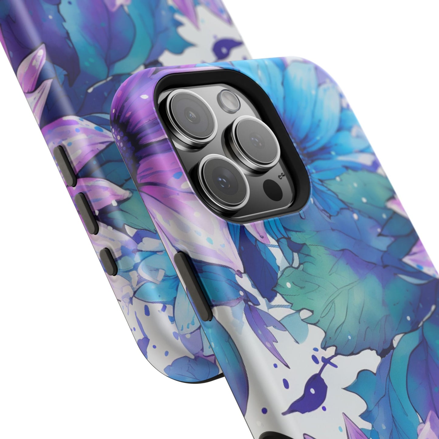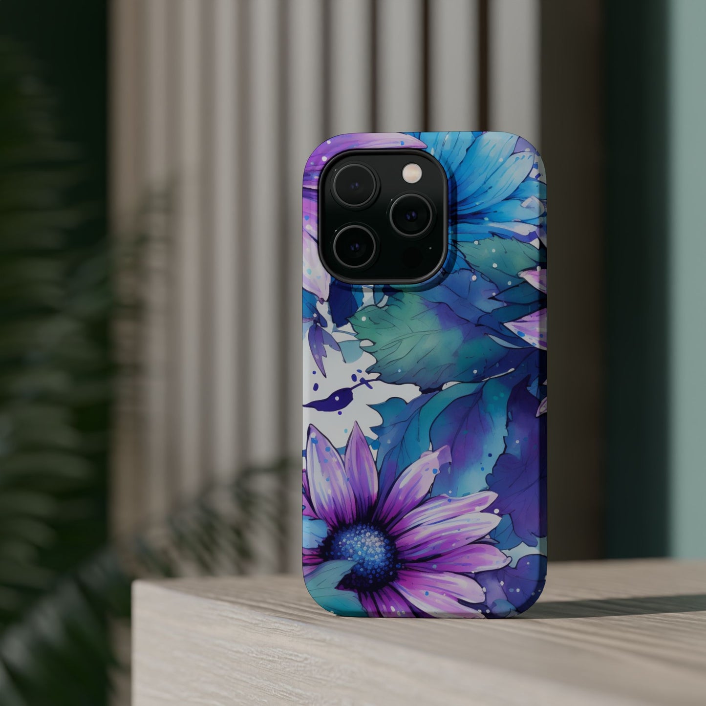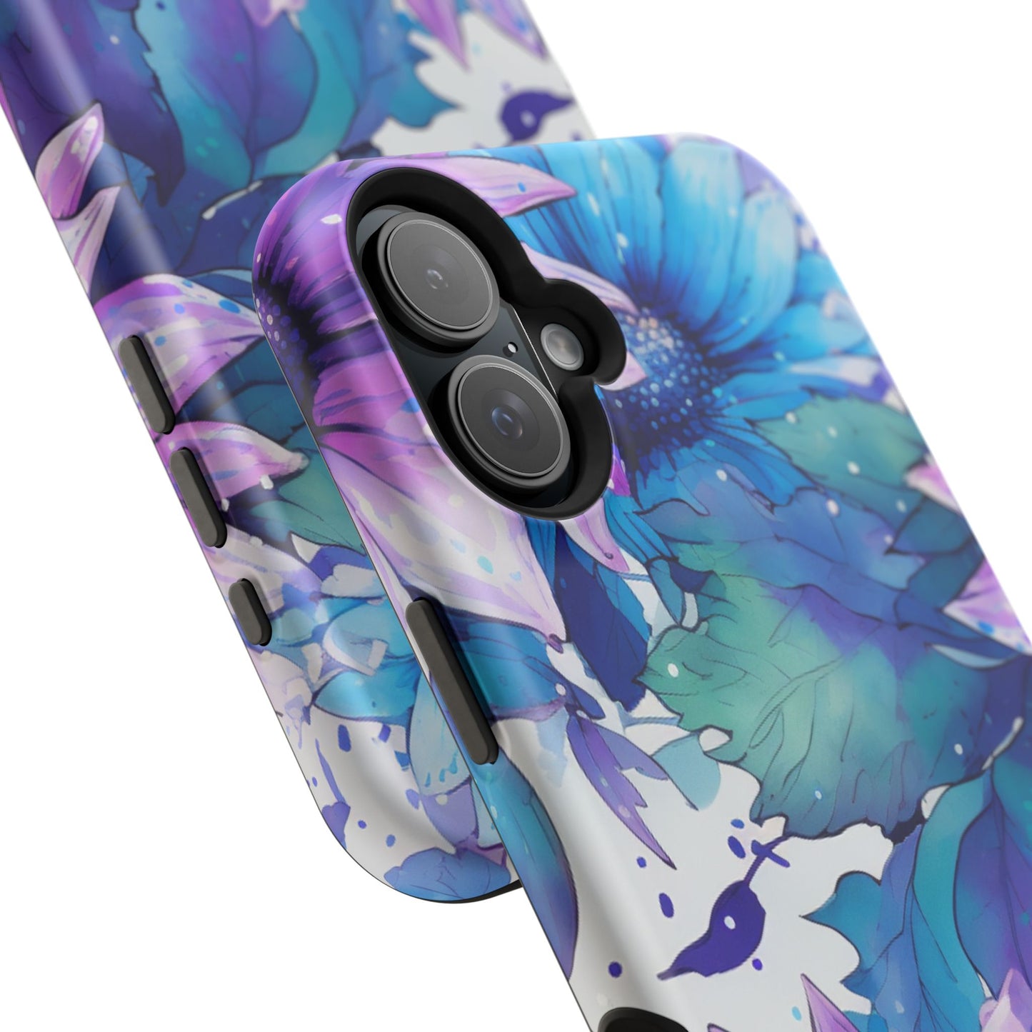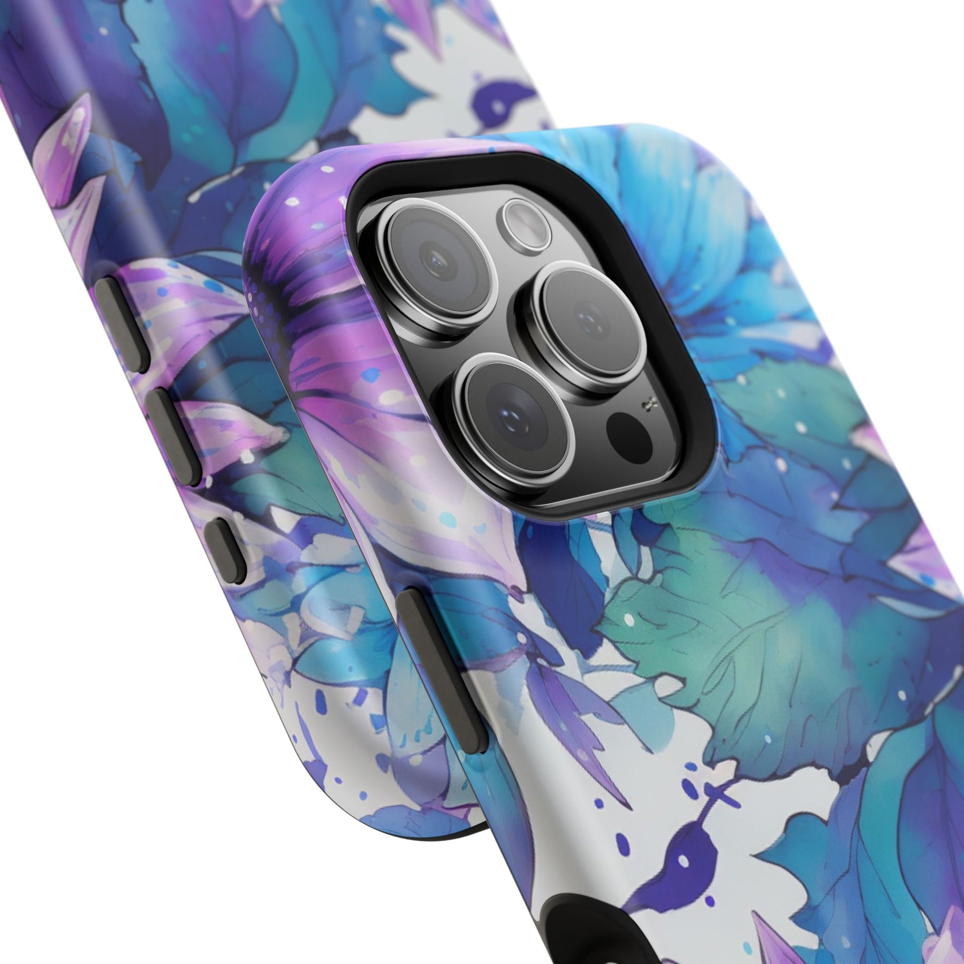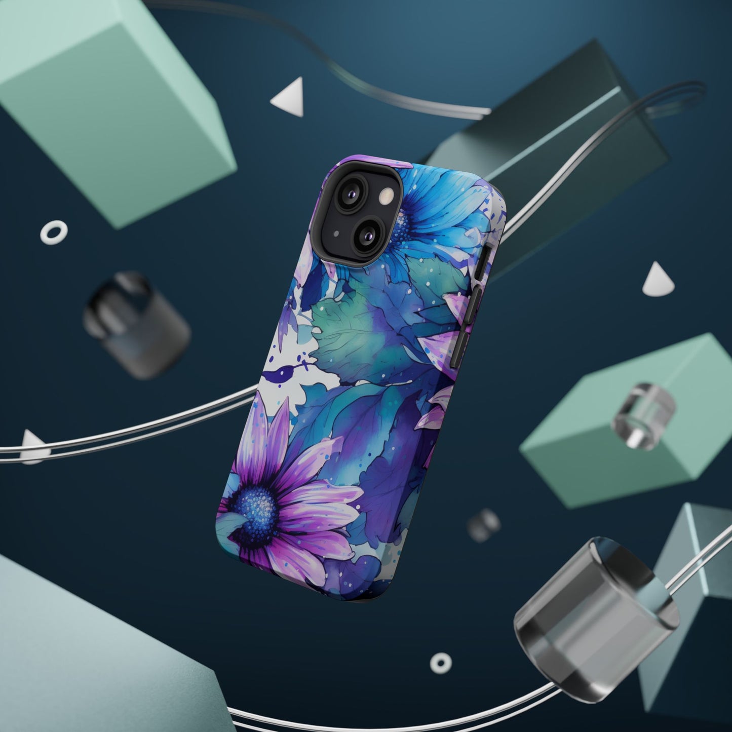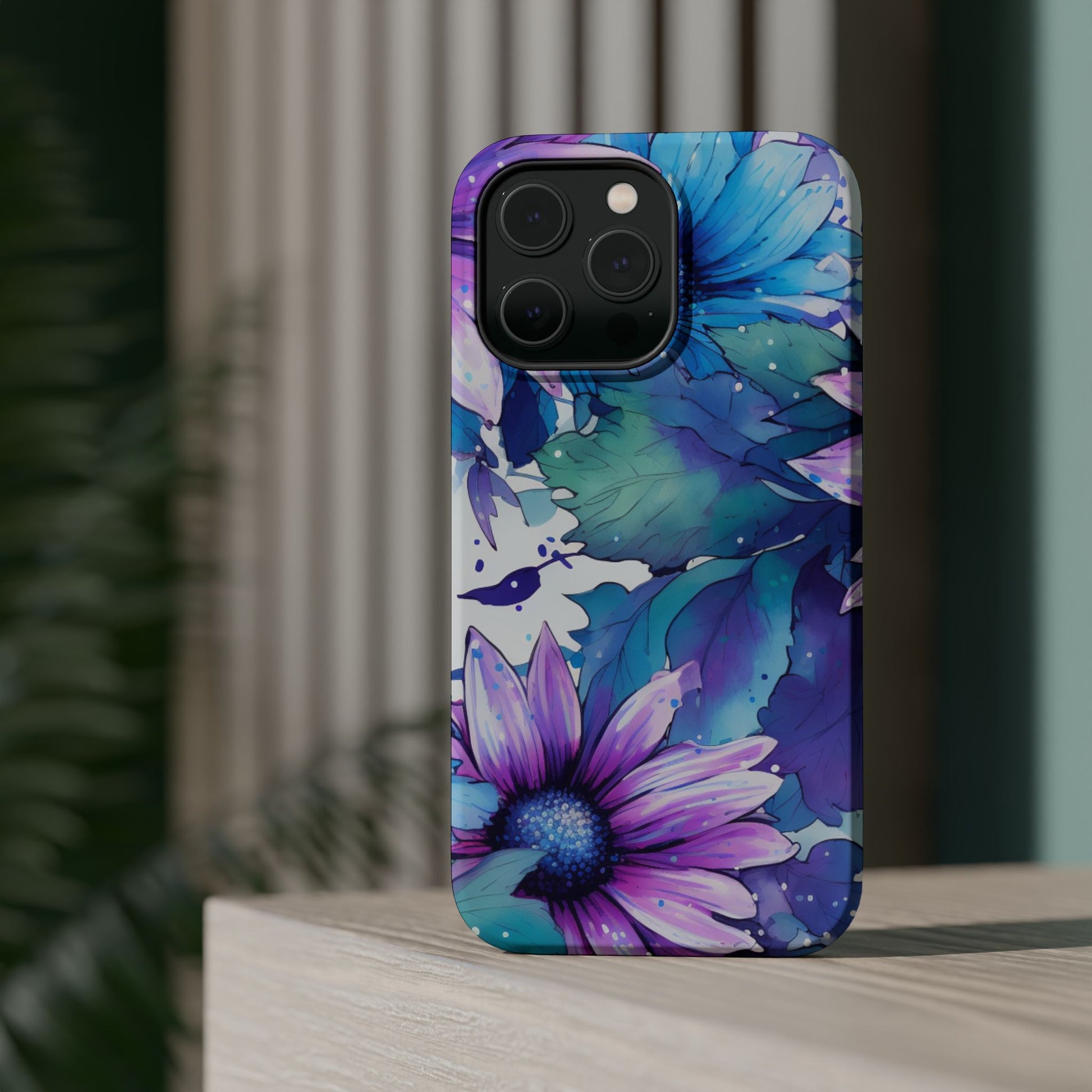Purple & Teal Watercolor Floral MagSafe iPhone Case - Artistic Flower Design