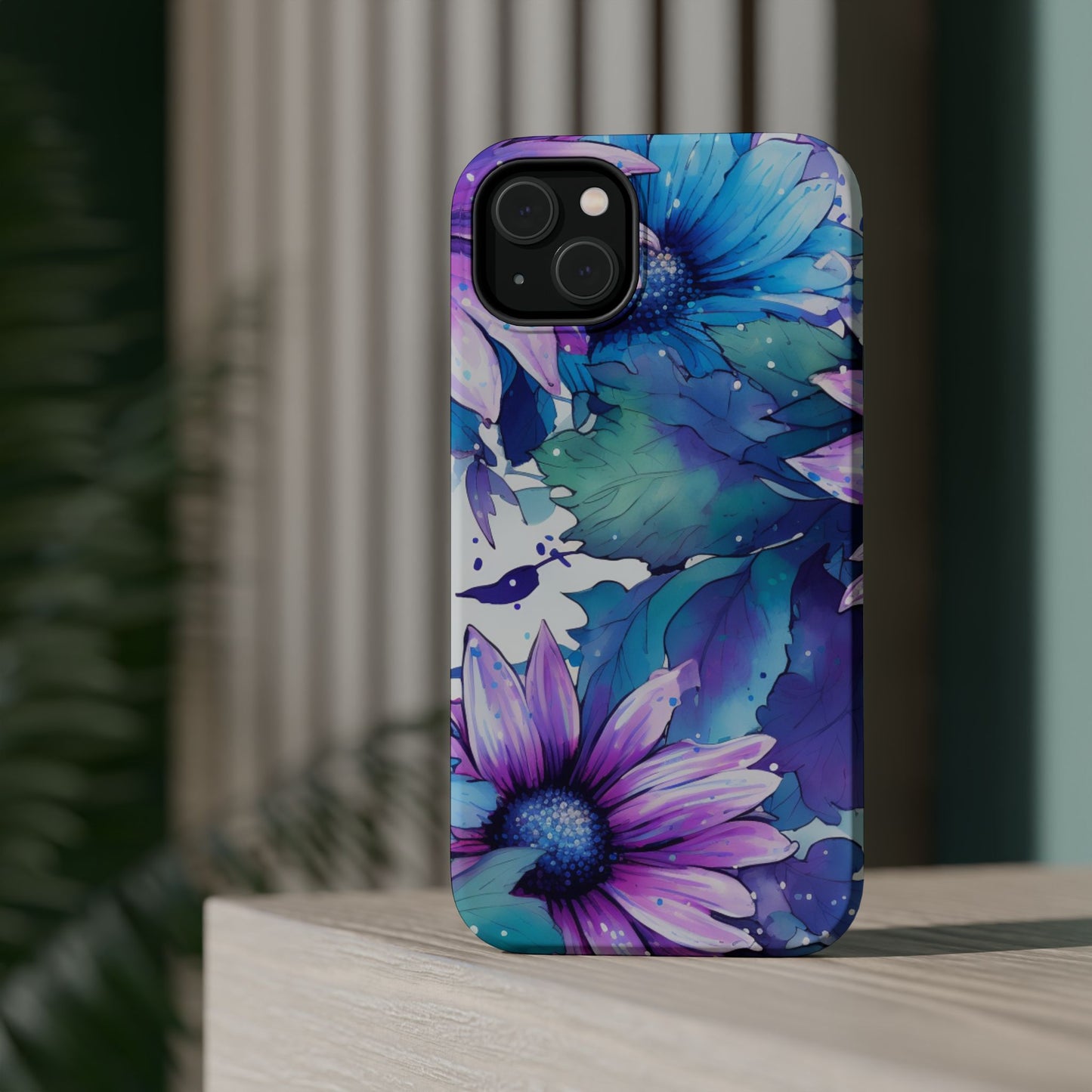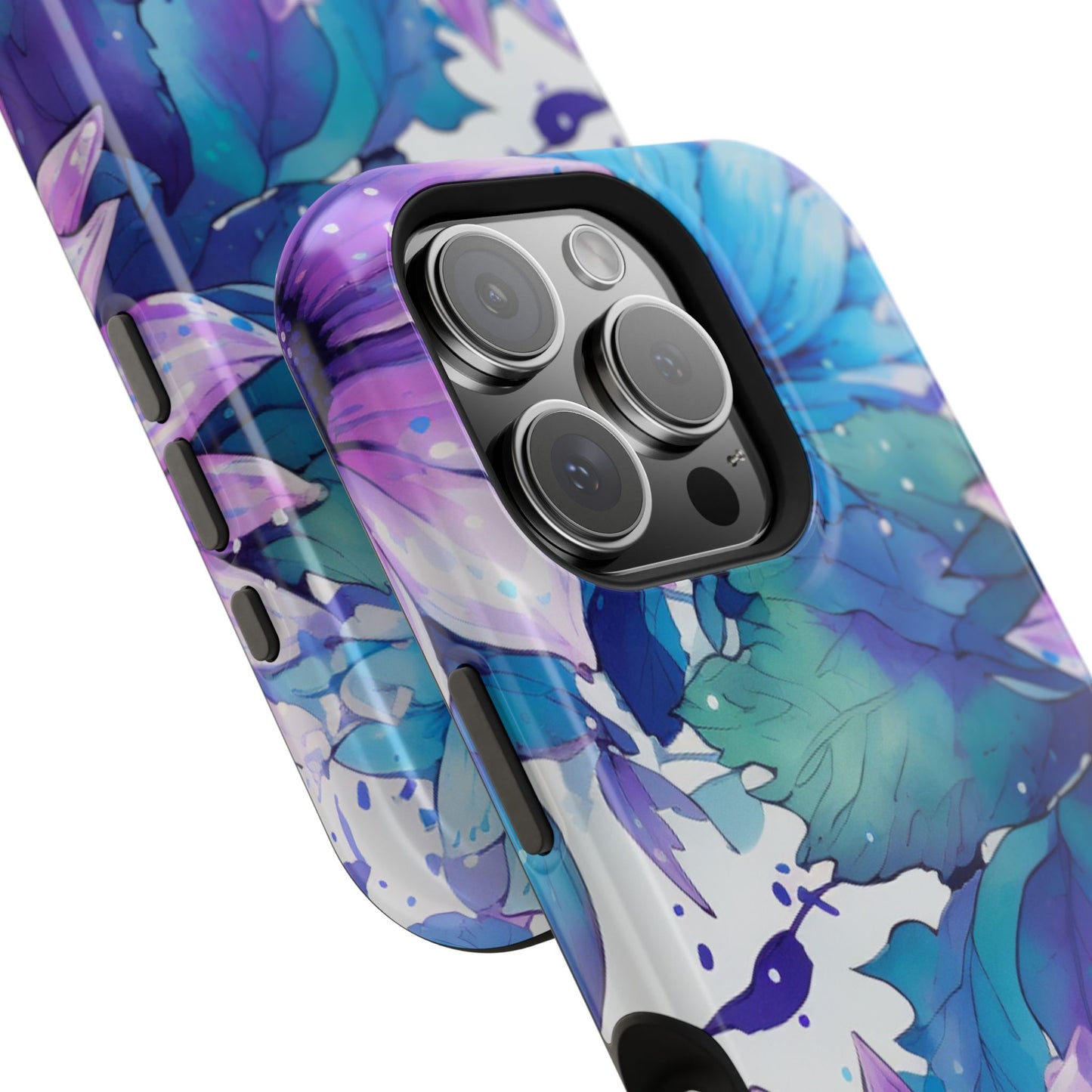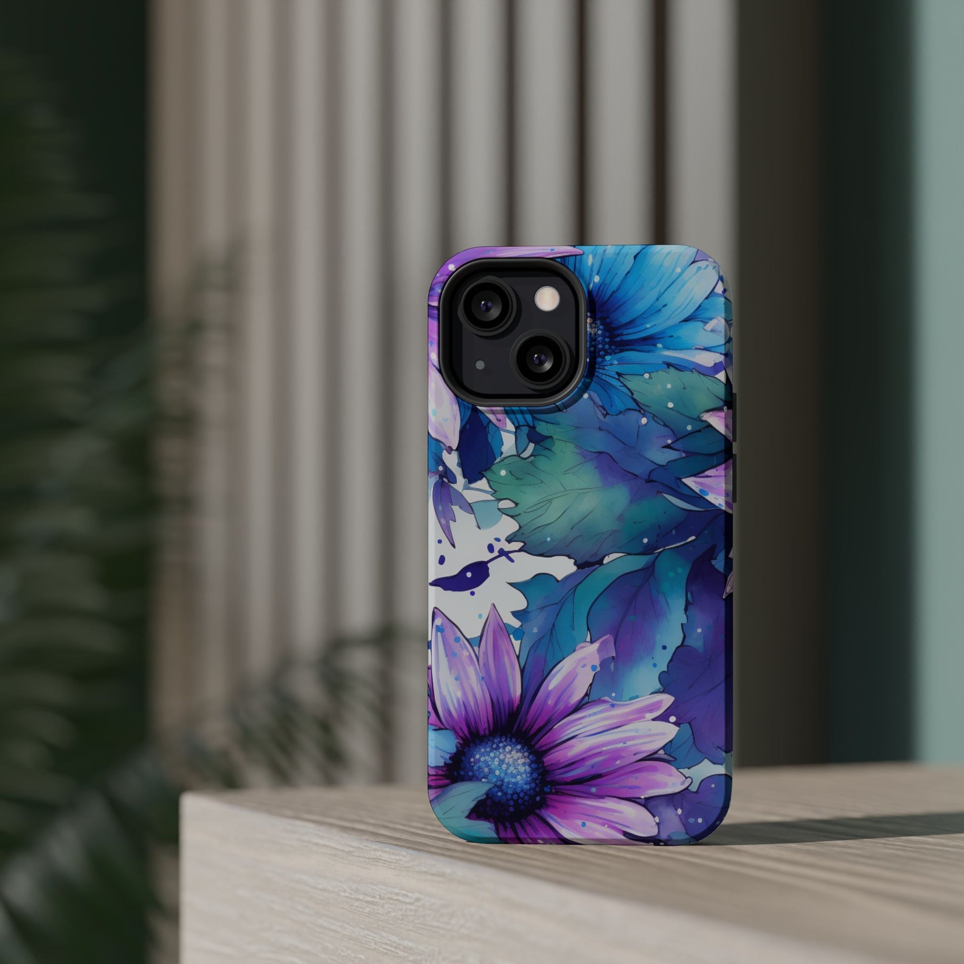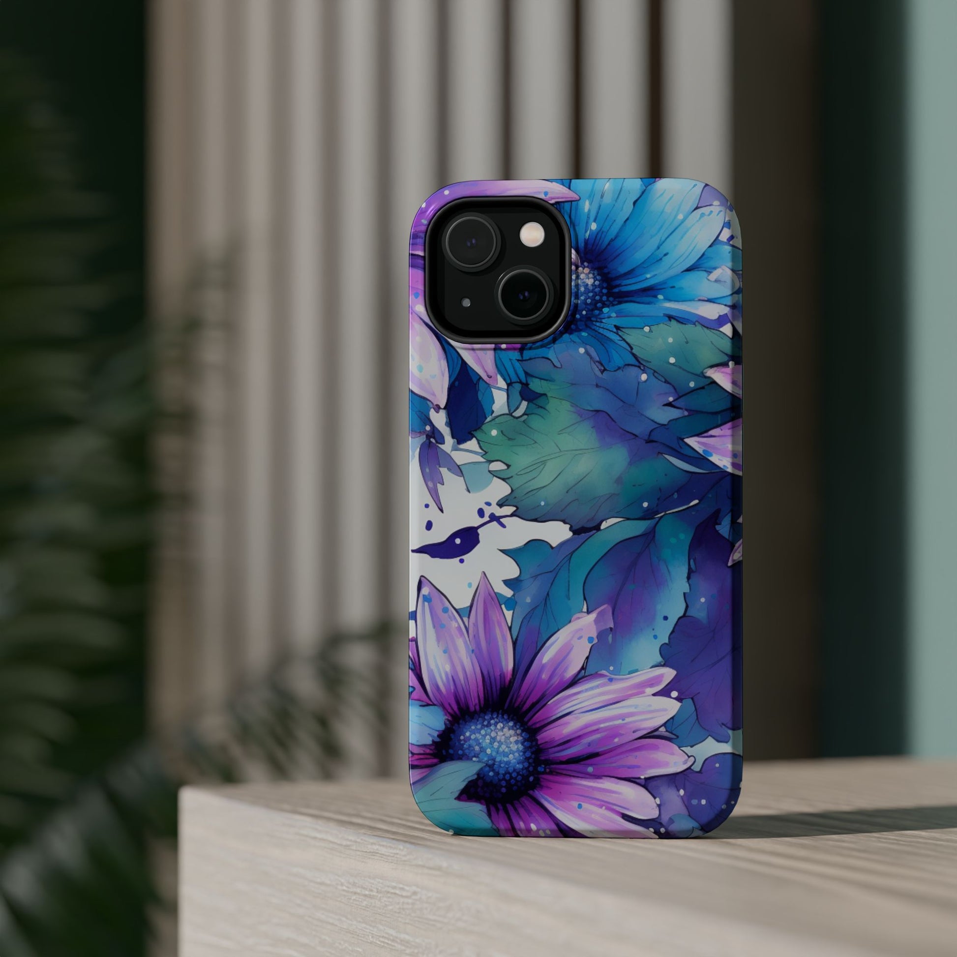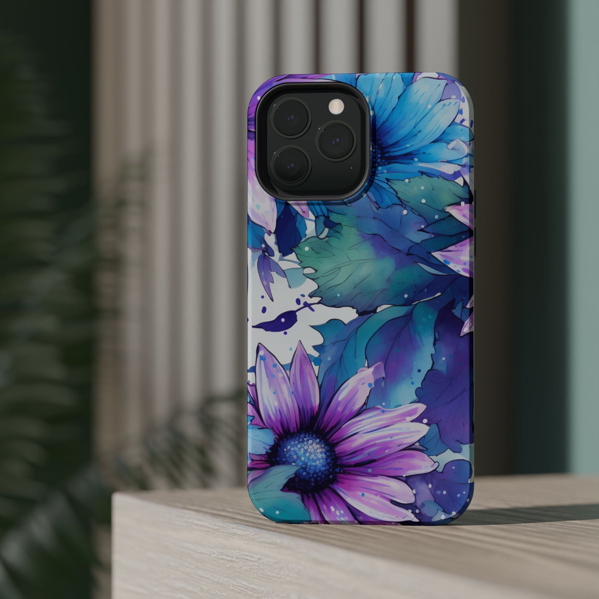 Purple & Teal Watercolor Floral MagSafe iPhone Case - Artistic Flower Design