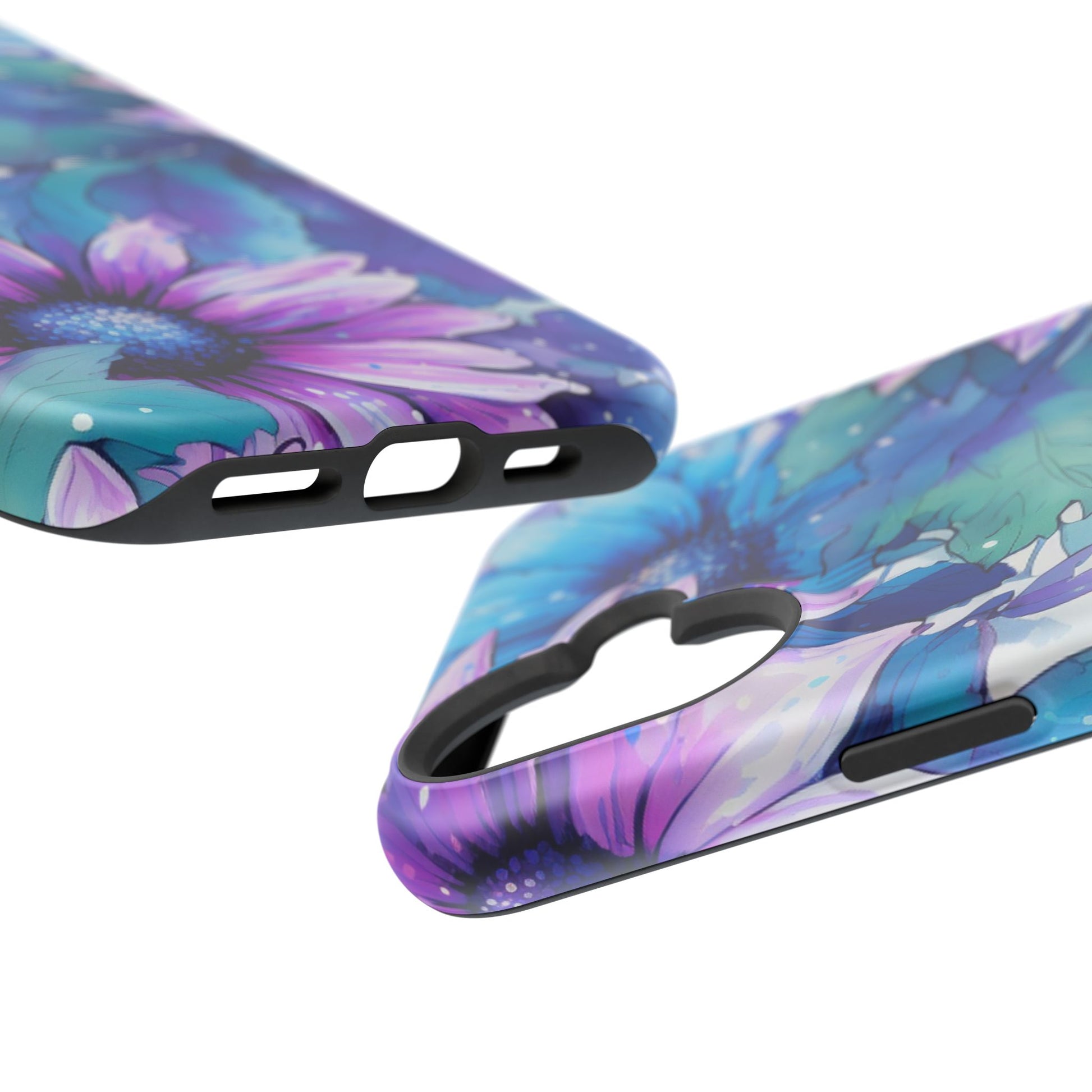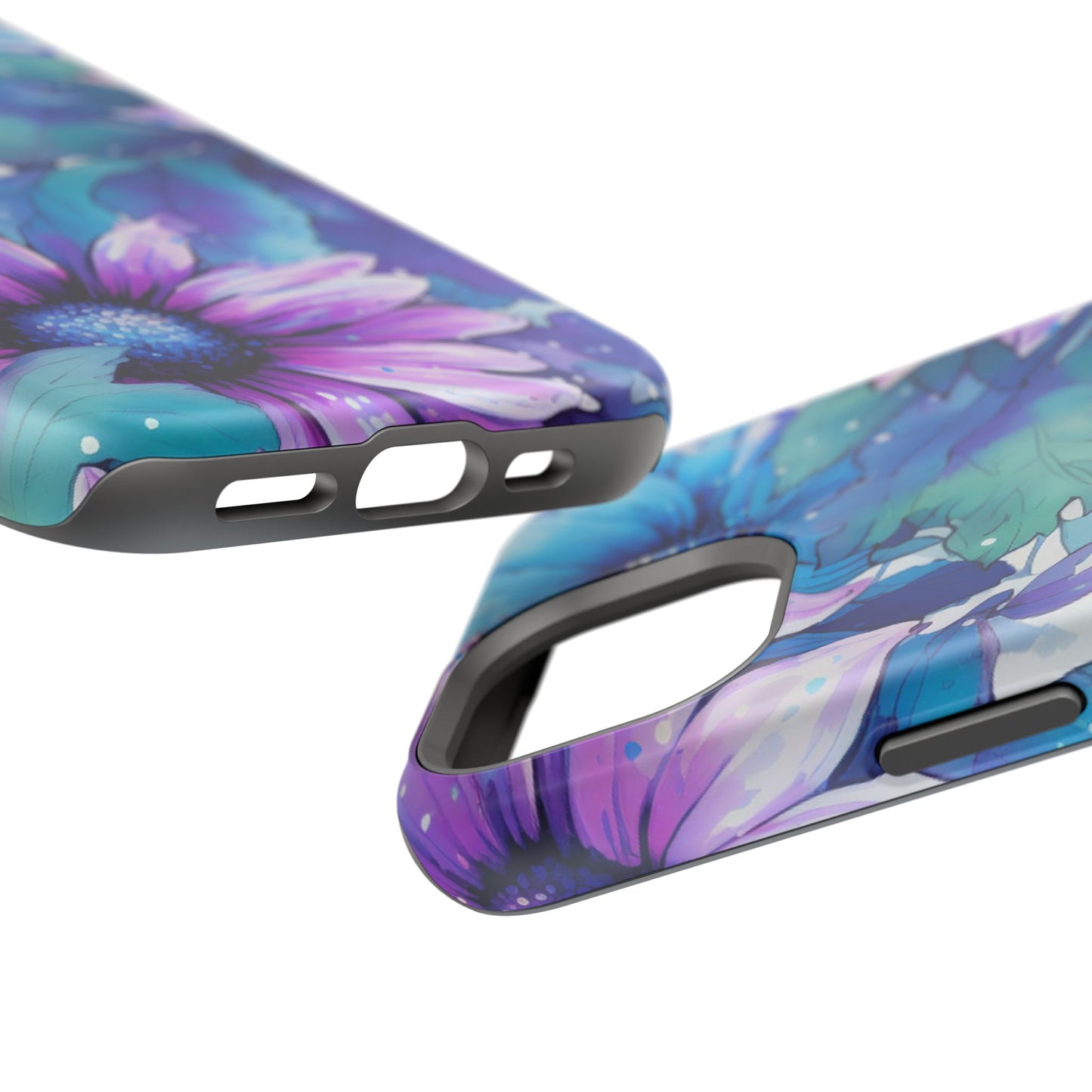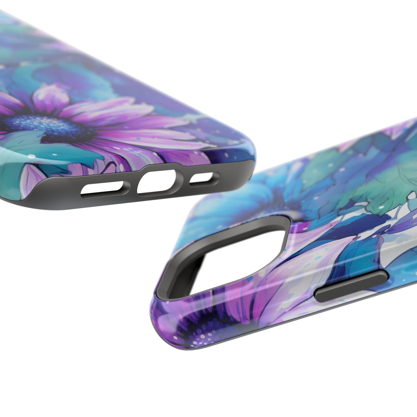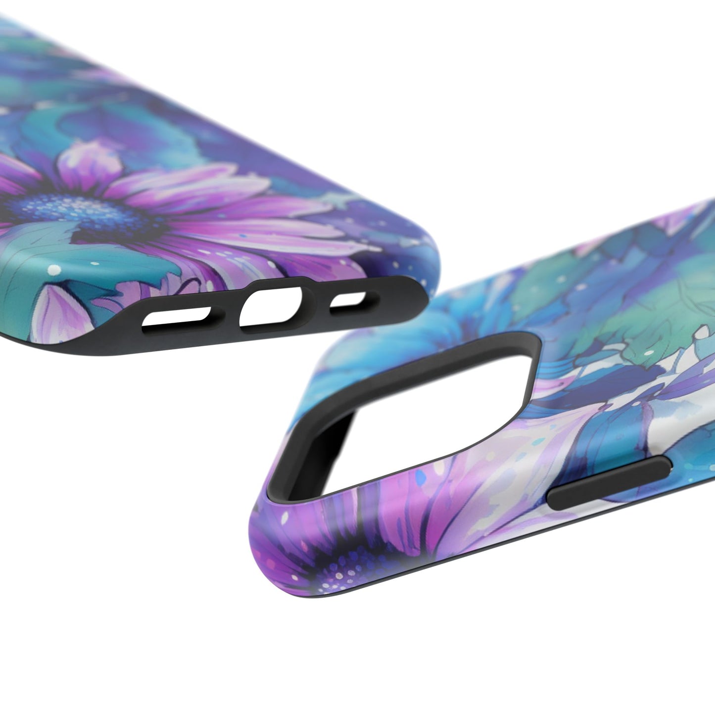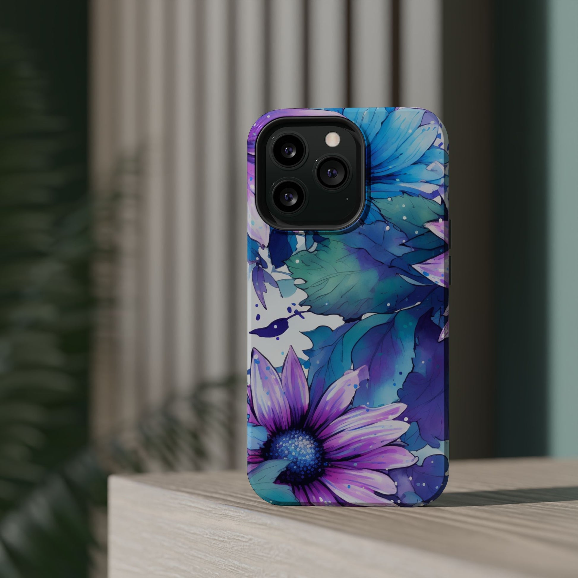 Purple & Teal Watercolor Floral MagSafe iPhone Case - Artistic Flower Design