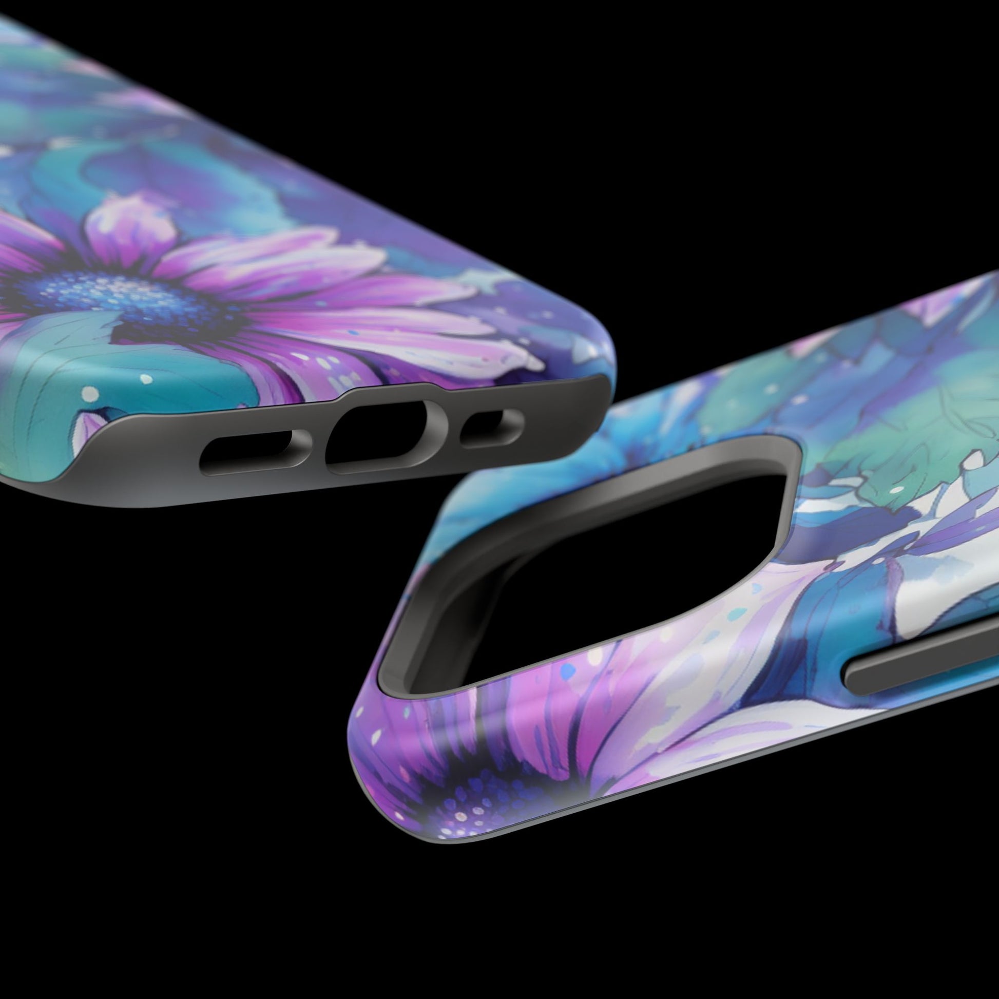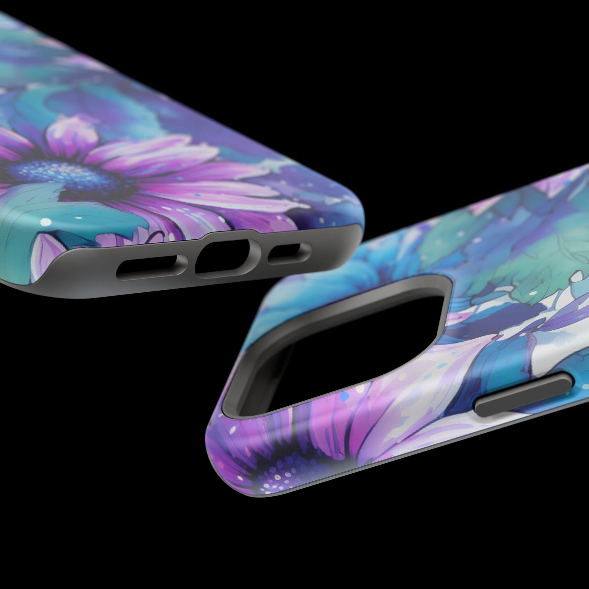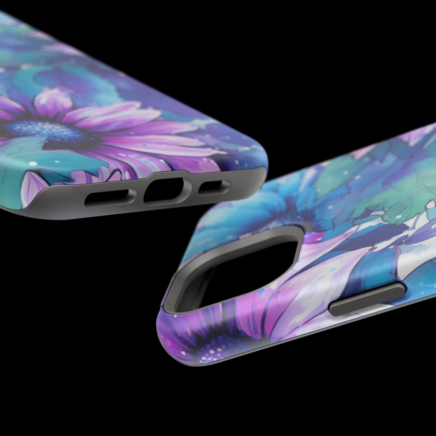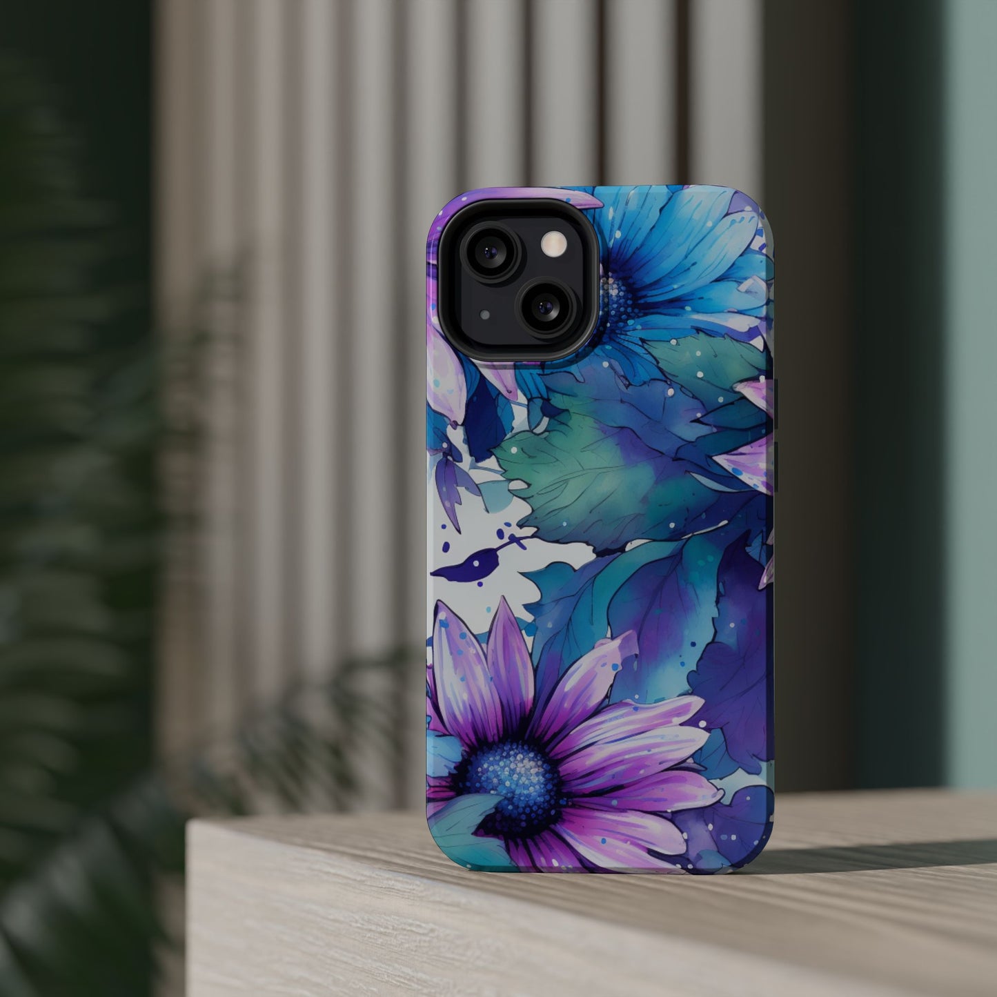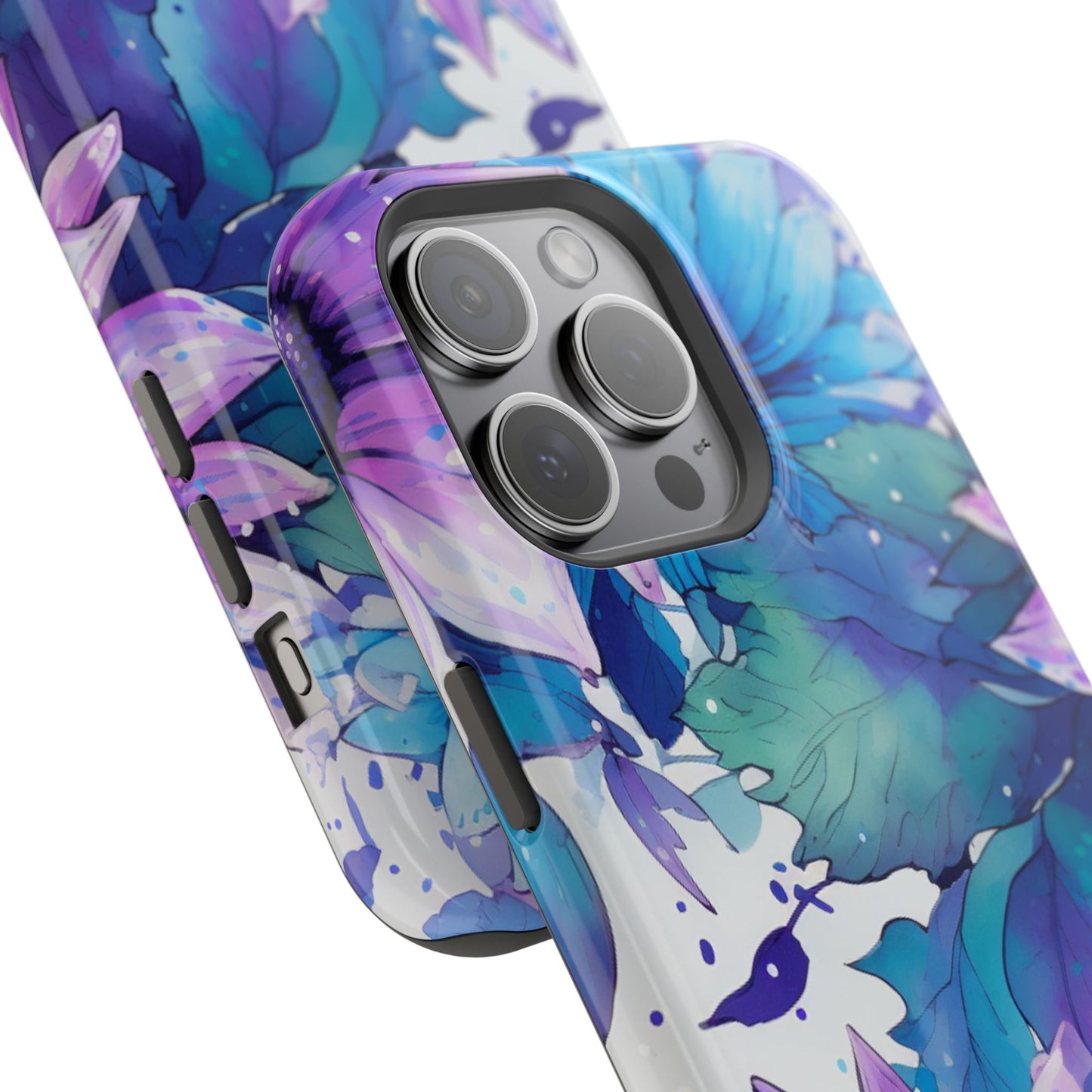 Purple & Teal Watercolor Floral MagSafe iPhone Case - Artistic Flower Design