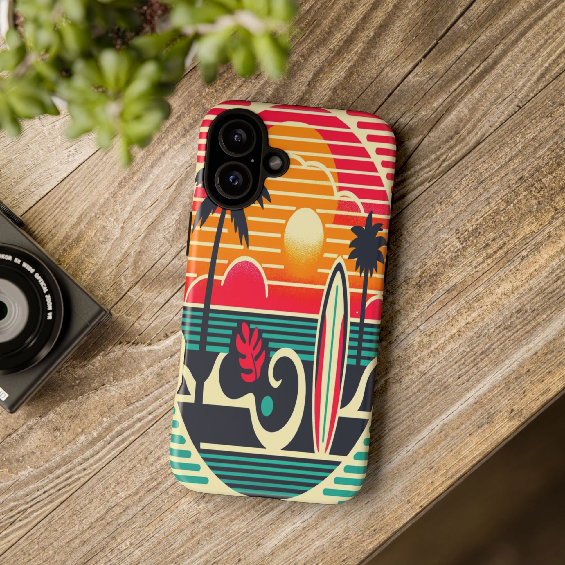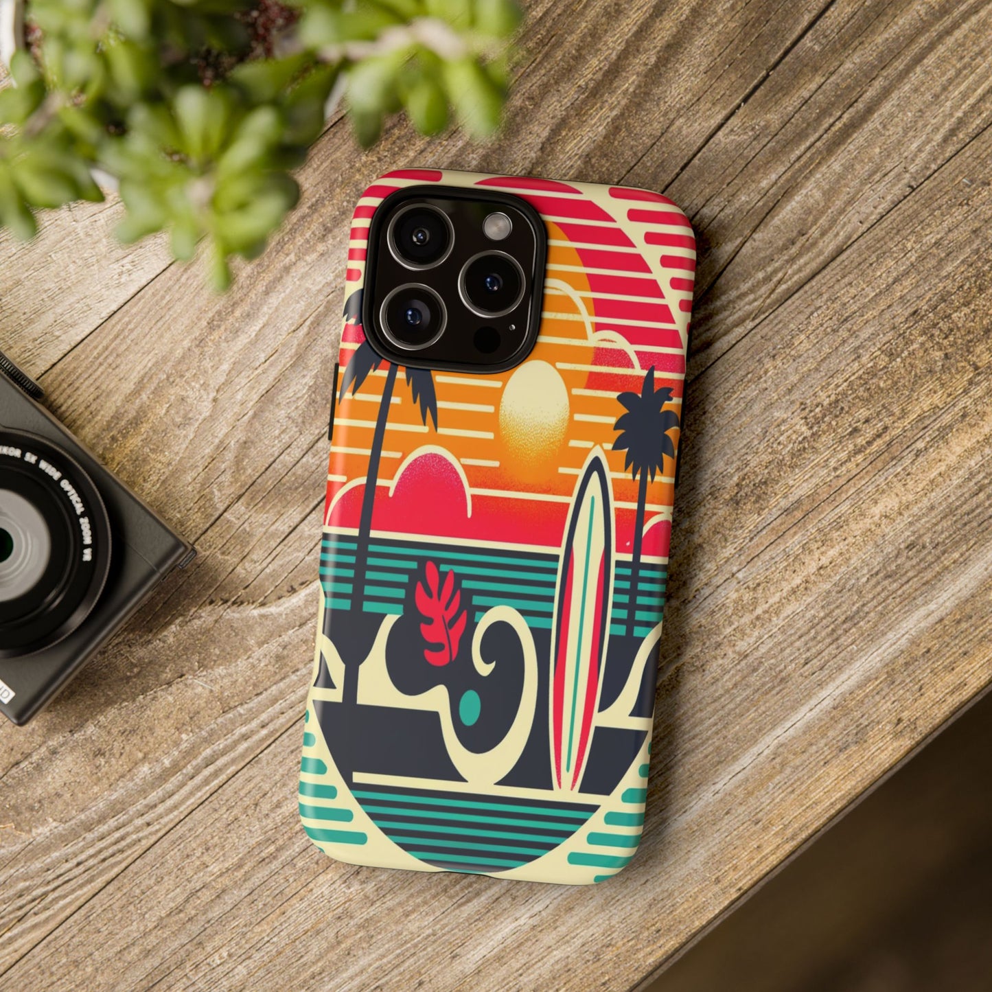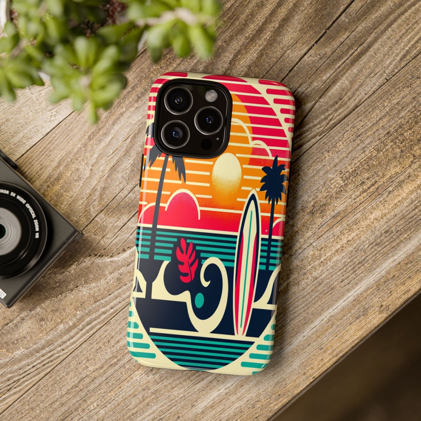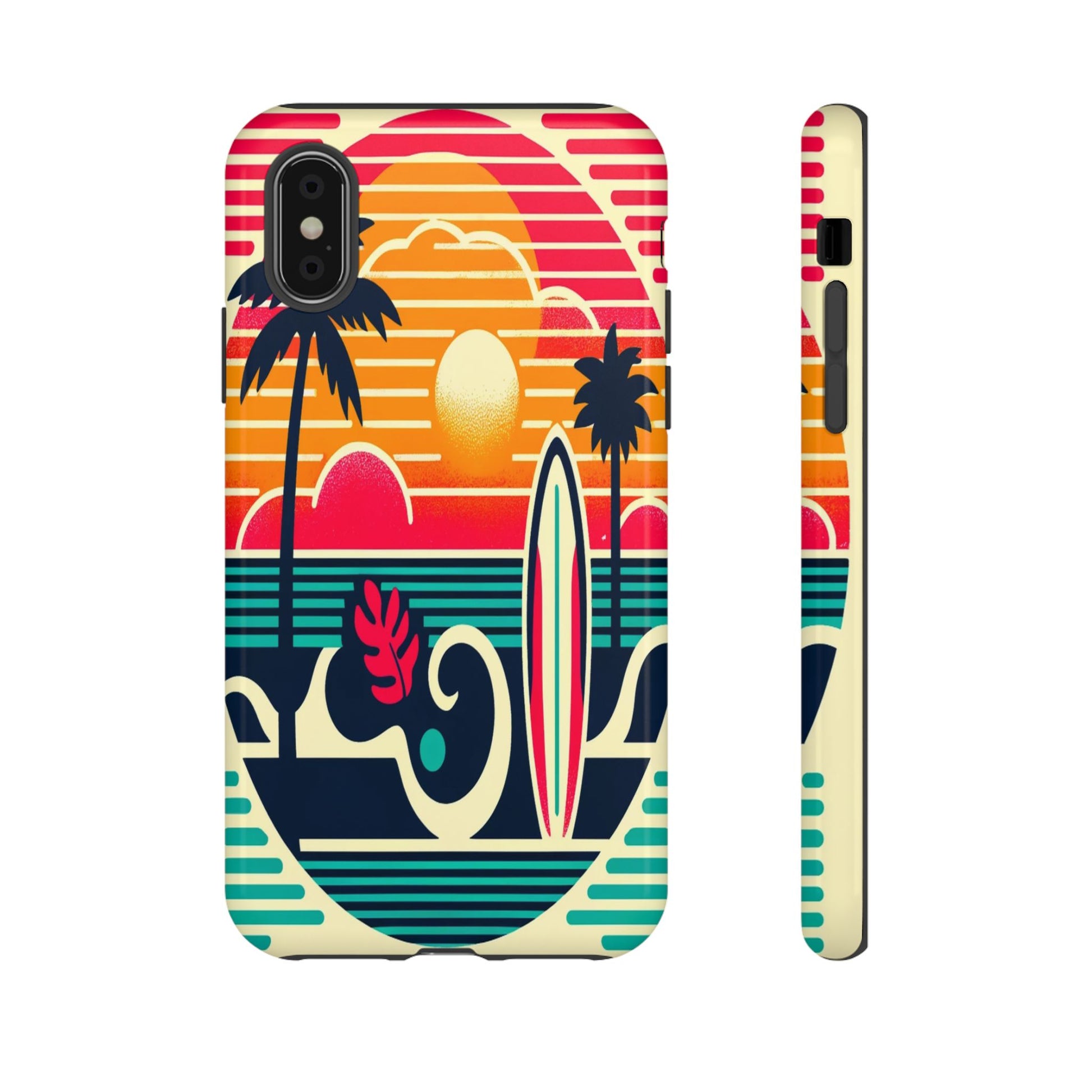 Retro Beach Vibes iPhone Case - Sunset Surfing Protective Cover