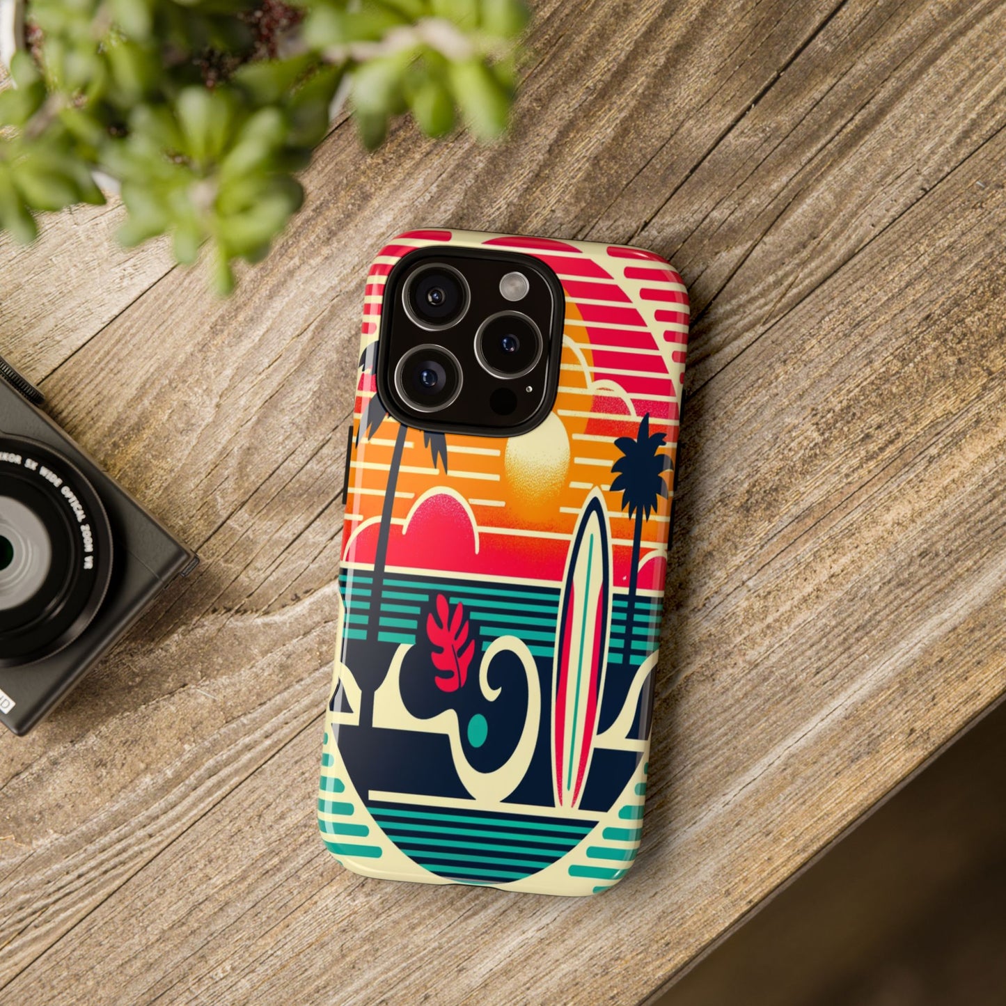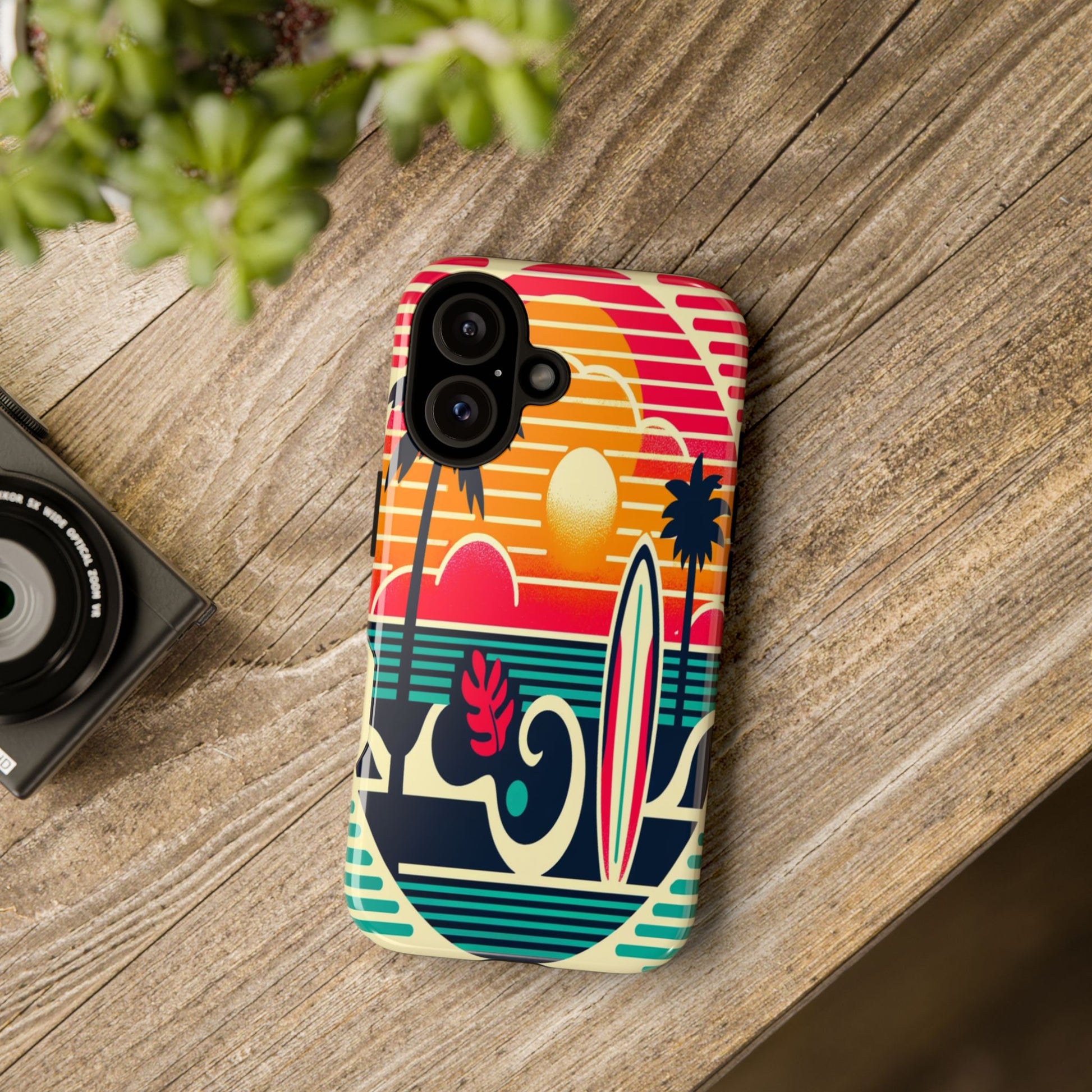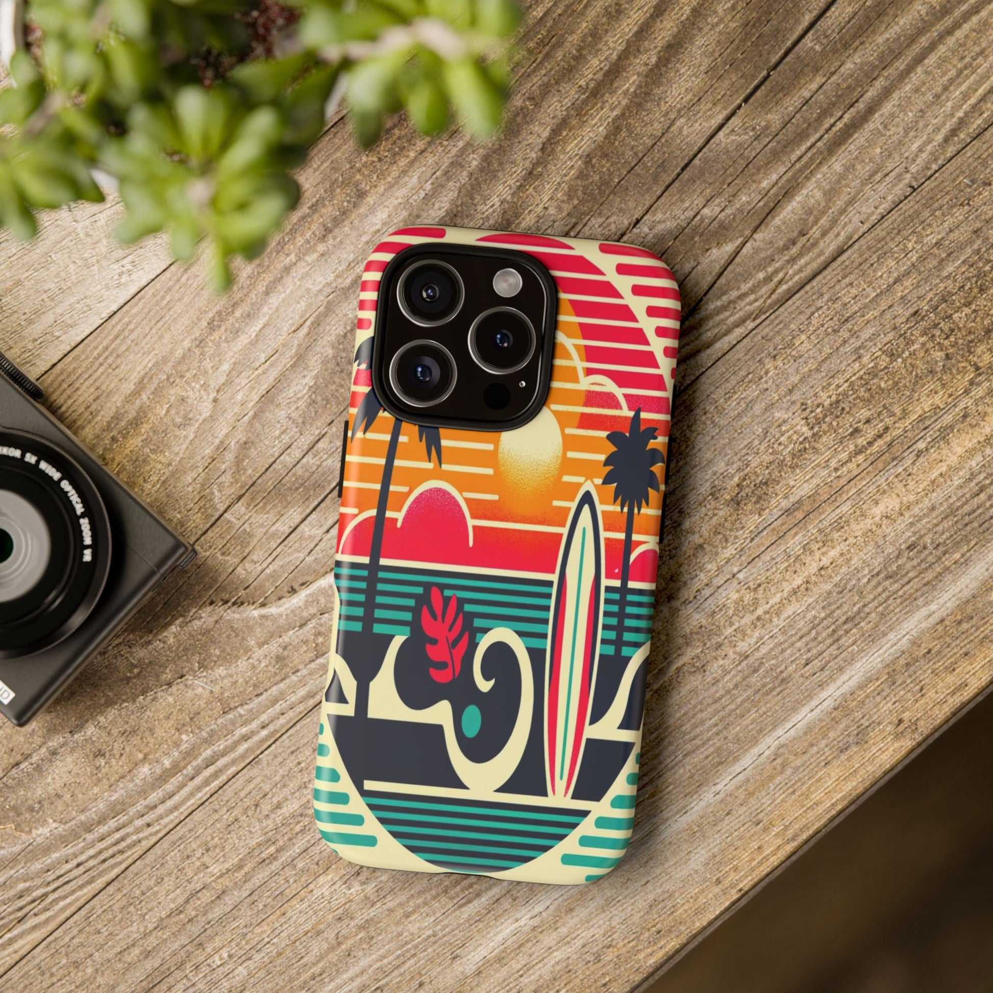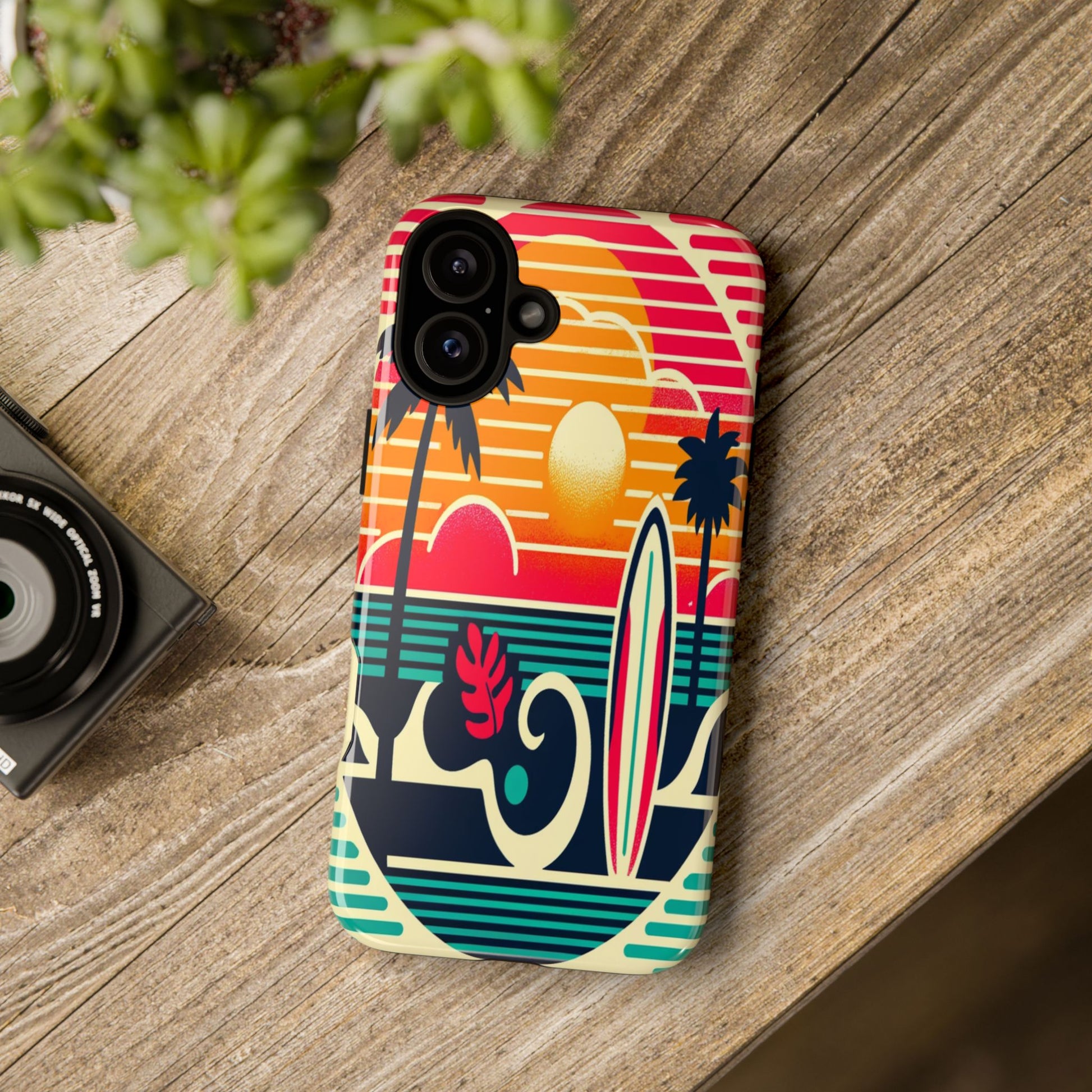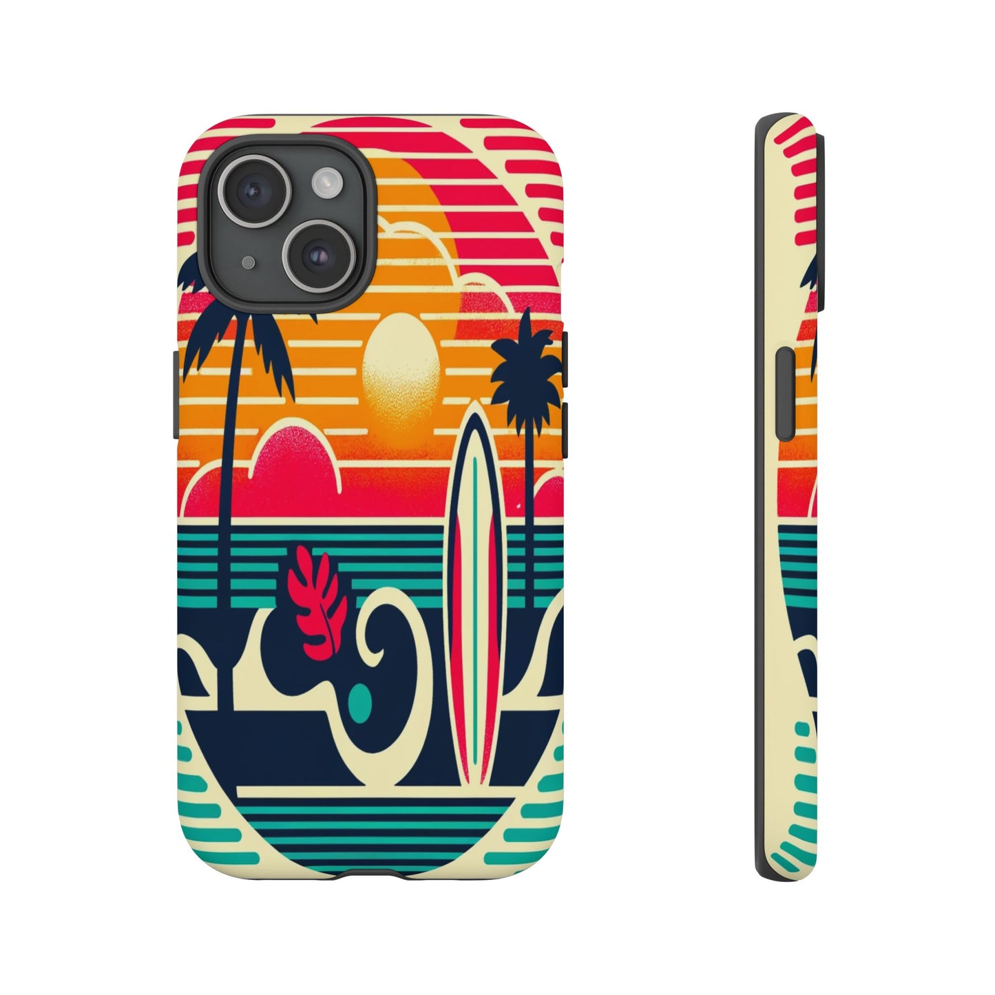 Retro Beach Vibes iPhone Case - Sunset Surfing Protective Cover