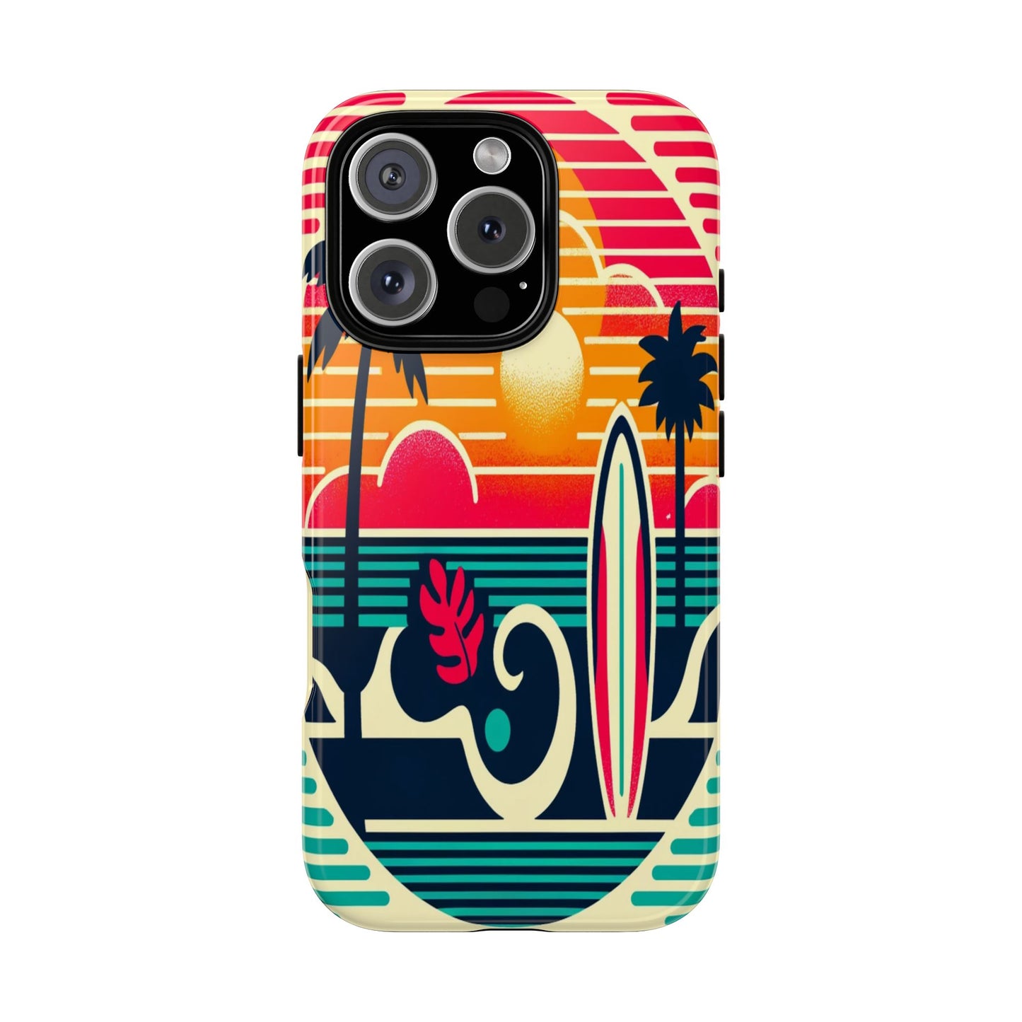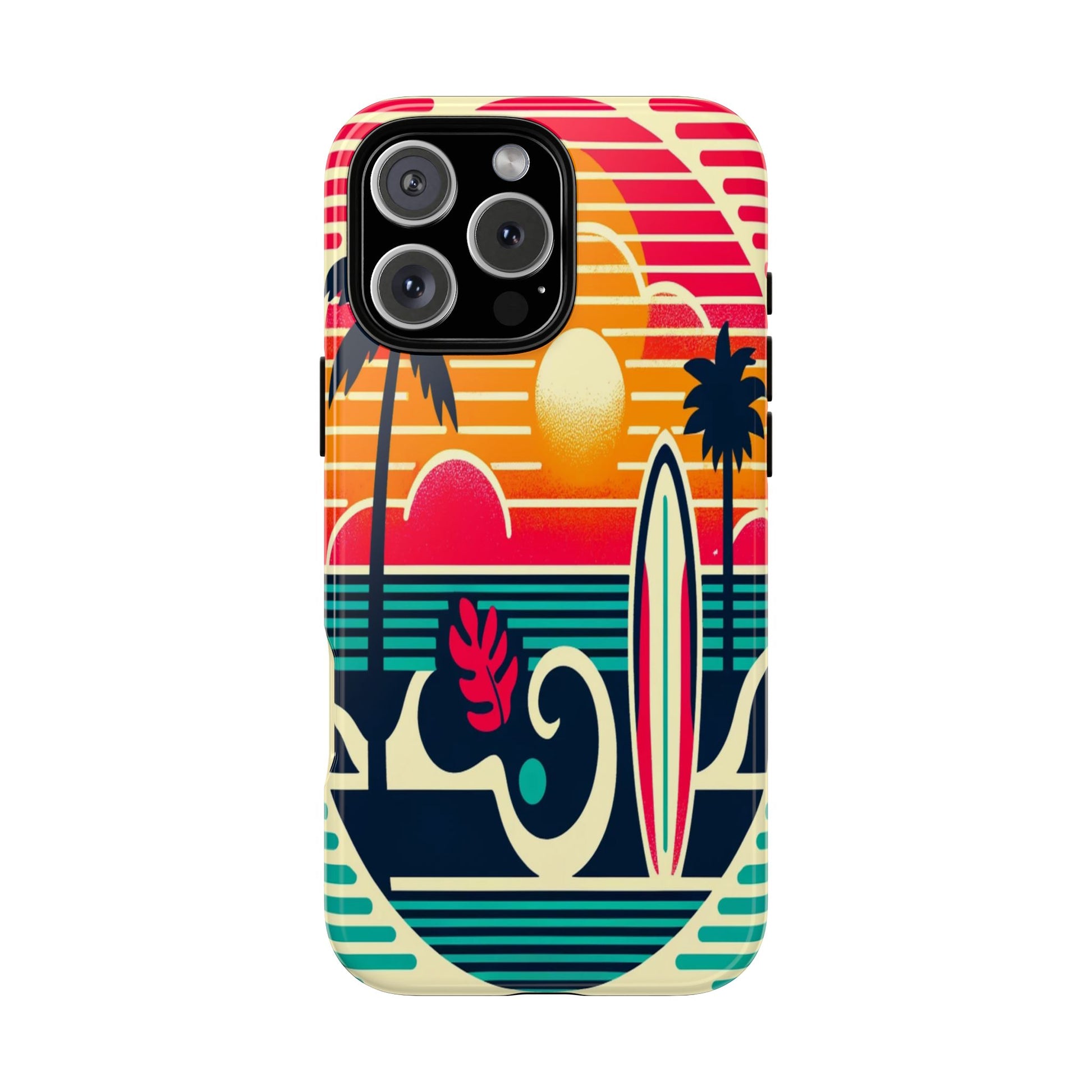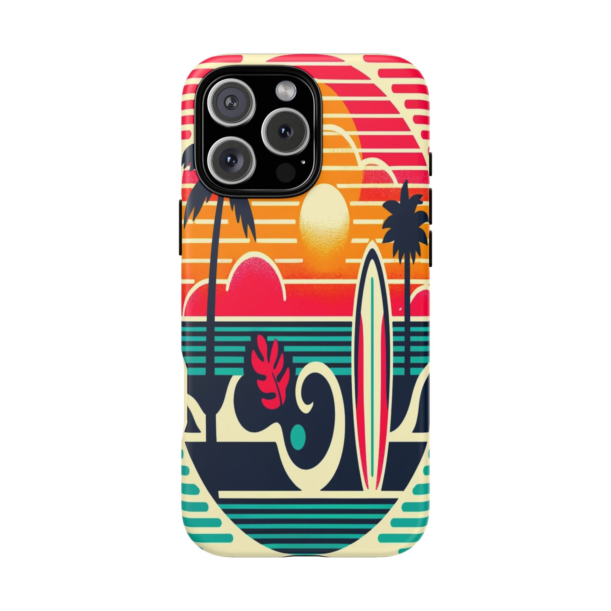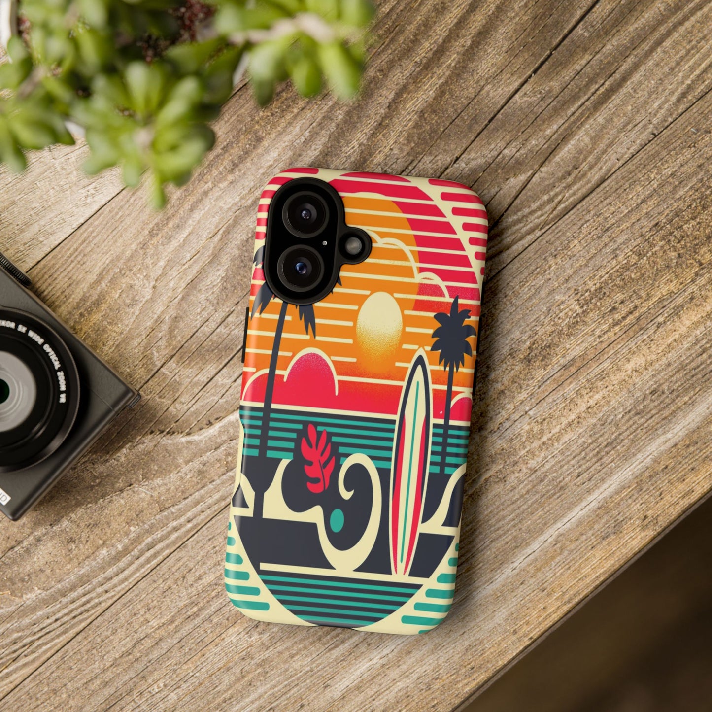 Retro Beach Vibes iPhone Case - Sunset Surfing Protective Cover