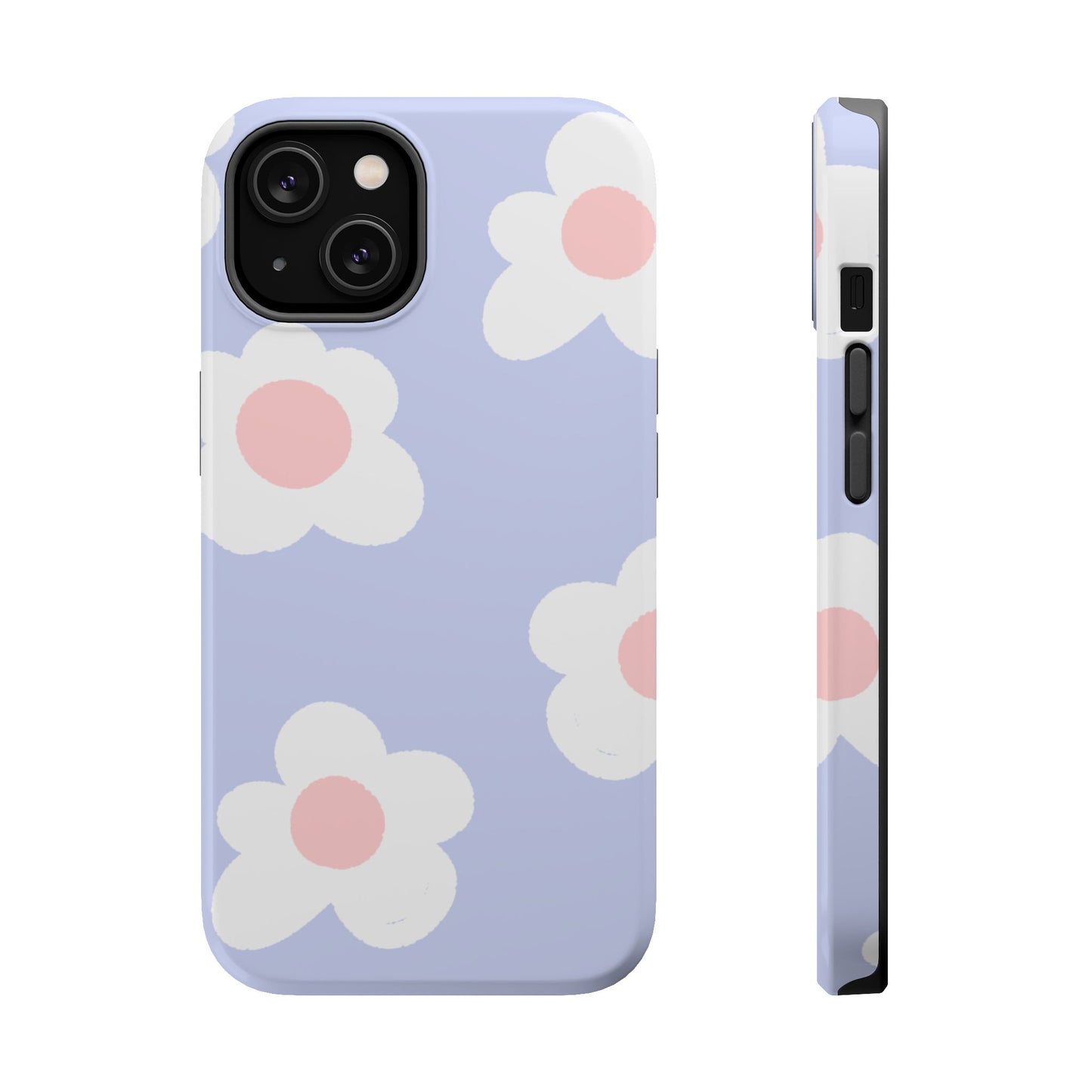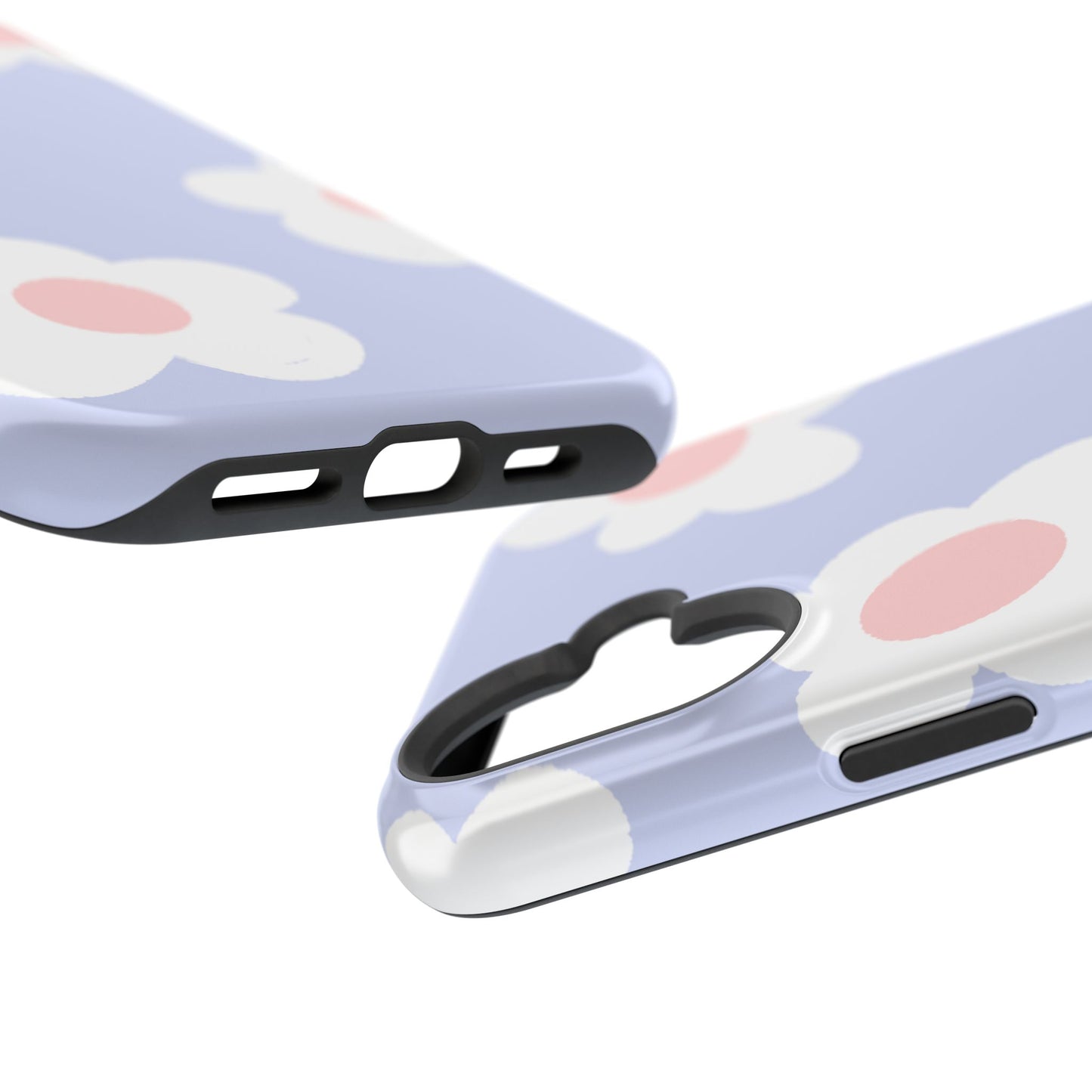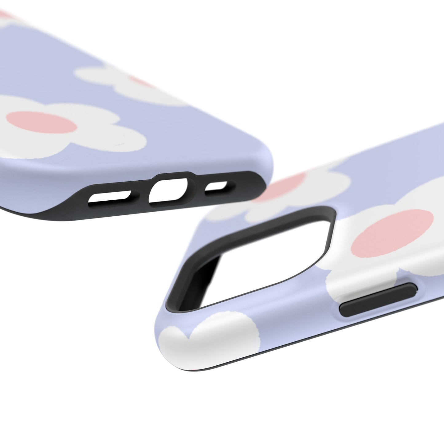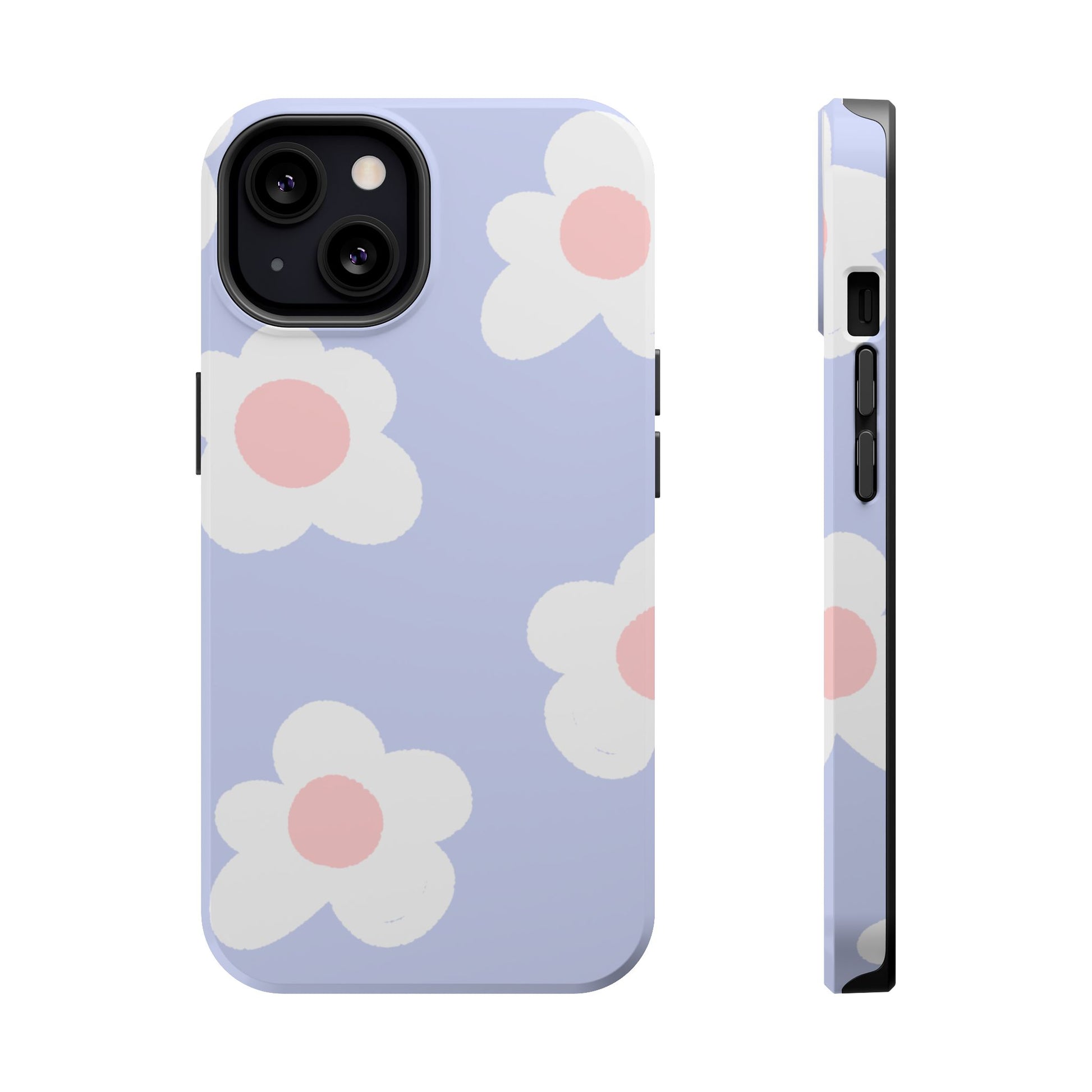 Add a playful retro vibe to your phone with our Retro Daisy Pastel Tough MagSafe iPhone Case. Featuring a charming pattern of hand-drawn white daisies with soft pink centers on a periwinkle blue background, this case evokes a sweet, nostalgic feel. Perfect for lovers of vintage-inspired design, it offers reliable protection with a dual-layer structure that guards against drops and bumps. The smooth matte finish enhances the daisy design while providing a comfortable, non-slip grip.