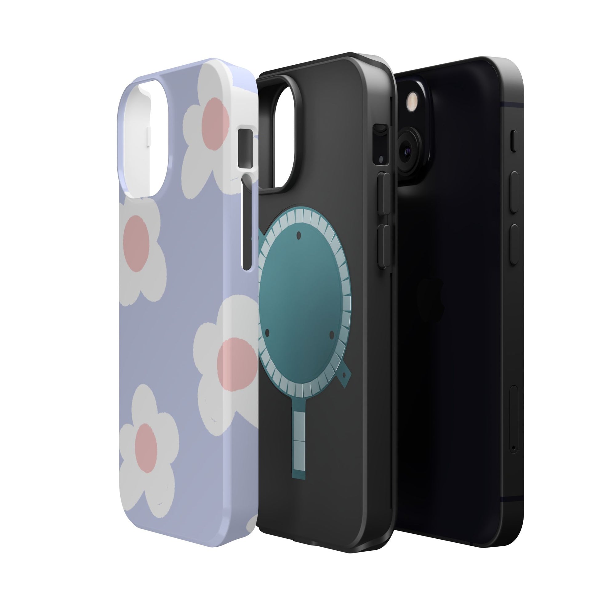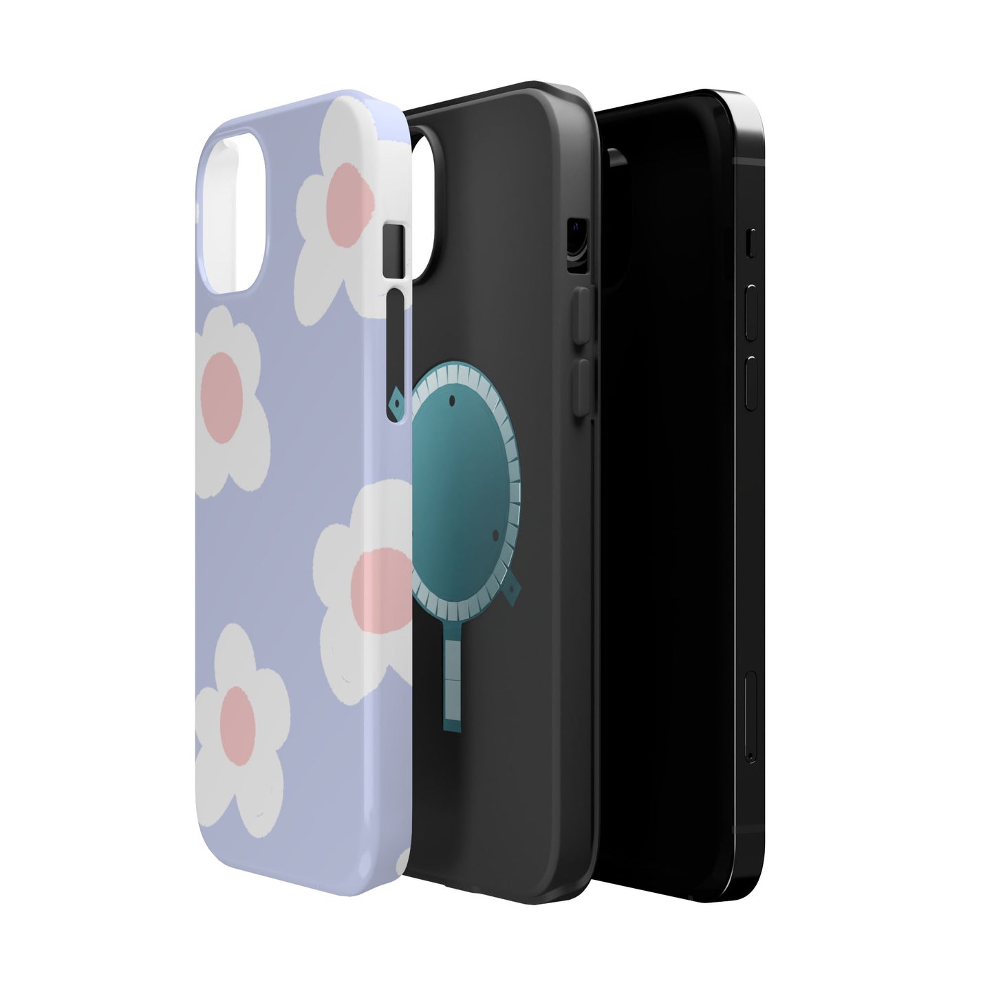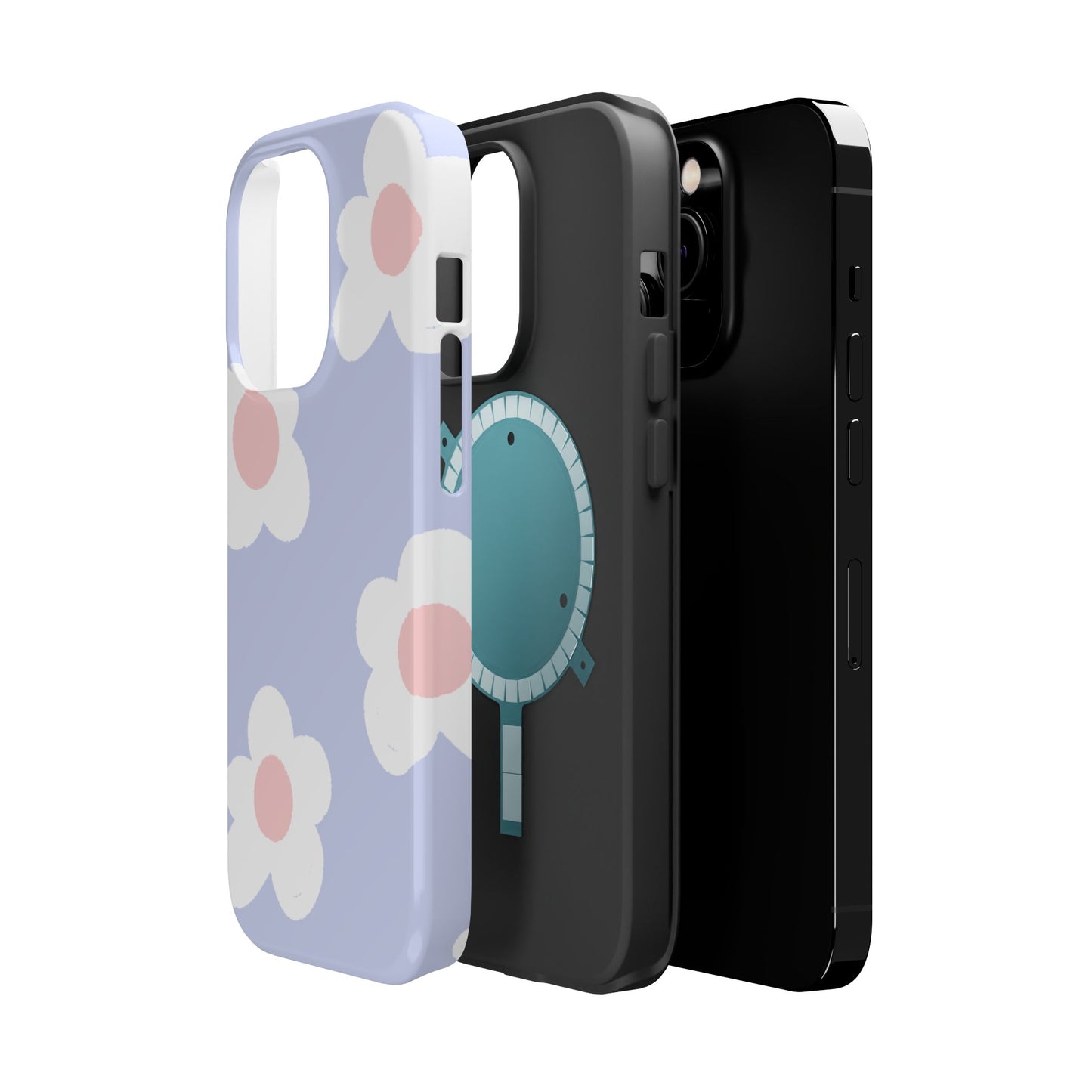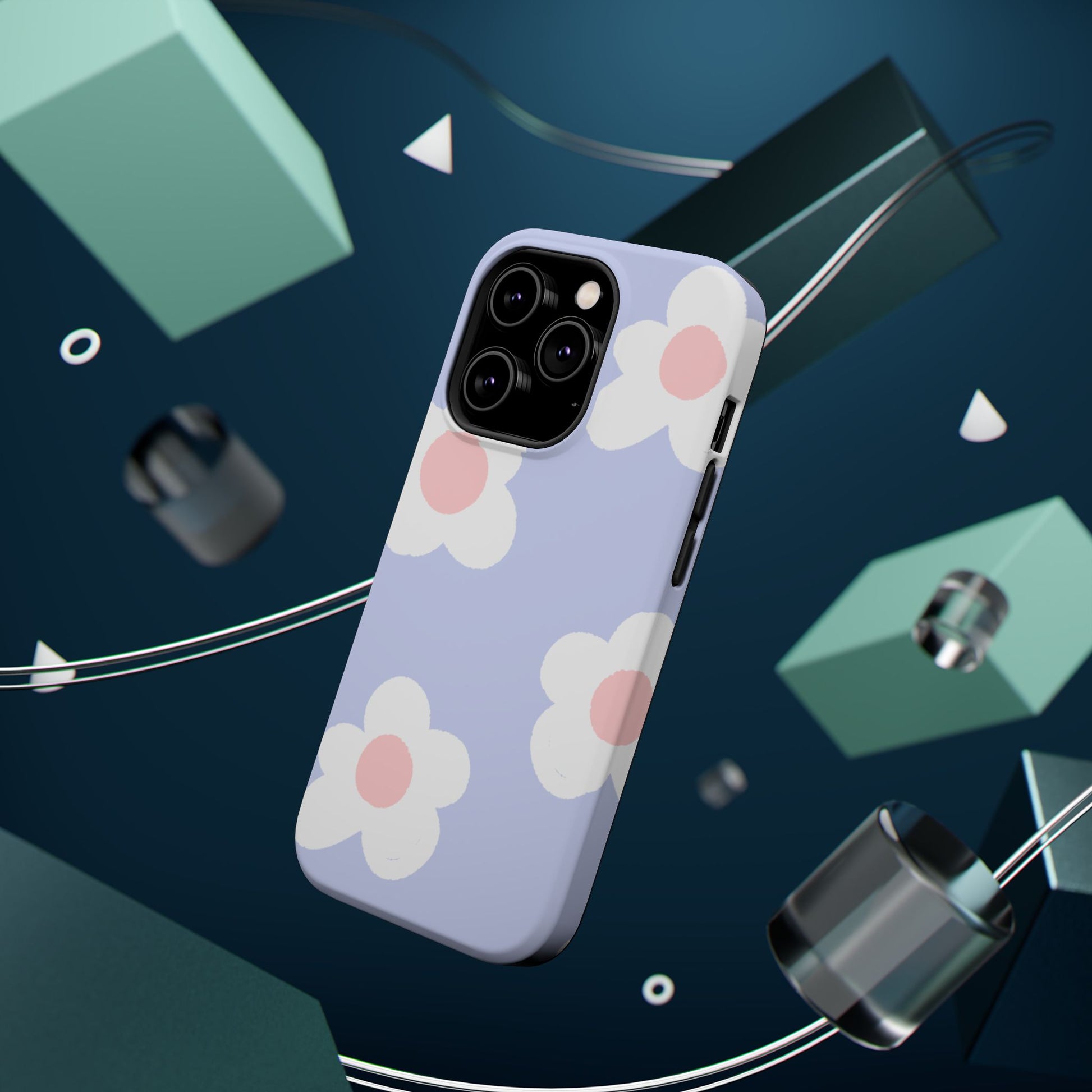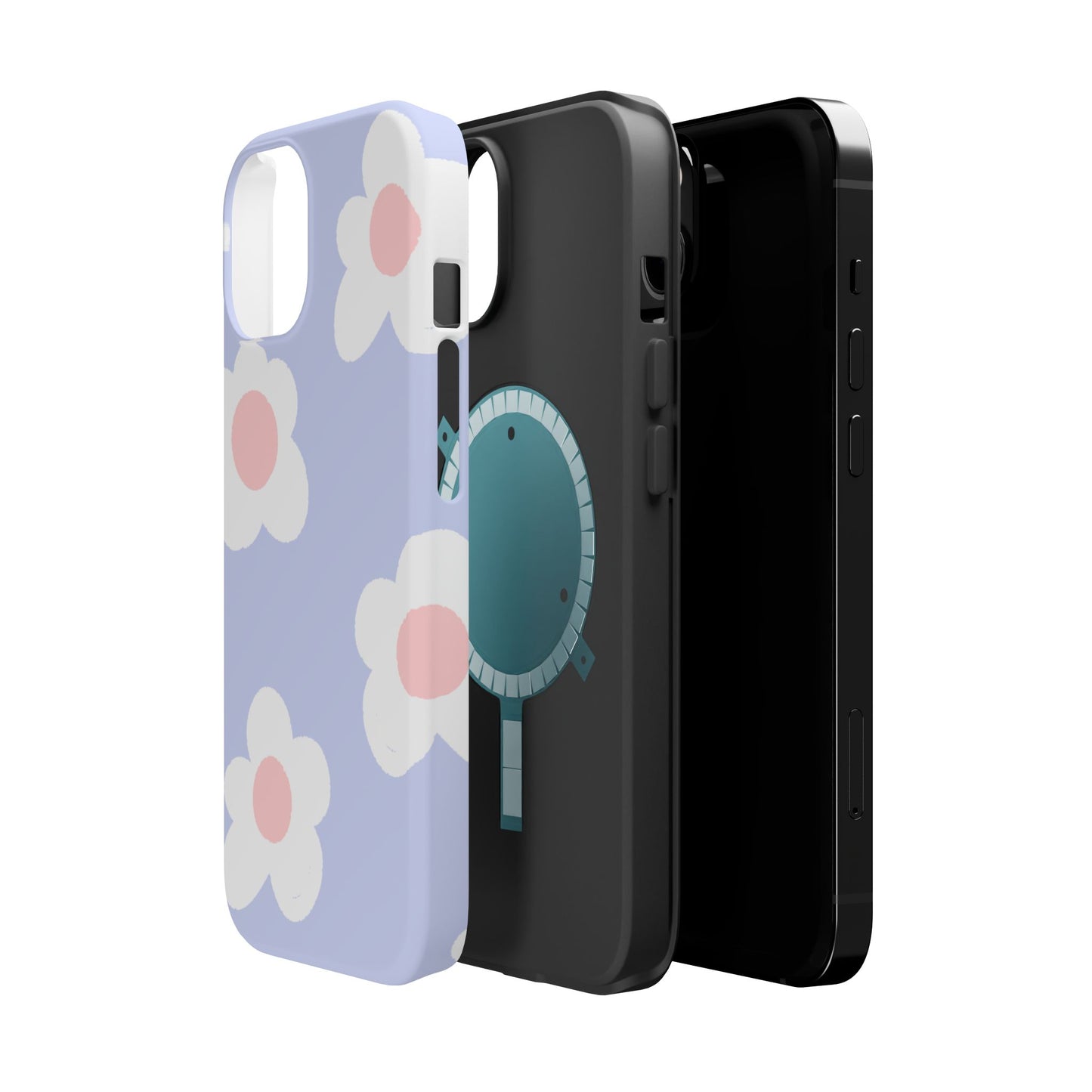 Add a playful retro vibe to your phone with our Retro Daisy Pastel Tough MagSafe iPhone Case. Featuring a charming pattern of hand-drawn white daisies with soft pink centers on a periwinkle blue background, this case evokes a sweet, nostalgic feel. Perfect for lovers of vintage-inspired design, it offers reliable protection with a dual-layer structure that guards against drops and bumps. The smooth matte finish enhances the daisy design while providing a comfortable, non-slip grip.